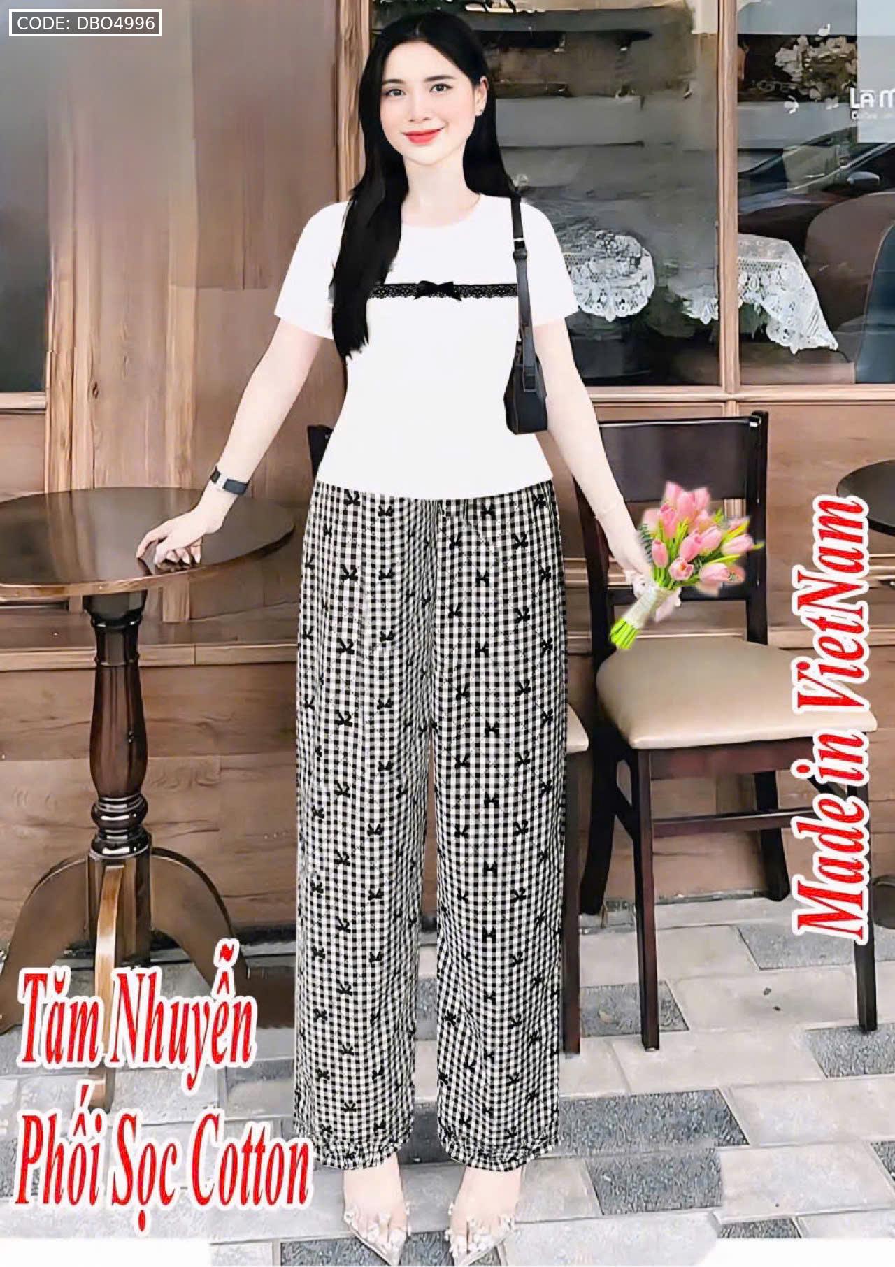 Từ khóa: đồ bộ nữ, đồ bộ quần dài, tăm nhuyễn phối sọc cotton