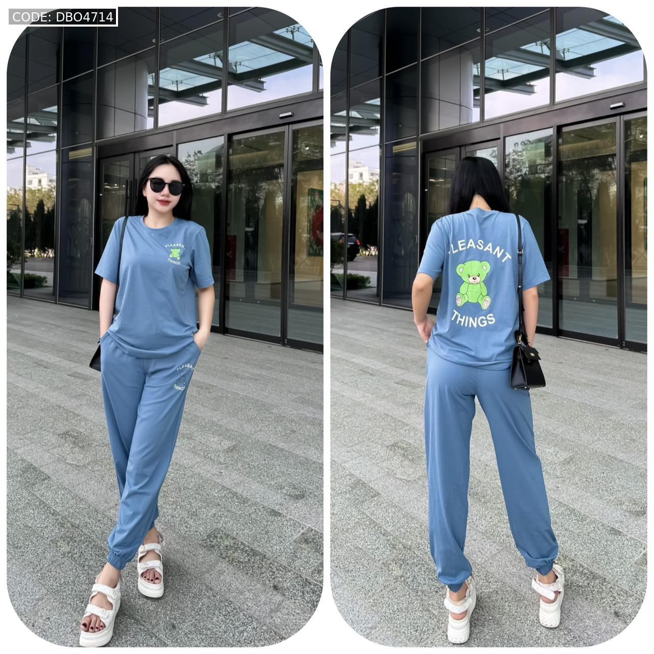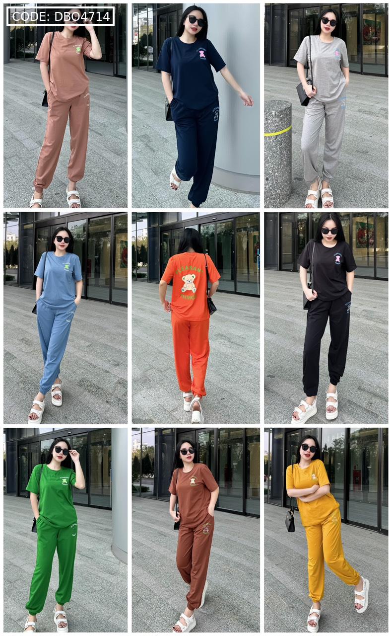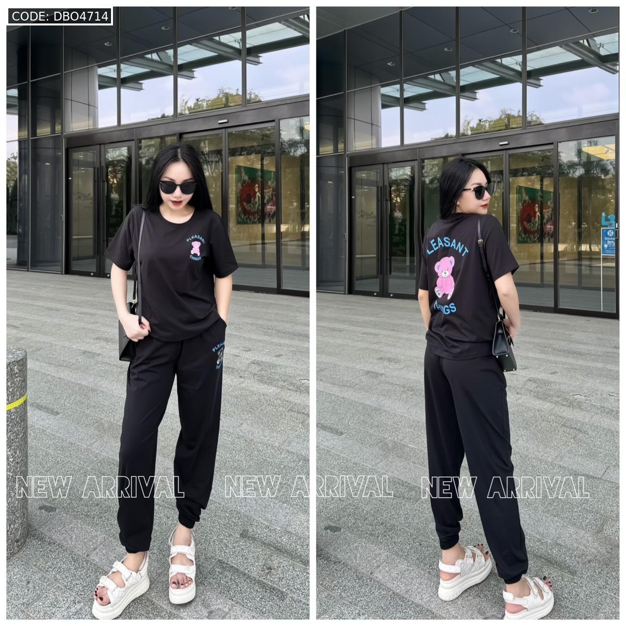 Đồ bộ quần dài bo thun áo tay ngắn in hình gấu