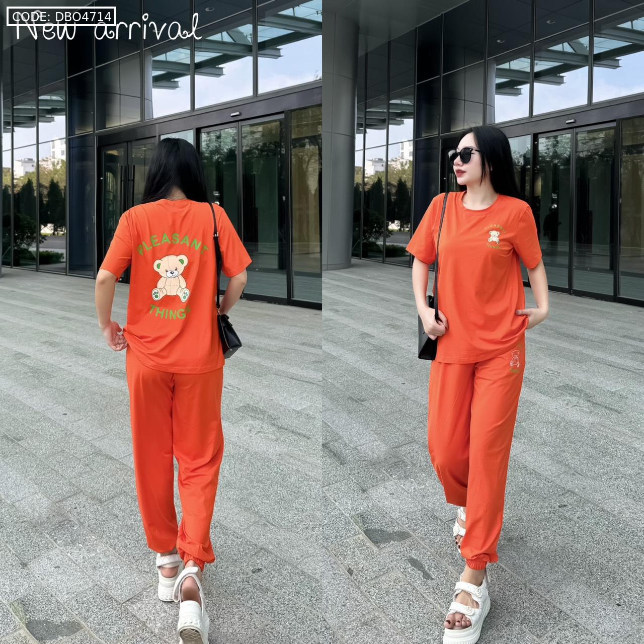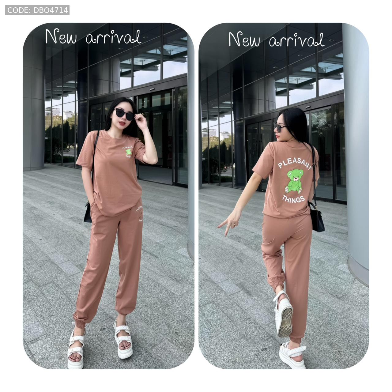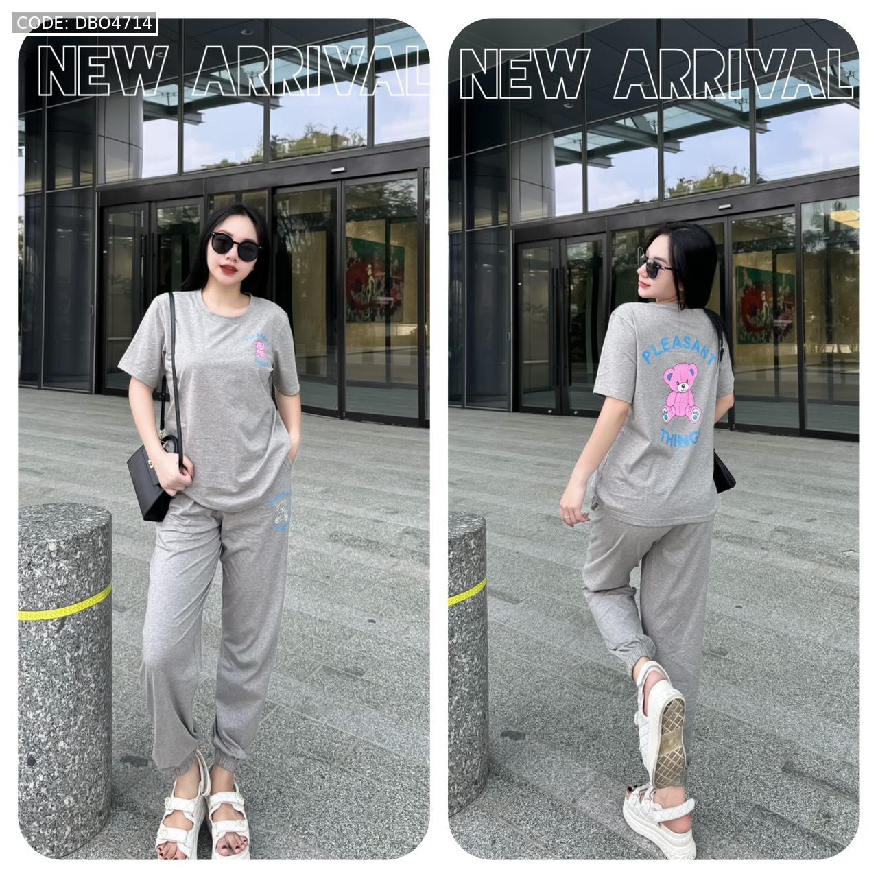 Đồ bộ quần dài bo thun áo tay ngắn in hình gấu