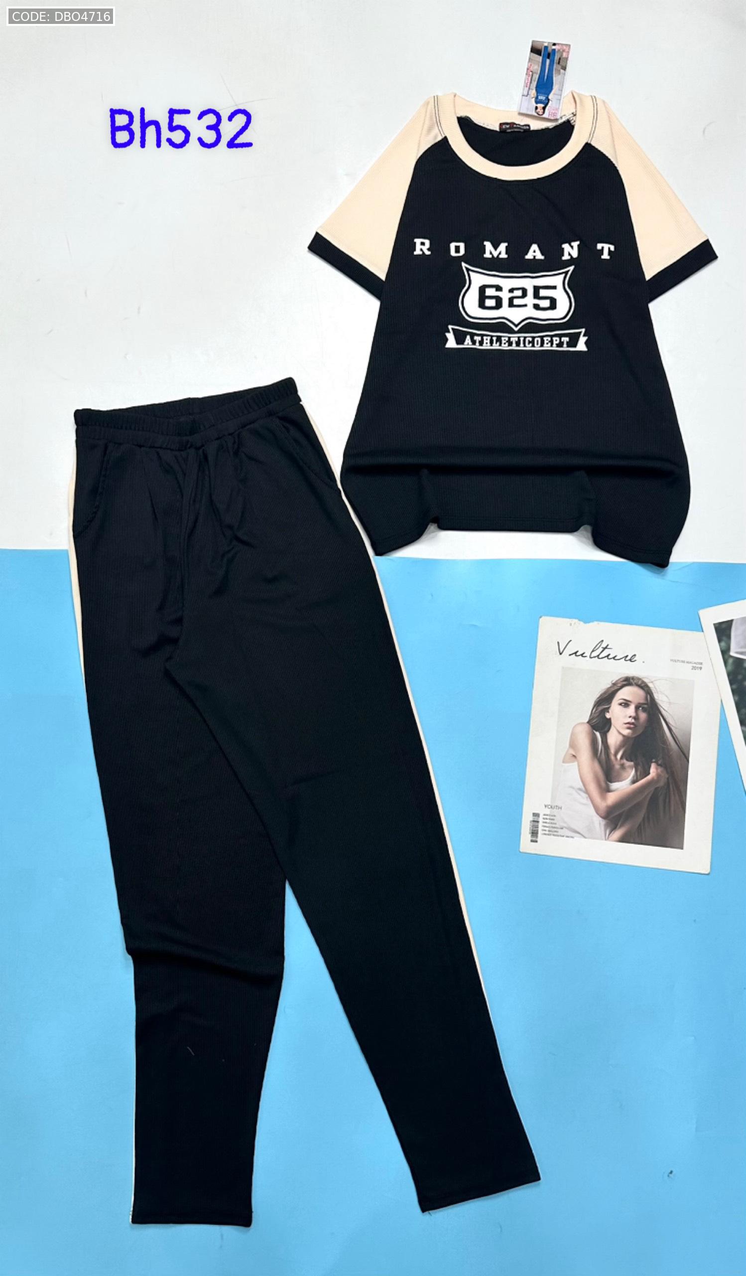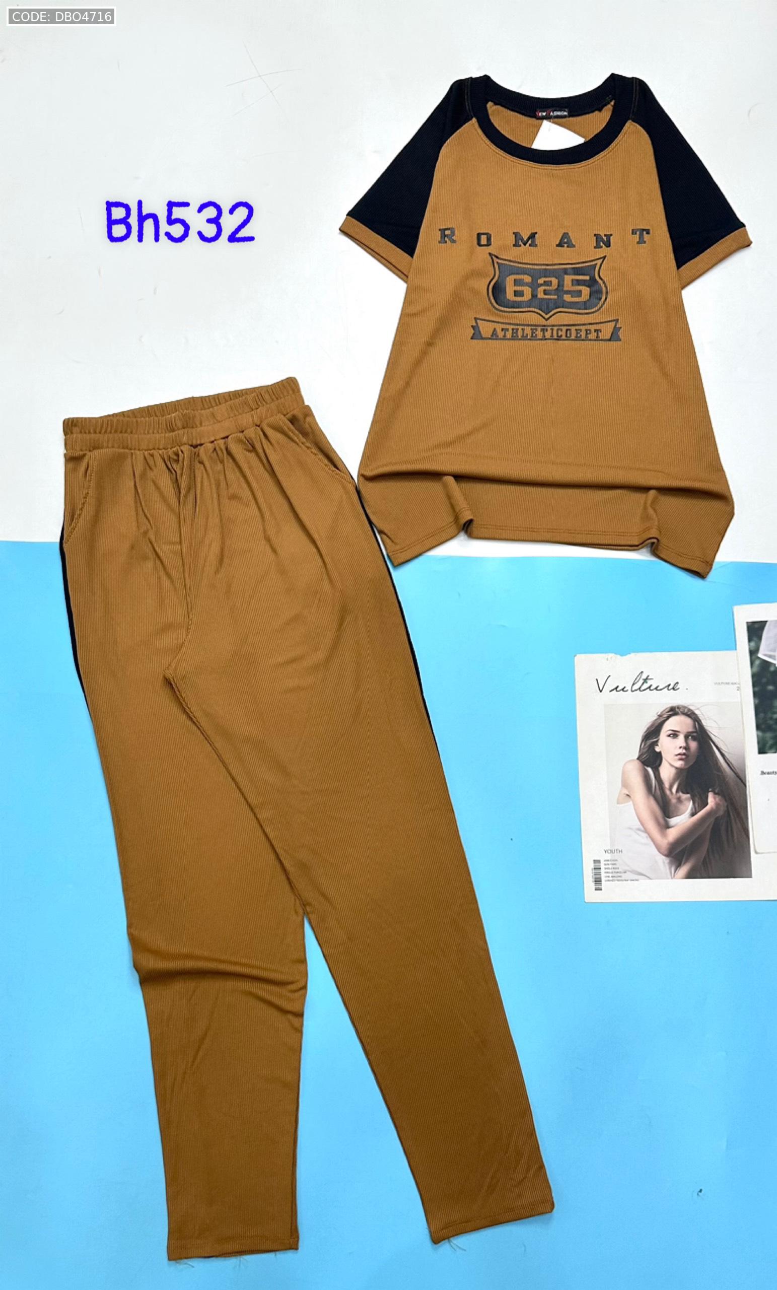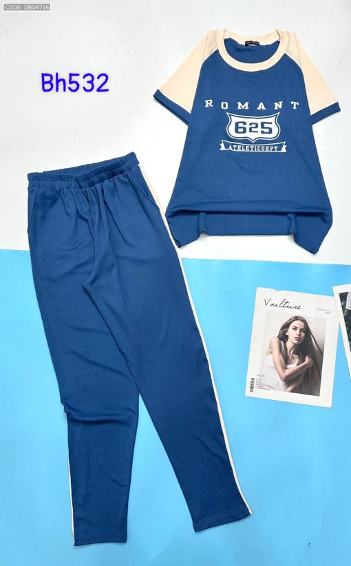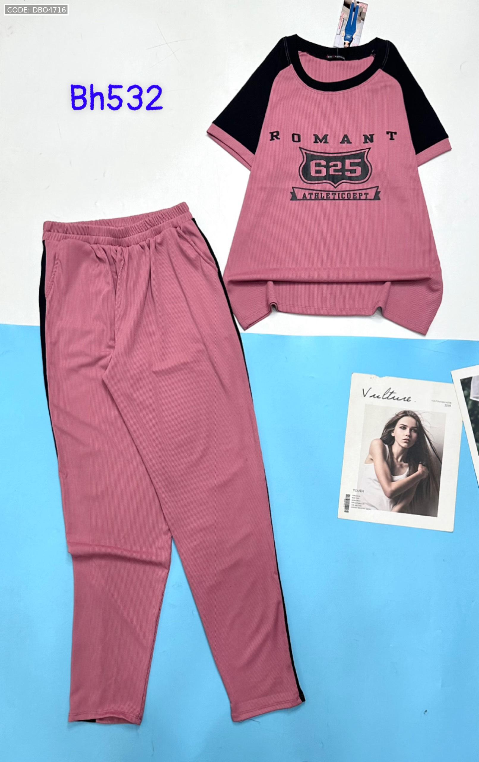 Đồ bộ quần dài bo thun áo tay ngắn in số 625