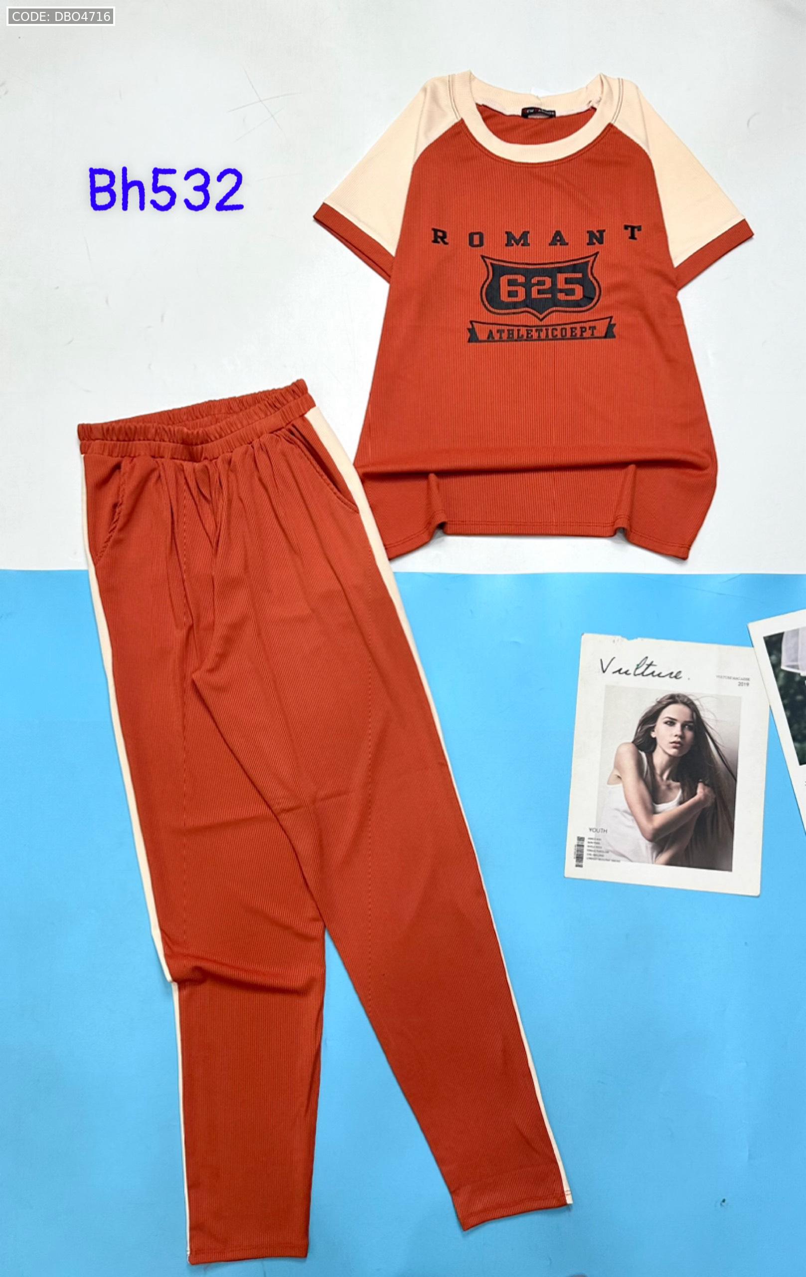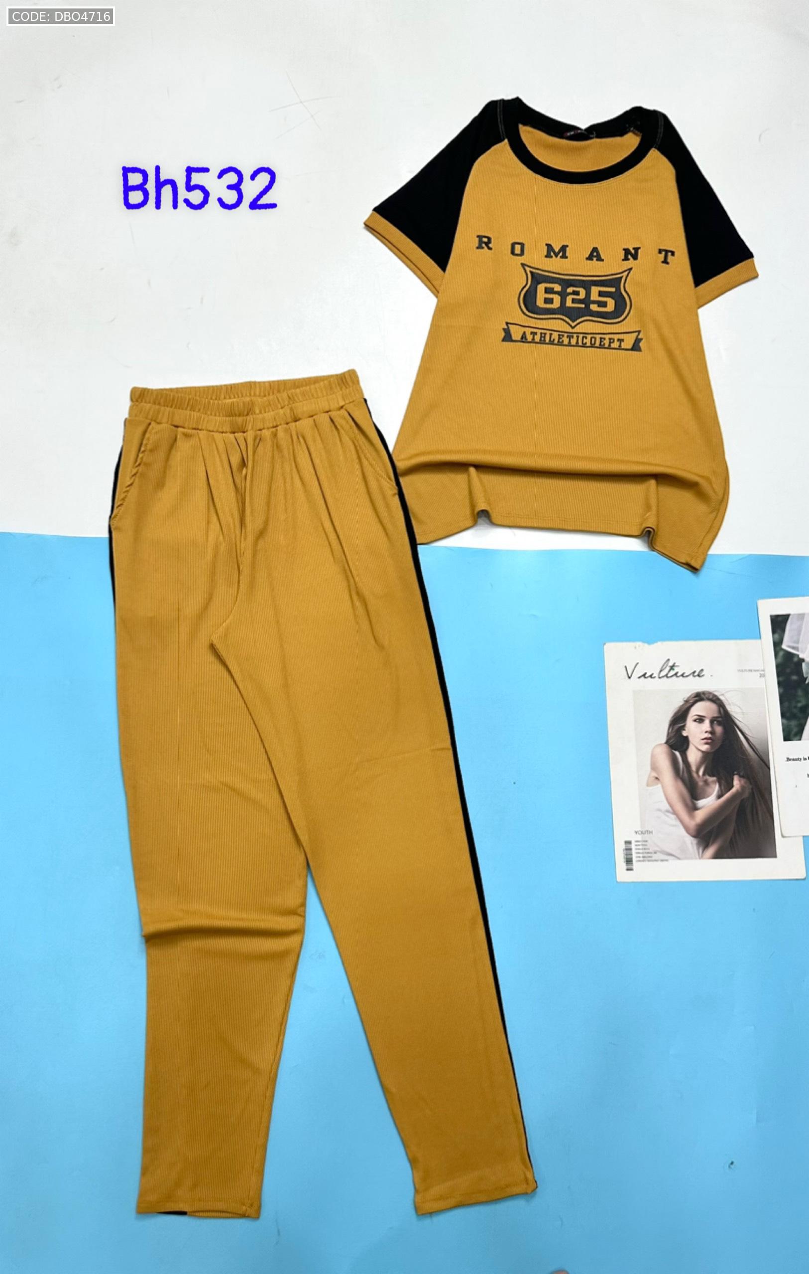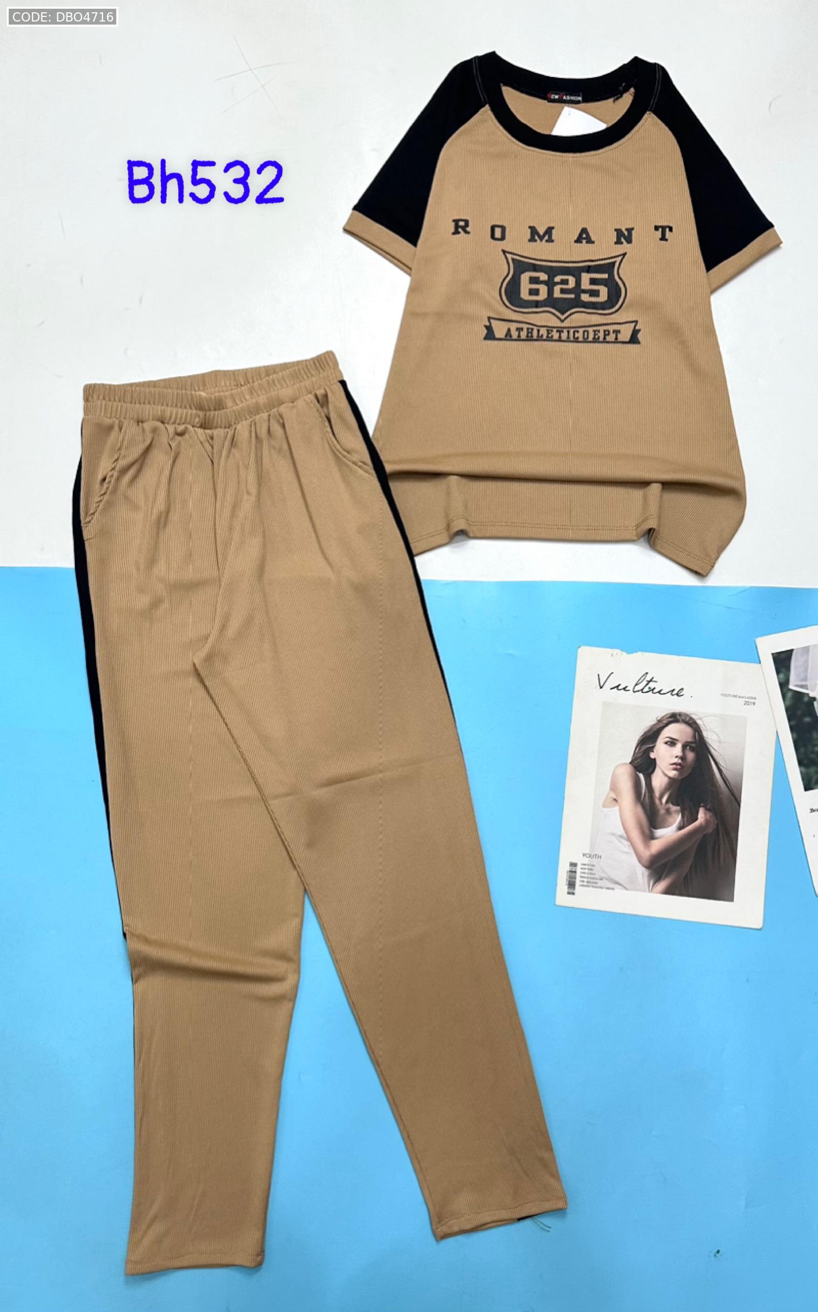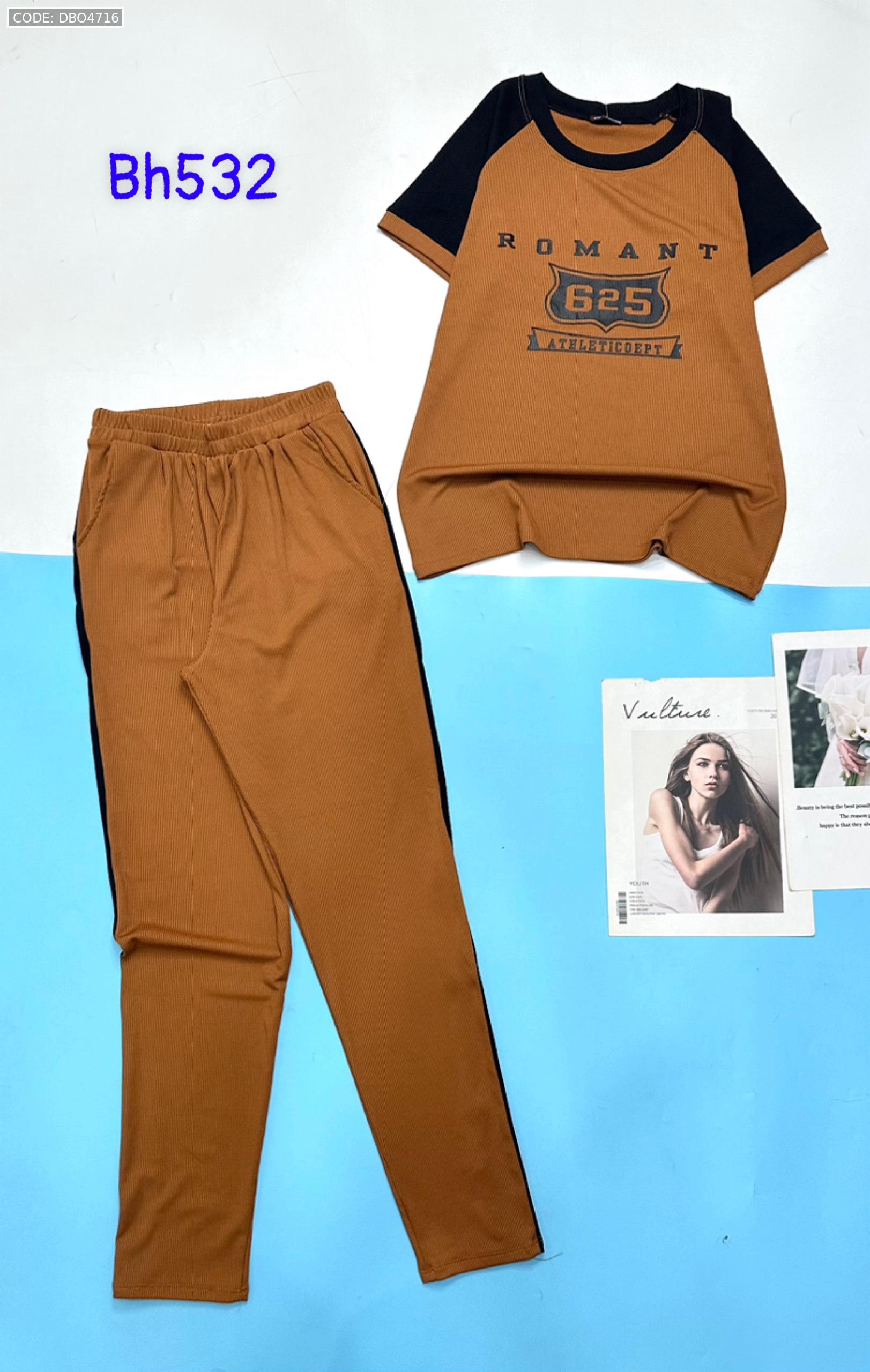 Đồ bộ quần dài bo thun áo tay ngắn in số 625