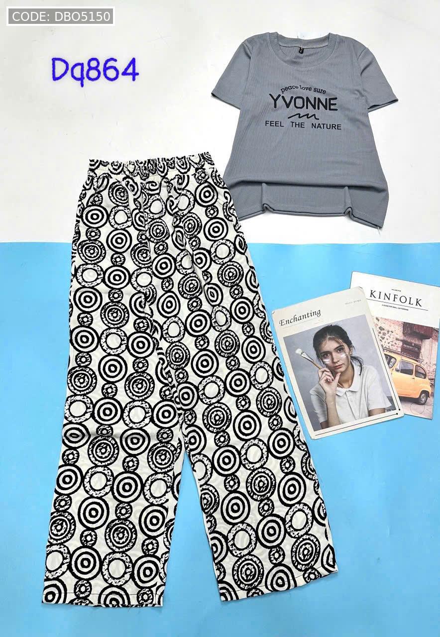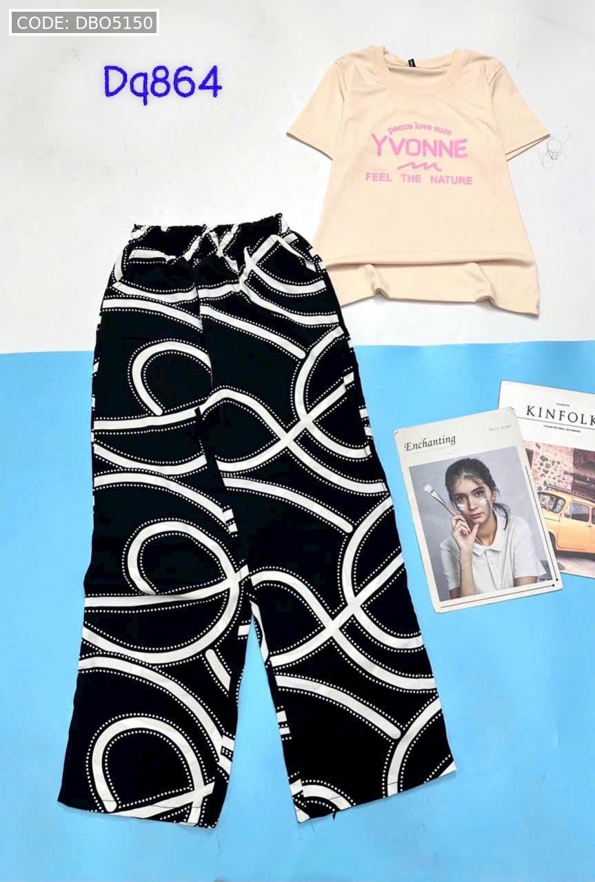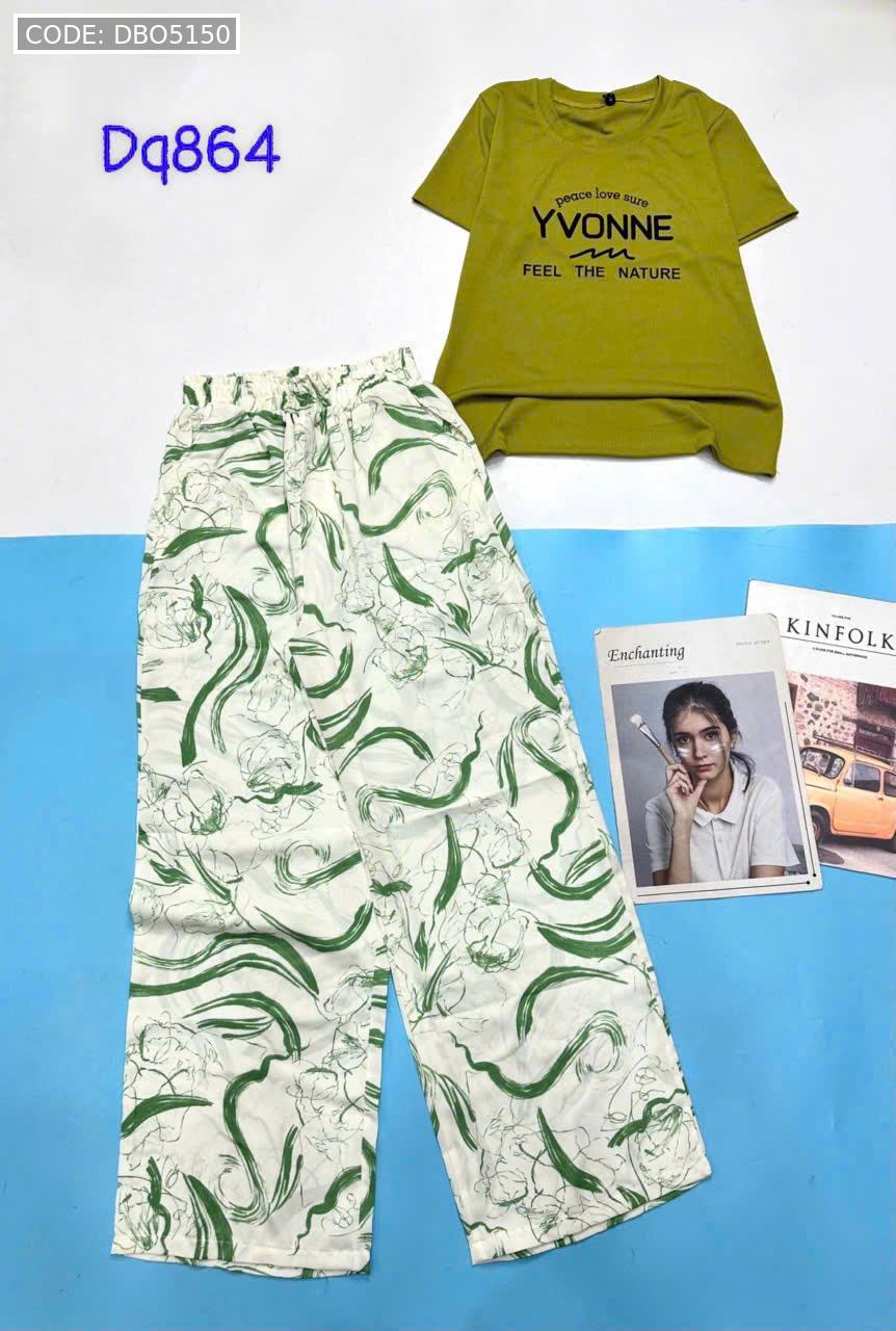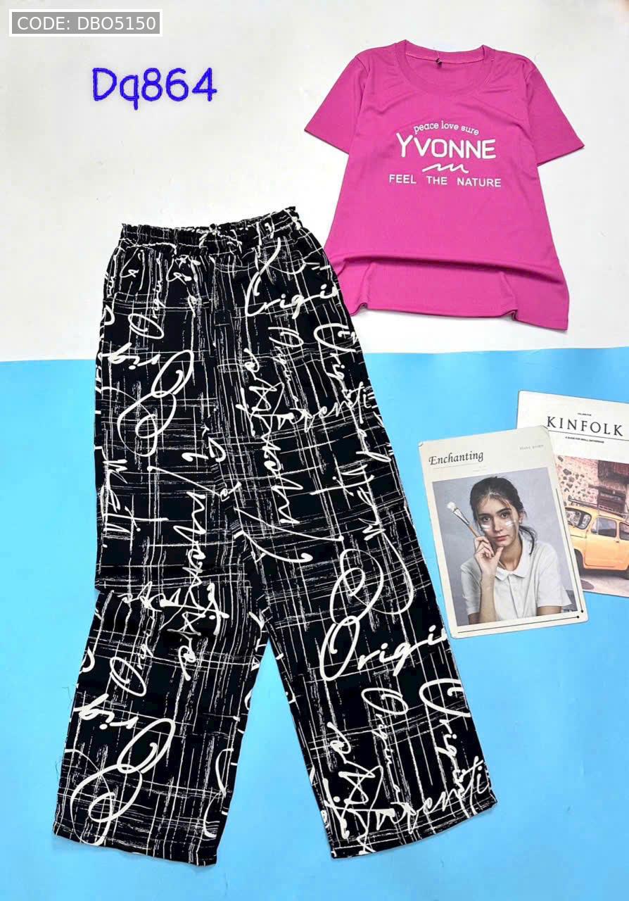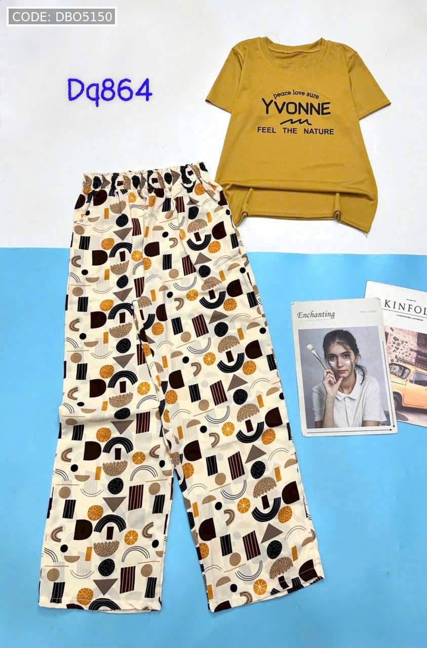 Đồ bộ quần dài mango áo thun tay ngắn áo in chữ