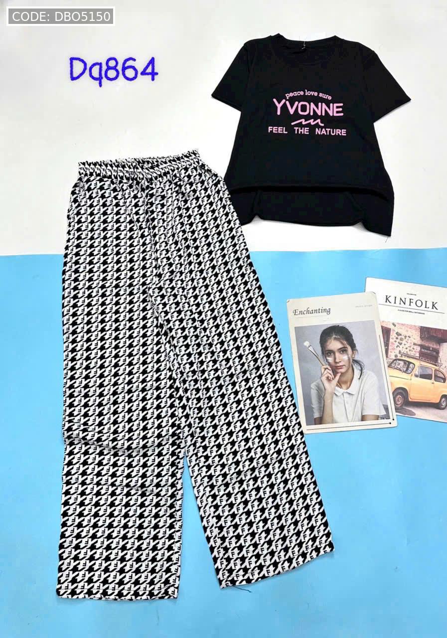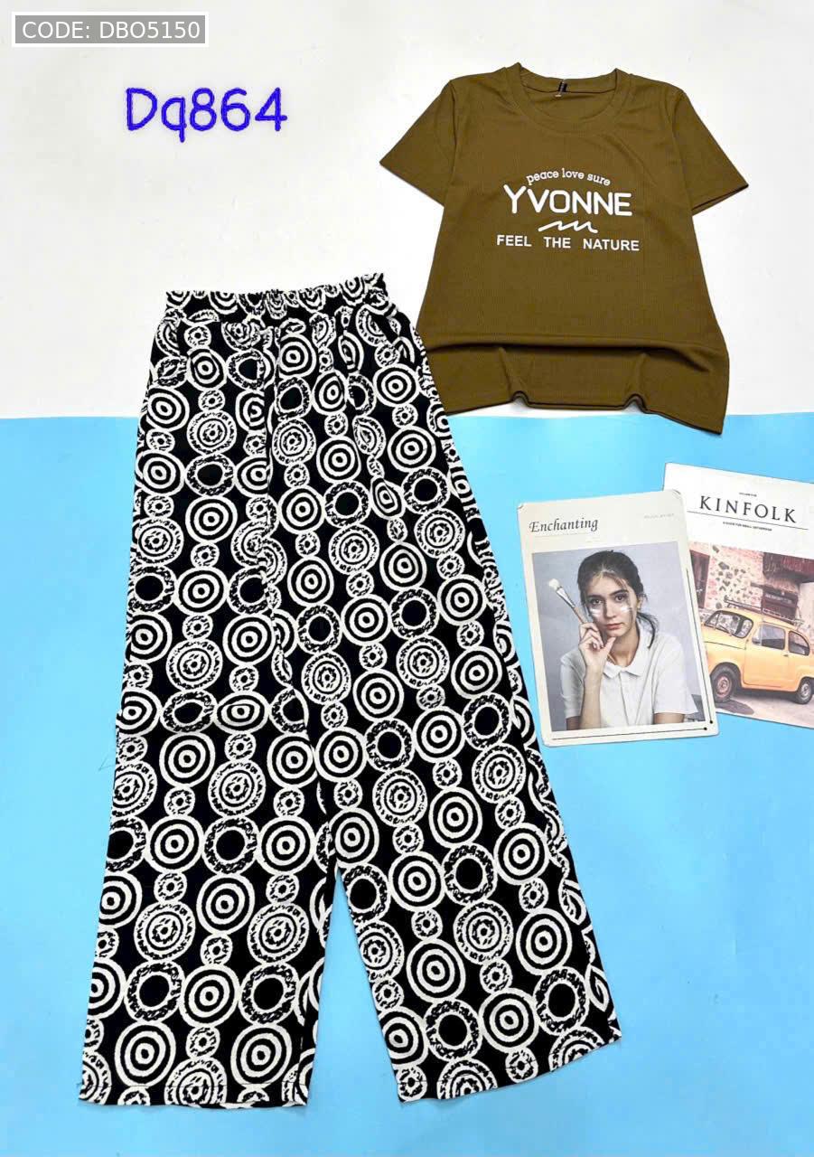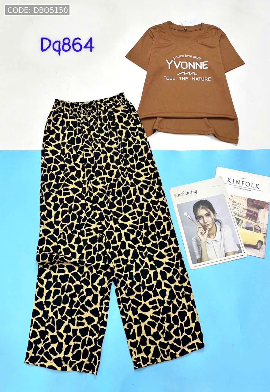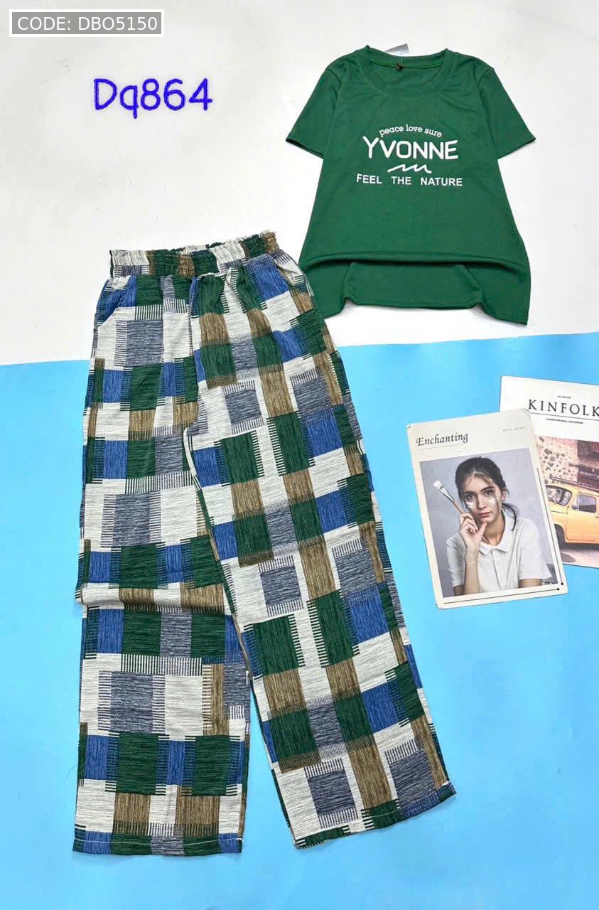 Đồ bộ quần dài mango áo thun tay ngắn áo in chữ