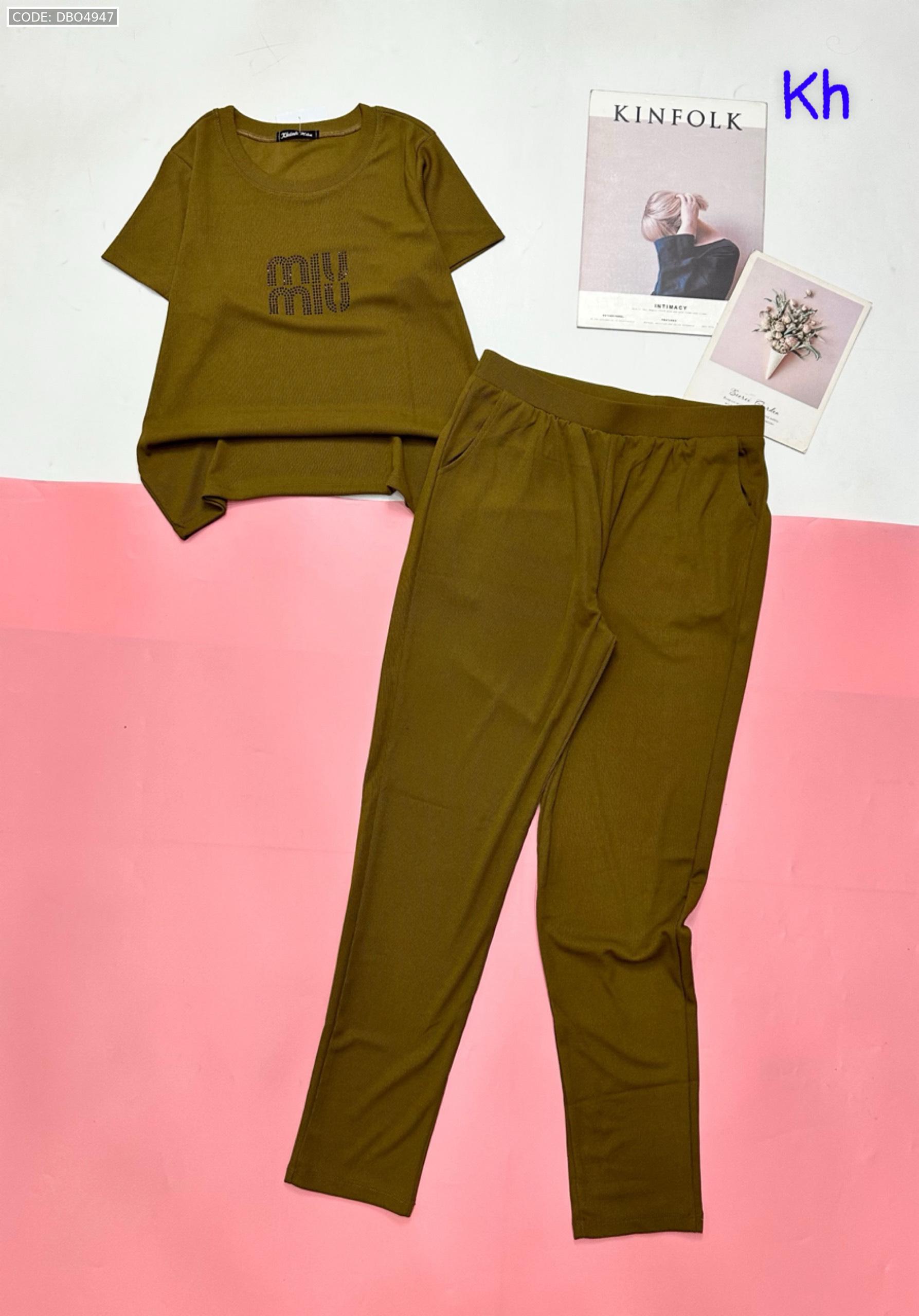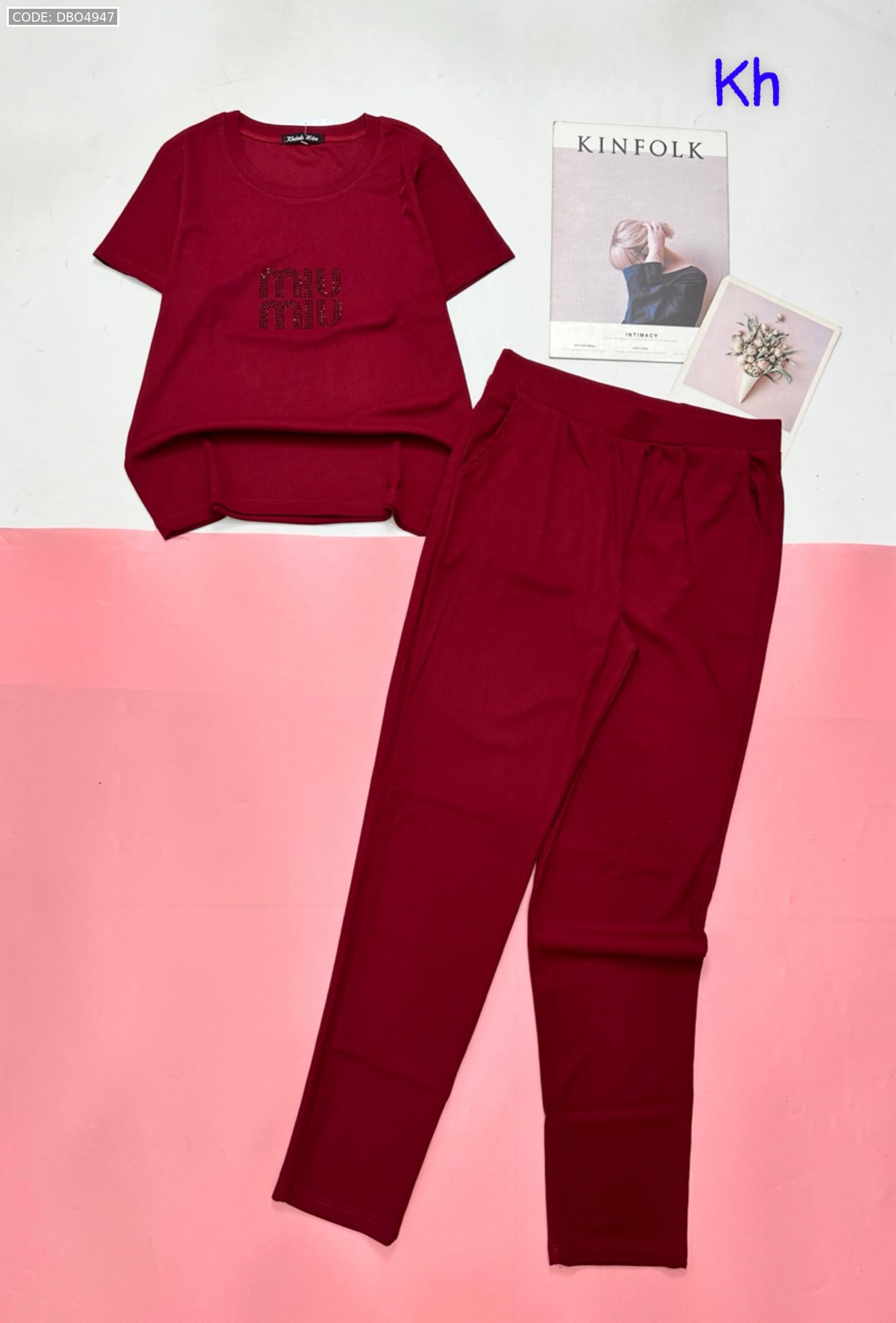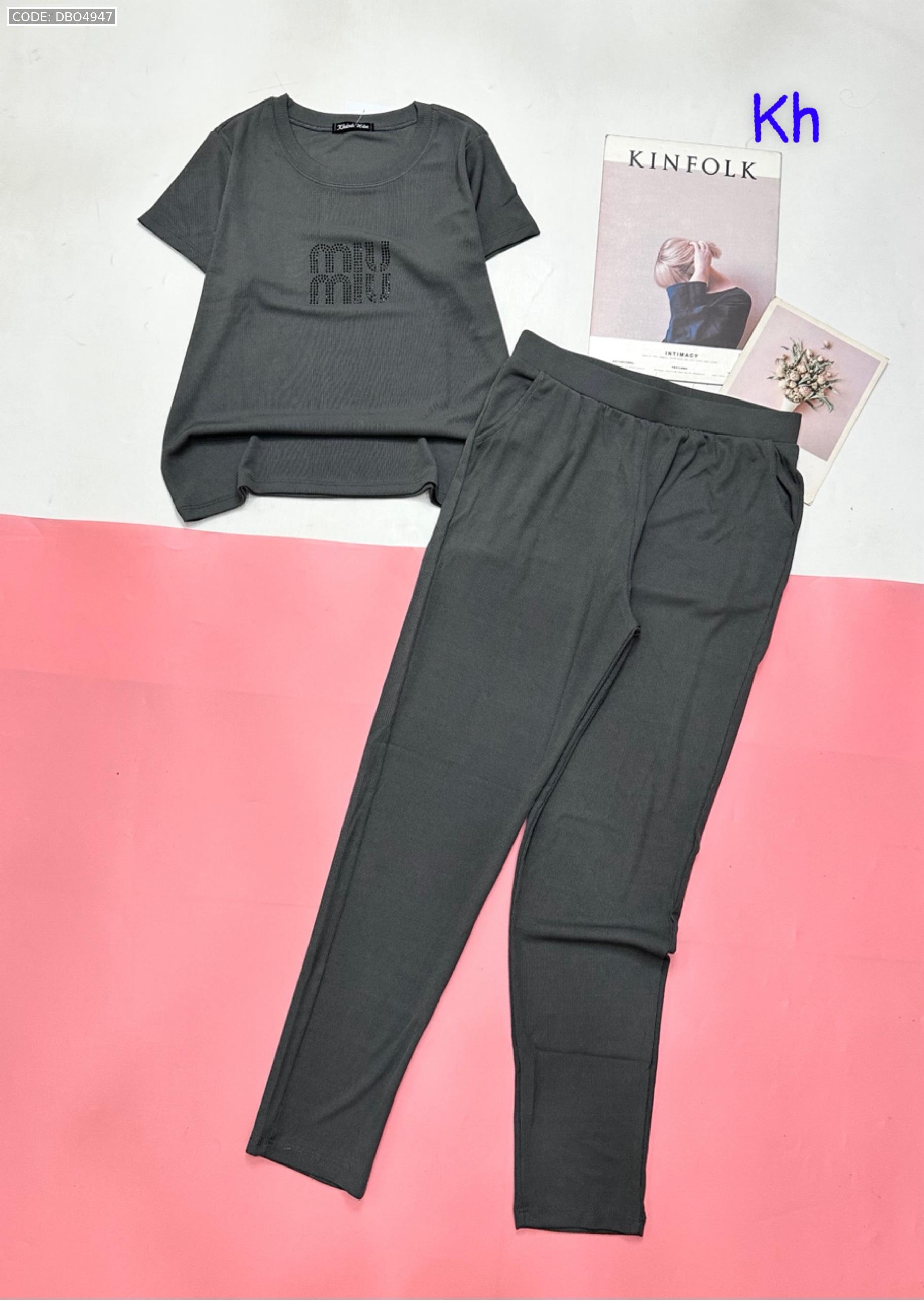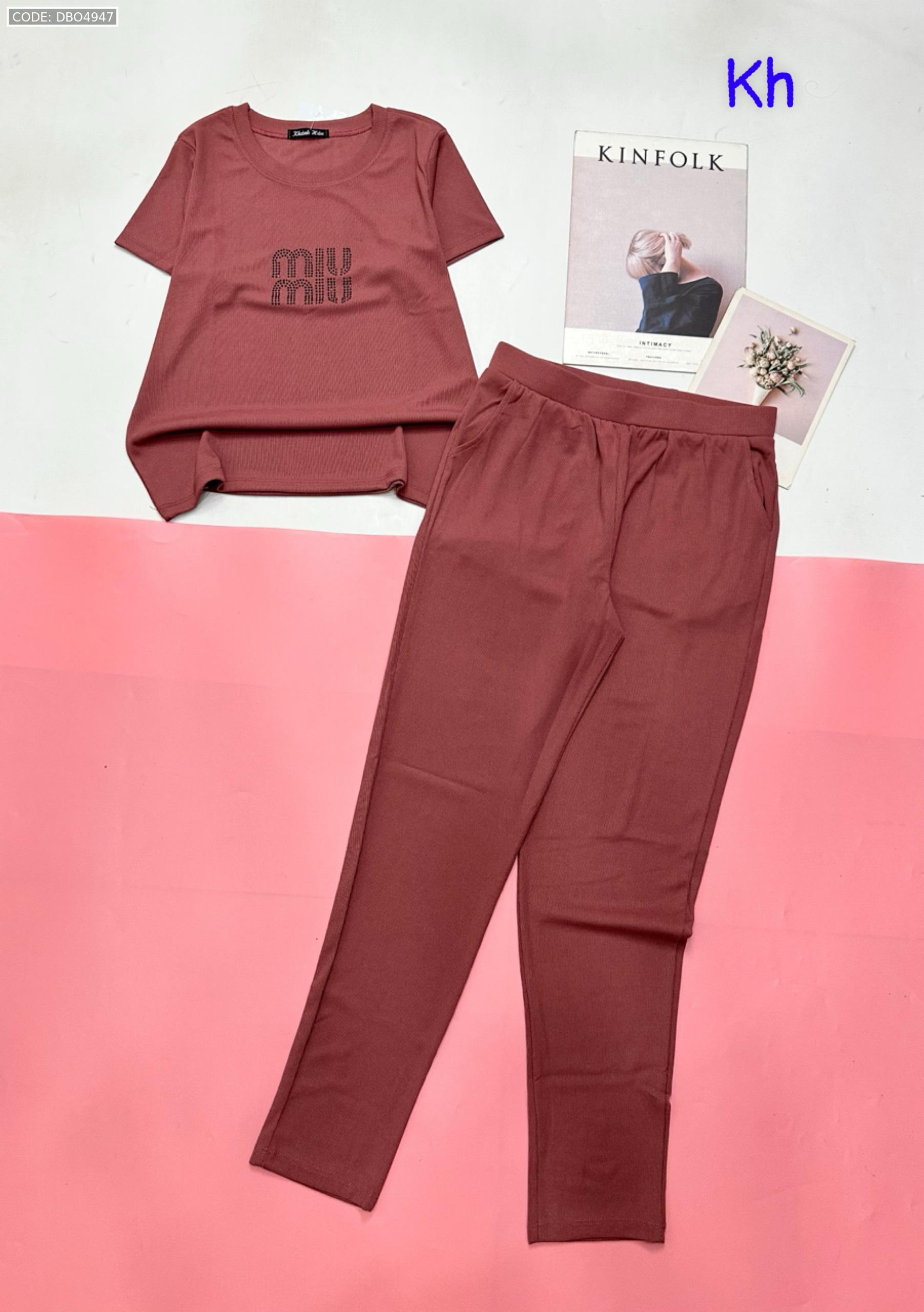 Đồ bộ quần dài ống nhỏ áo tay ngắn in chữ miu miu