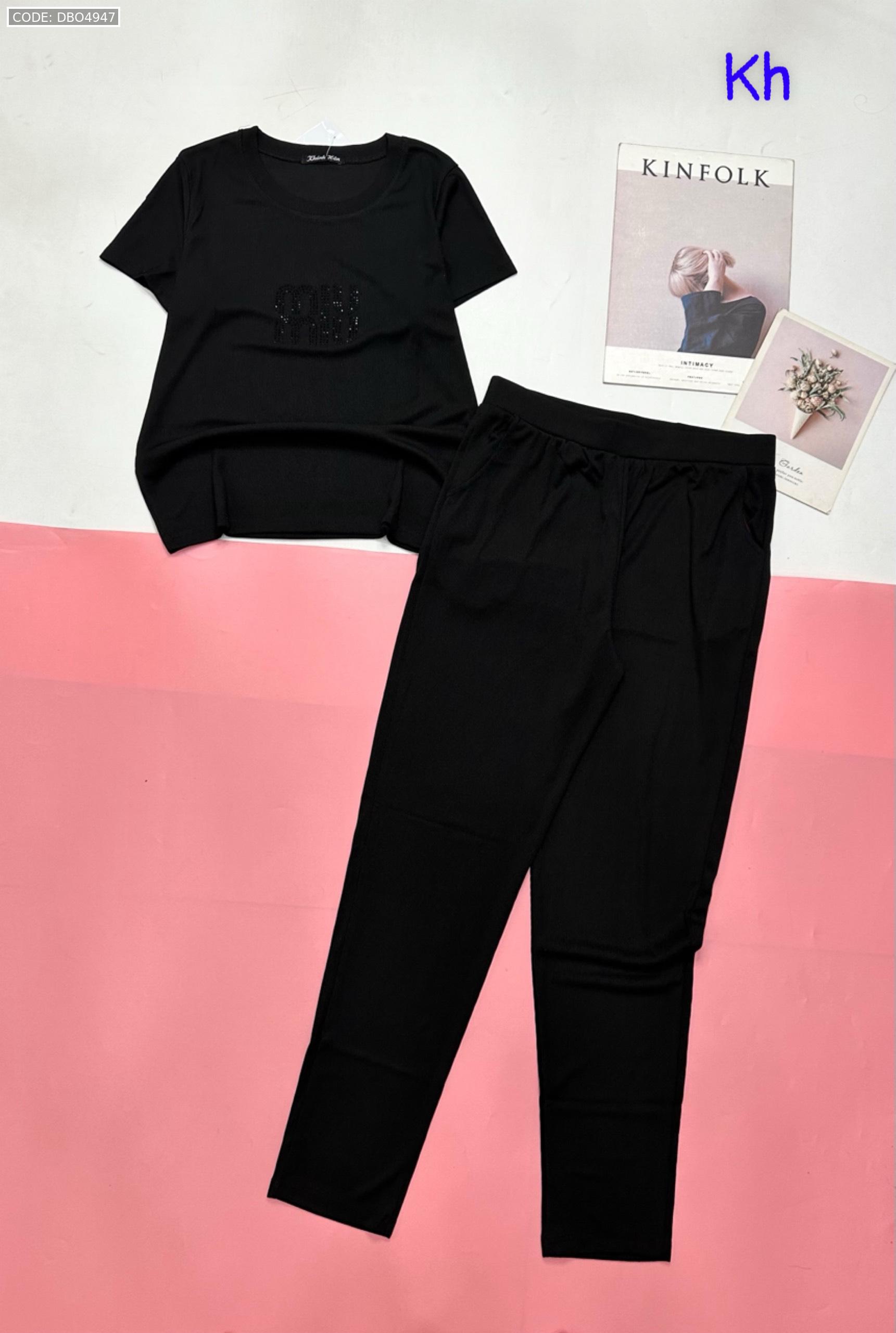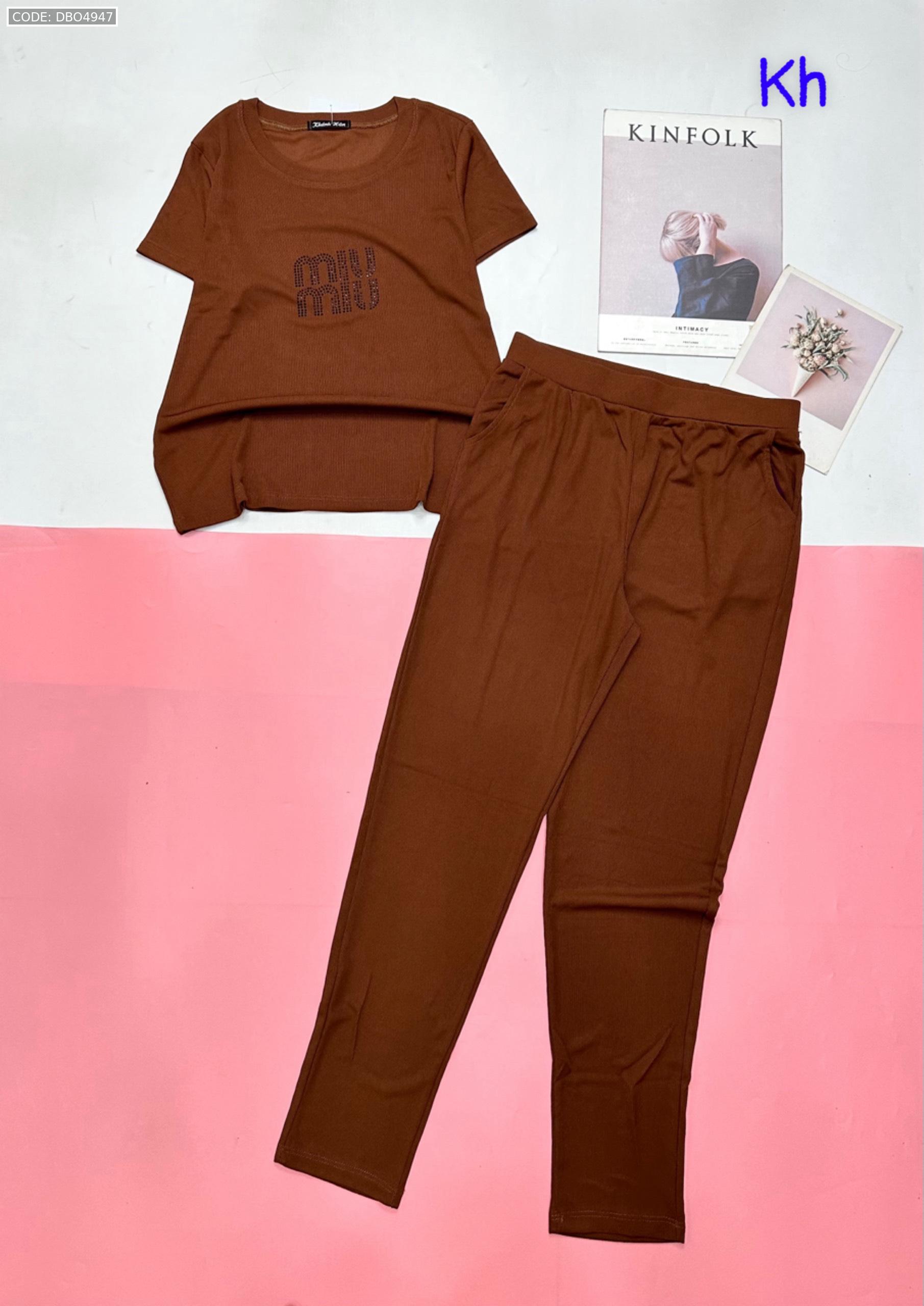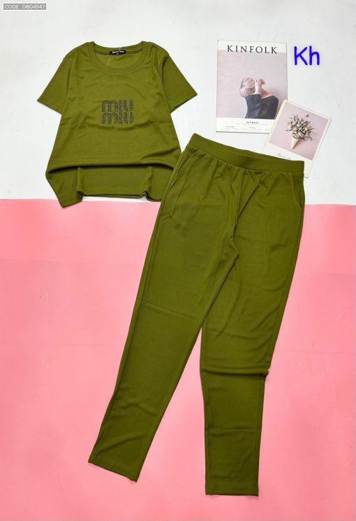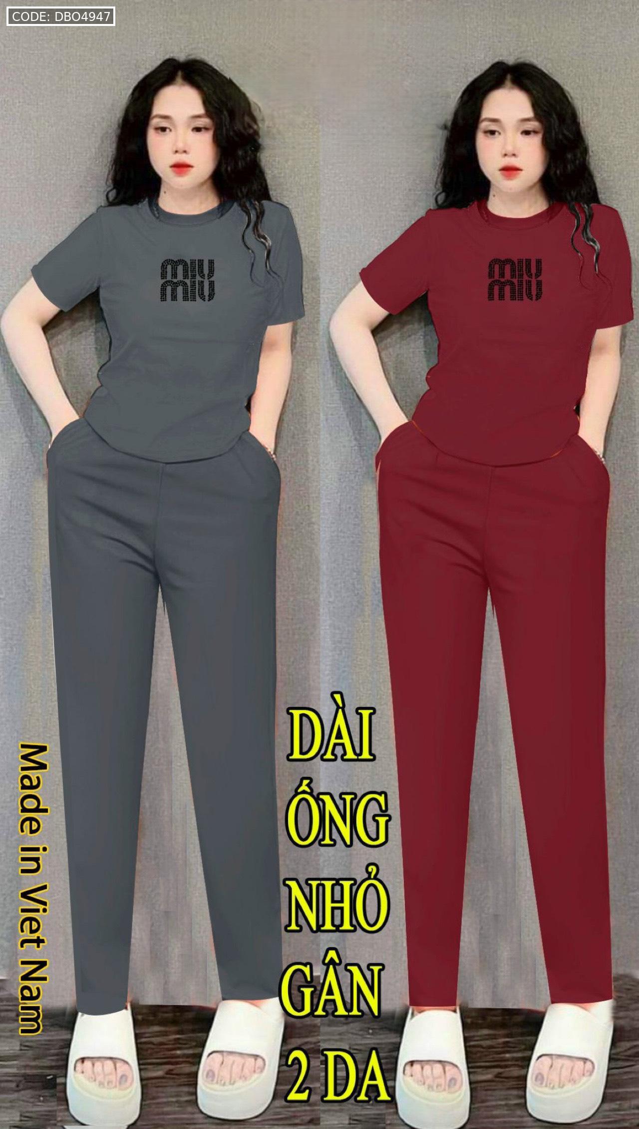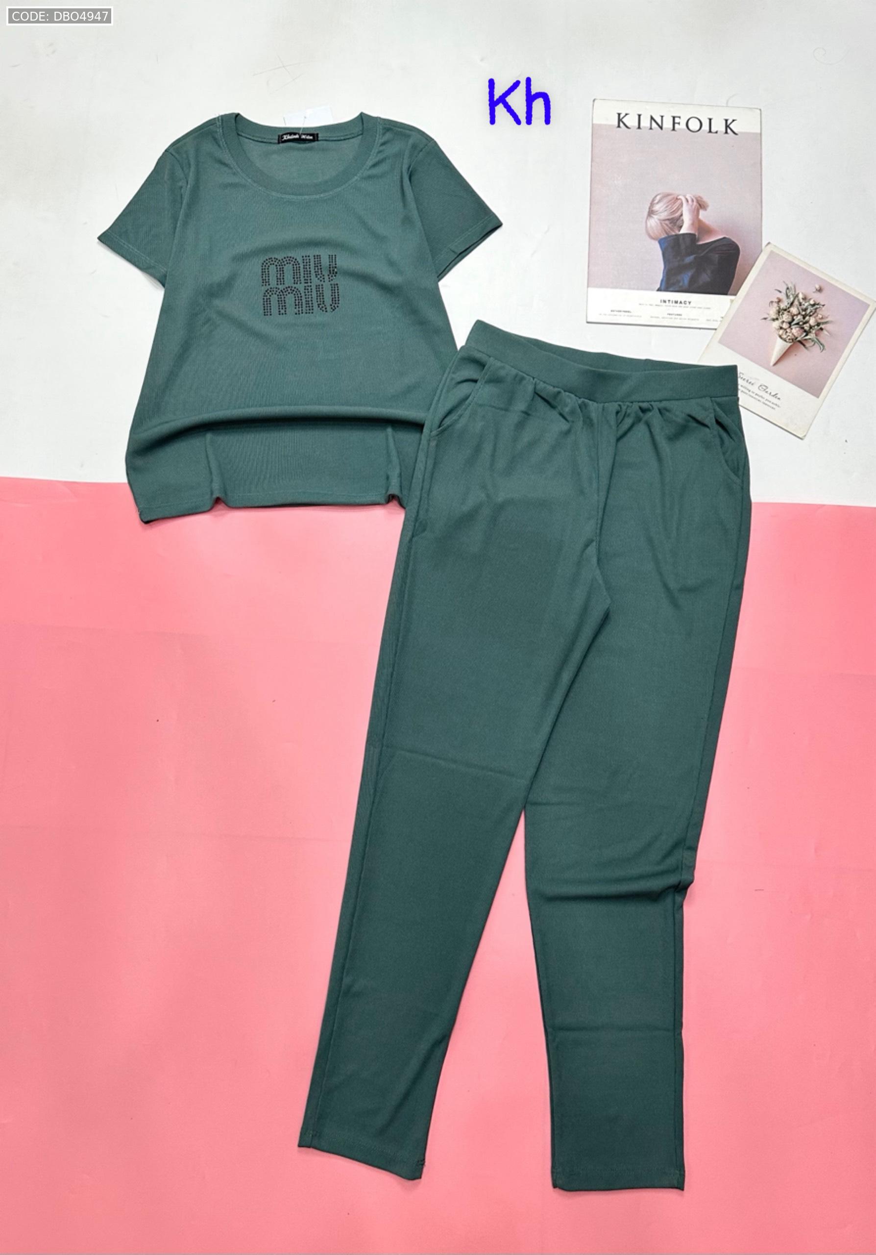 Đồ bộ quần dài ống nhỏ áo tay ngắn in chữ miu miu
