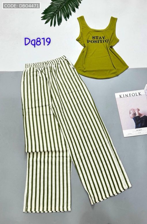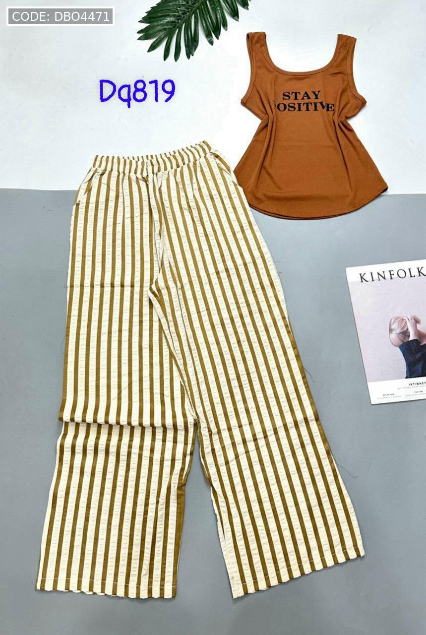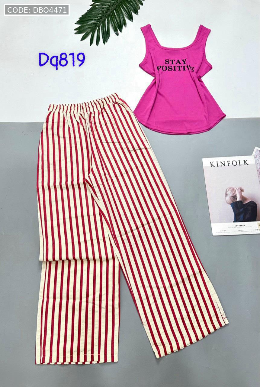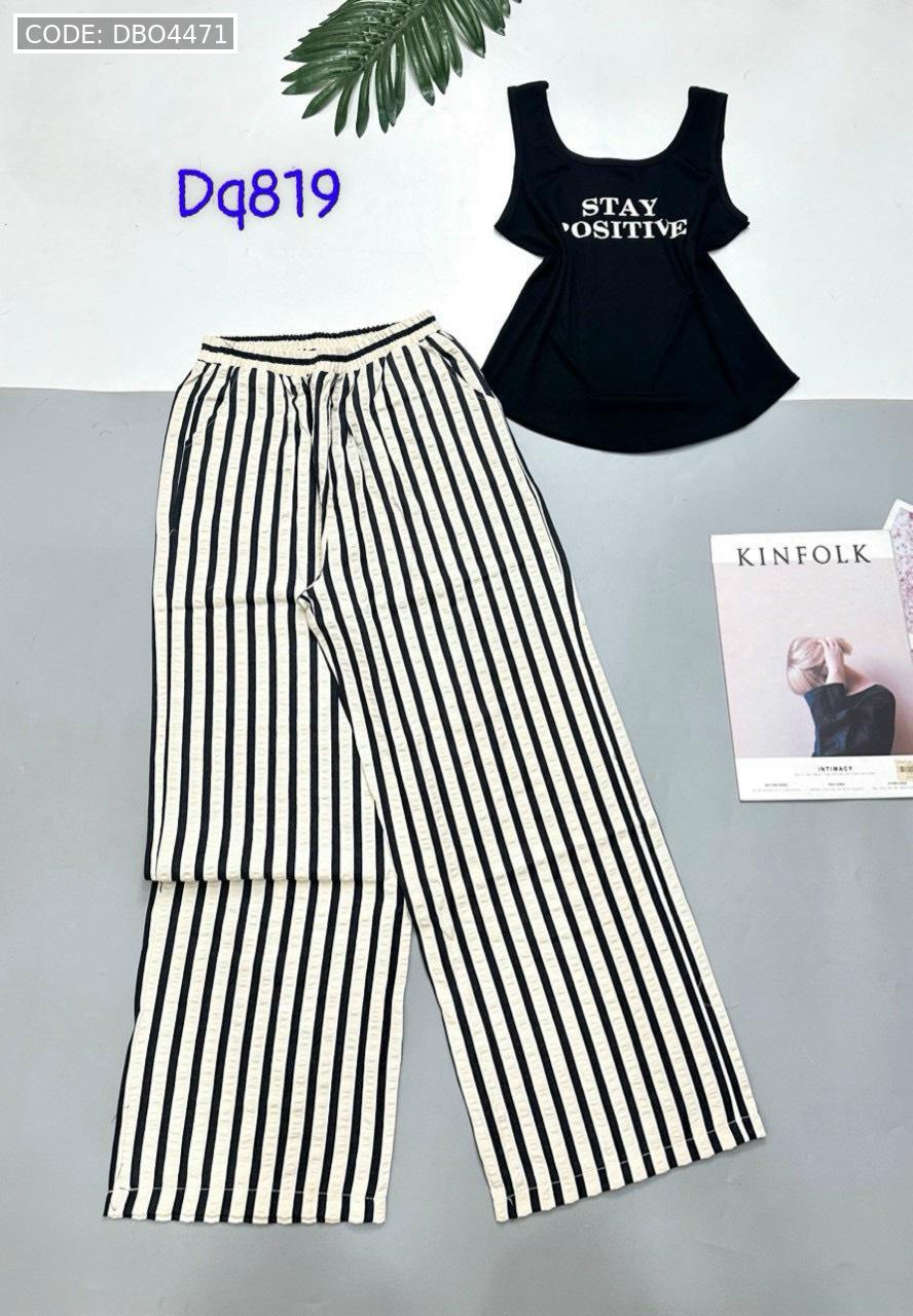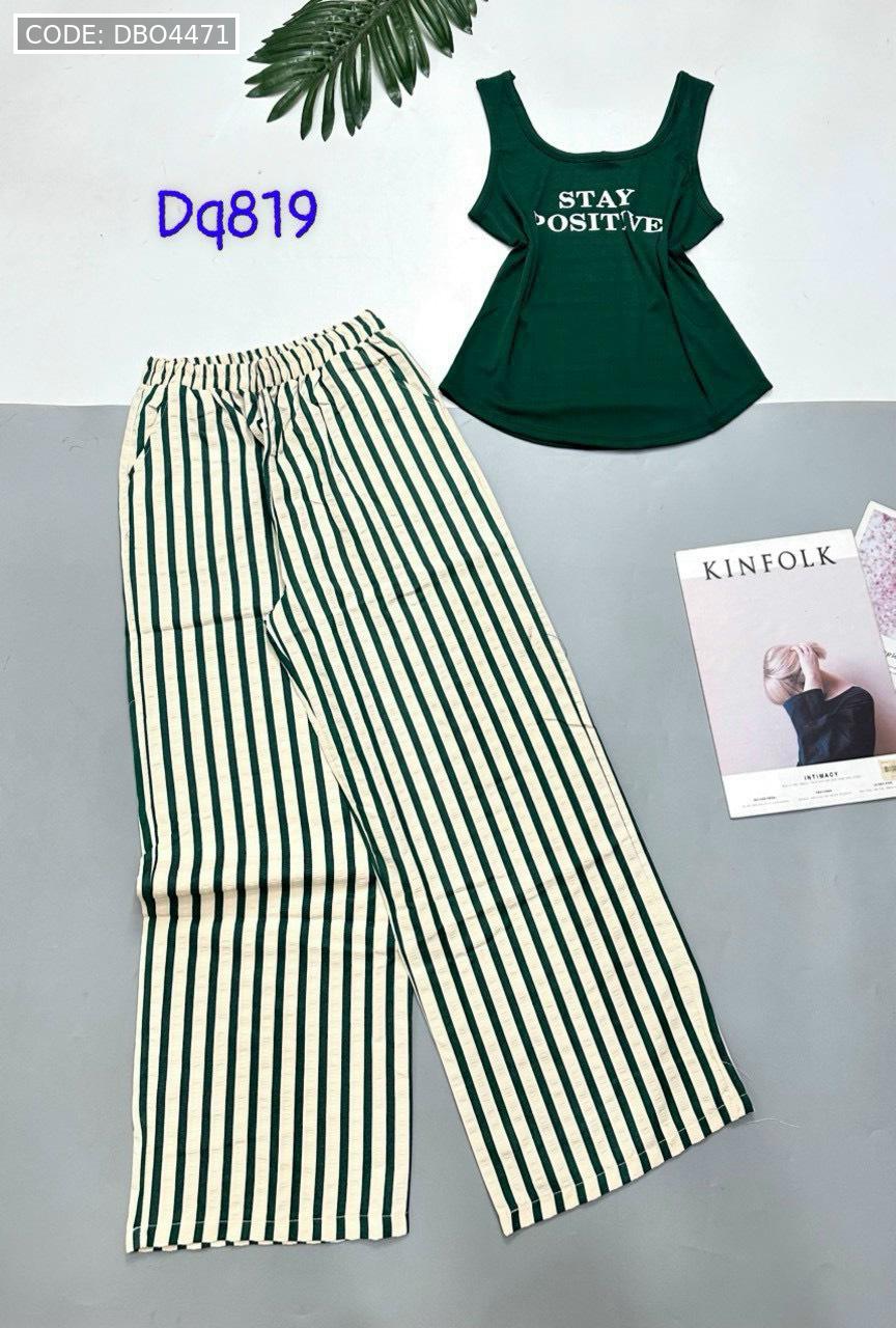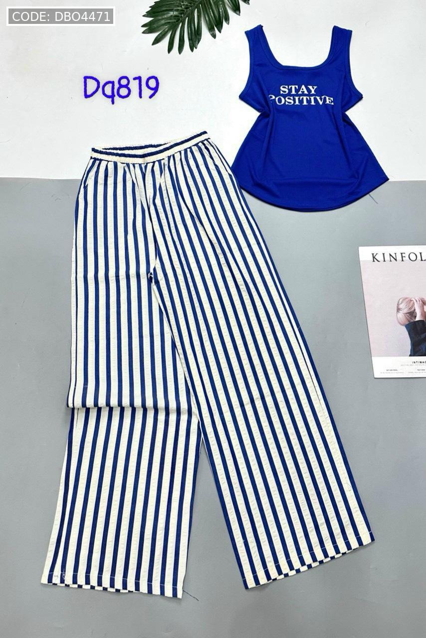Đồ bộ quần dài sọc áo sát nách in chữ STAY