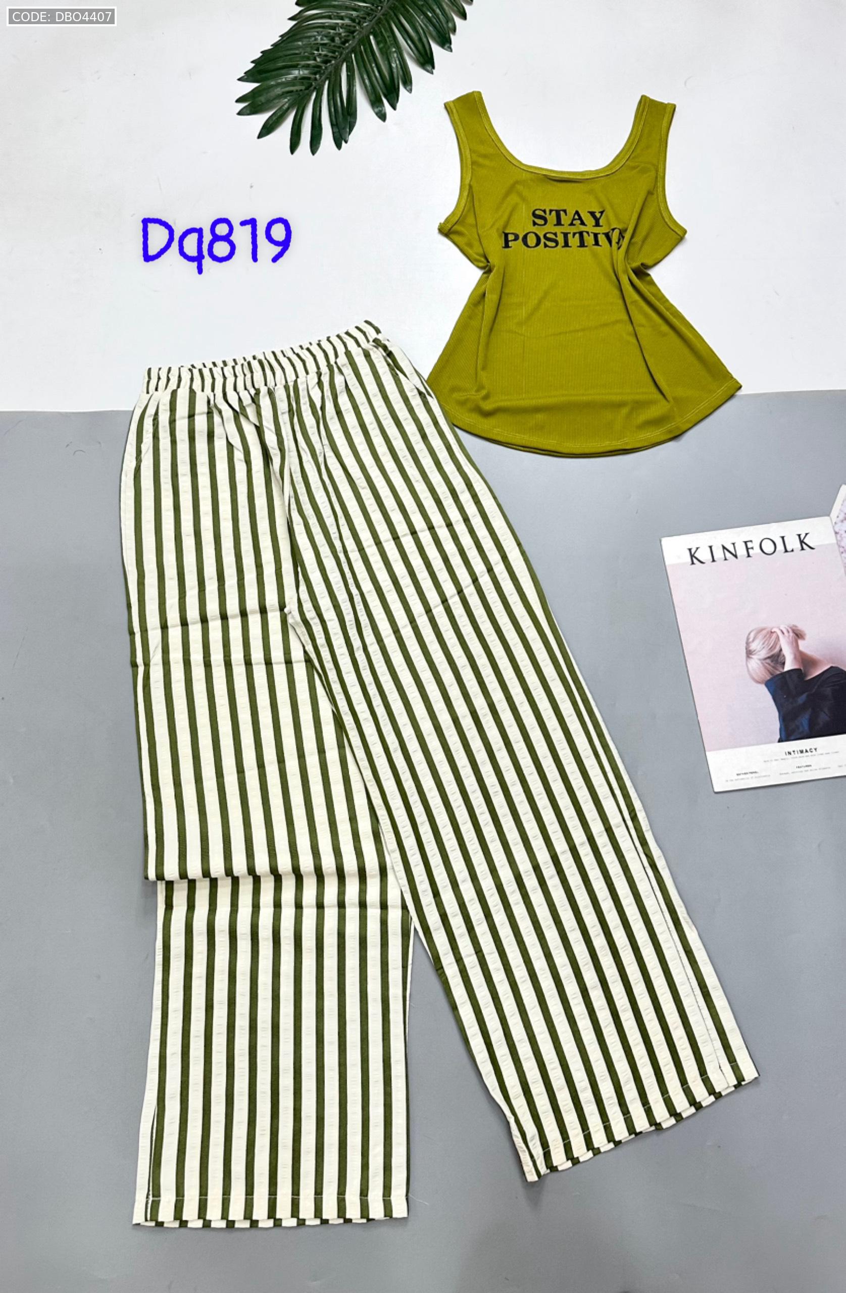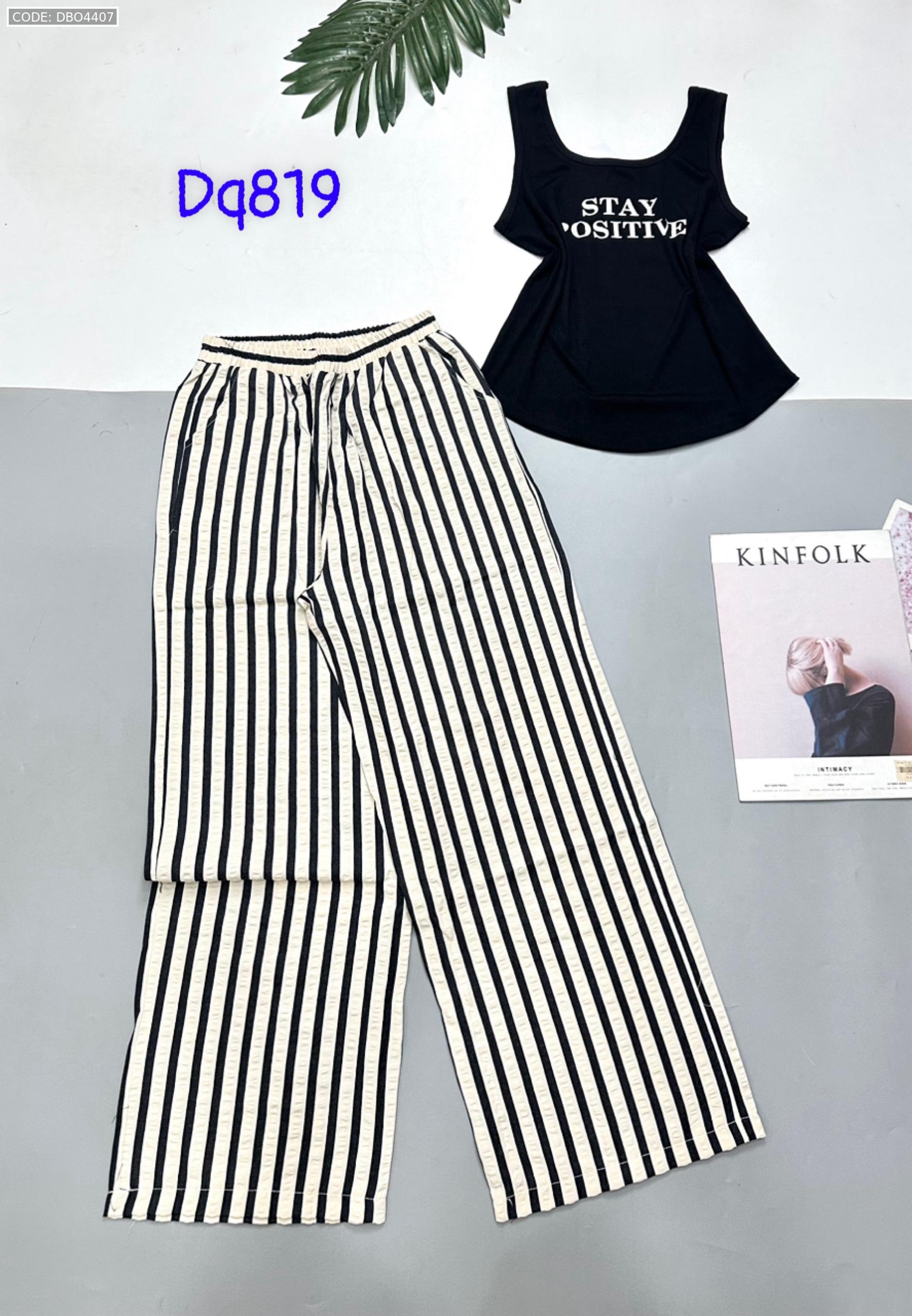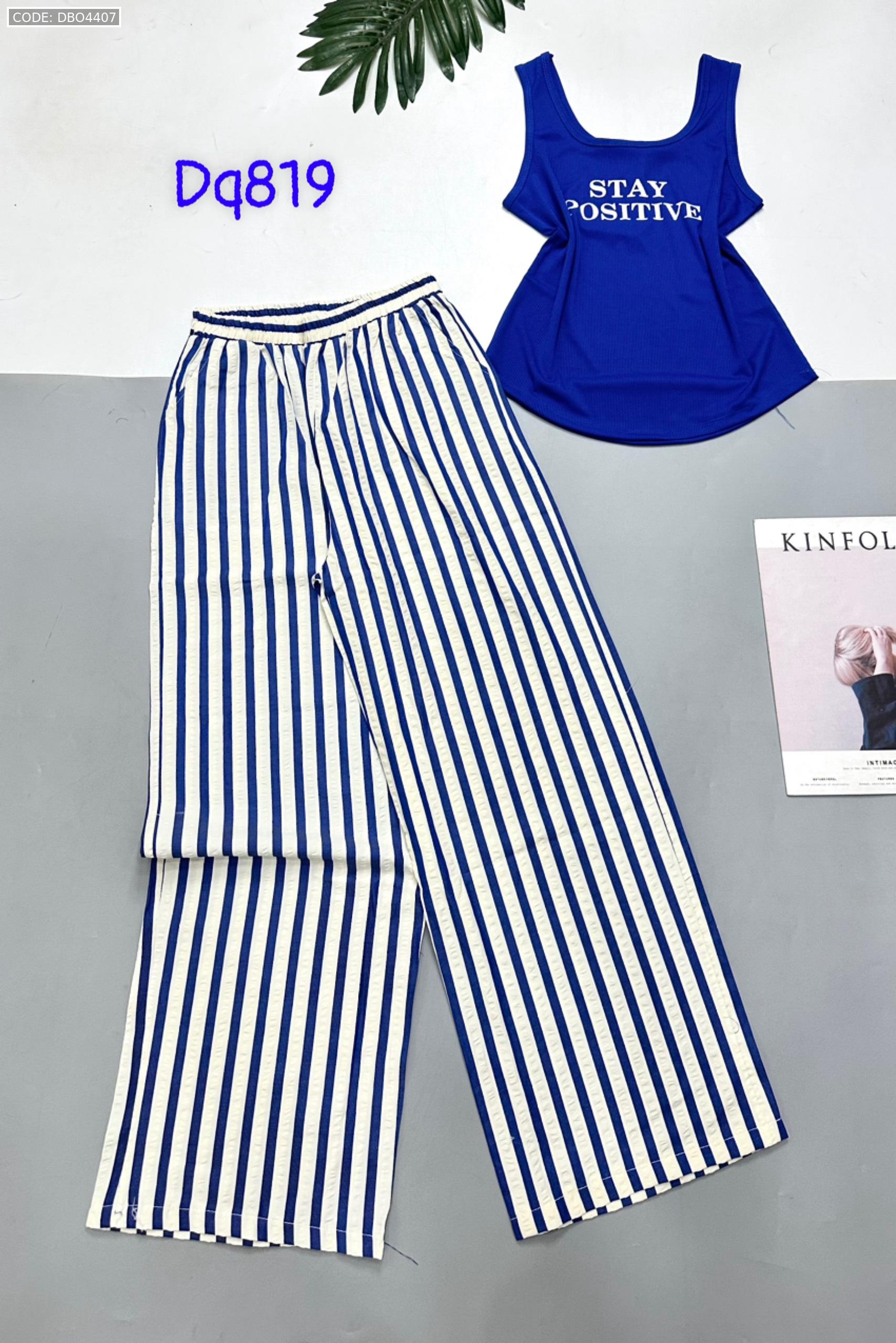 Đồ bộ quần dài sọc áo tay sát nách in chữ