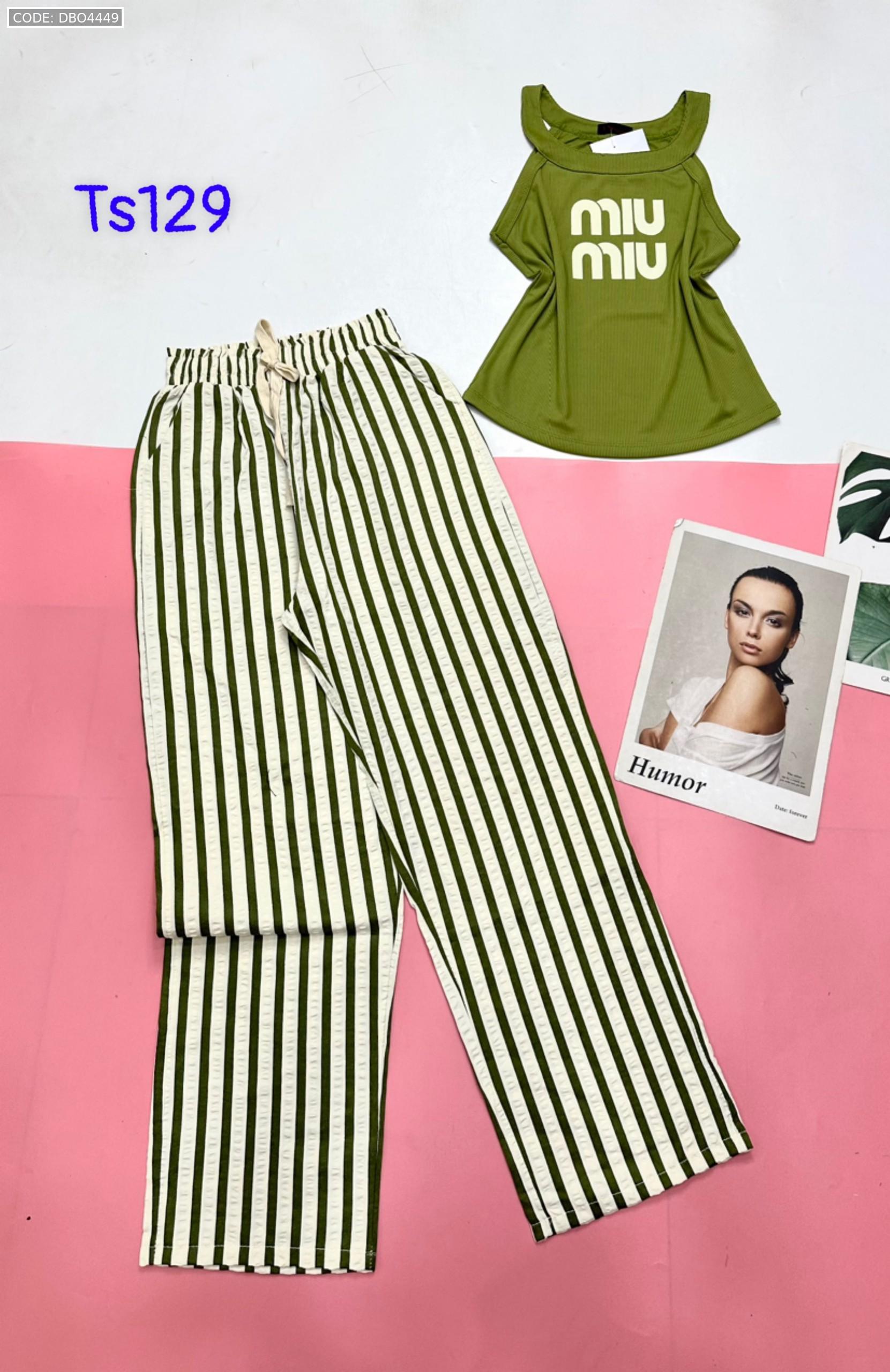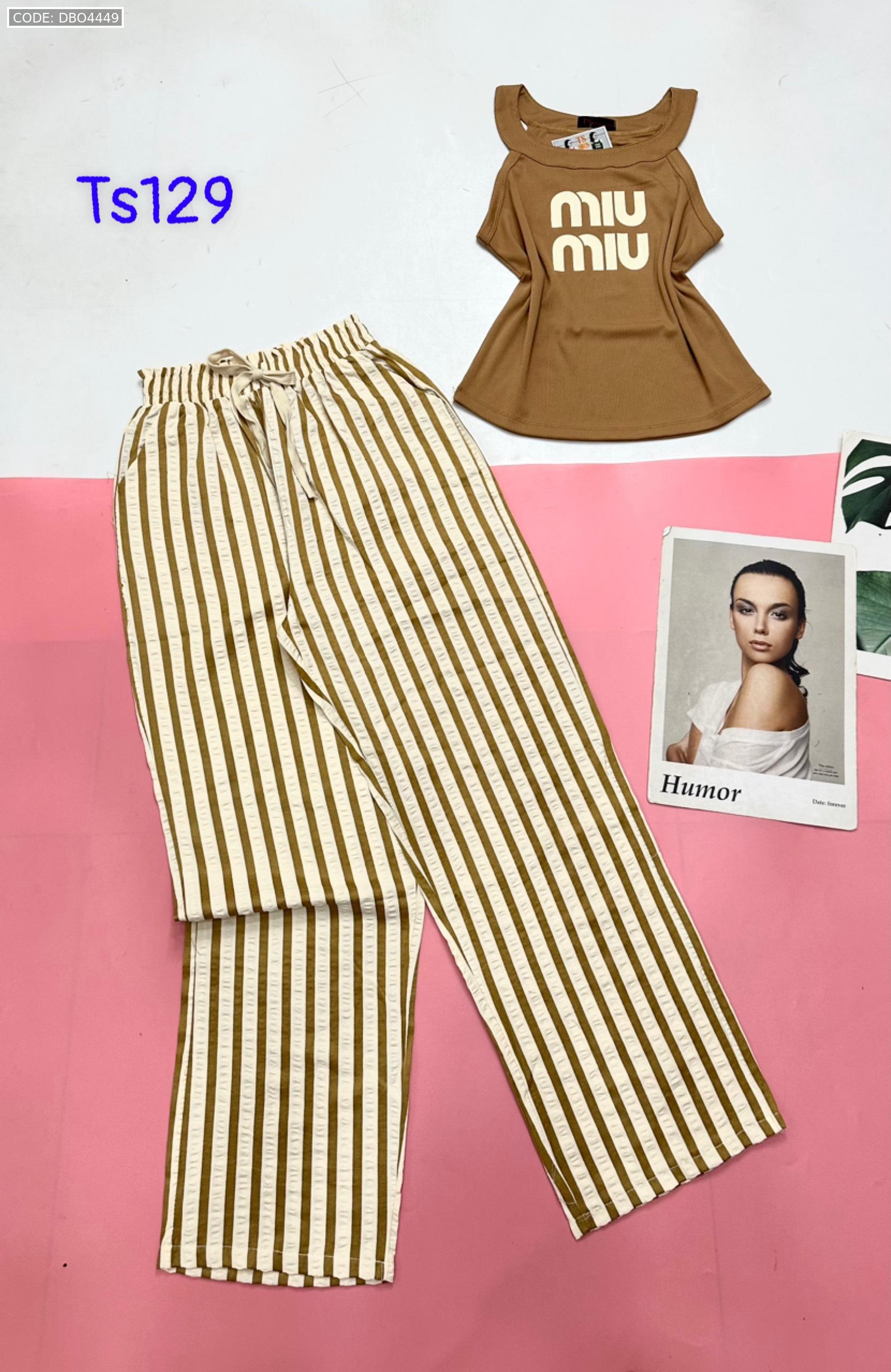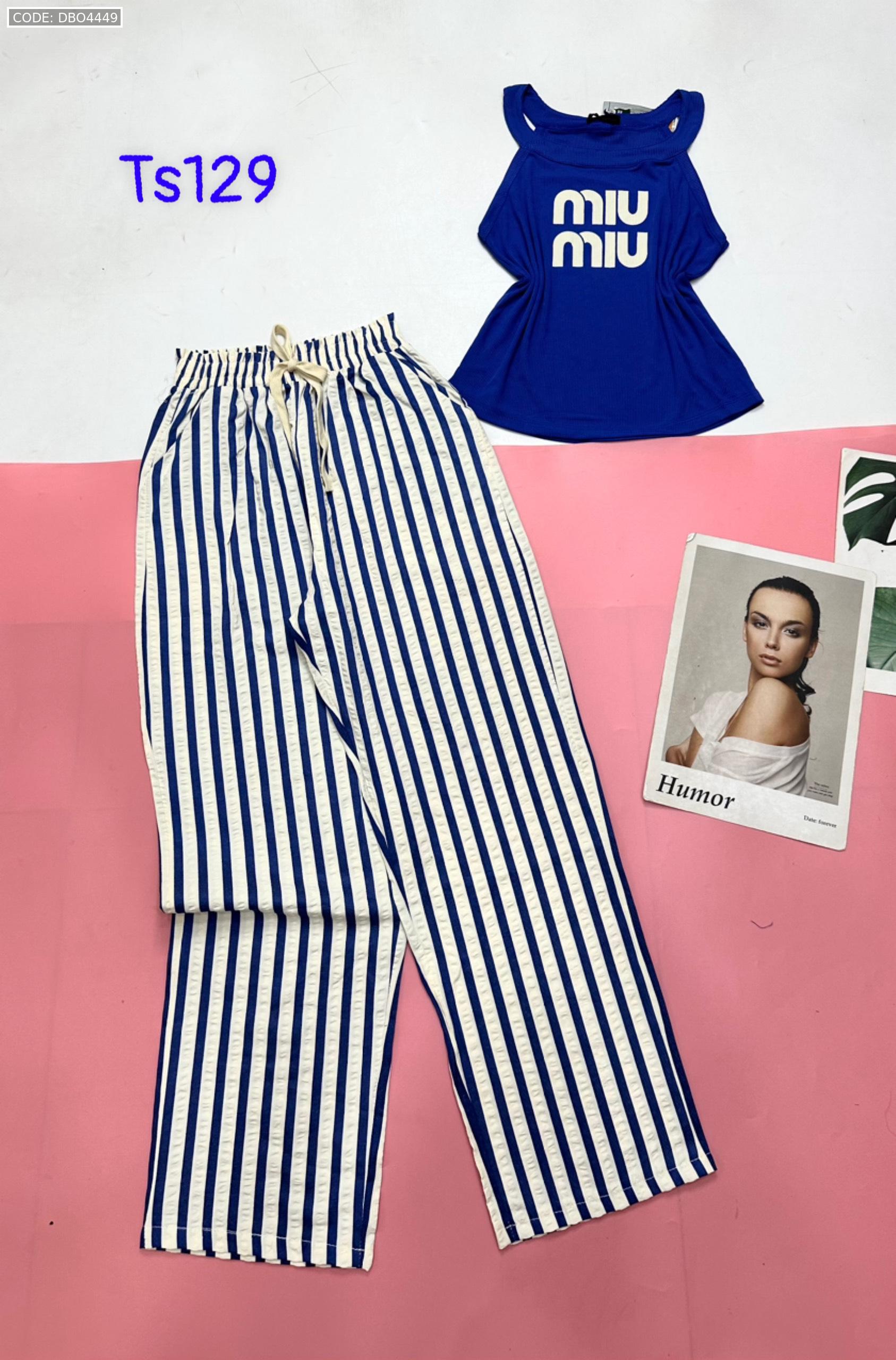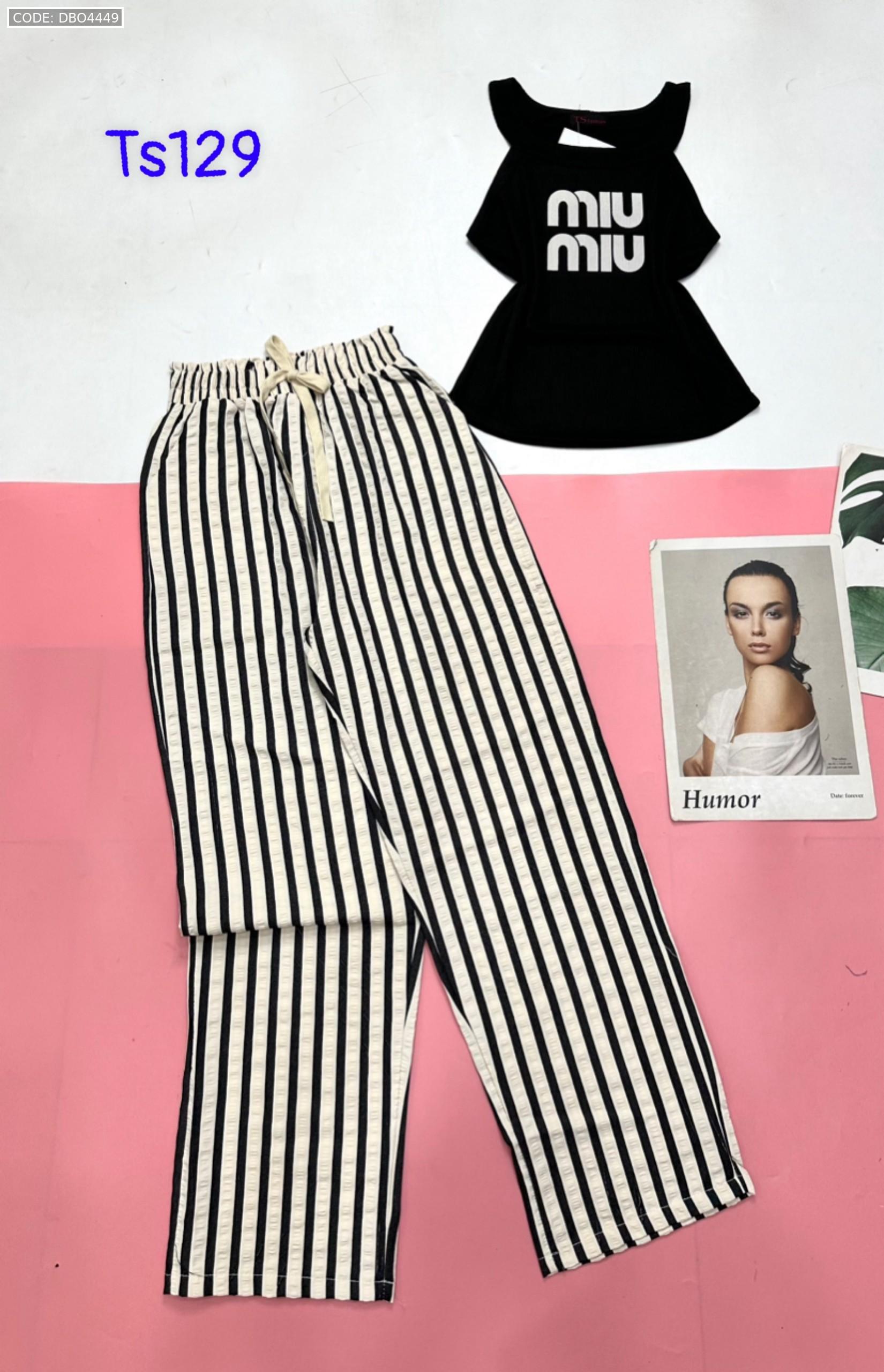 Đồ bộ quần dài sọc áo yếm in chữ