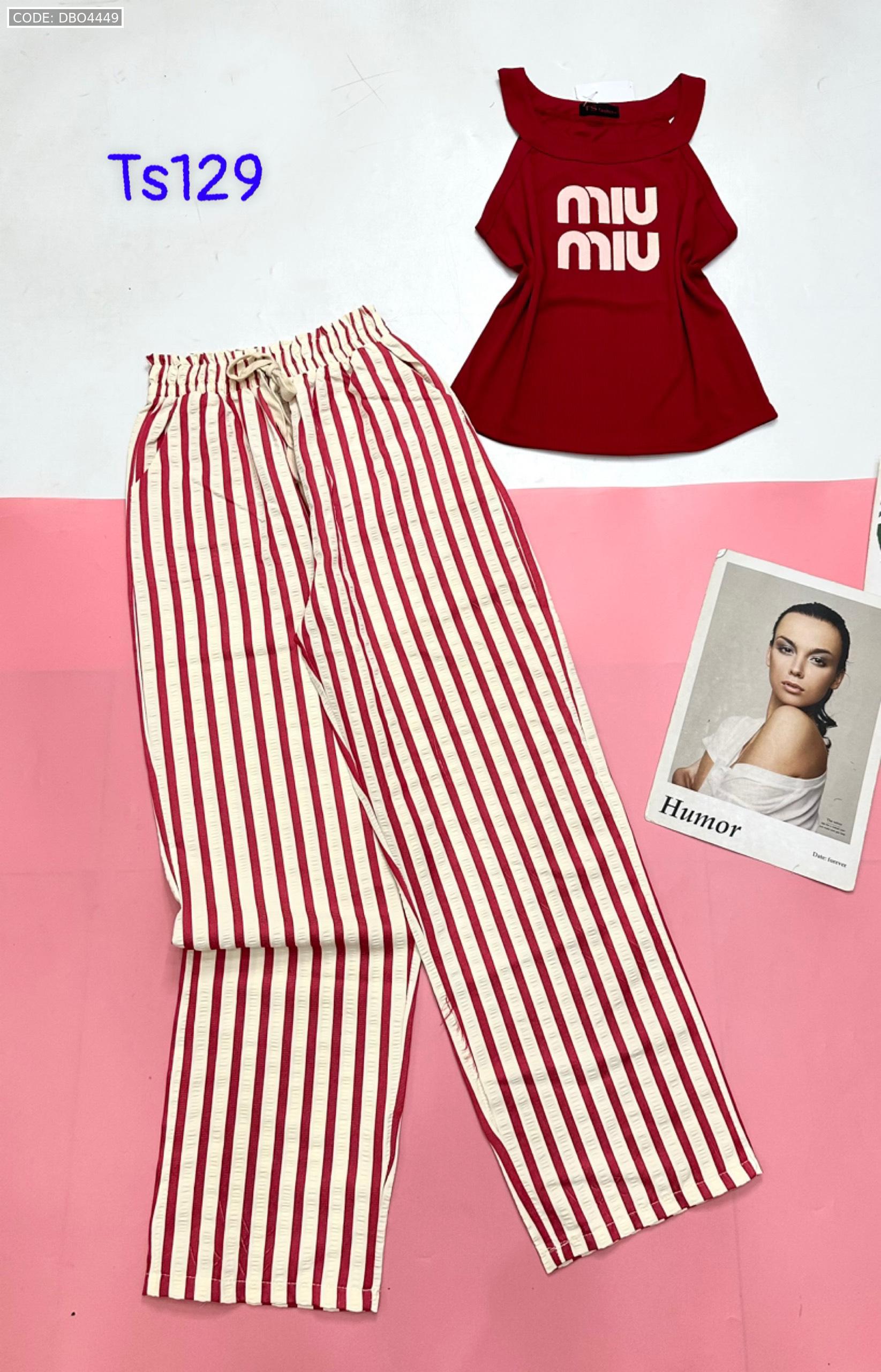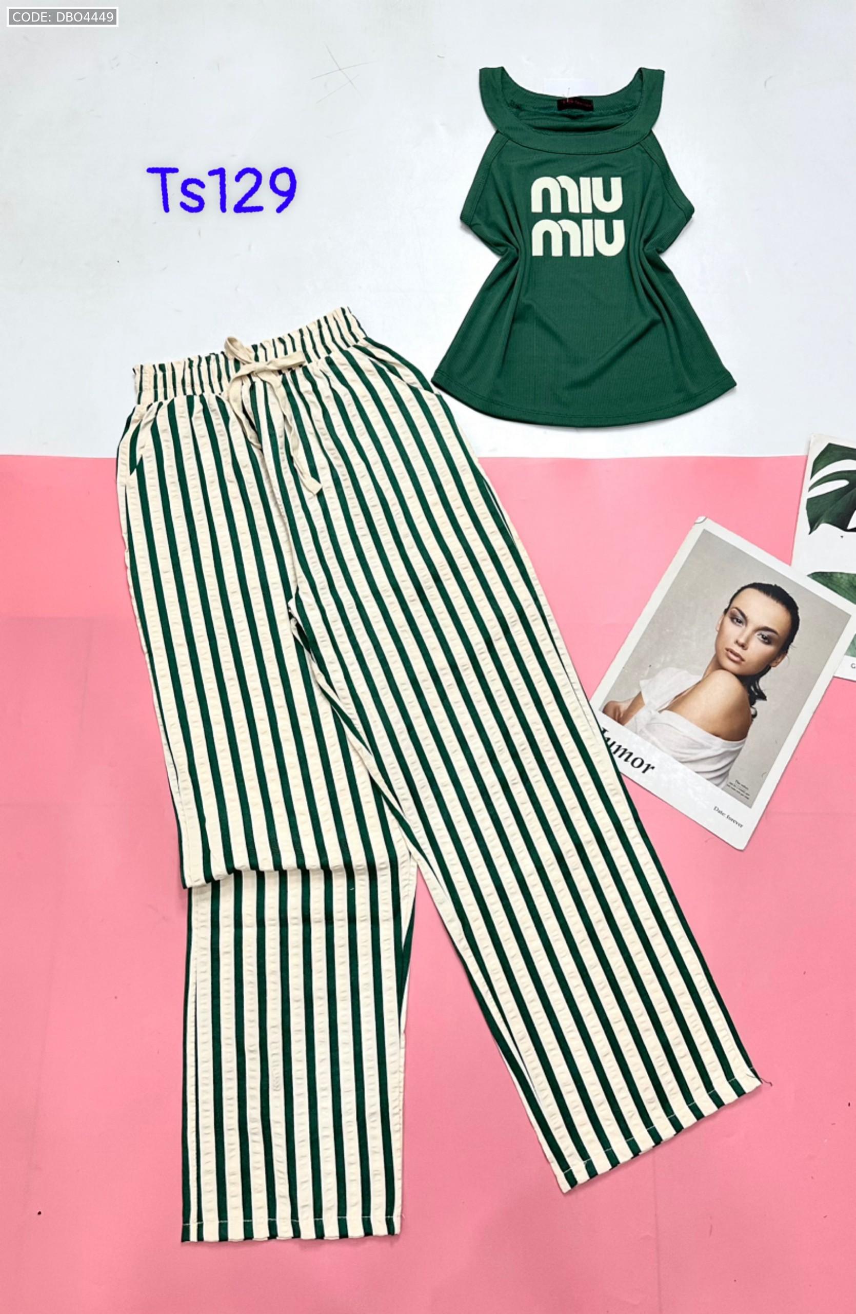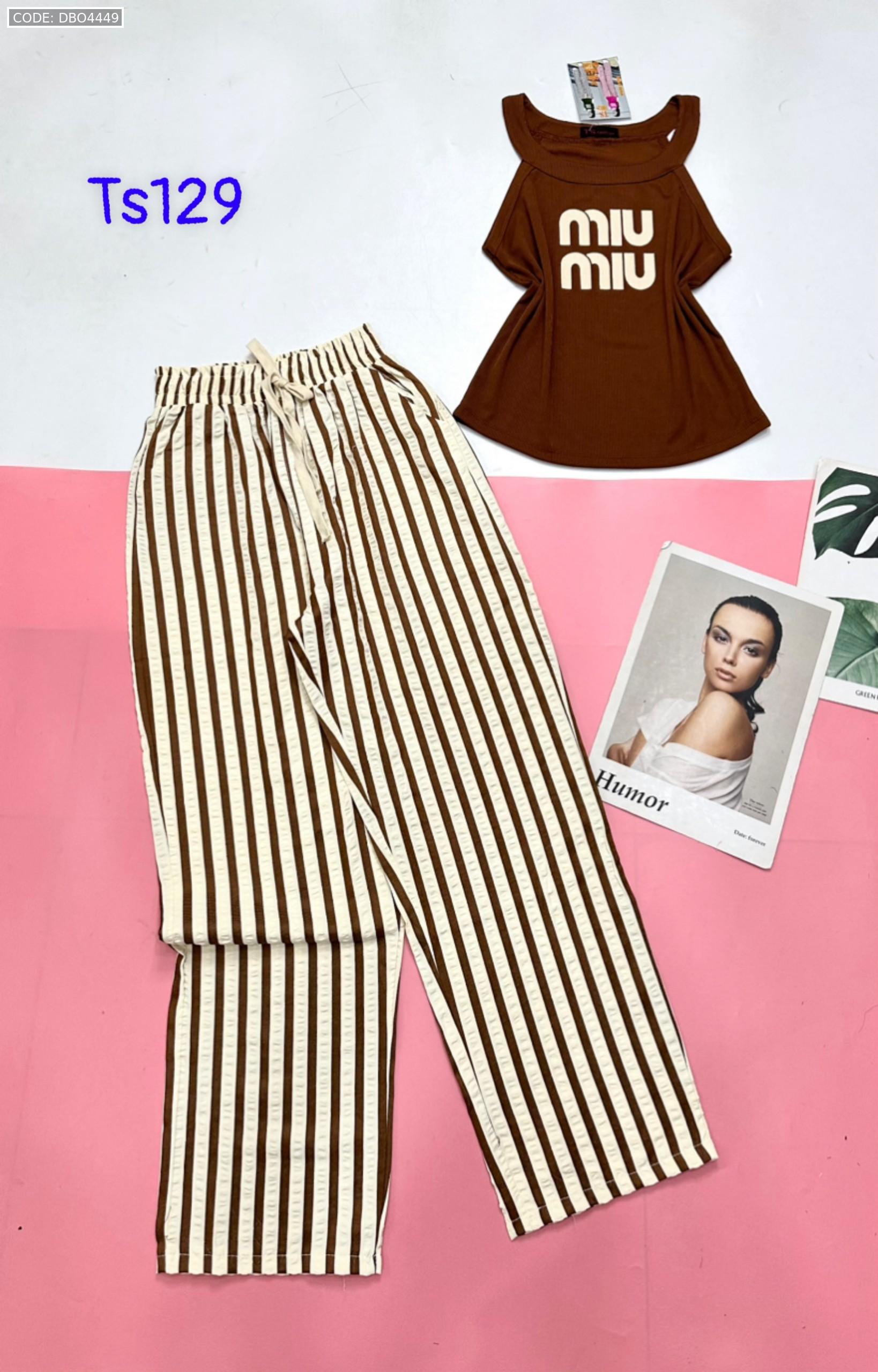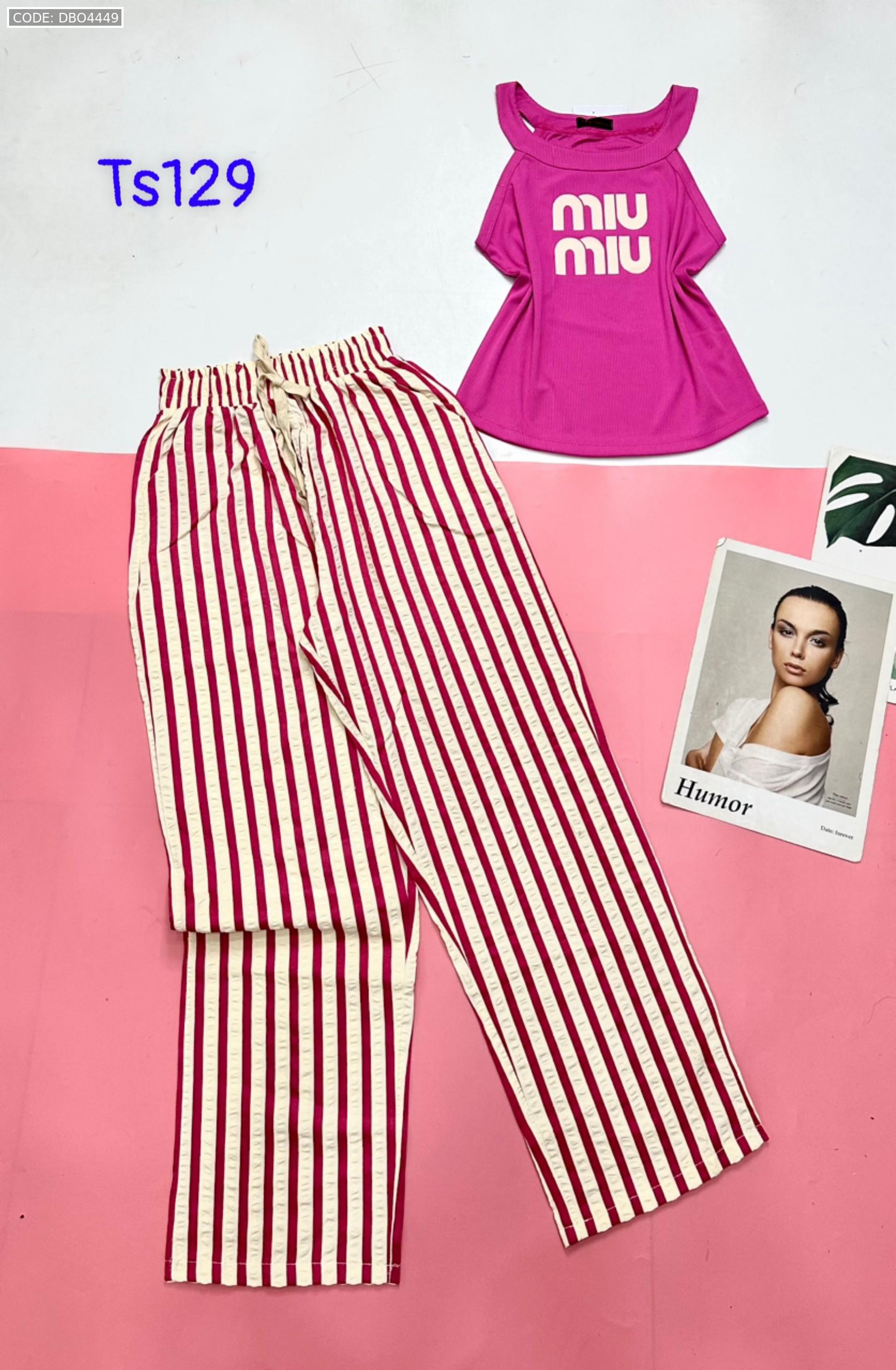 Đồ bộ quần dài sọc áo yếm in chữ