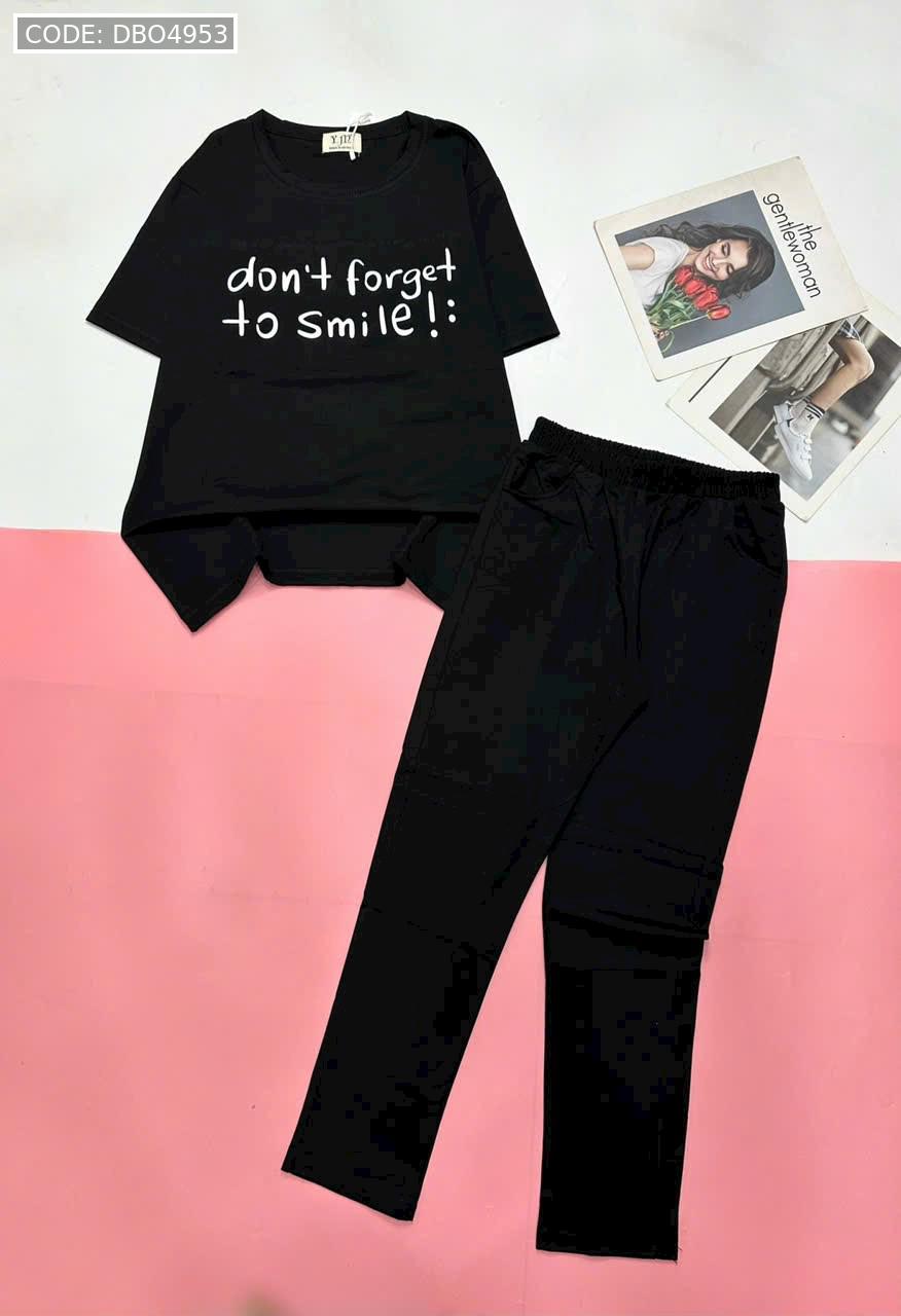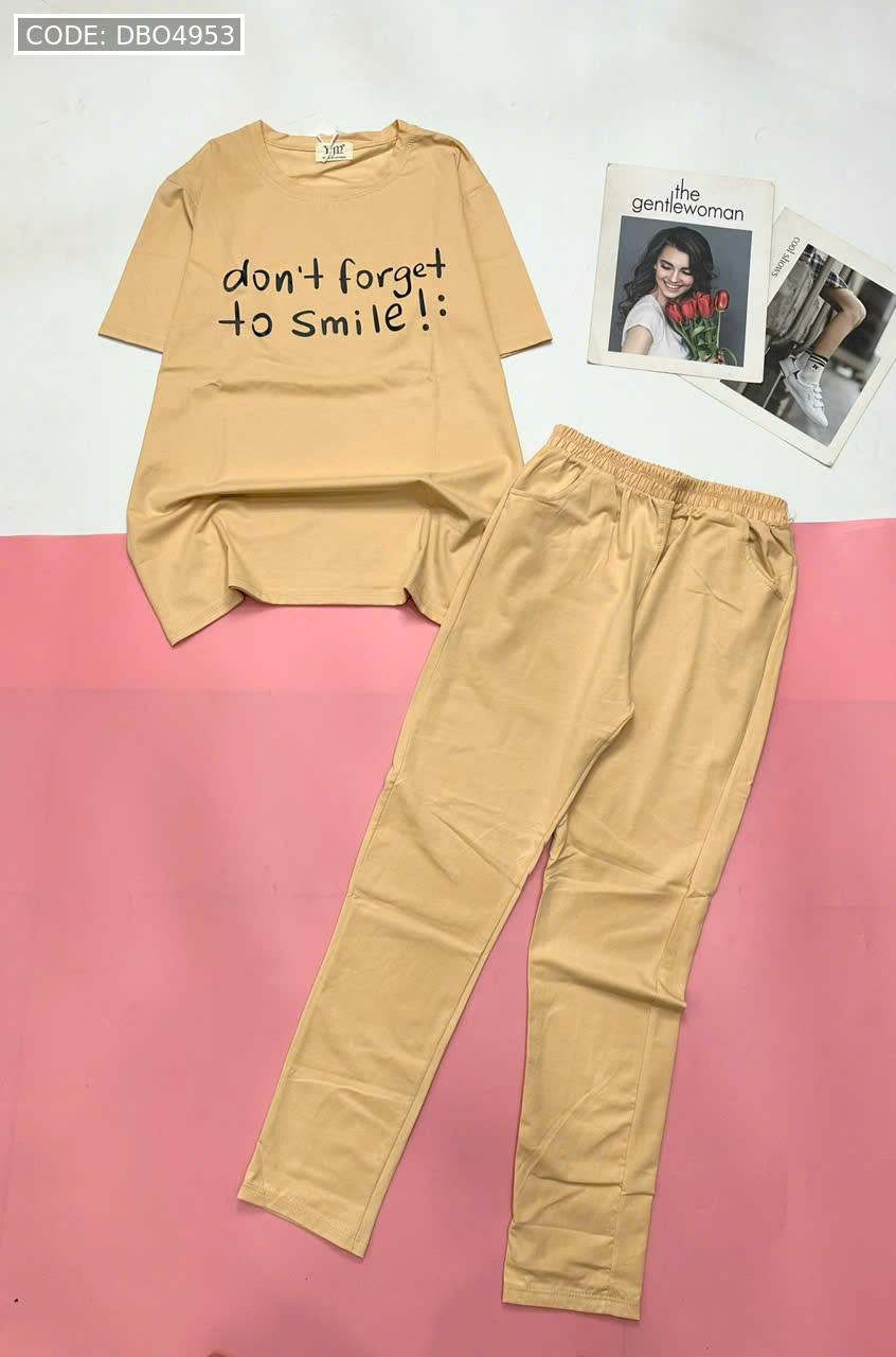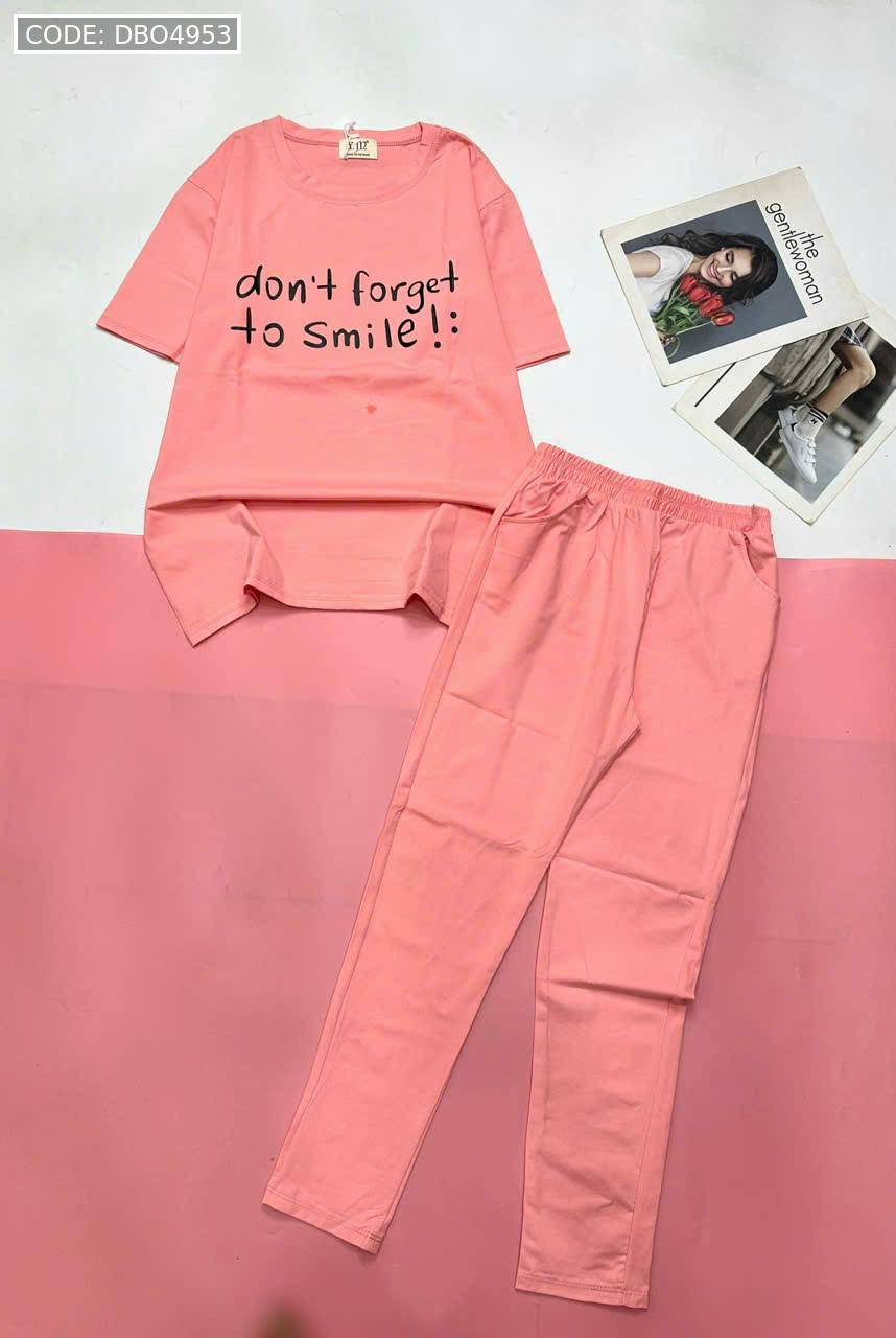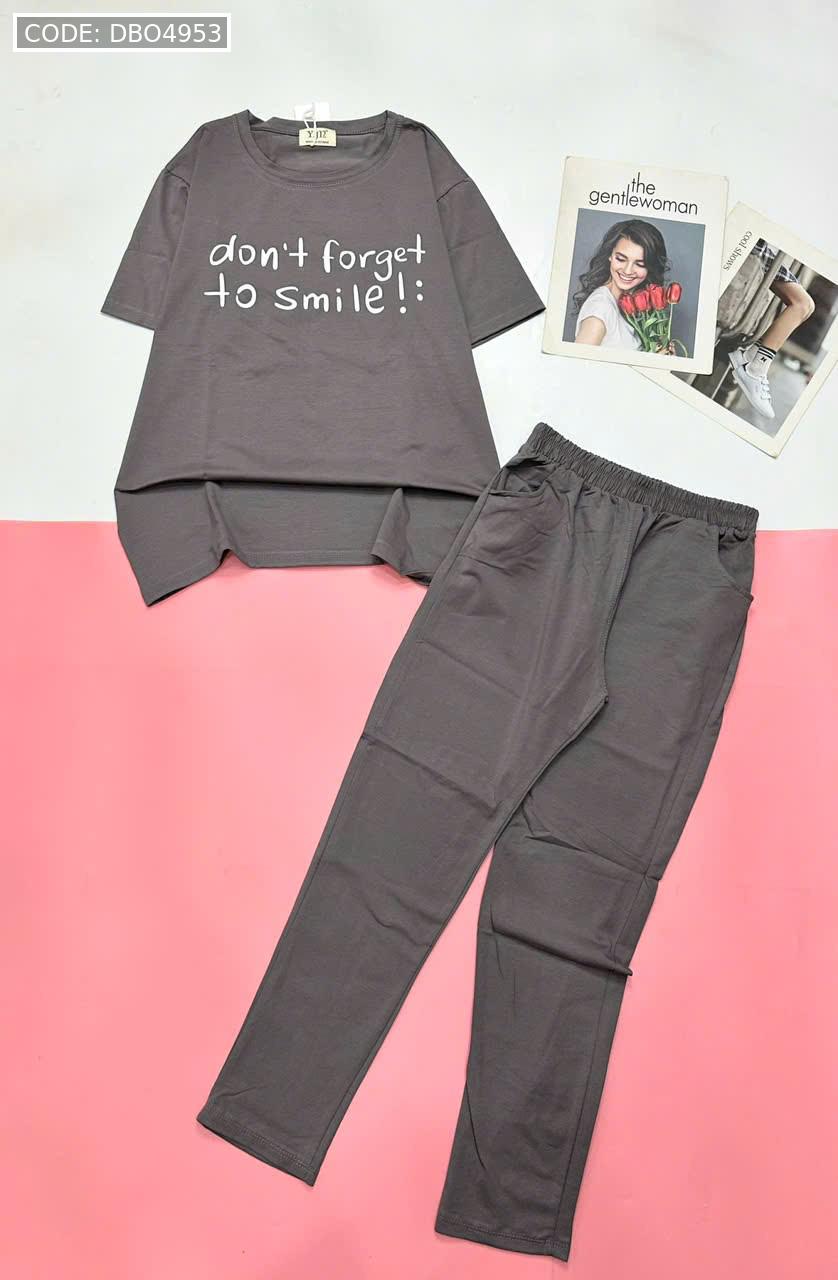 Đồ bộ quần dài thun áo tay ngắn in nhiều chữ