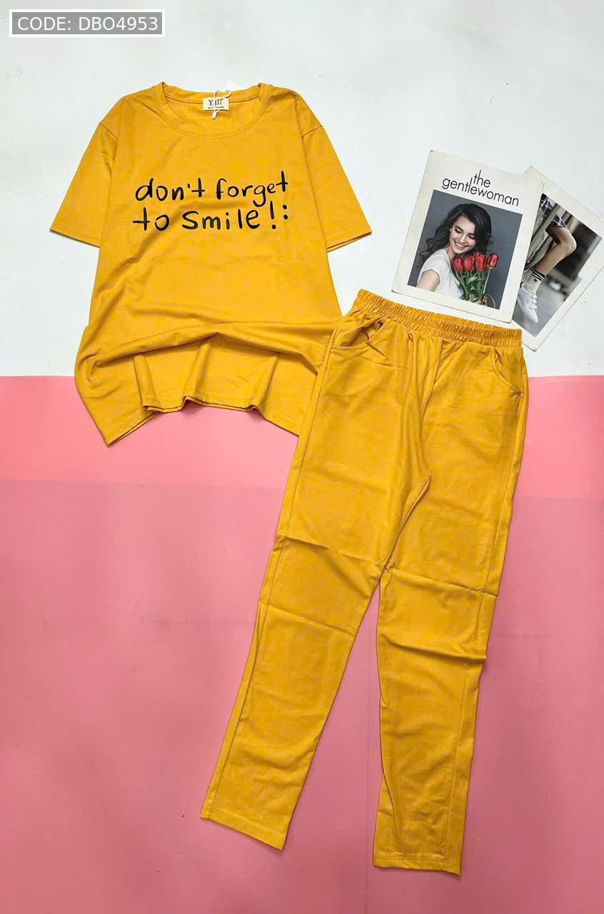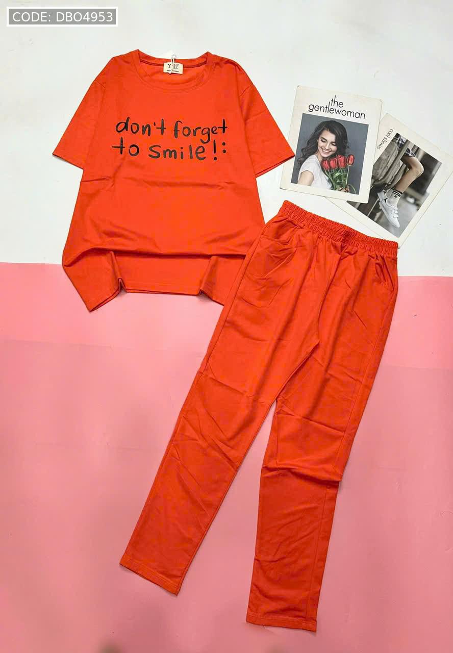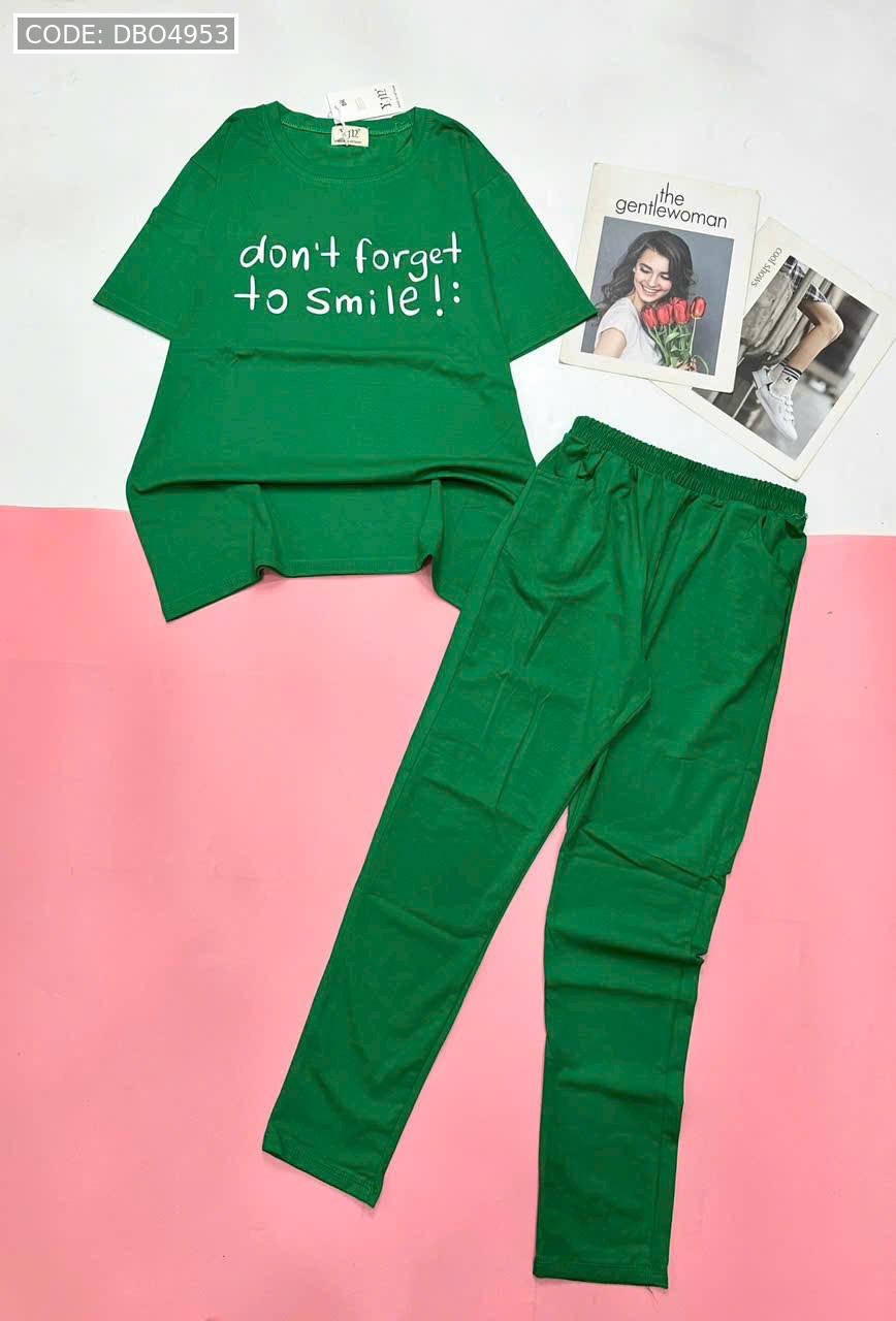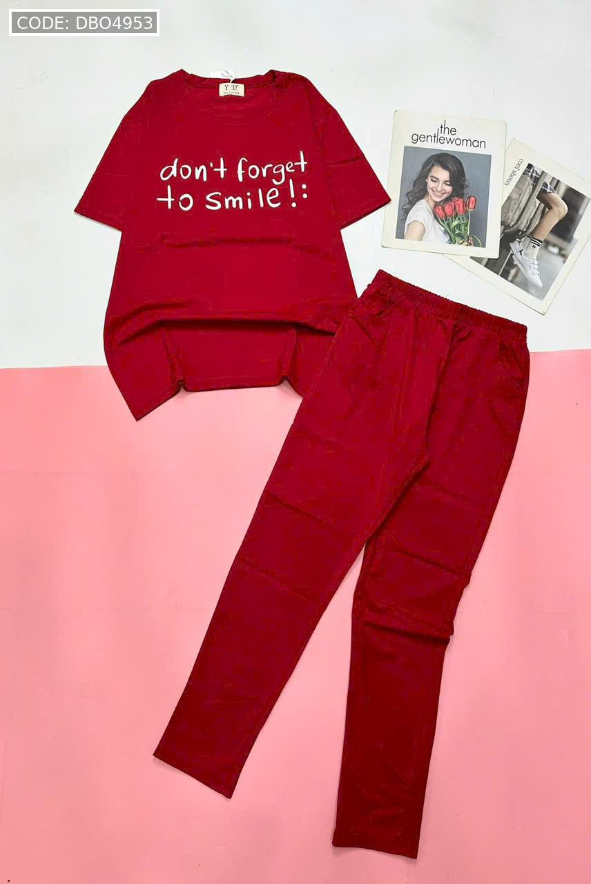 Đồ bộ quần dài thun áo tay ngắn in nhiều chữ