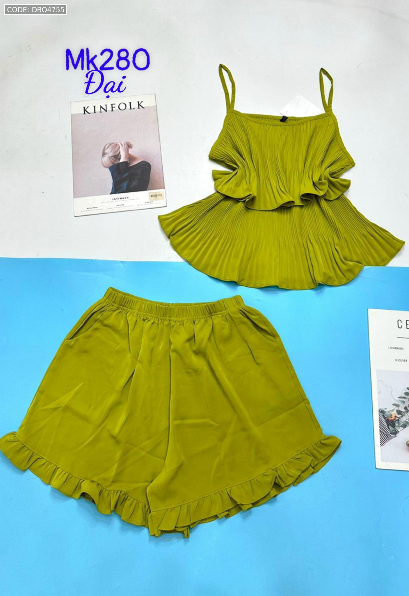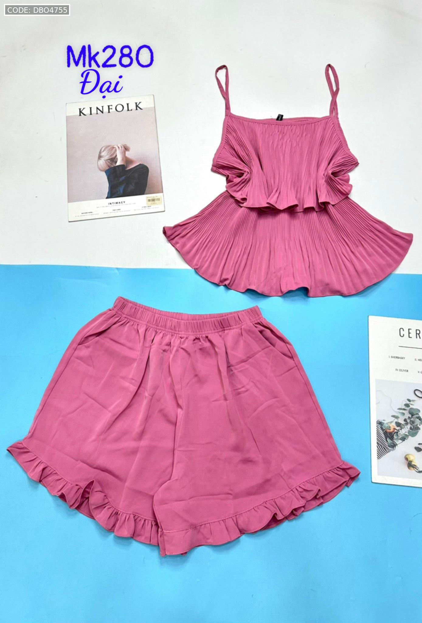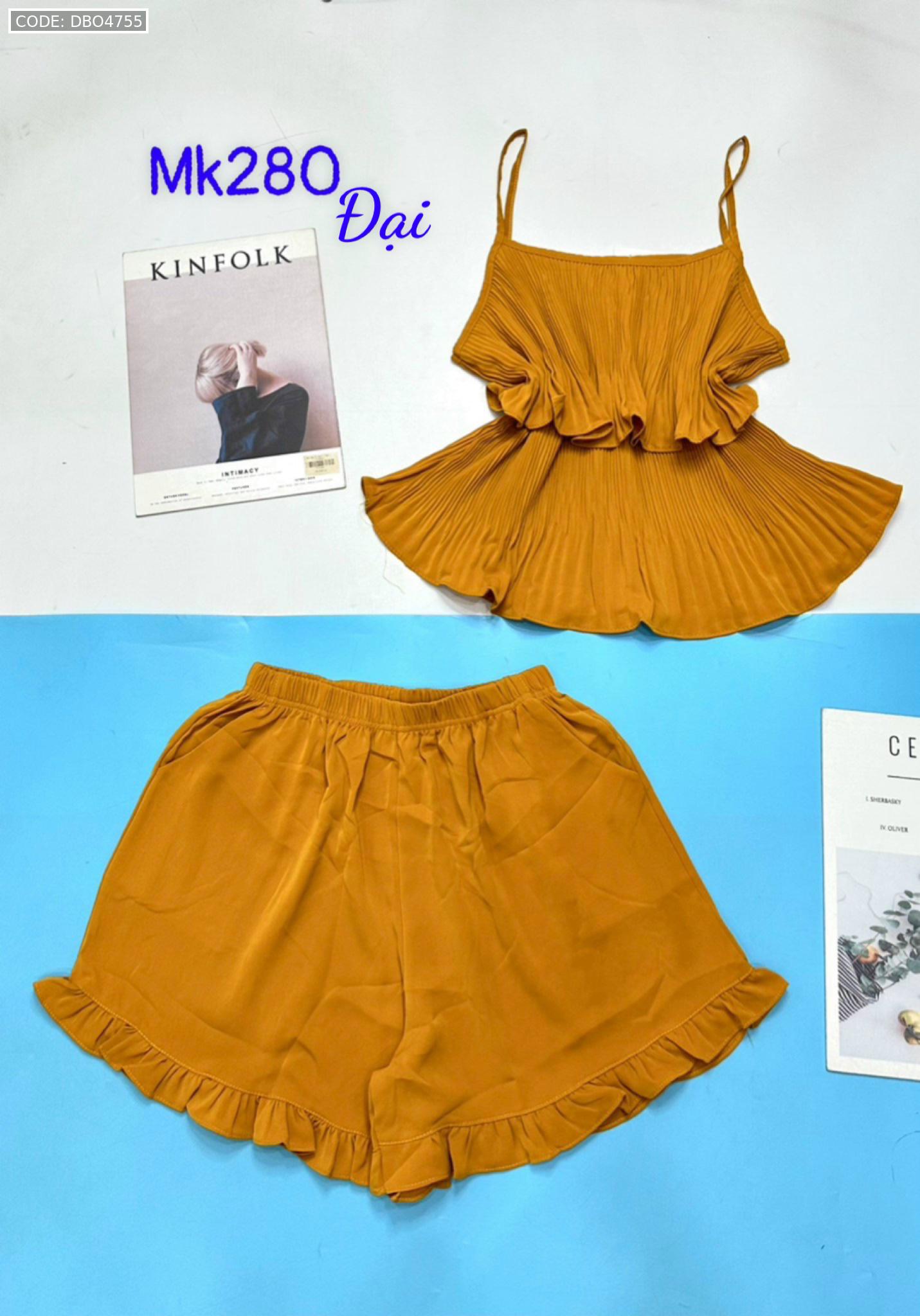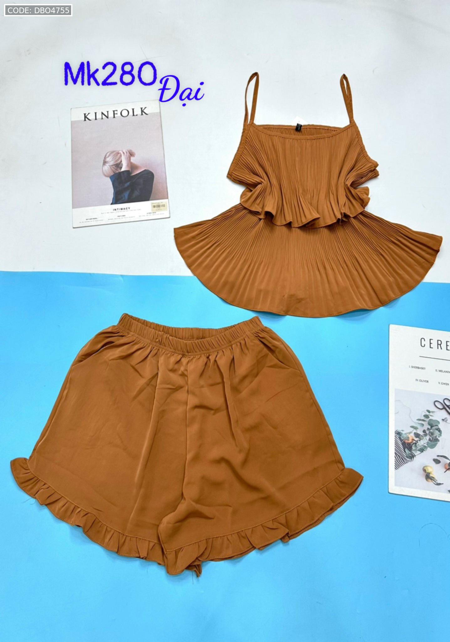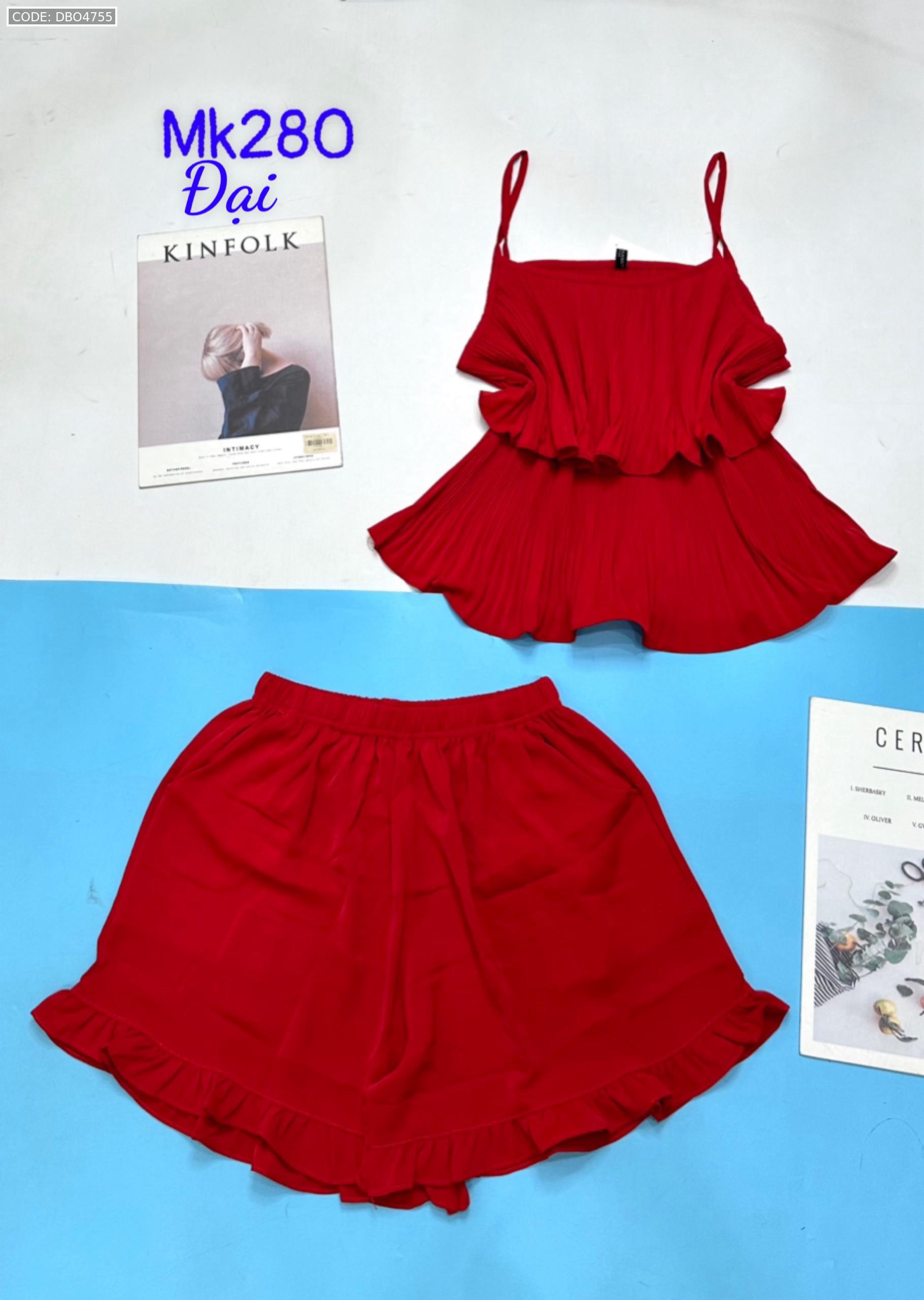 Đồ bộ quần đùi áo 2 dây 2 tầng màu trơn size đại