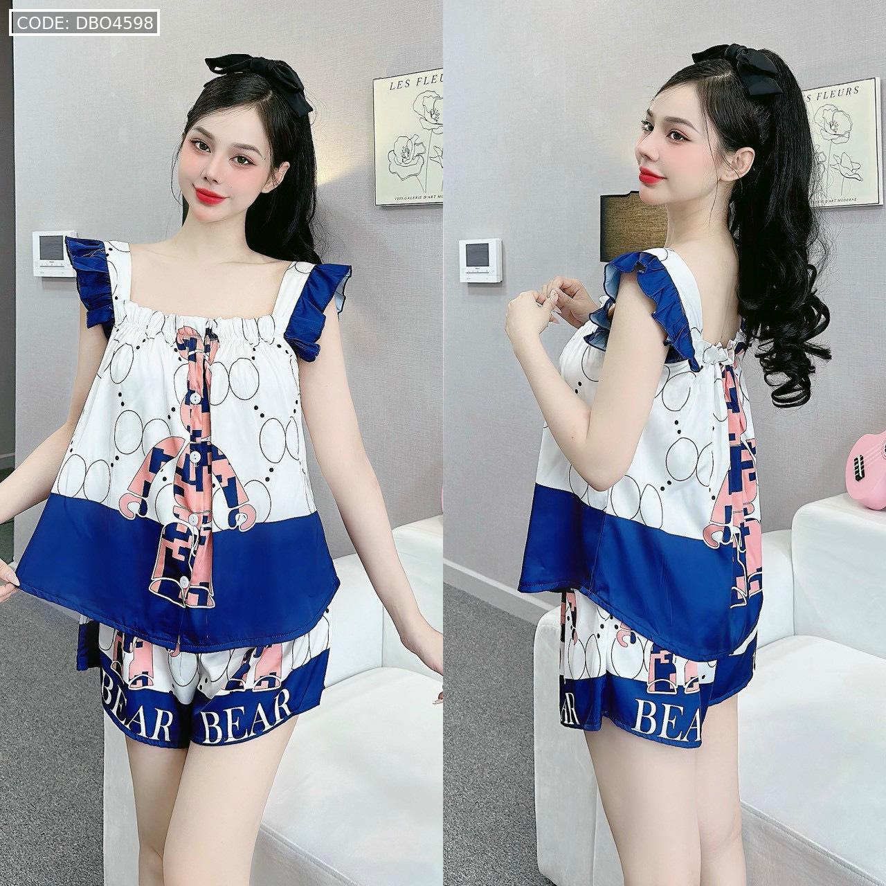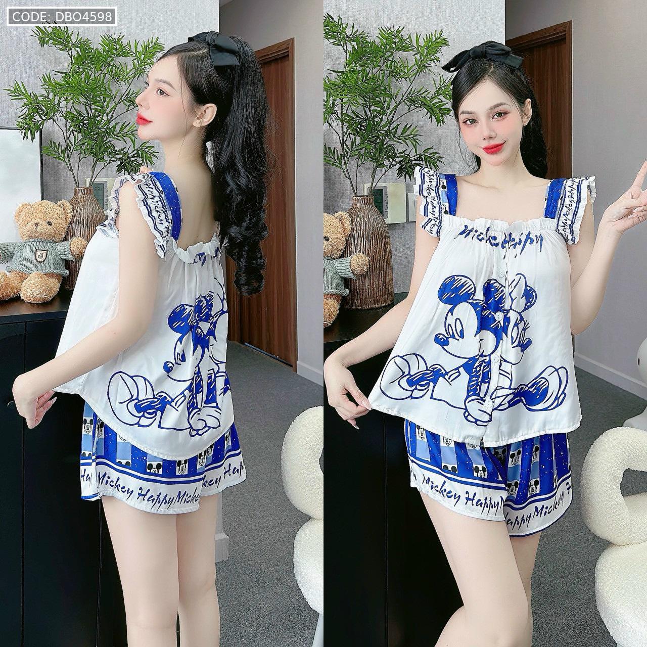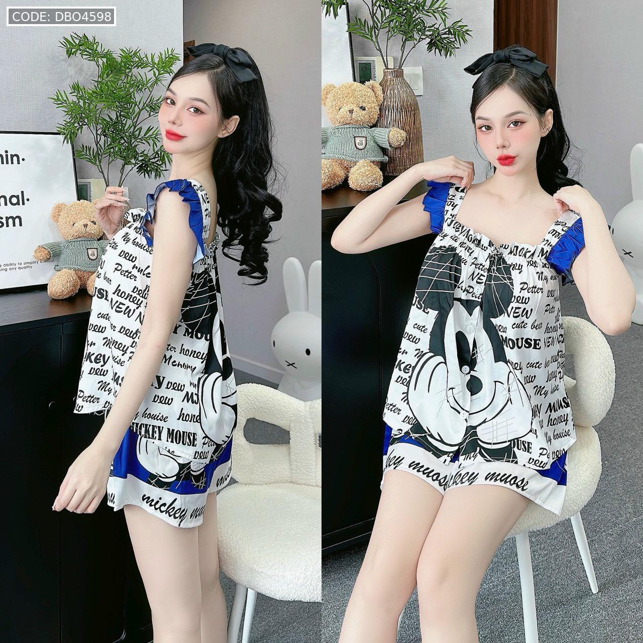 Đồ bộ quần đùi áo dây bảng bèo in nhiều hình thú dễ thương