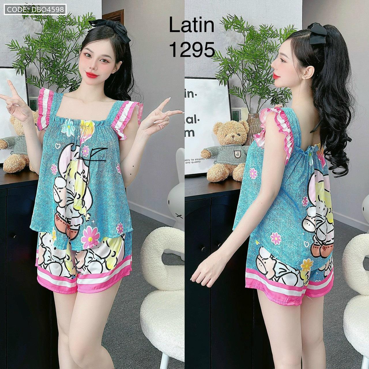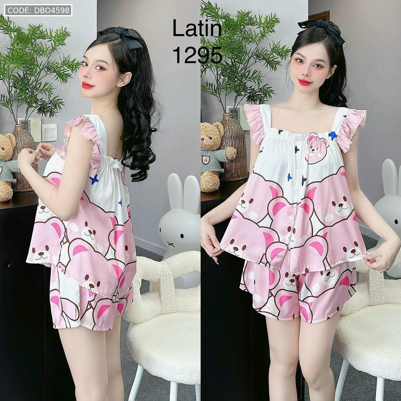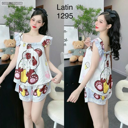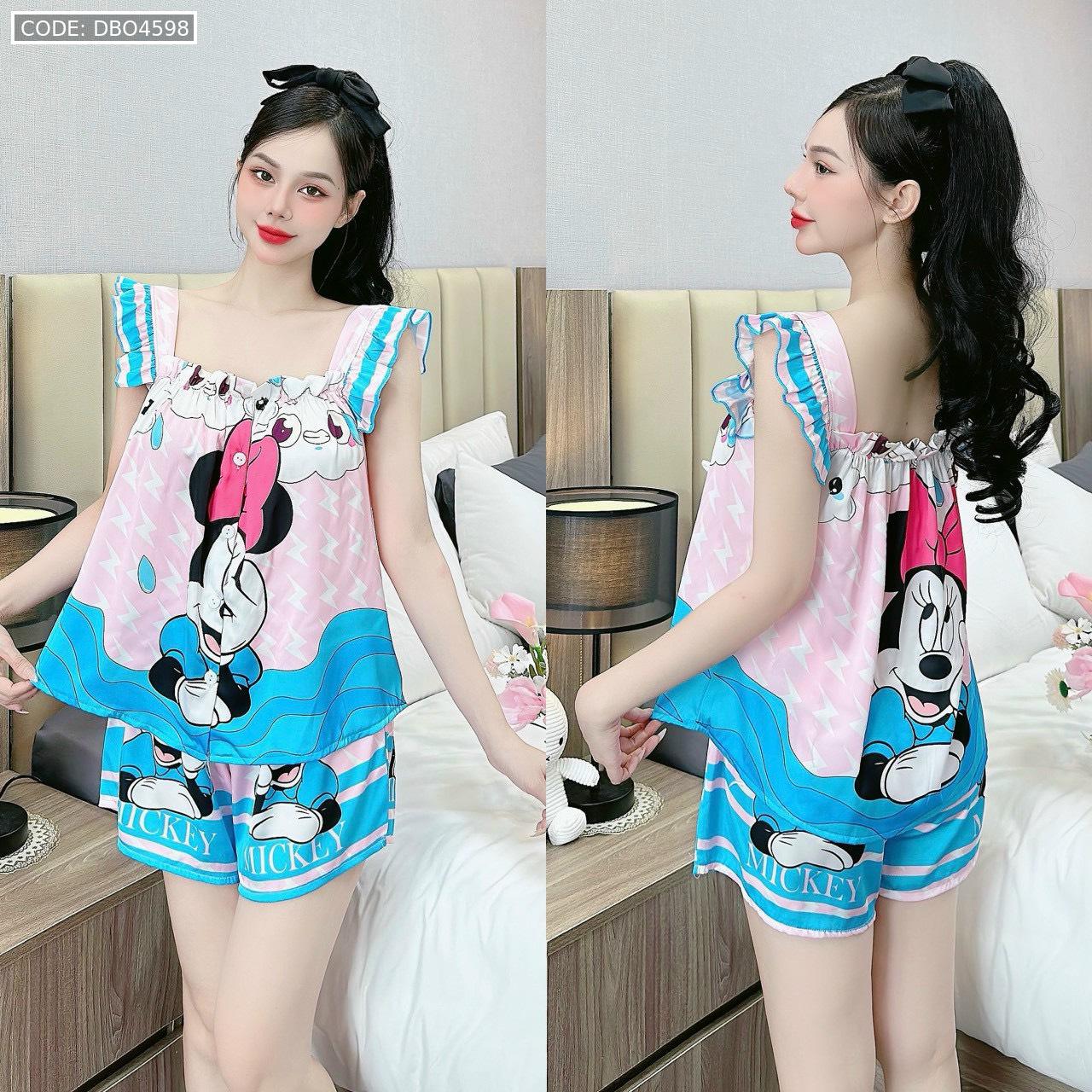 Đồ bộ quần đùi áo dây bảng bèo in nhiều hình thú dễ thương