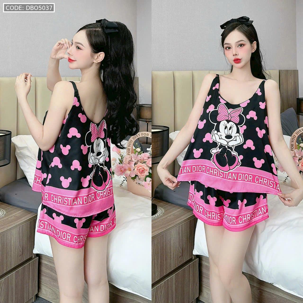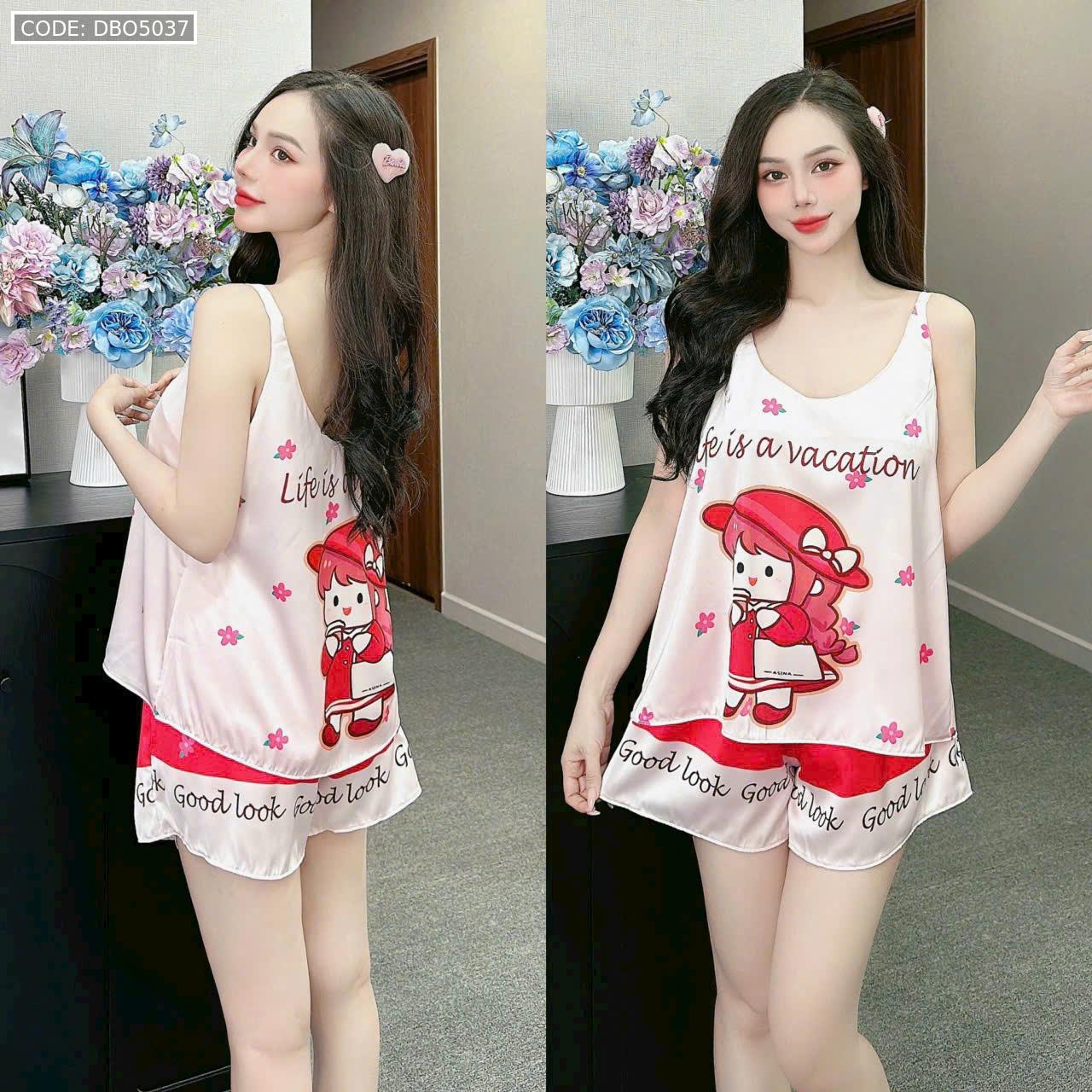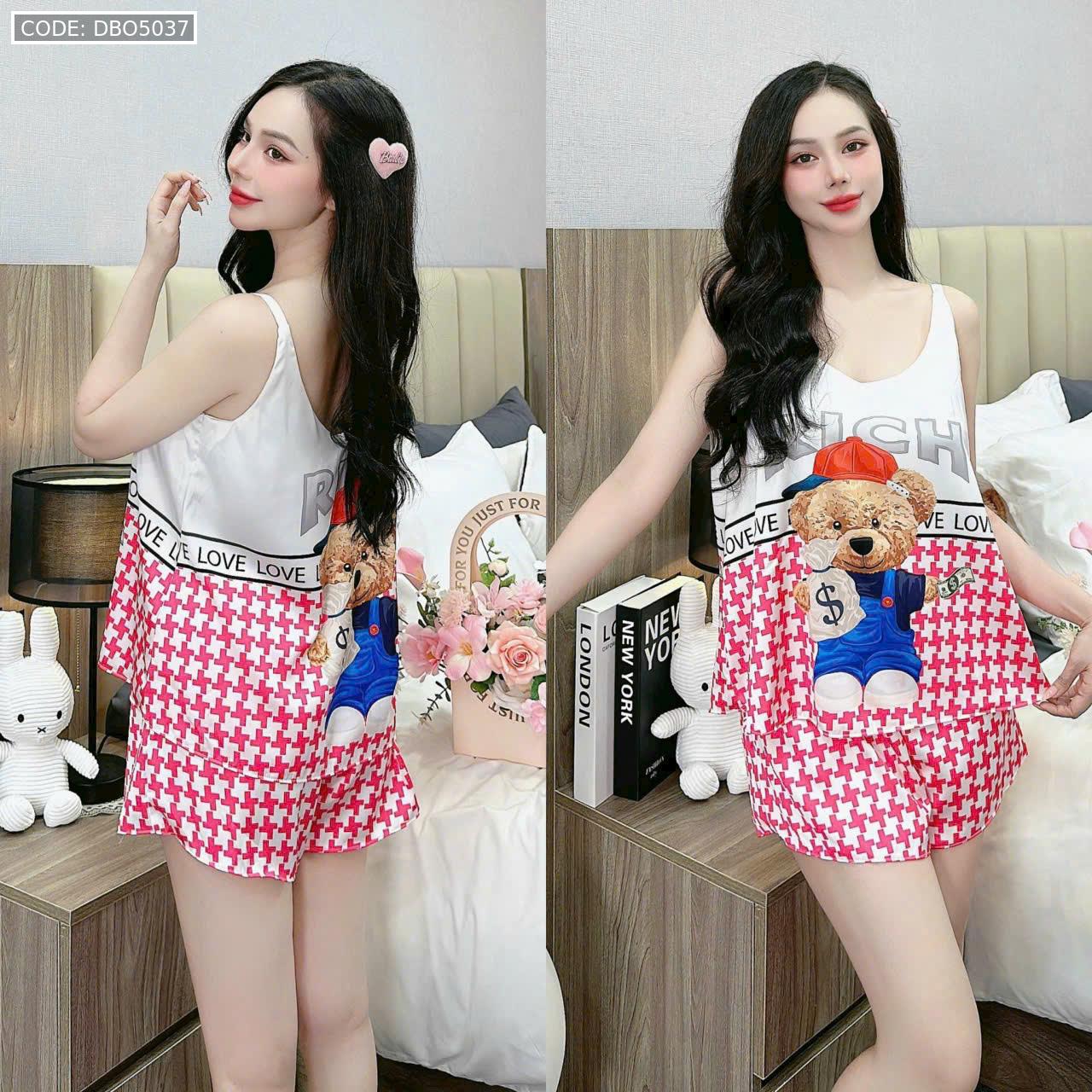 Đồ bộ quần đùi áo hai dây 2 tầng nhiều hình dễ thương