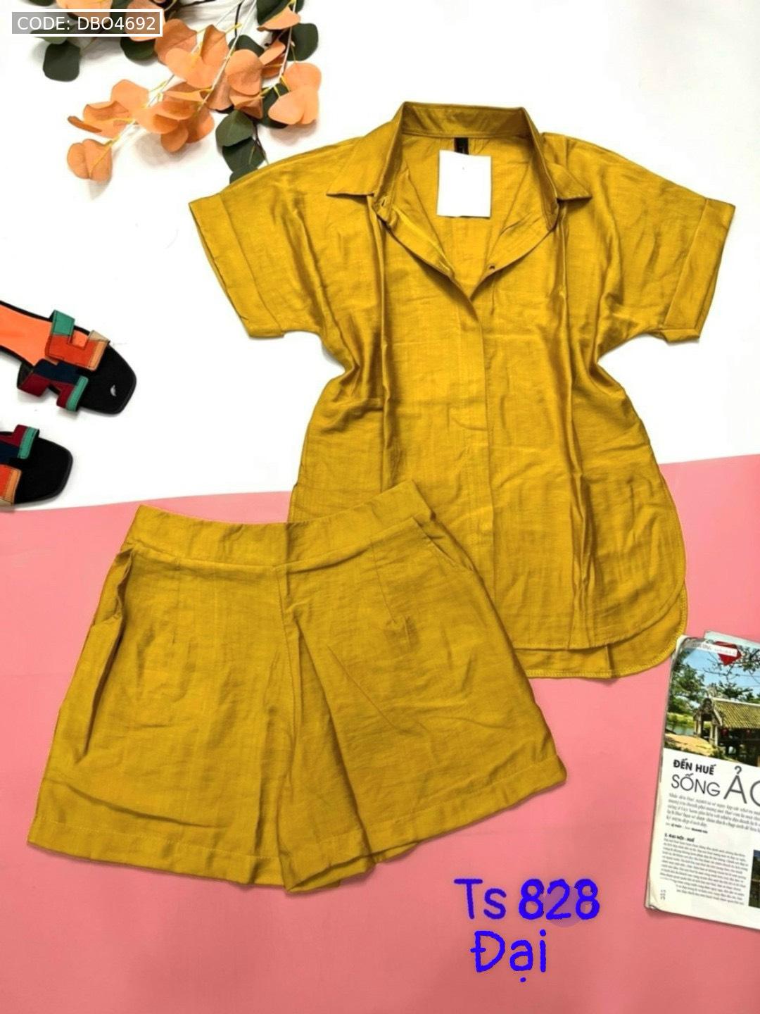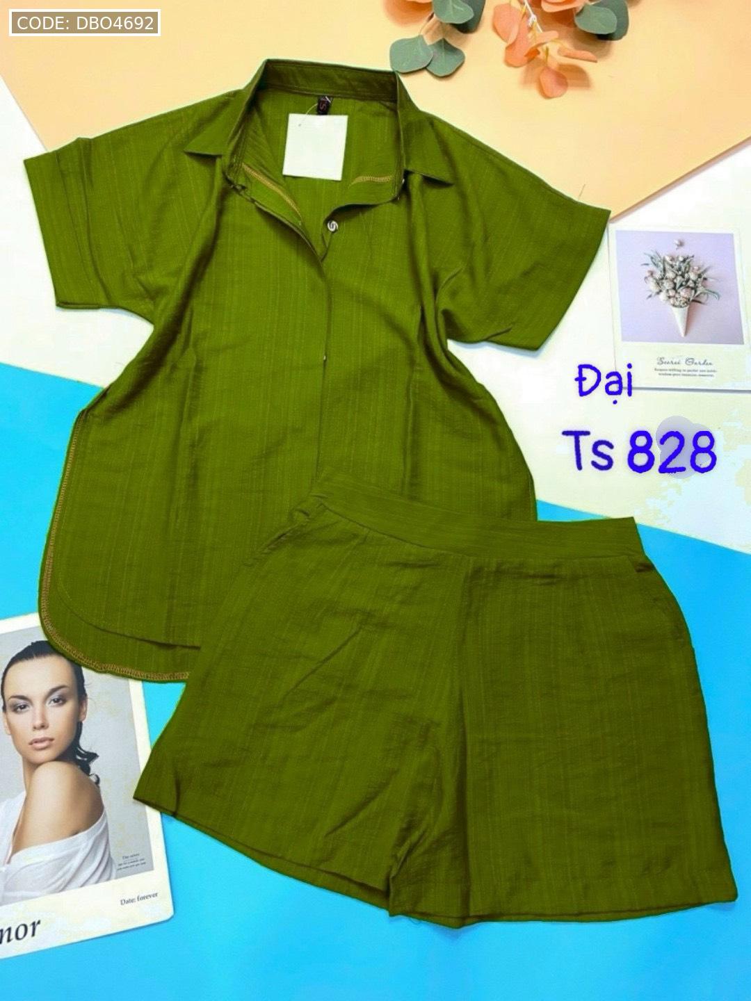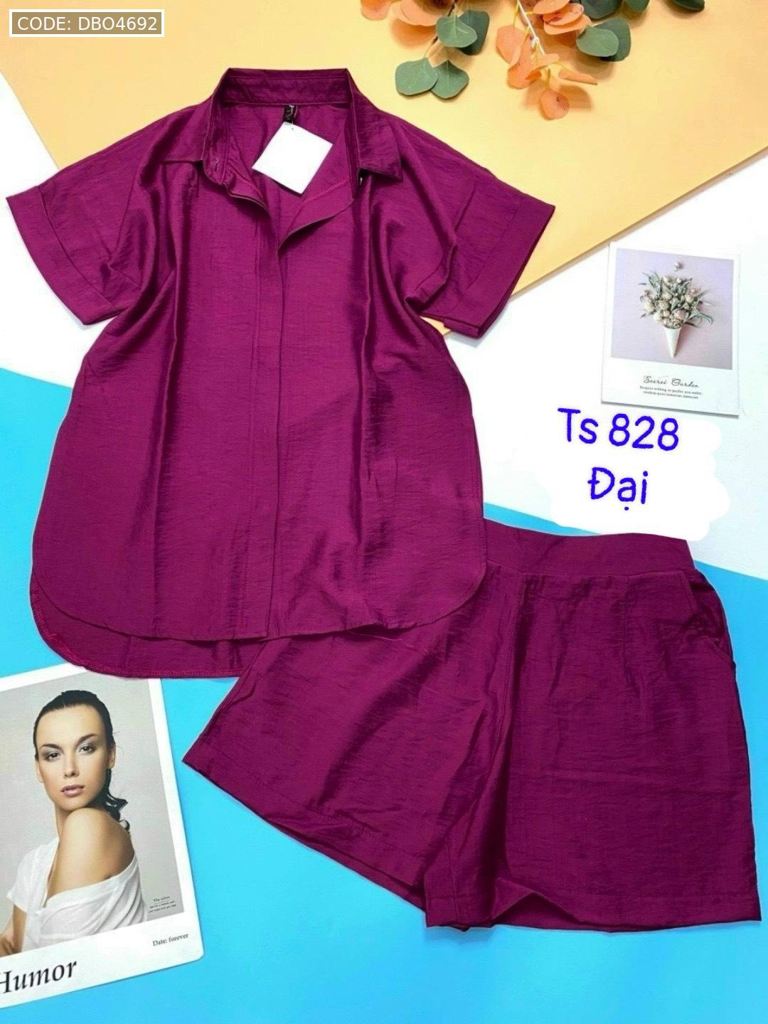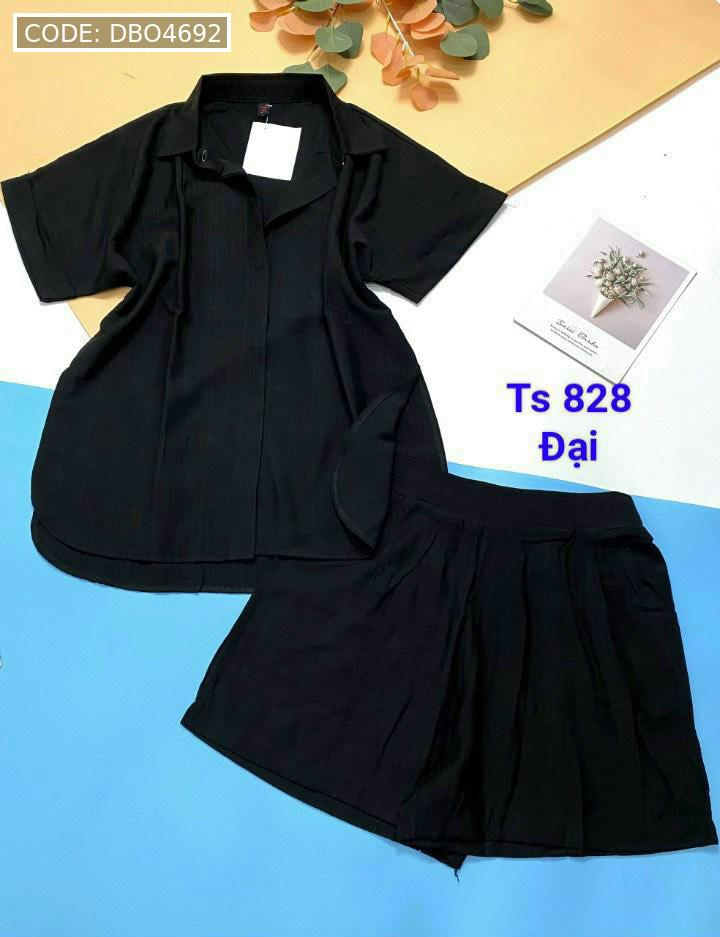 Đồ bộ quần đùi áo sơ mi tay ngắn cổ bẻ trơn