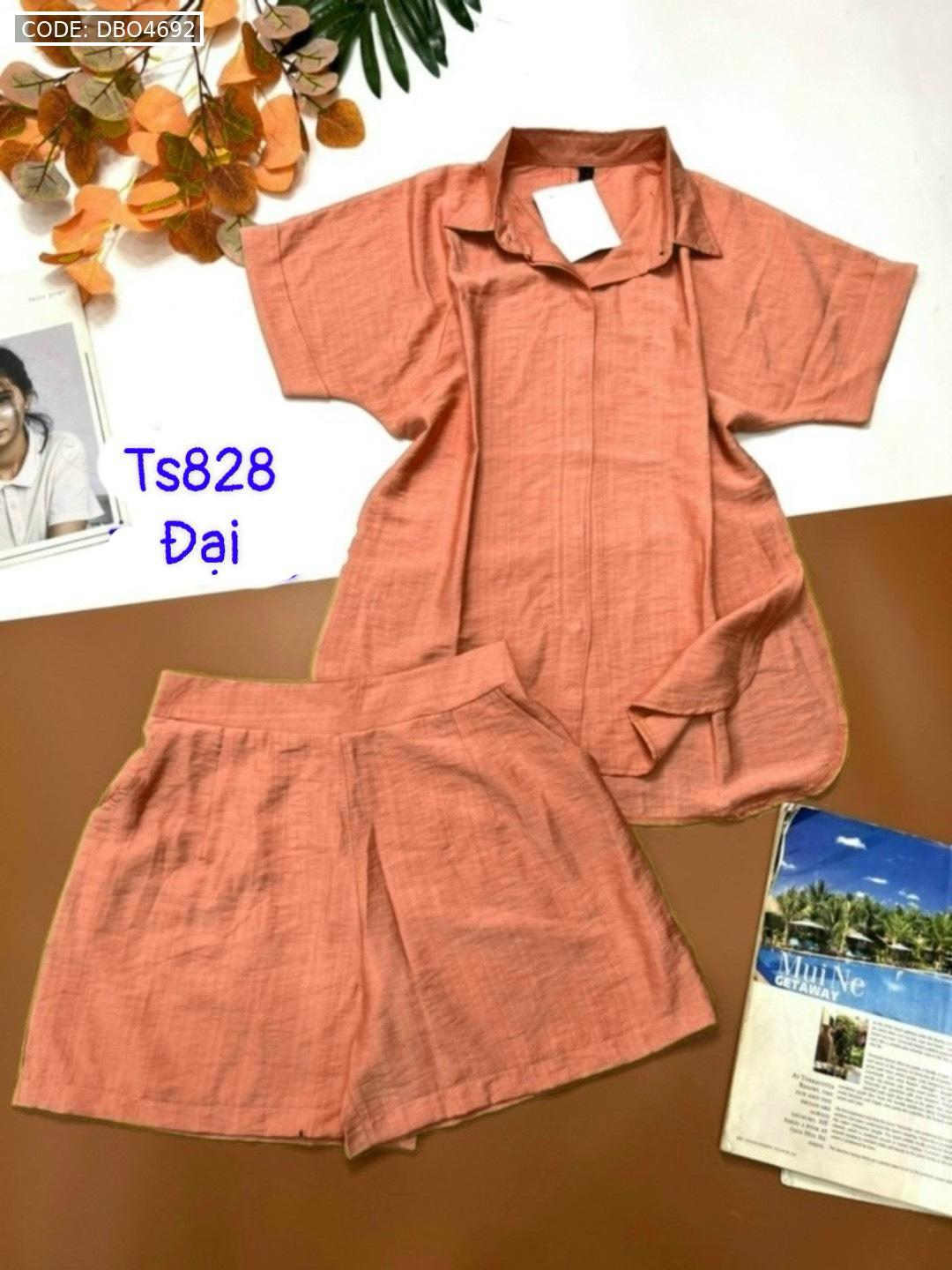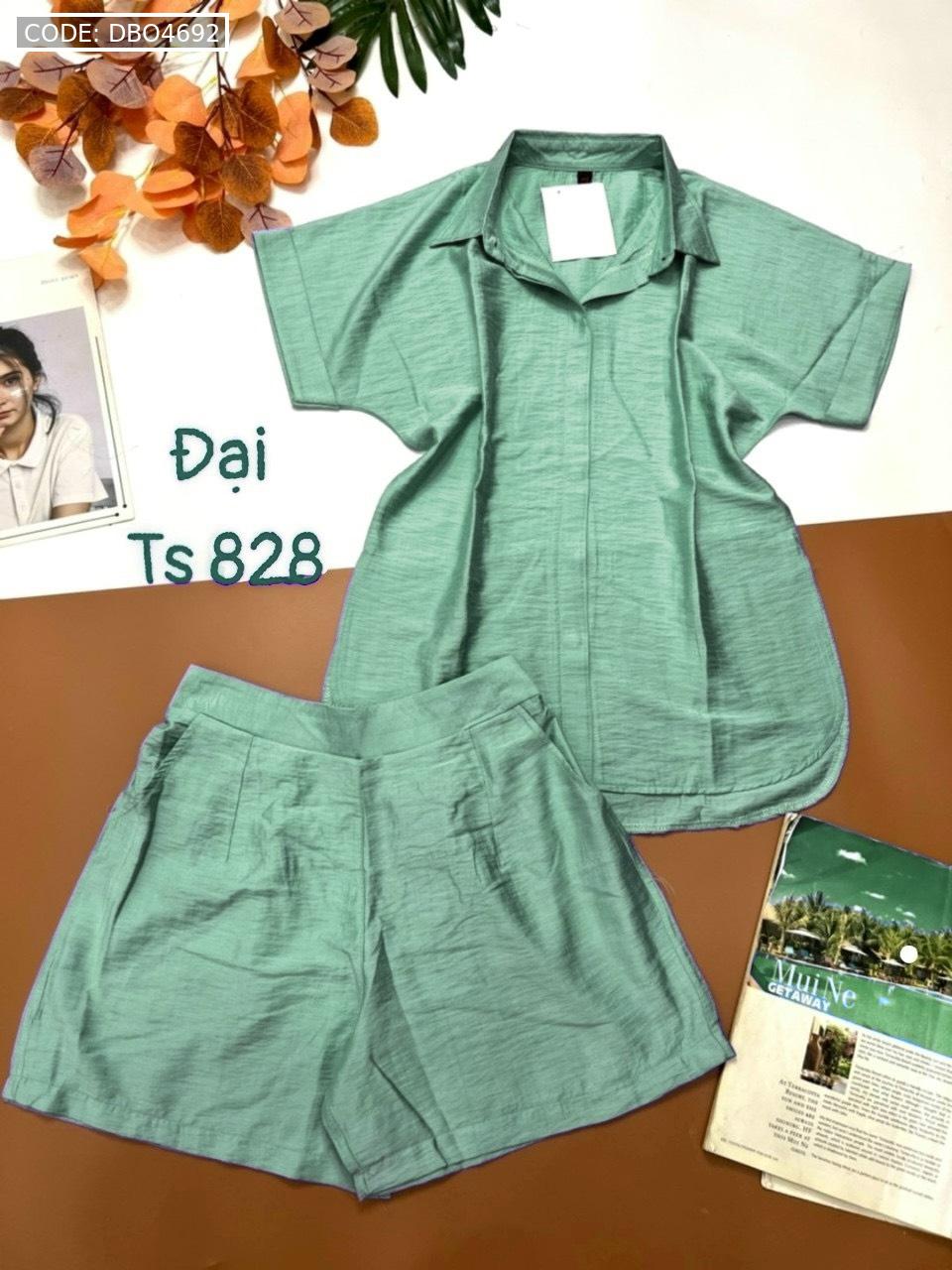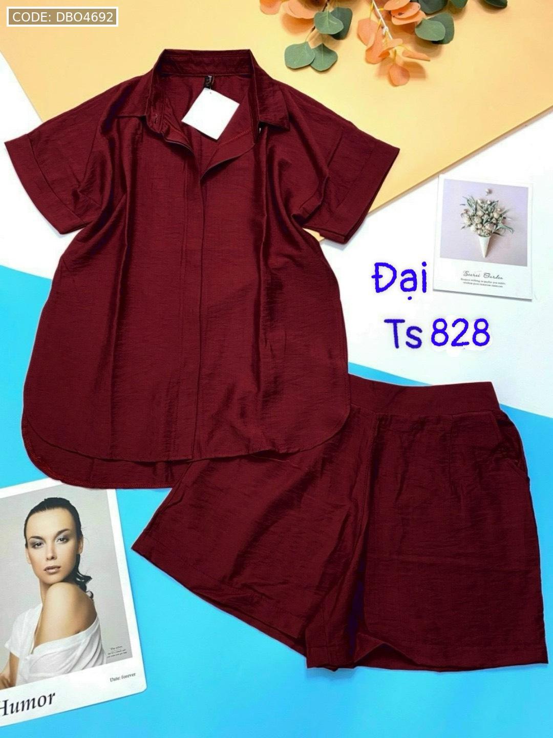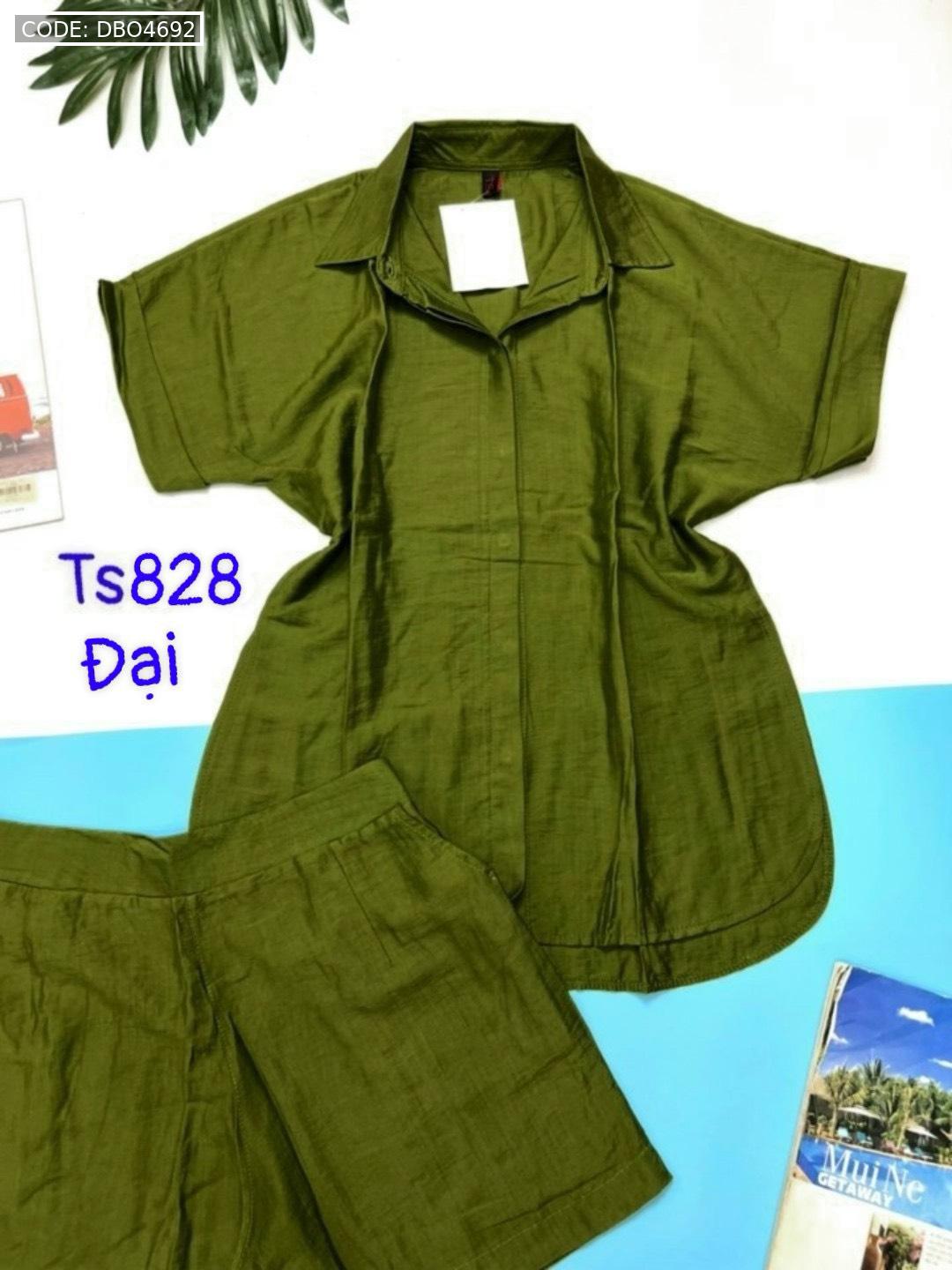 Đồ bộ quần đùi áo sơ mi tay ngắn cổ bẻ trơn