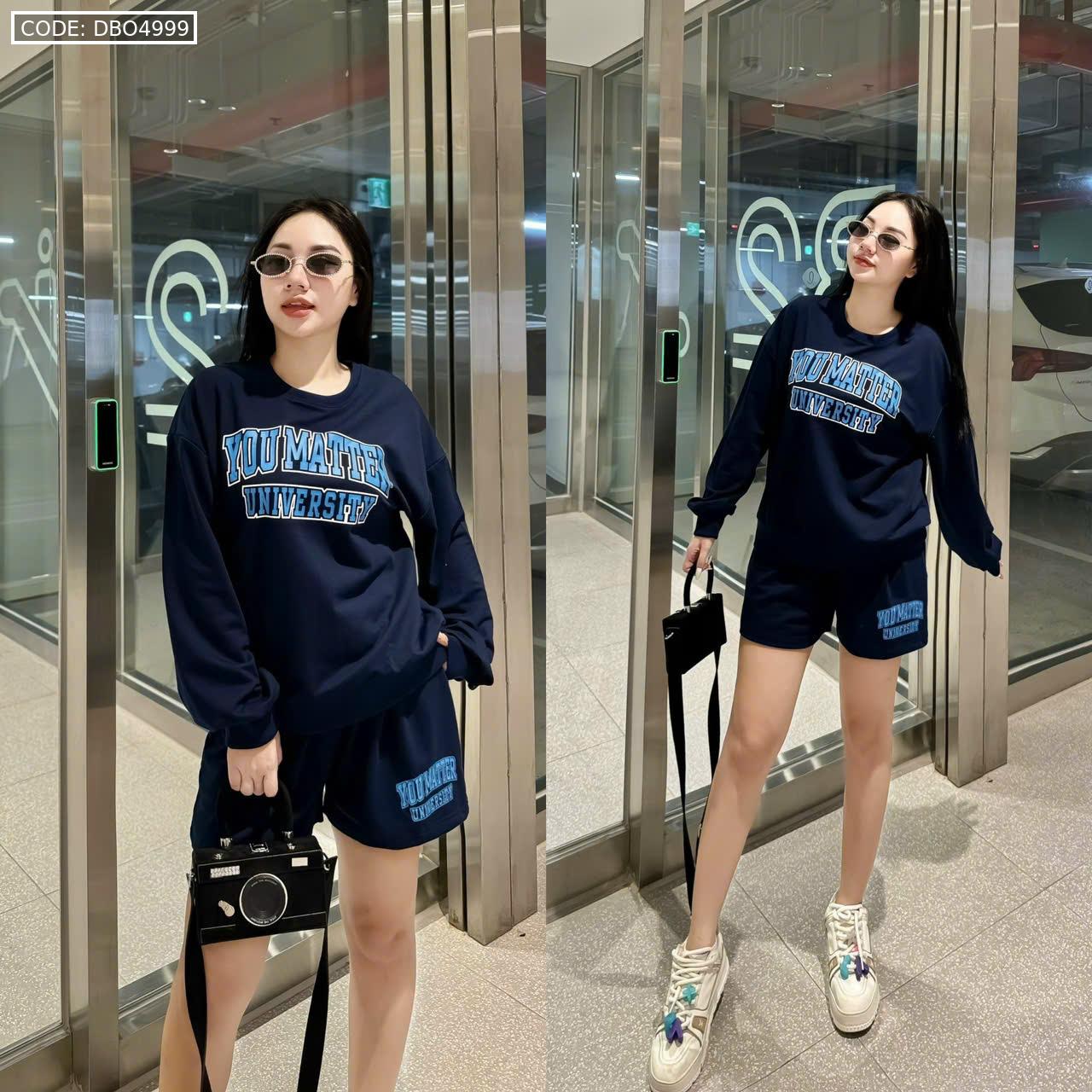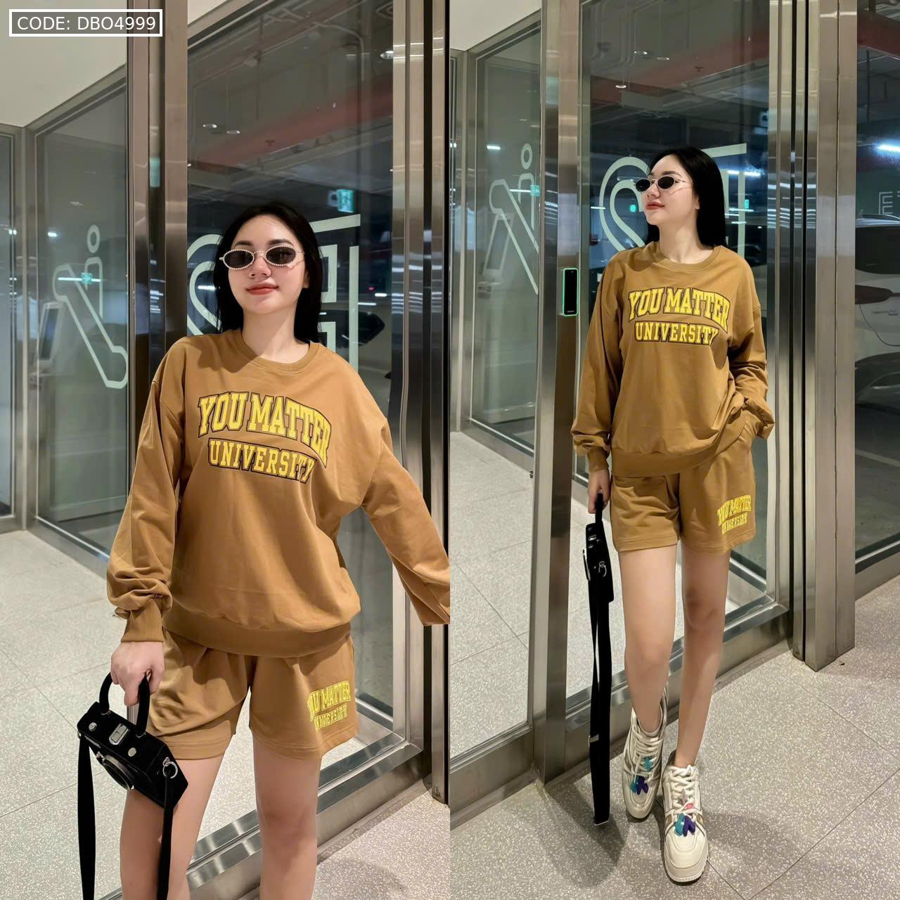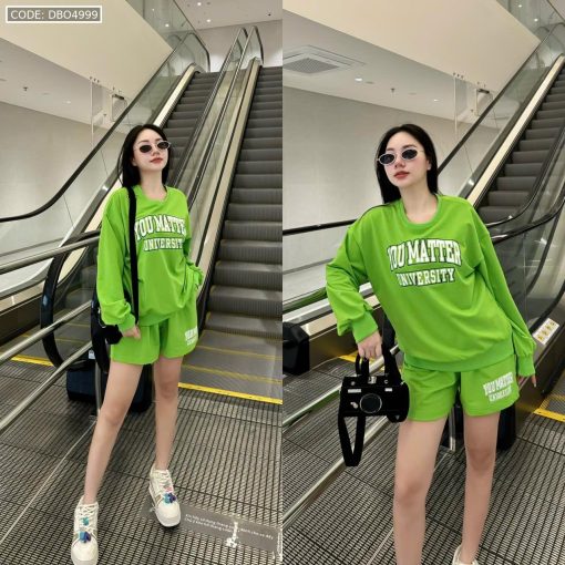 Đồ bộ quần đùi áo tay dài in nhiều chữ