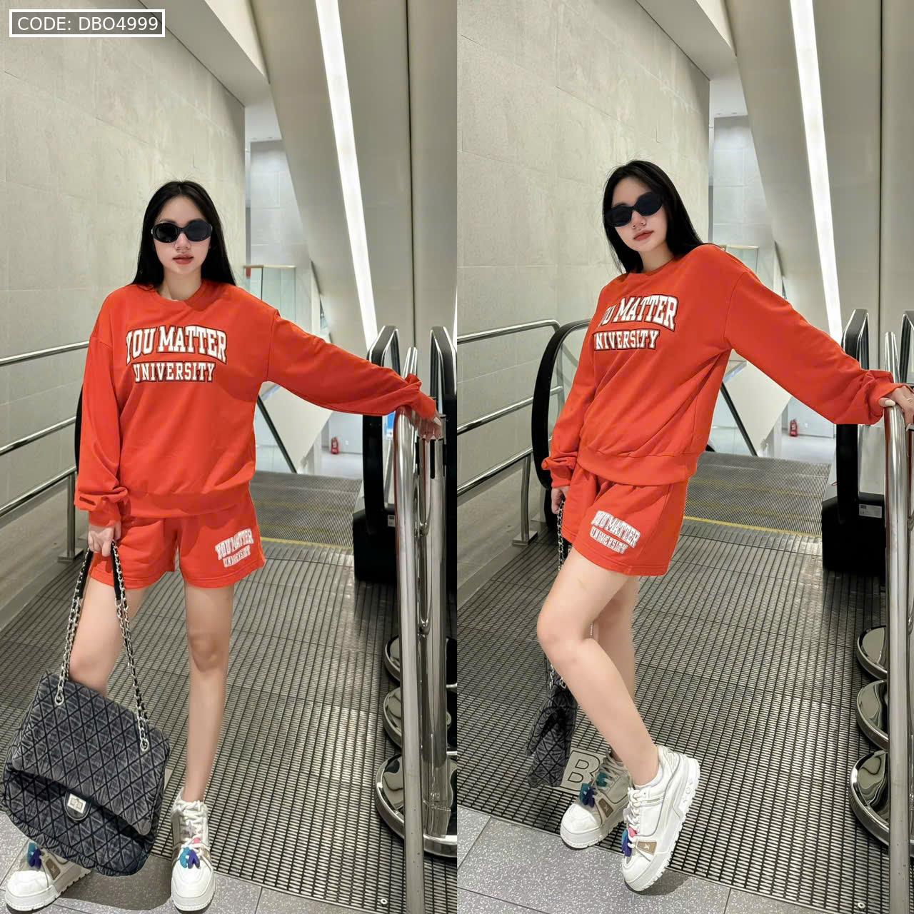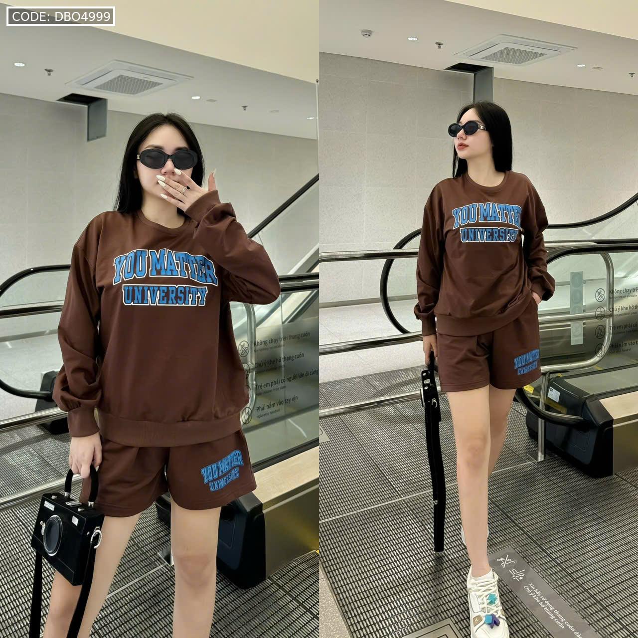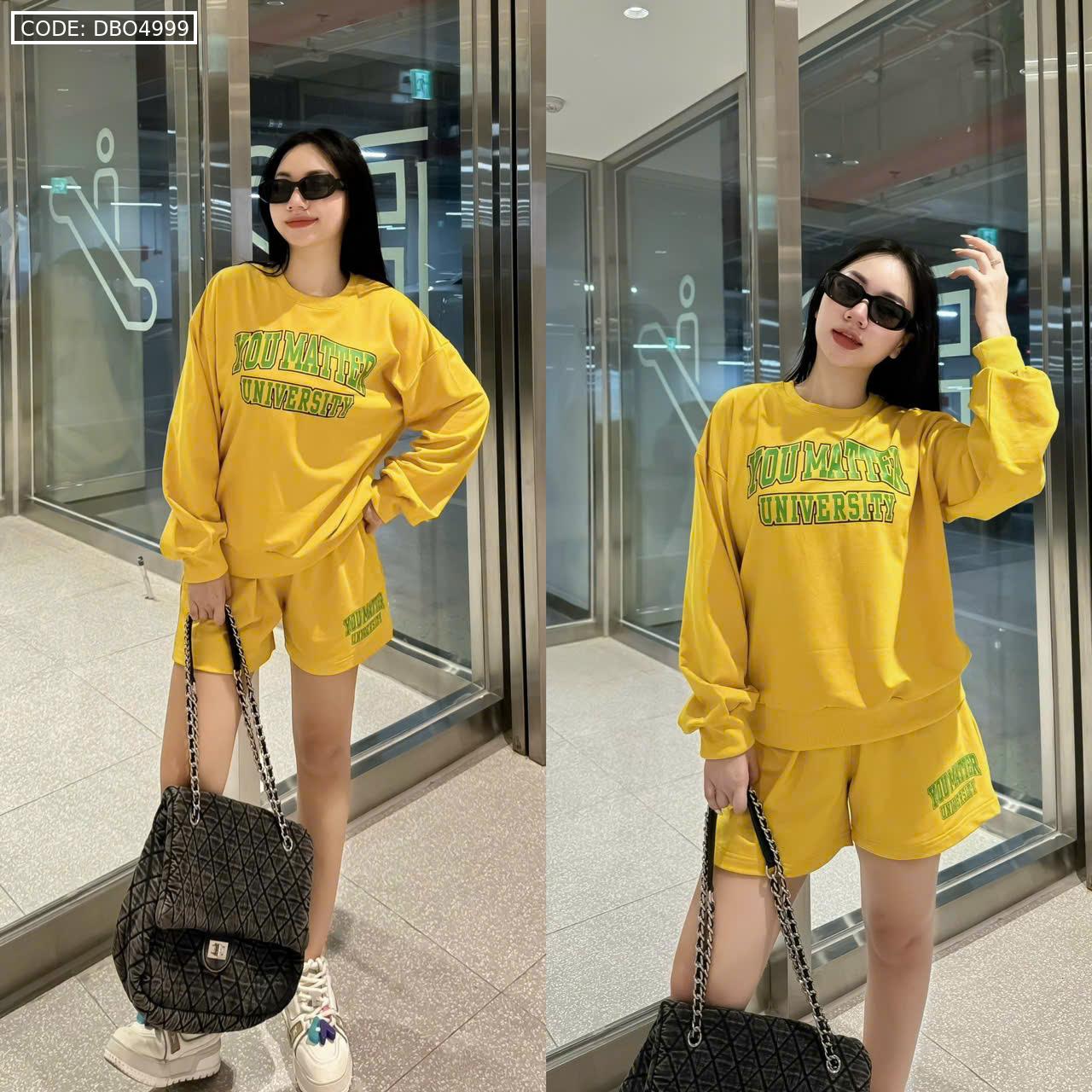 Đồ bộ quần đùi áo tay dài in nhiều chữ