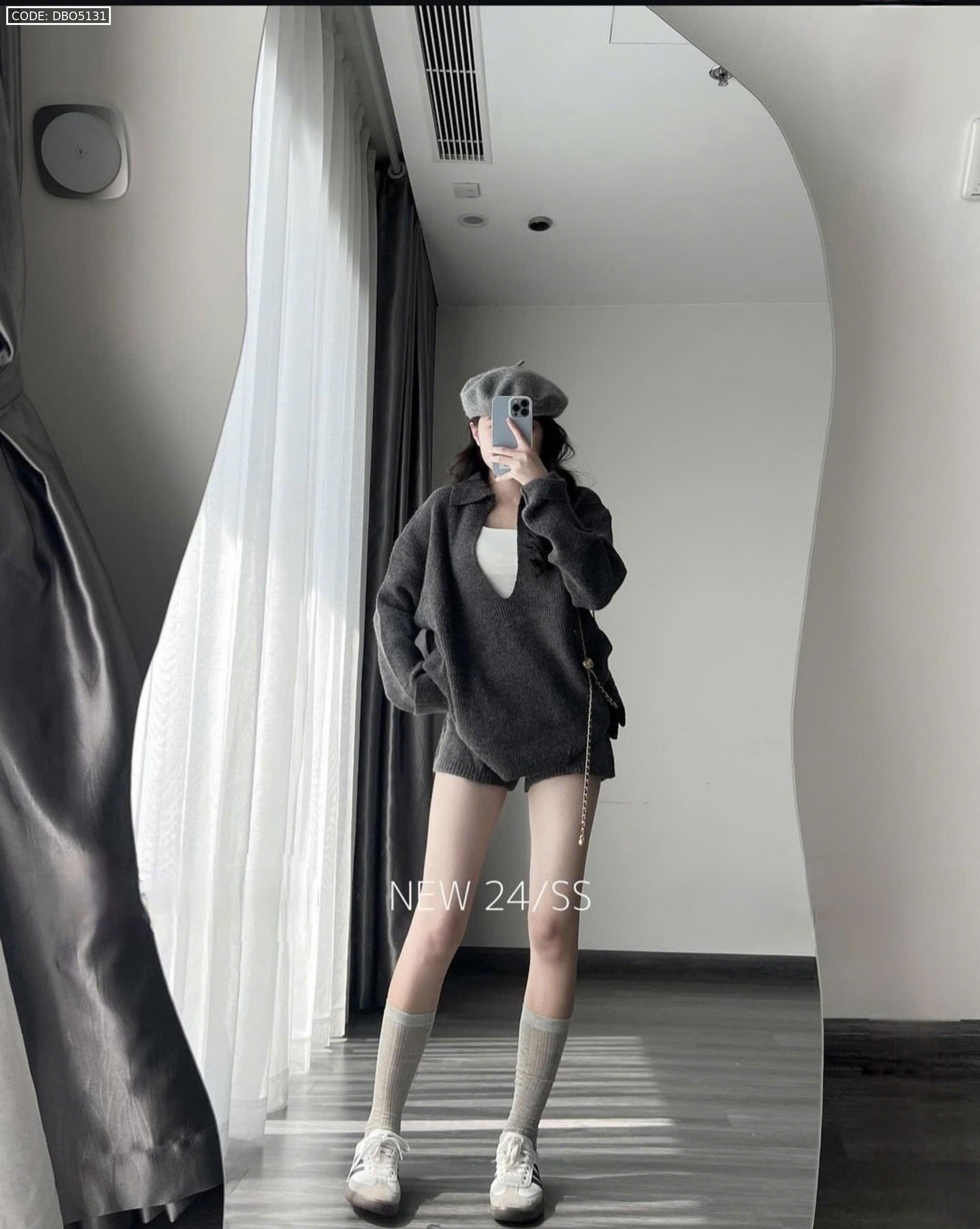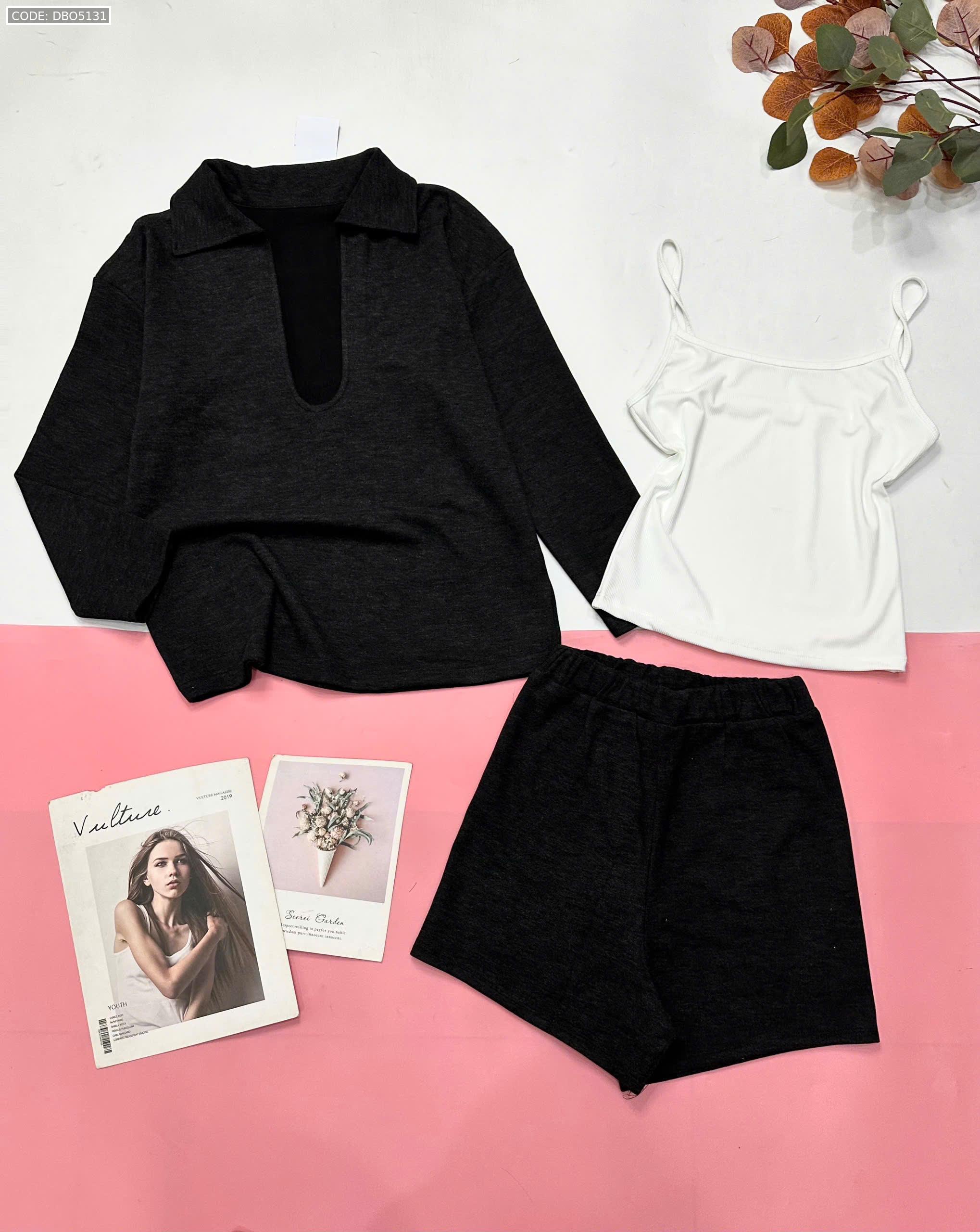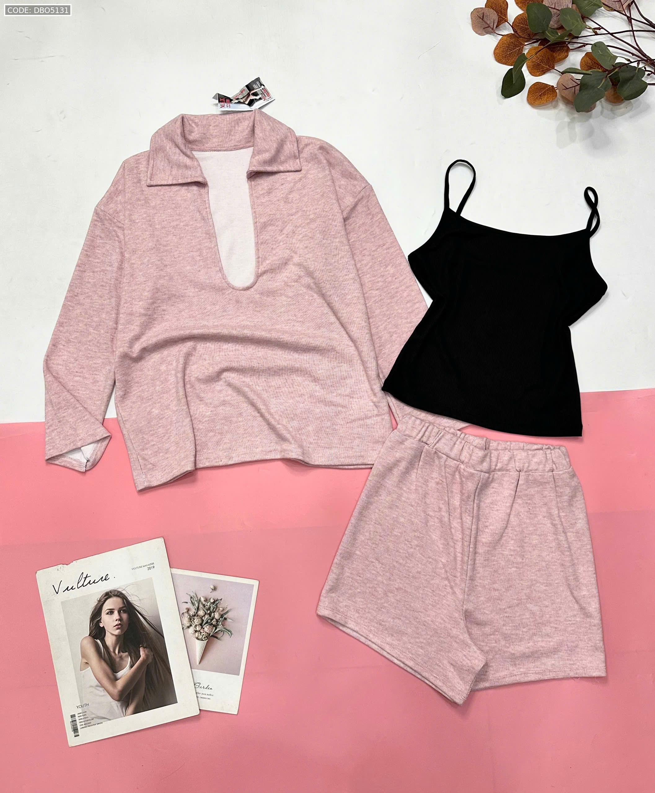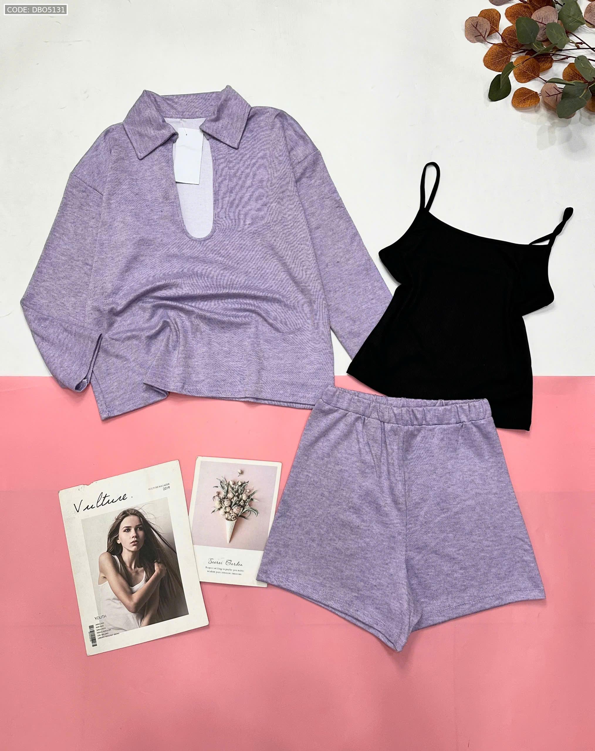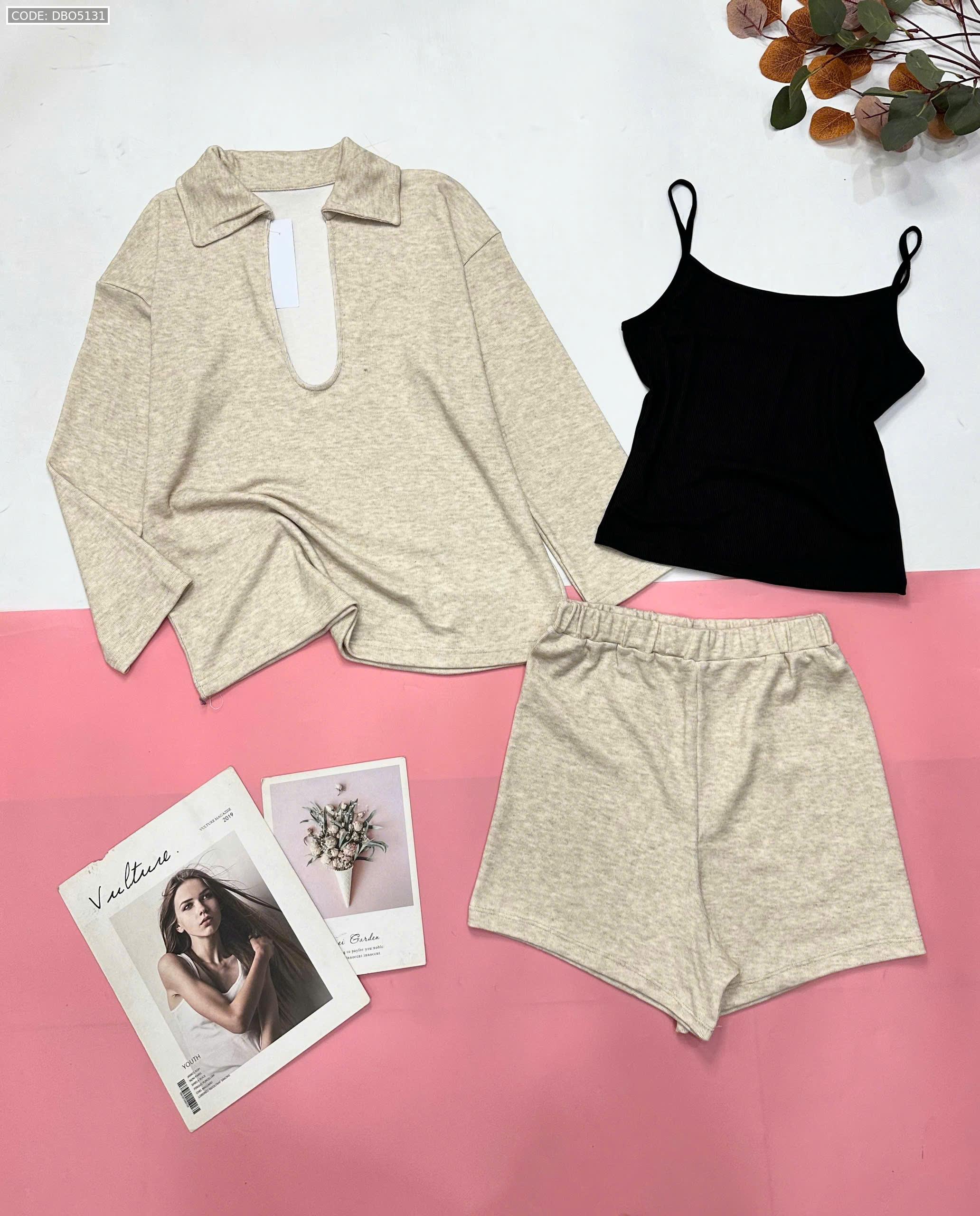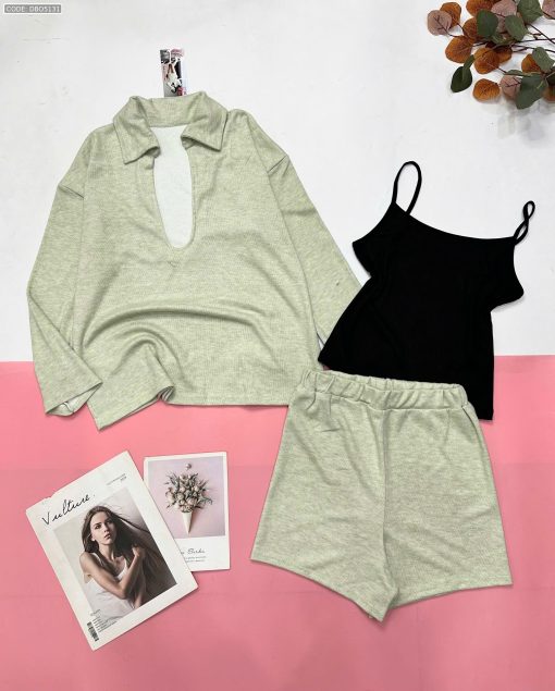 đồ bộ quần đùi áo tay dài phối áo dây trong