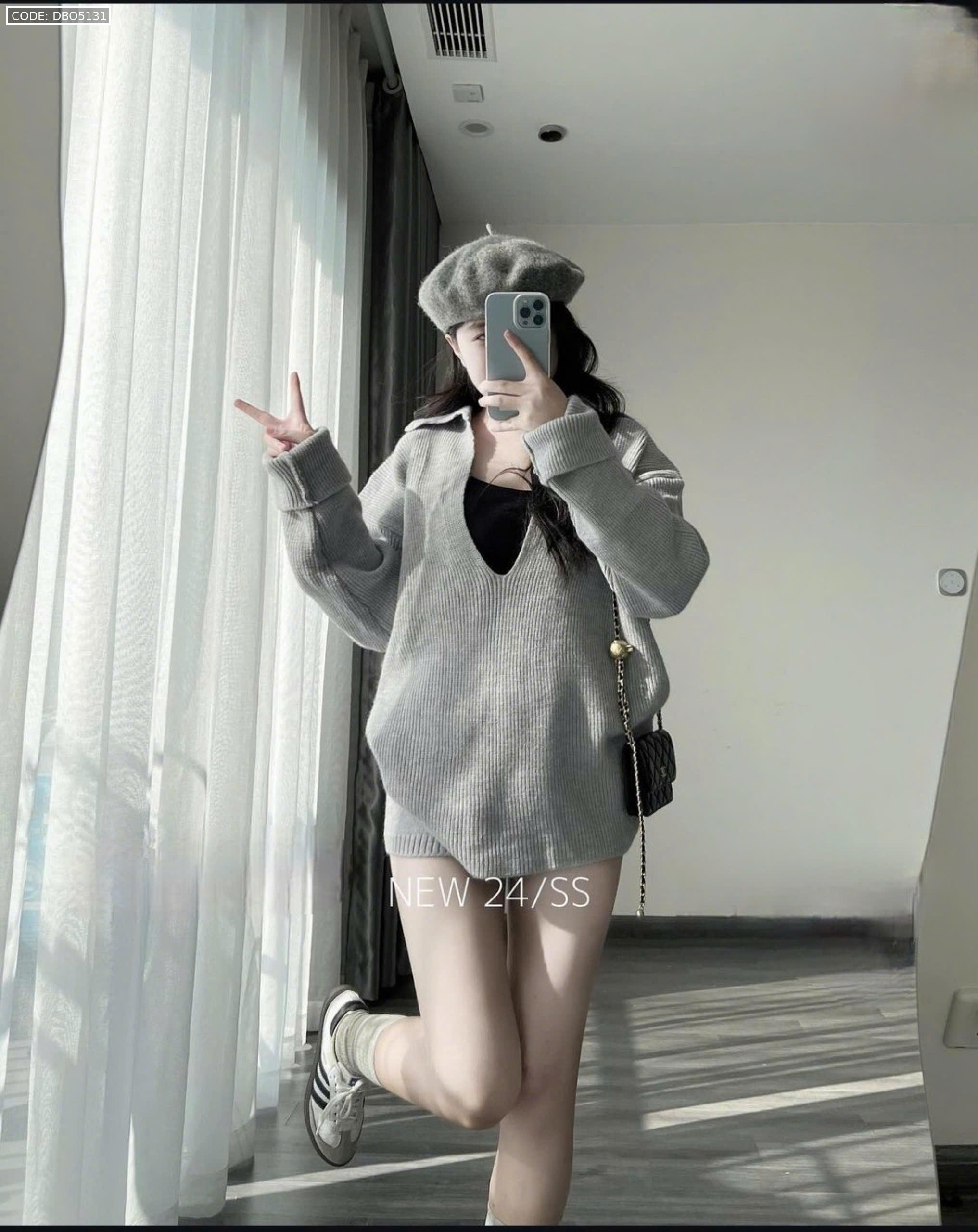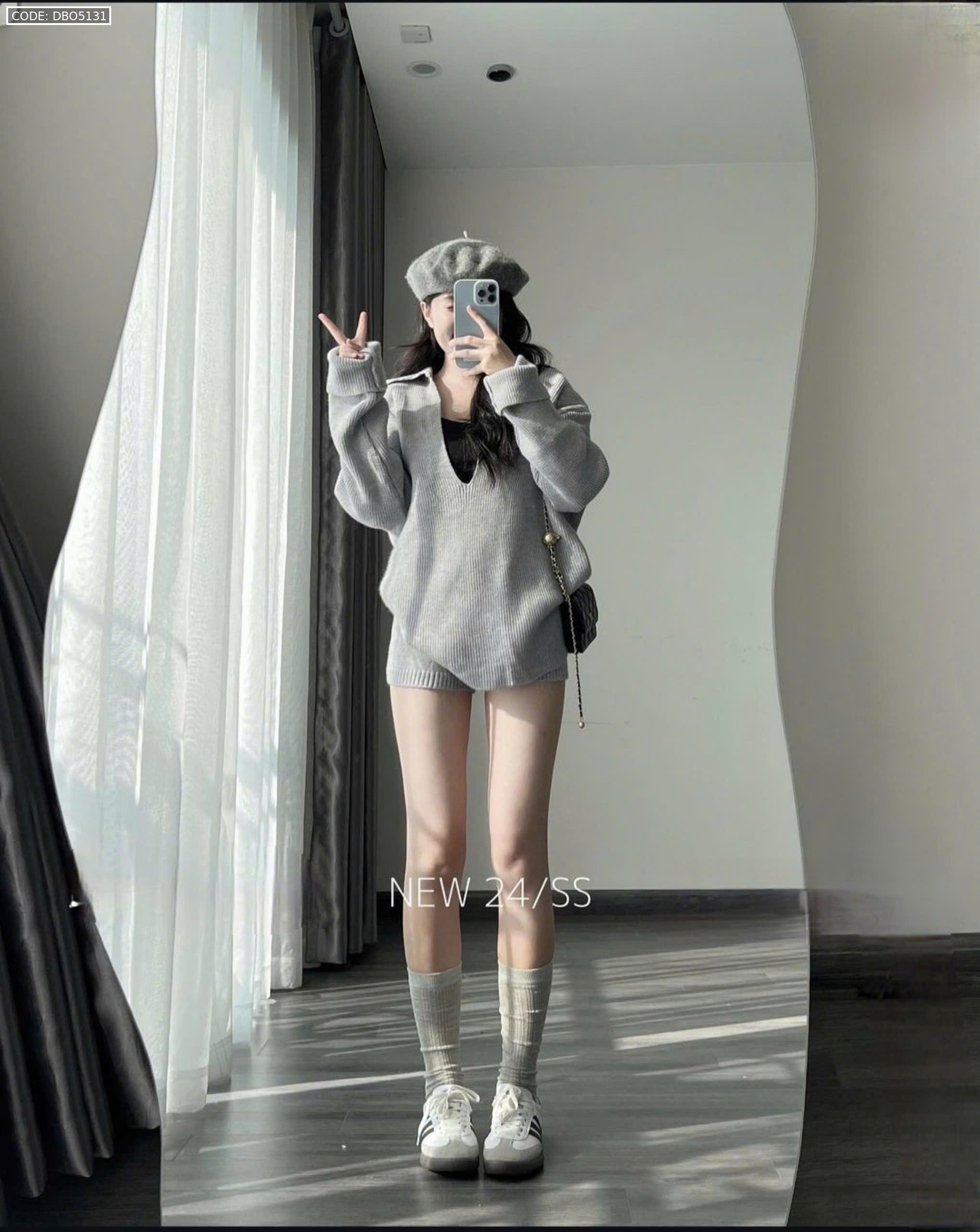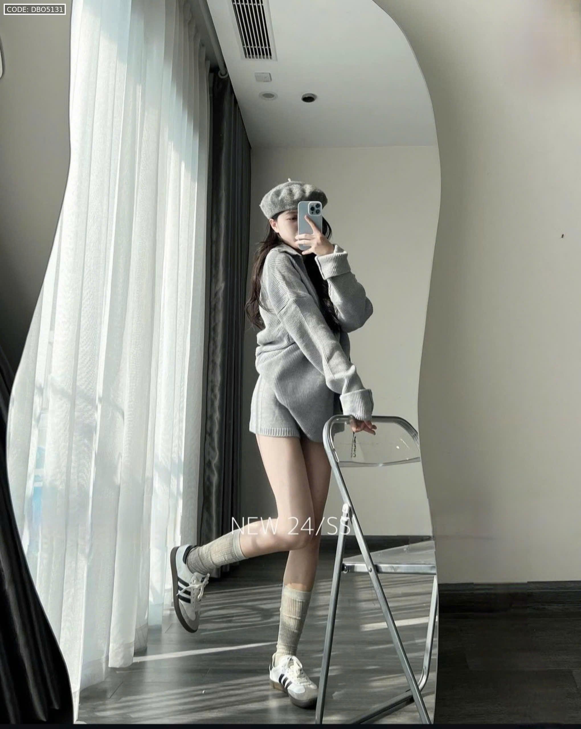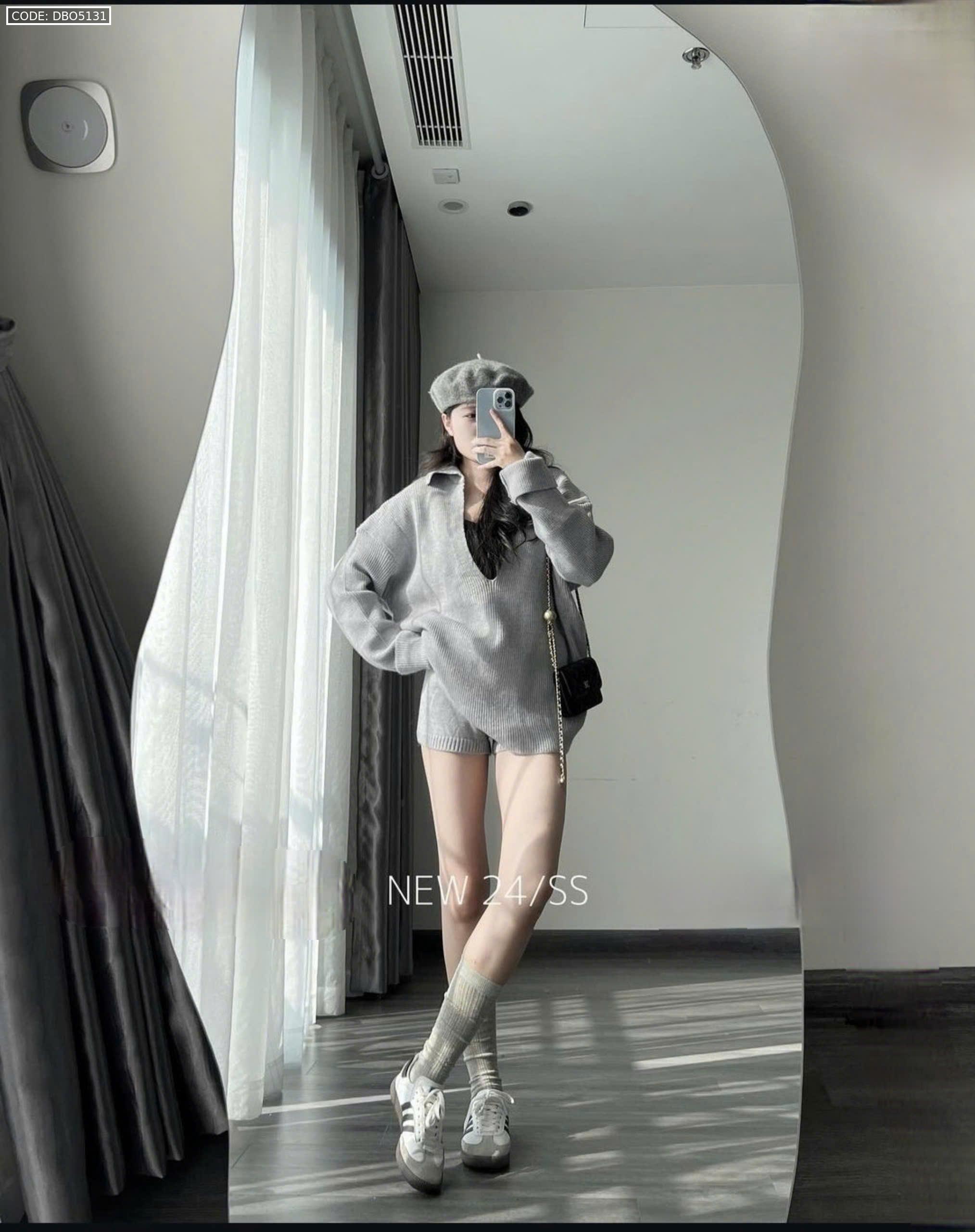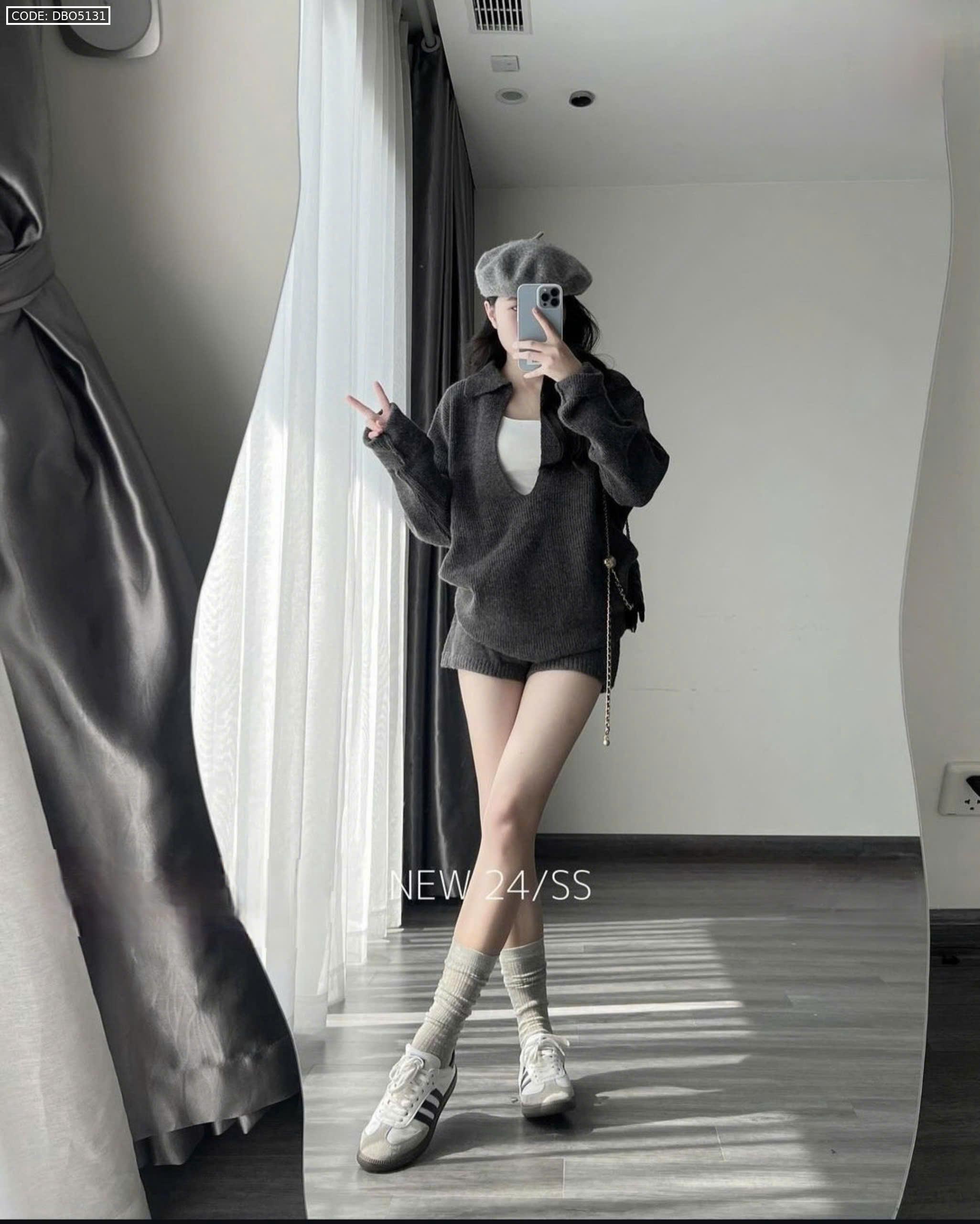 đồ bộ quần đùi áo tay dài phối áo dây trong