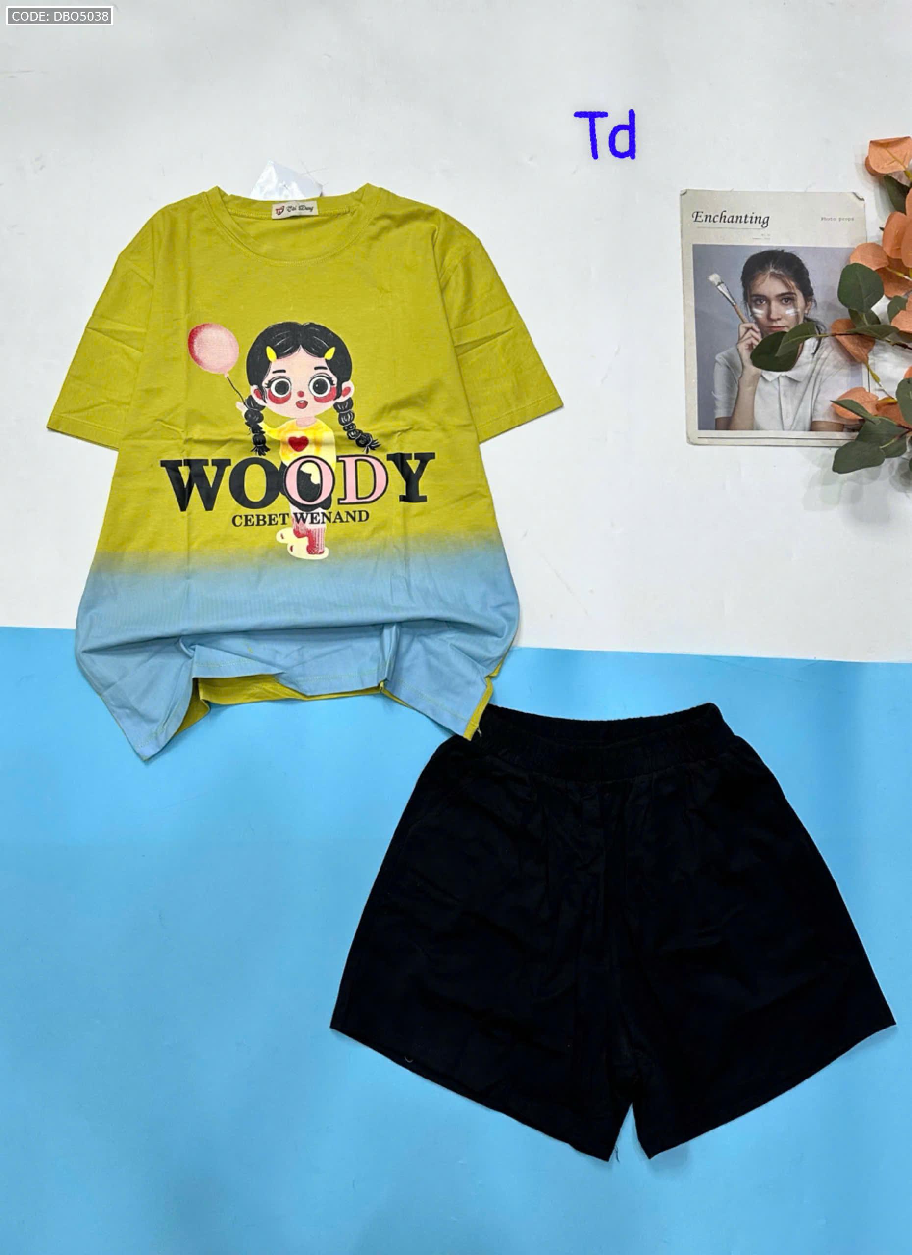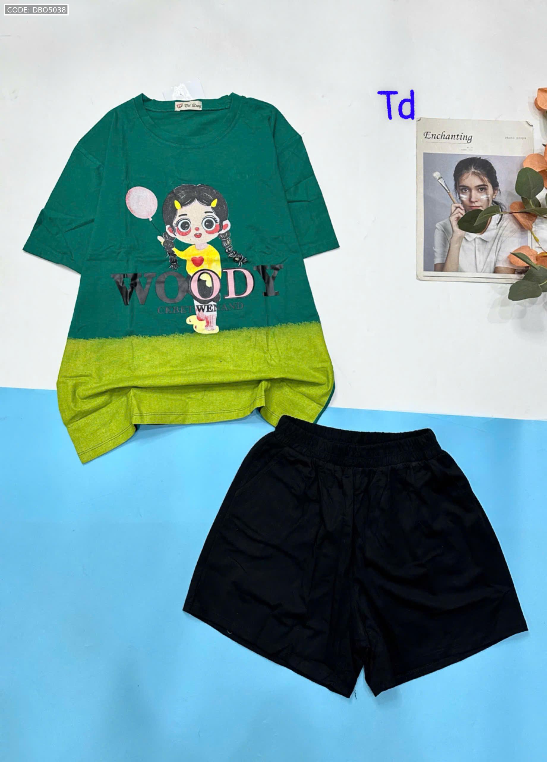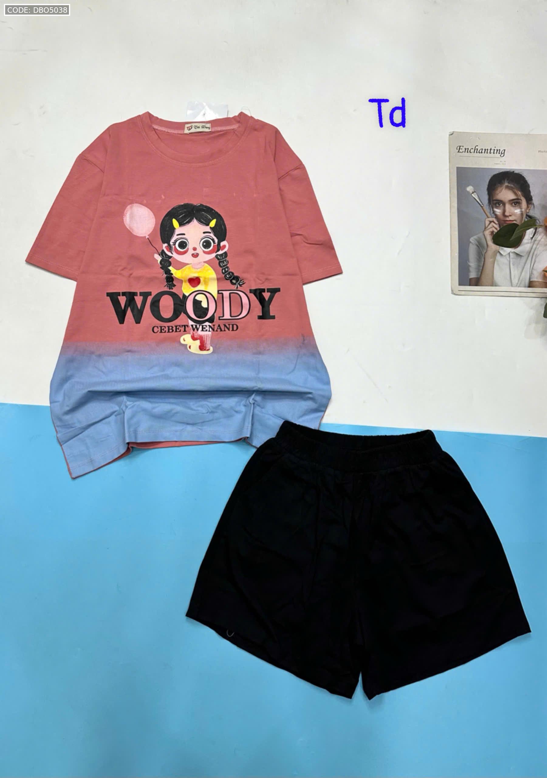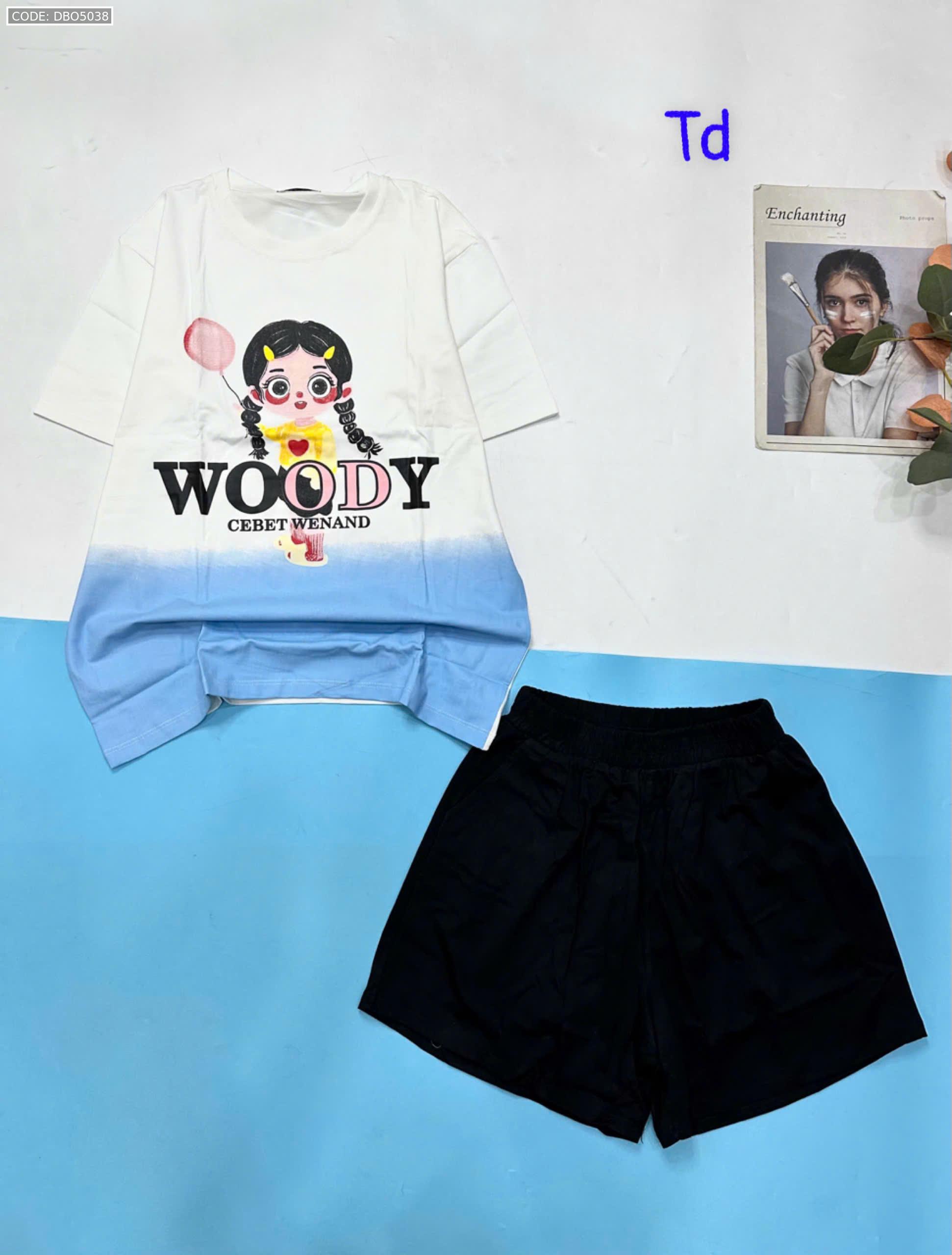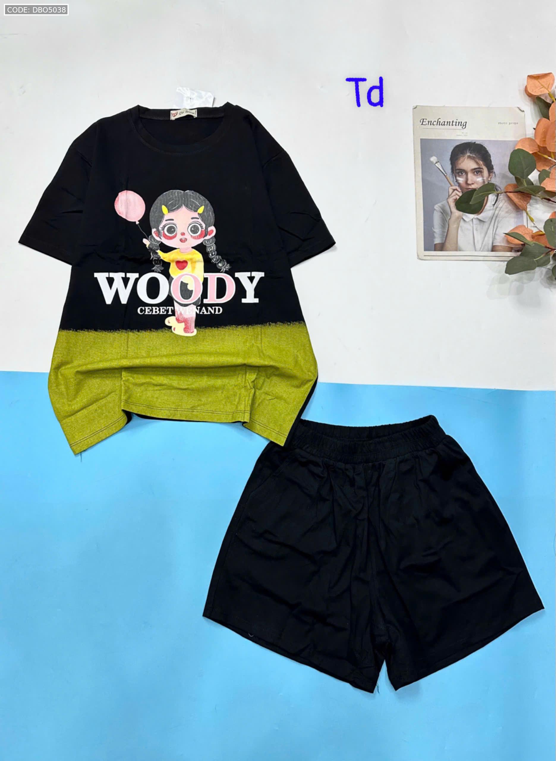 Đồ bộ quần đùi áo tay ngắn 2 màu in chữ WOODY