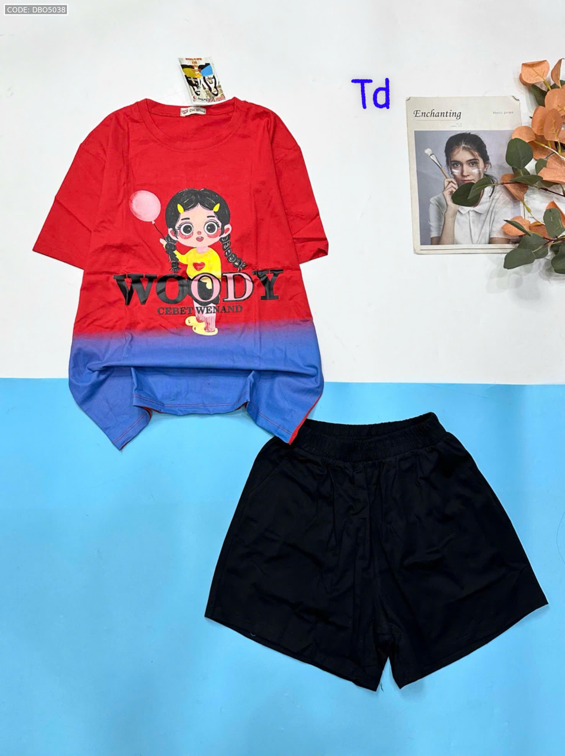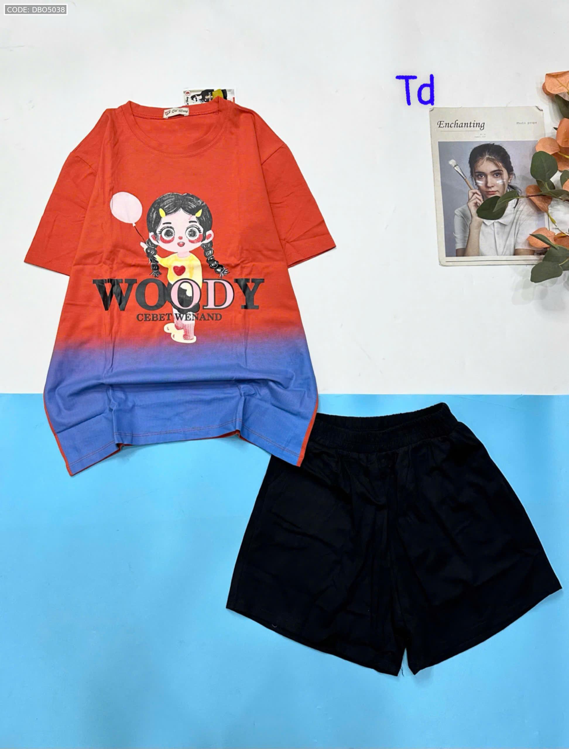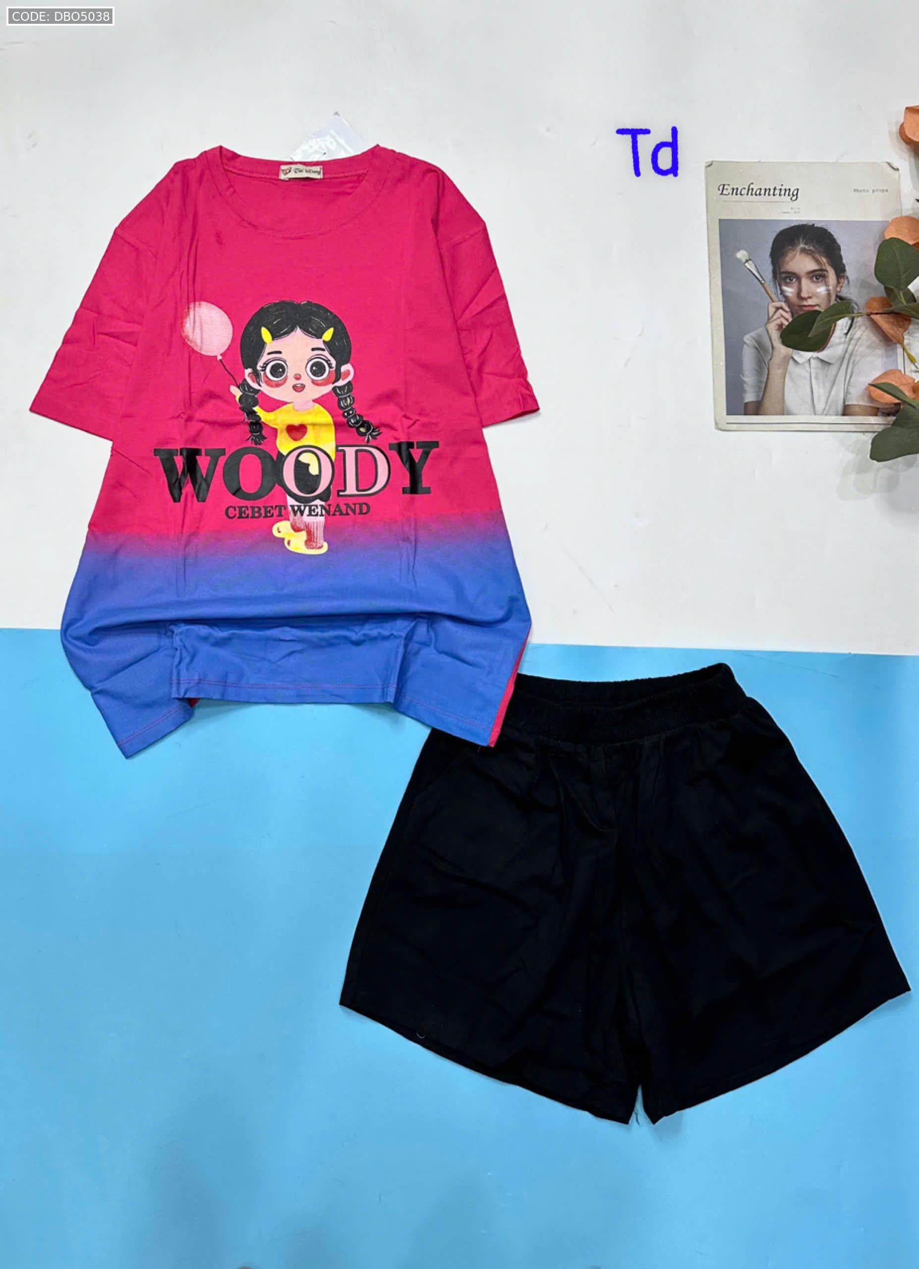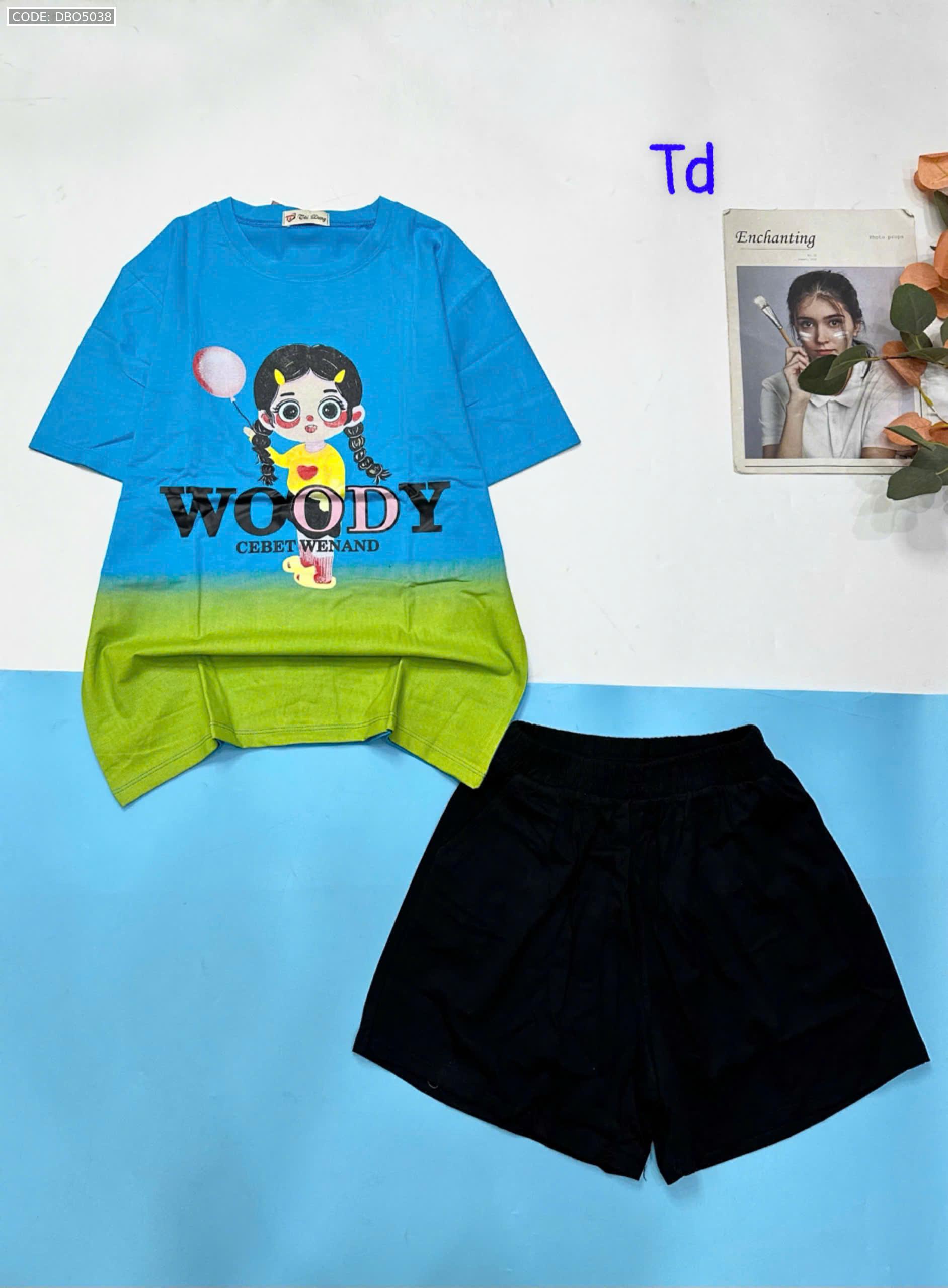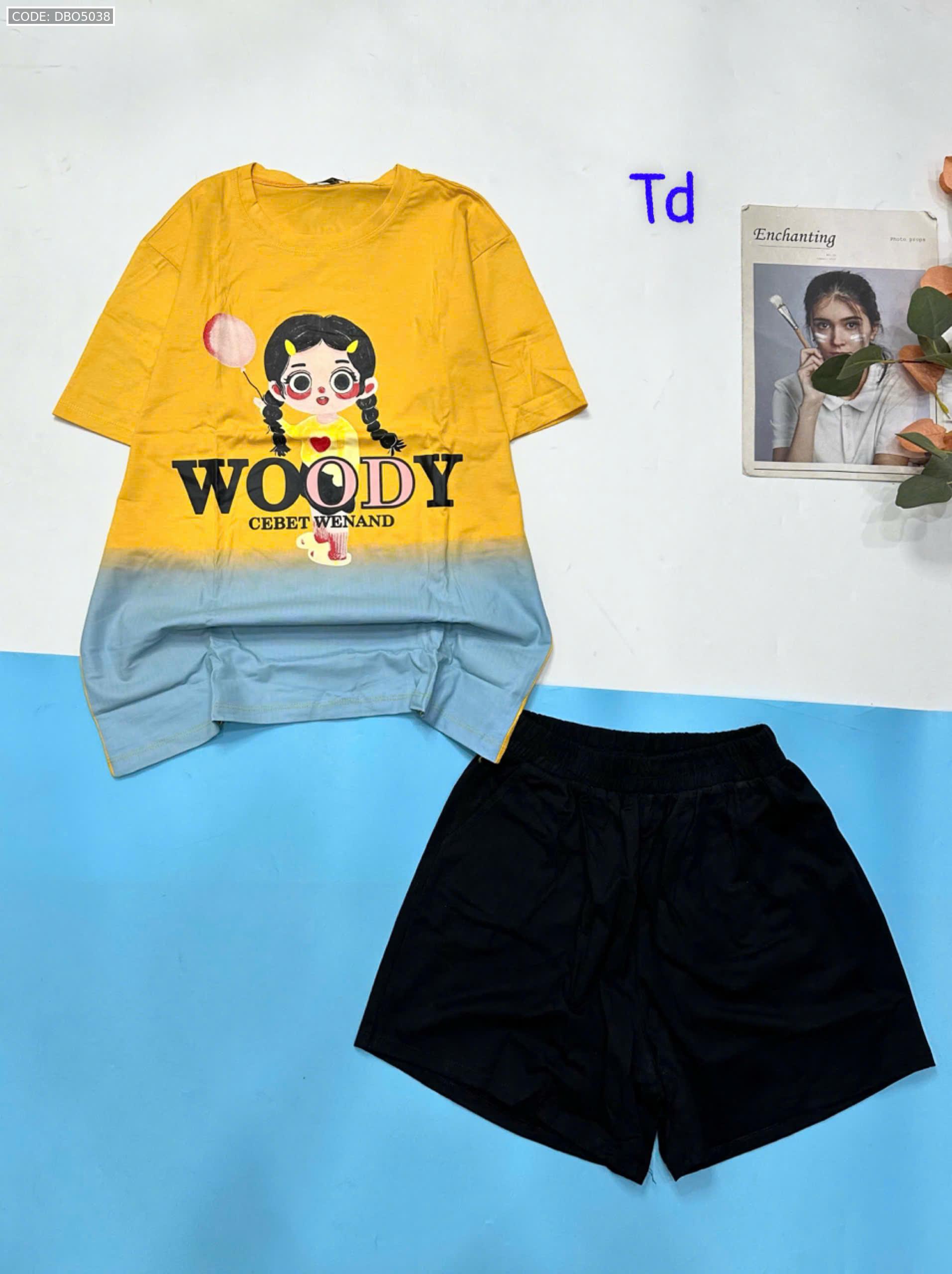Đồ bộ quần đùi áo tay ngắn 2 màu in chữ WOODY
