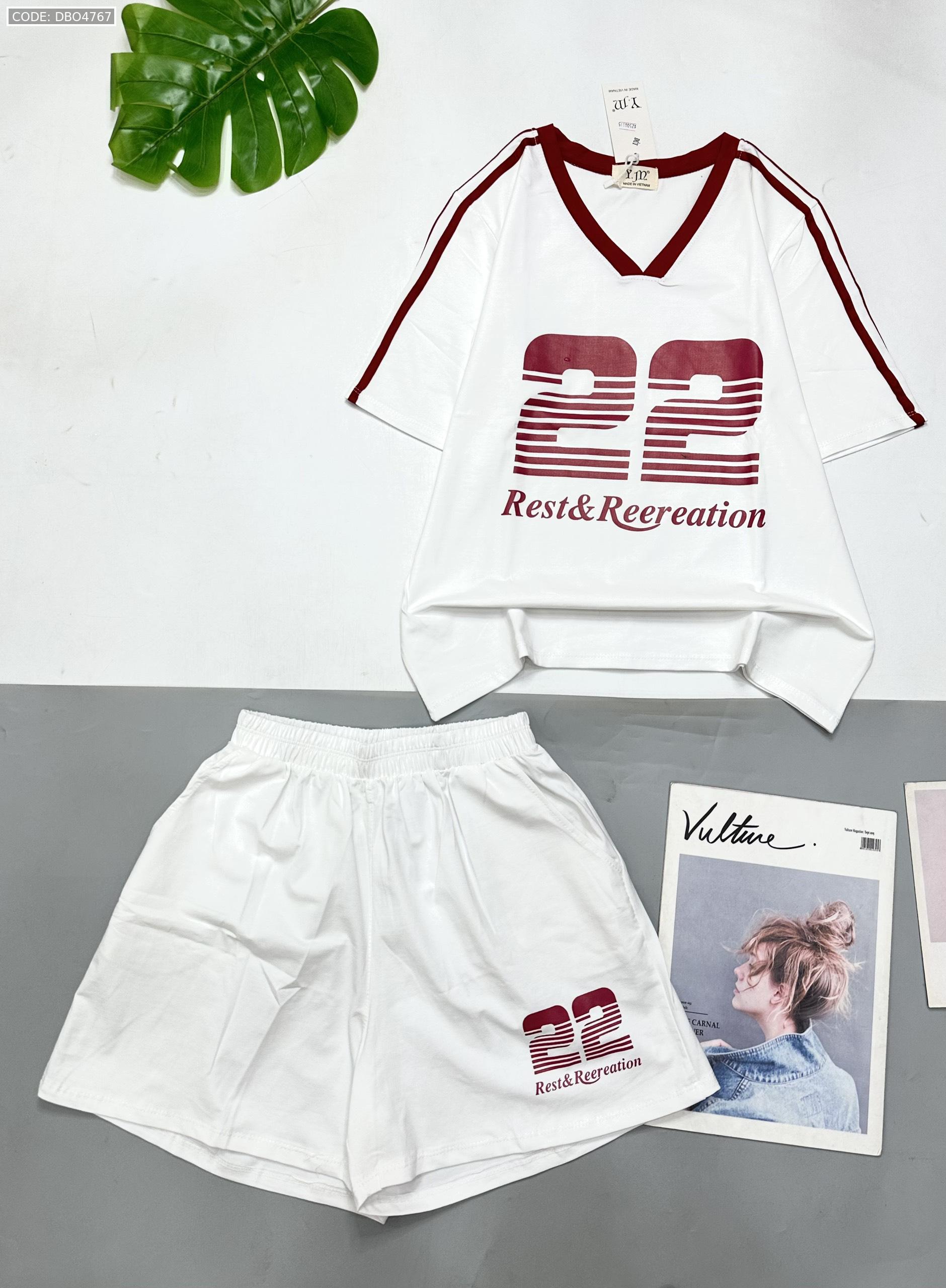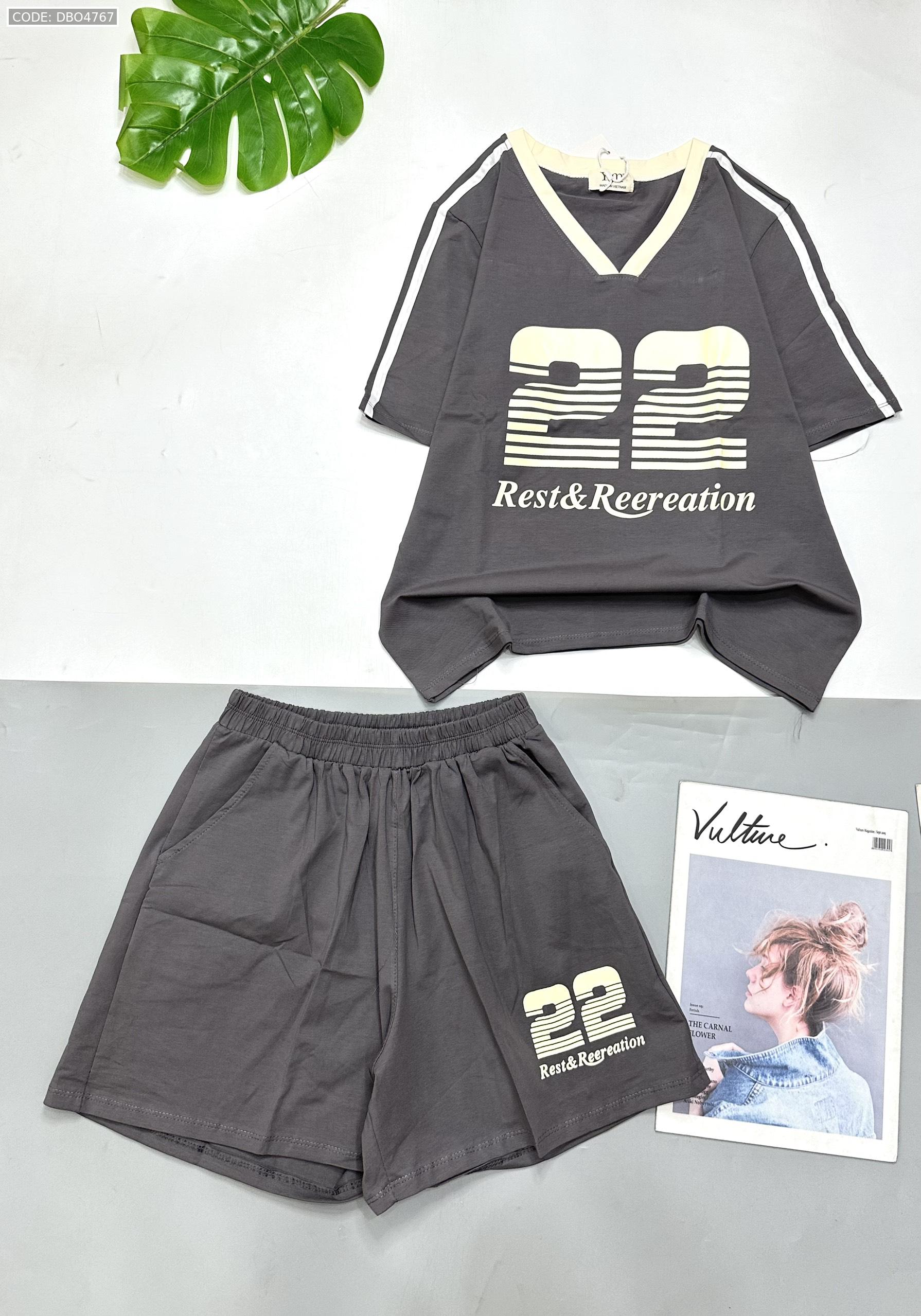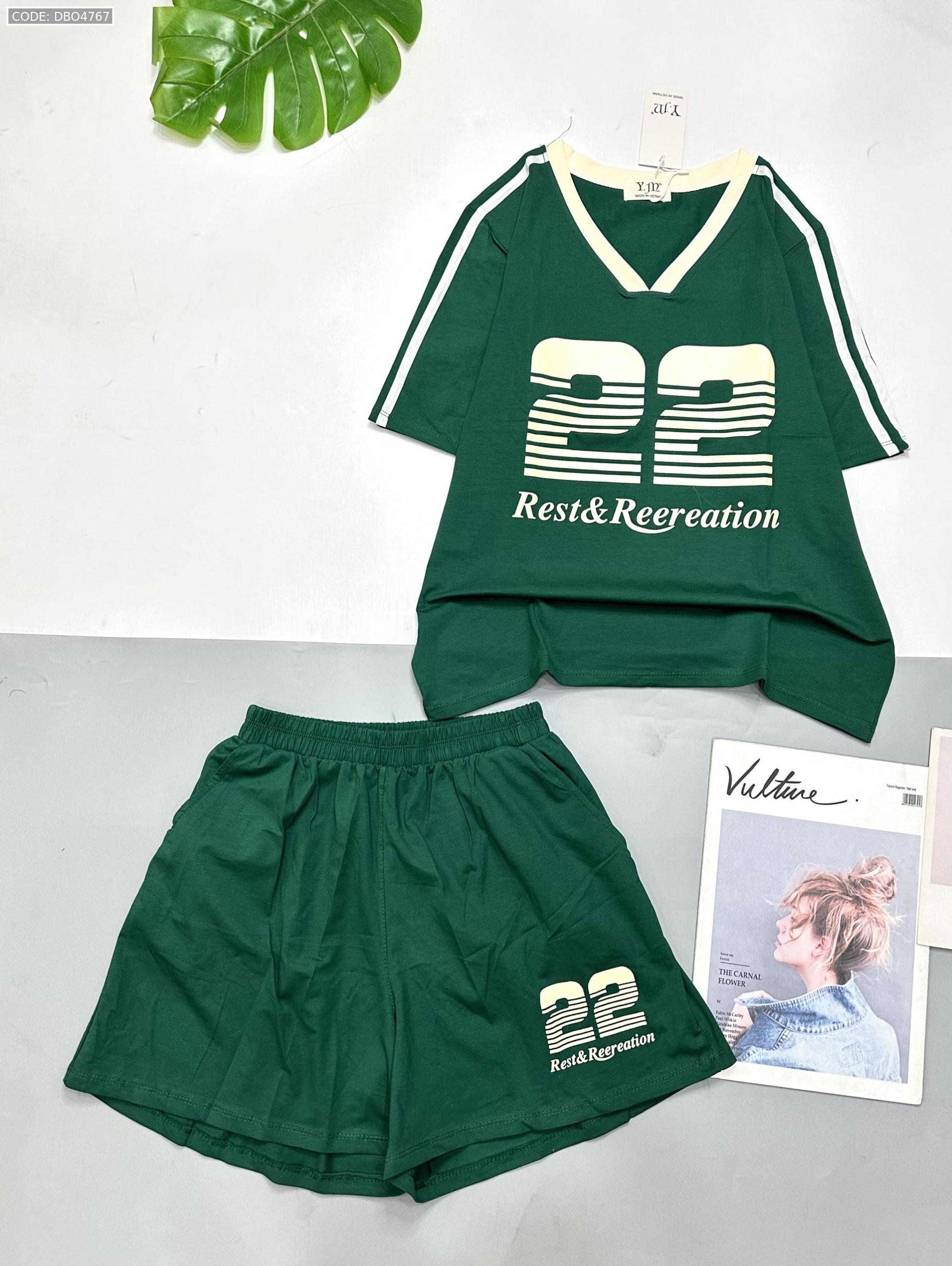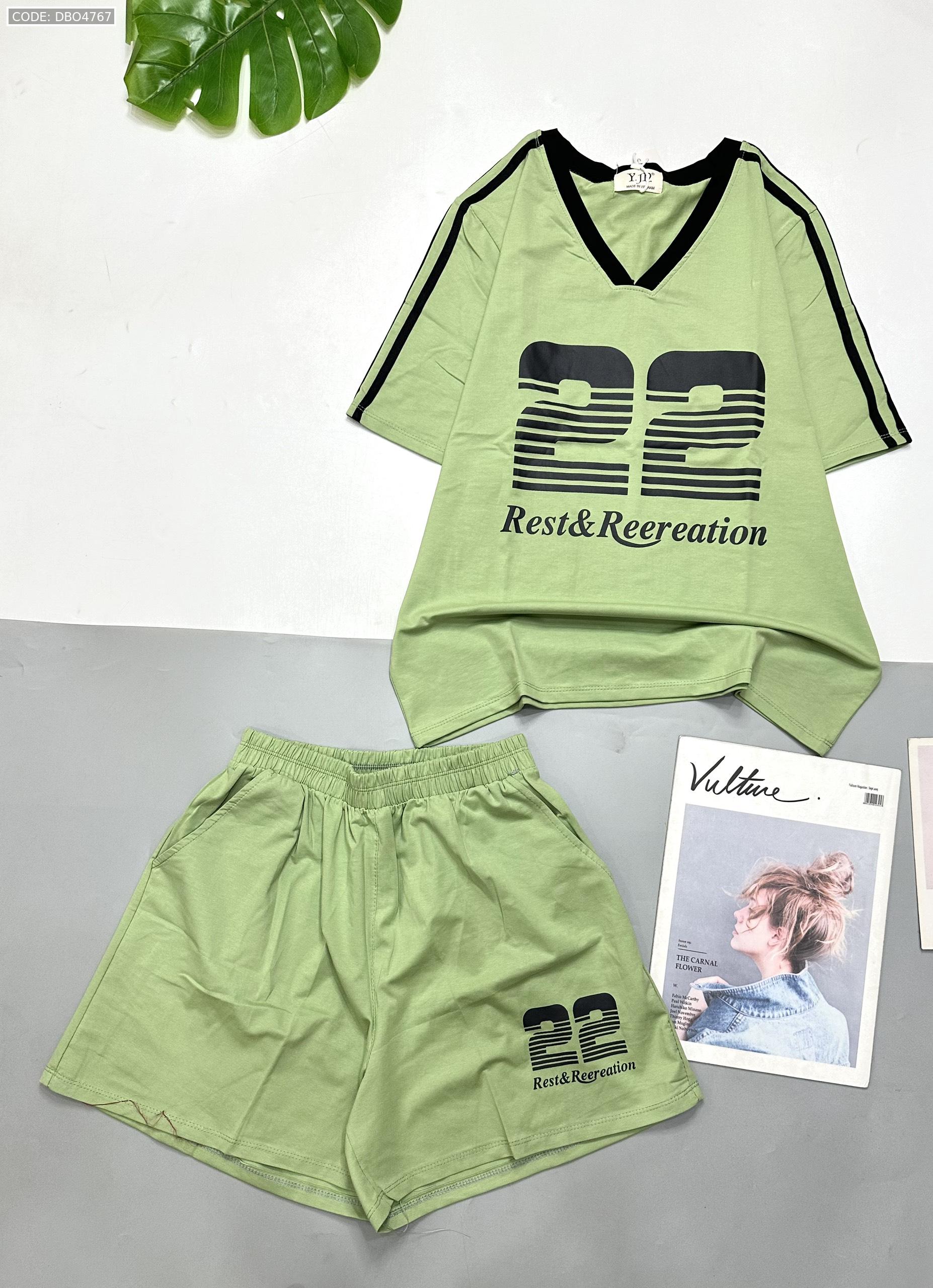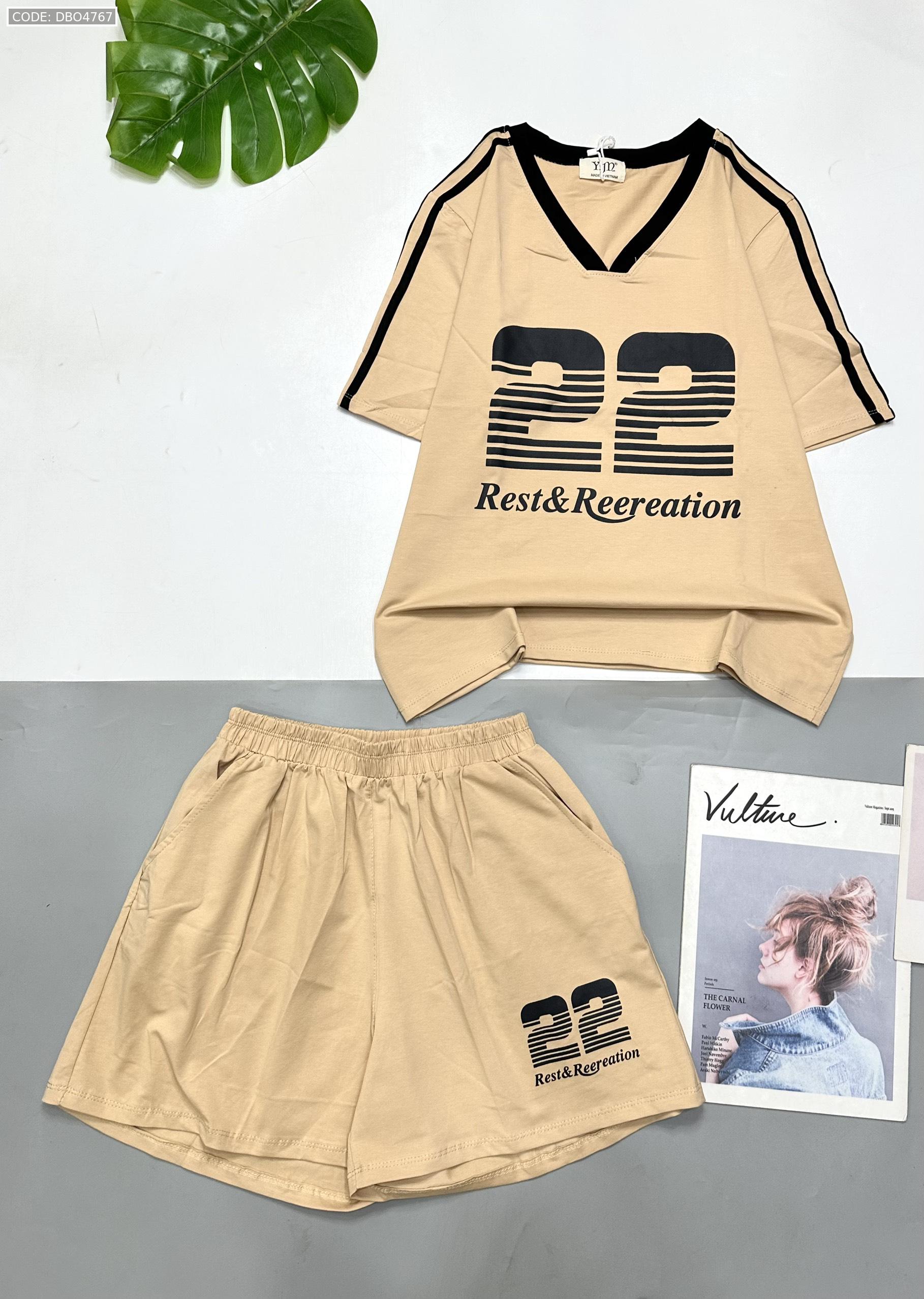 đồ bộ quần đùi áo tay ngắn cổ V in số 22