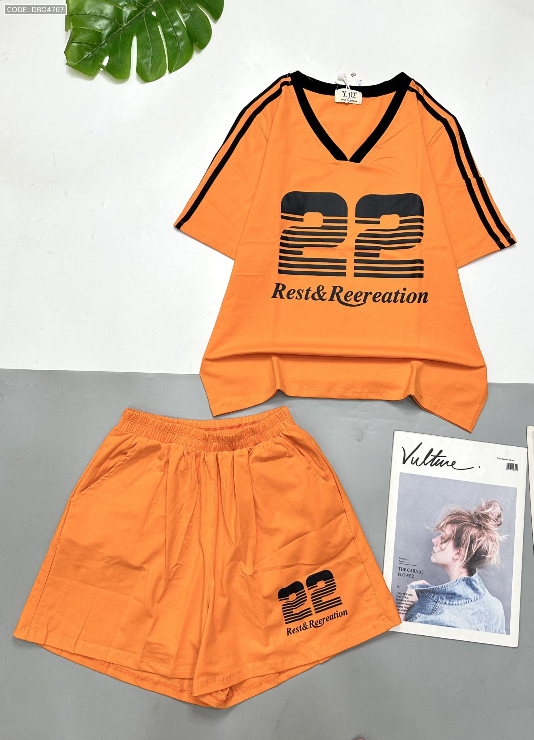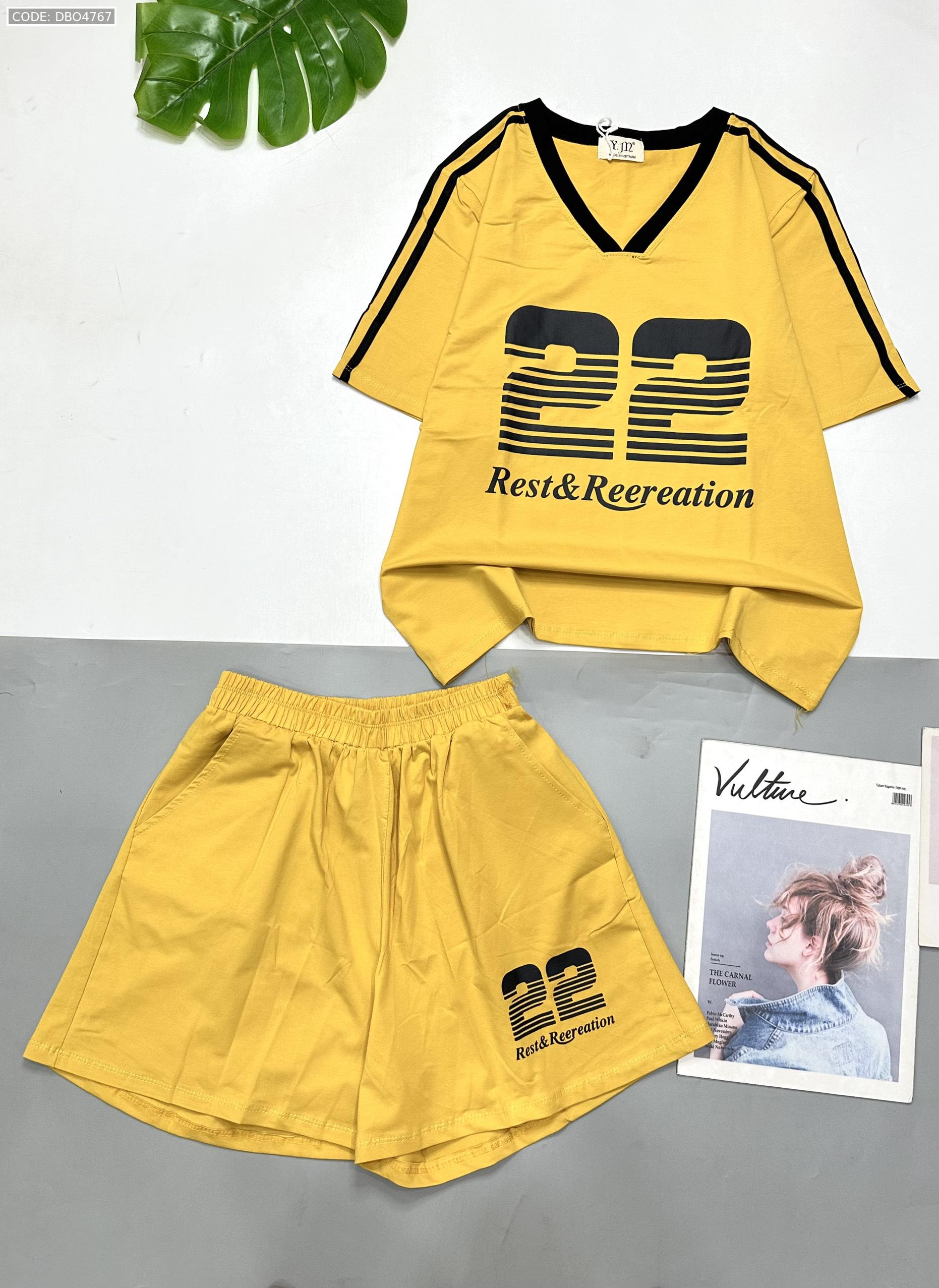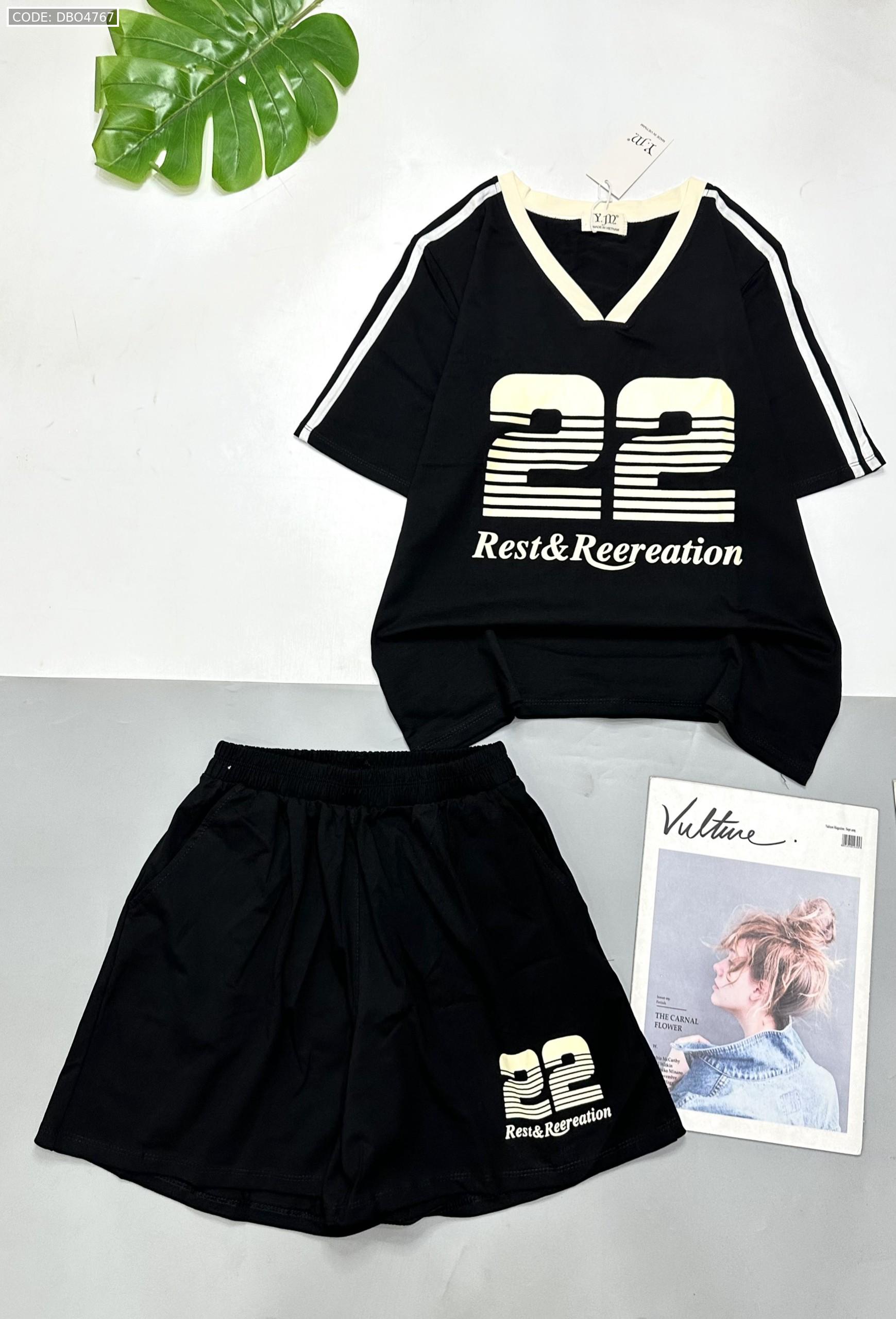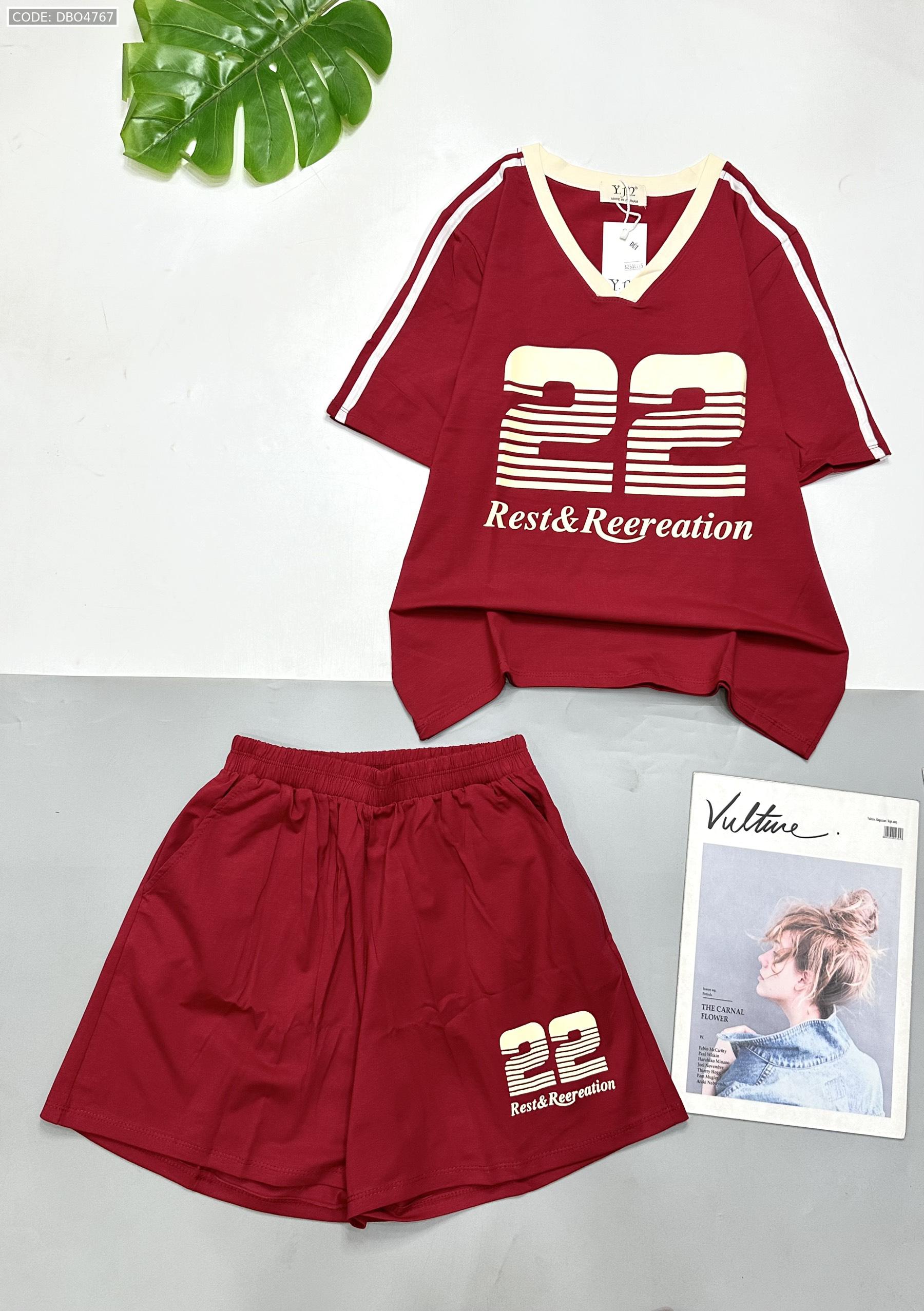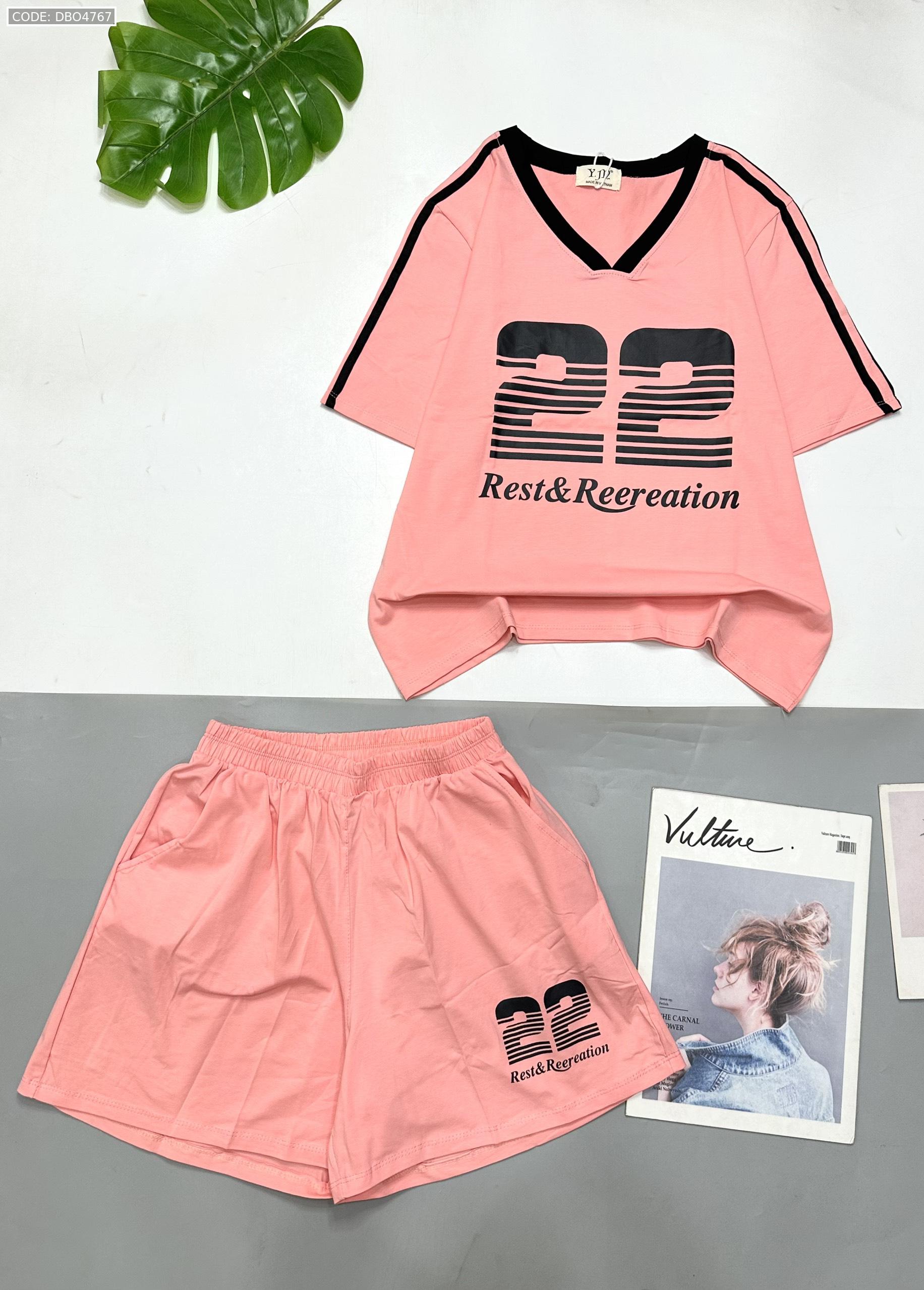 đồ bộ quần đùi áo tay ngắn cổ V in số 22