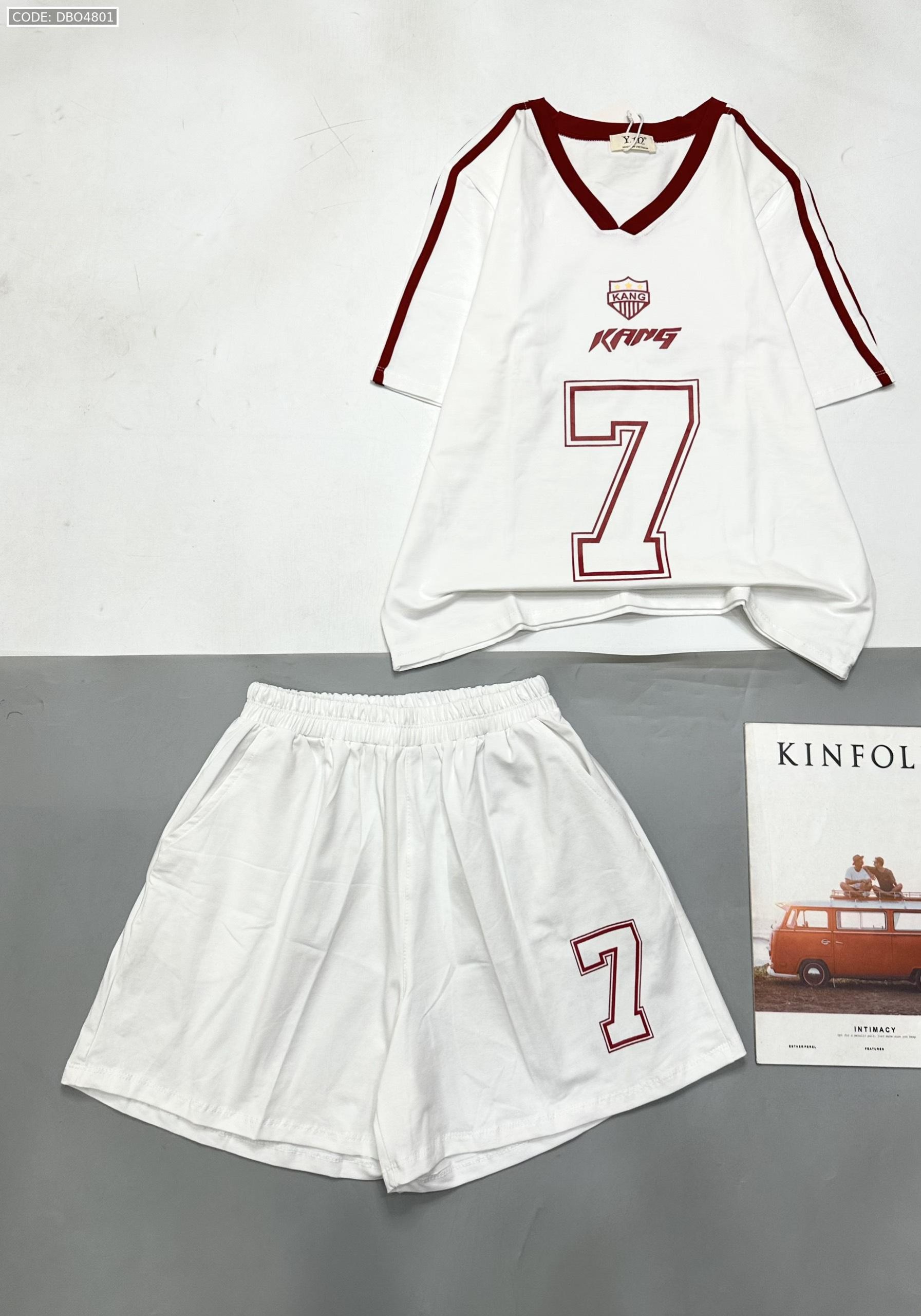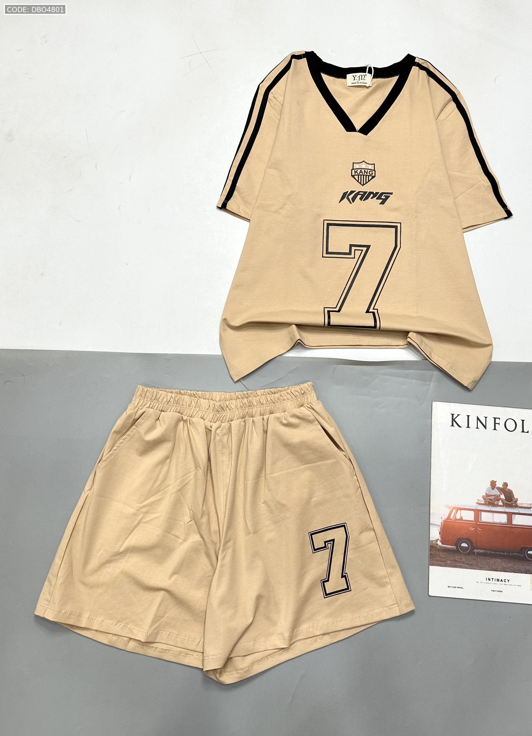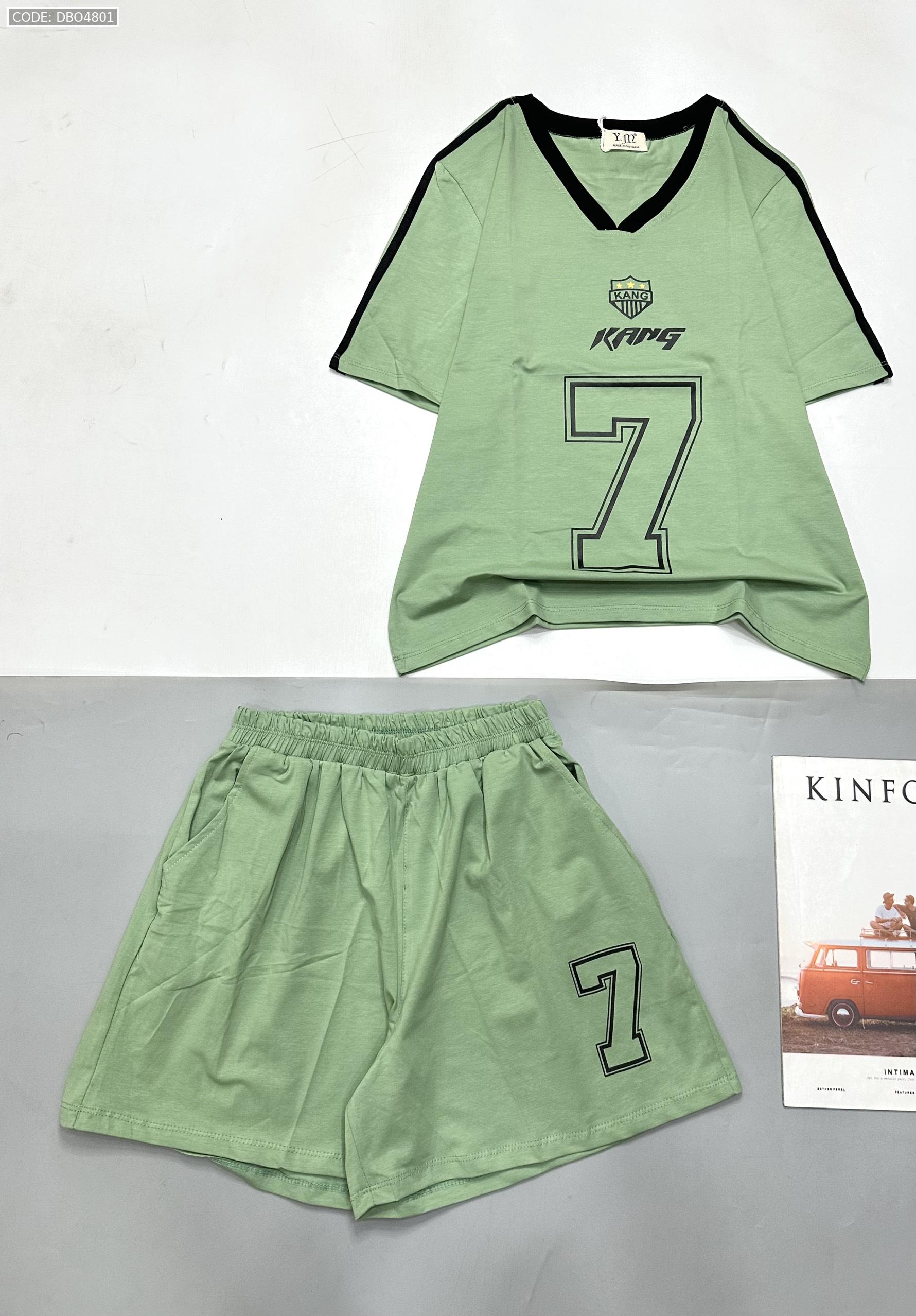 đồ bộ quần đùi áo tay ngắn cổ V in số 7