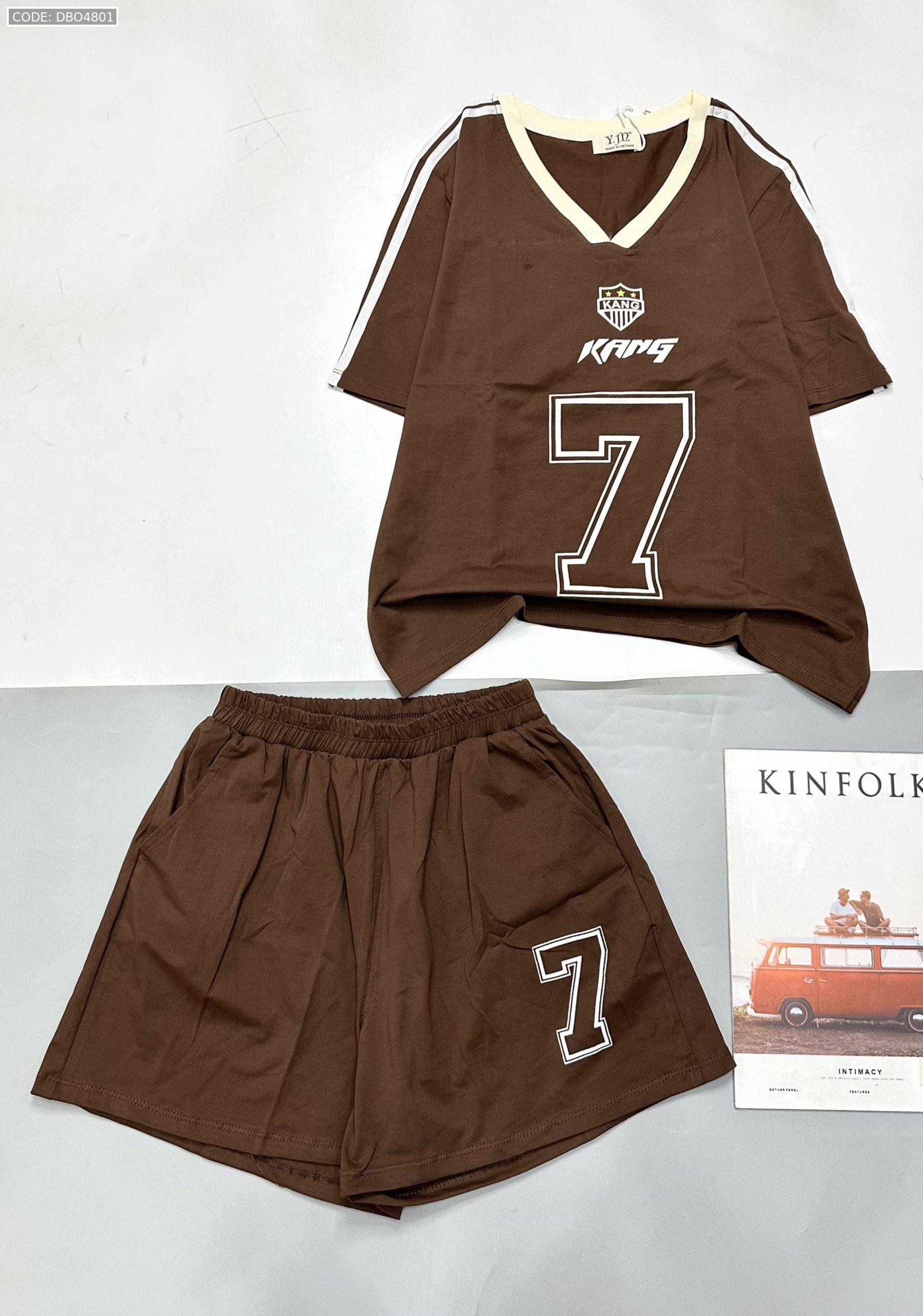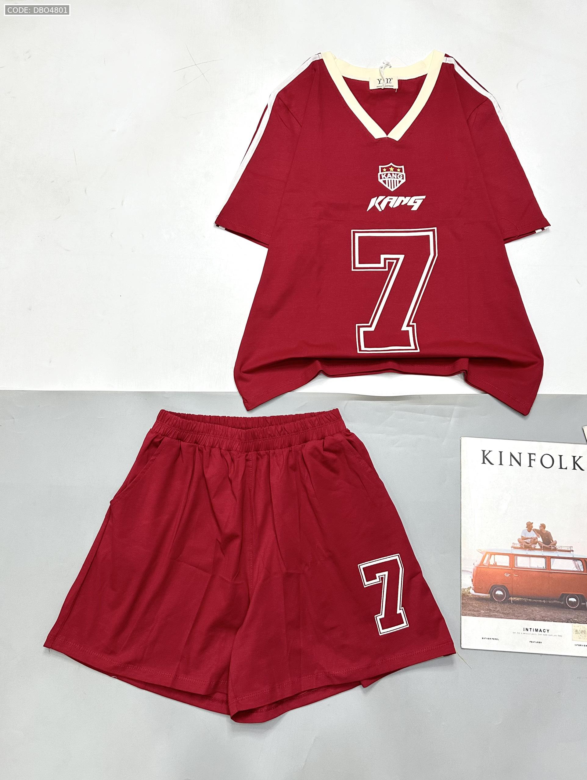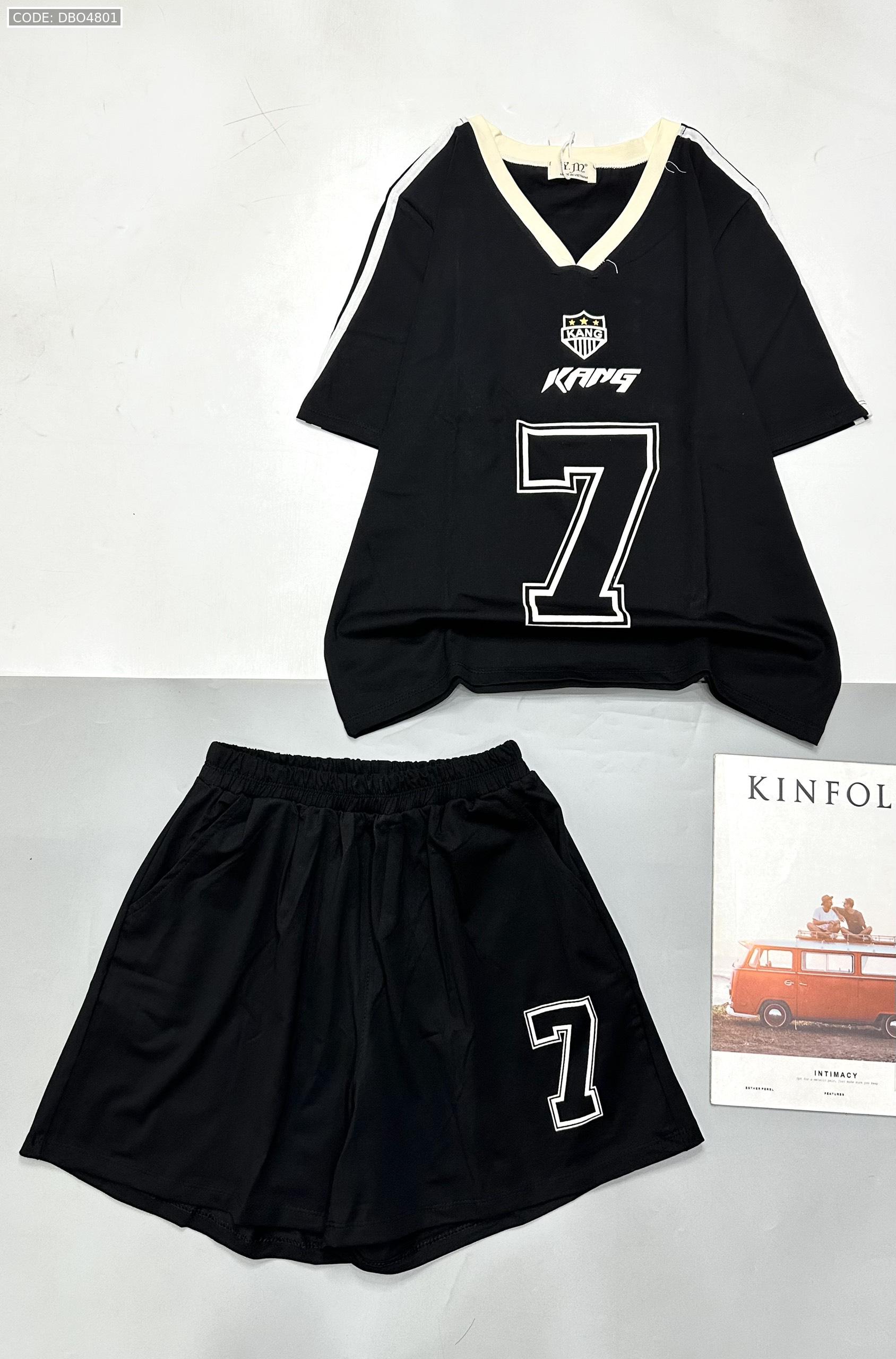 đồ bộ quần đùi áo tay ngắn cổ V in số 7