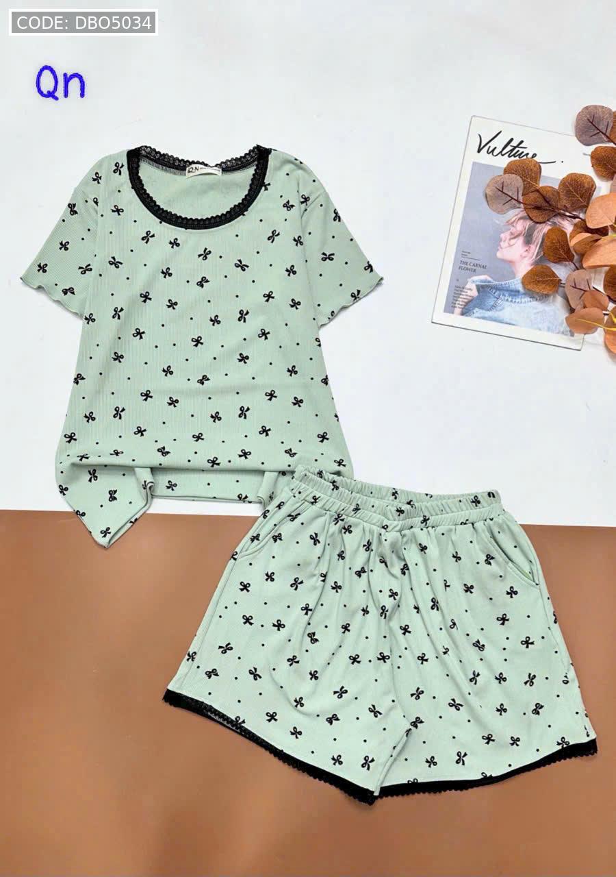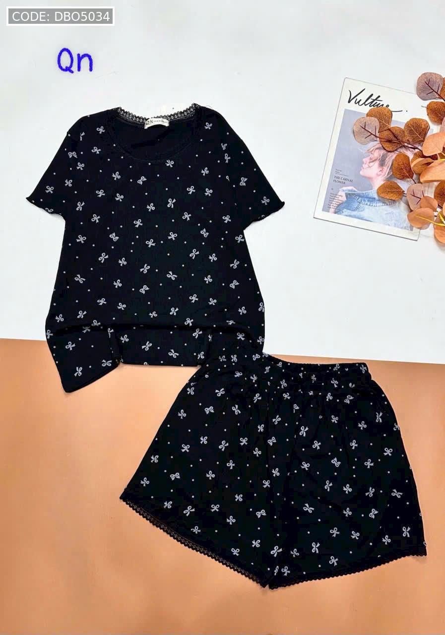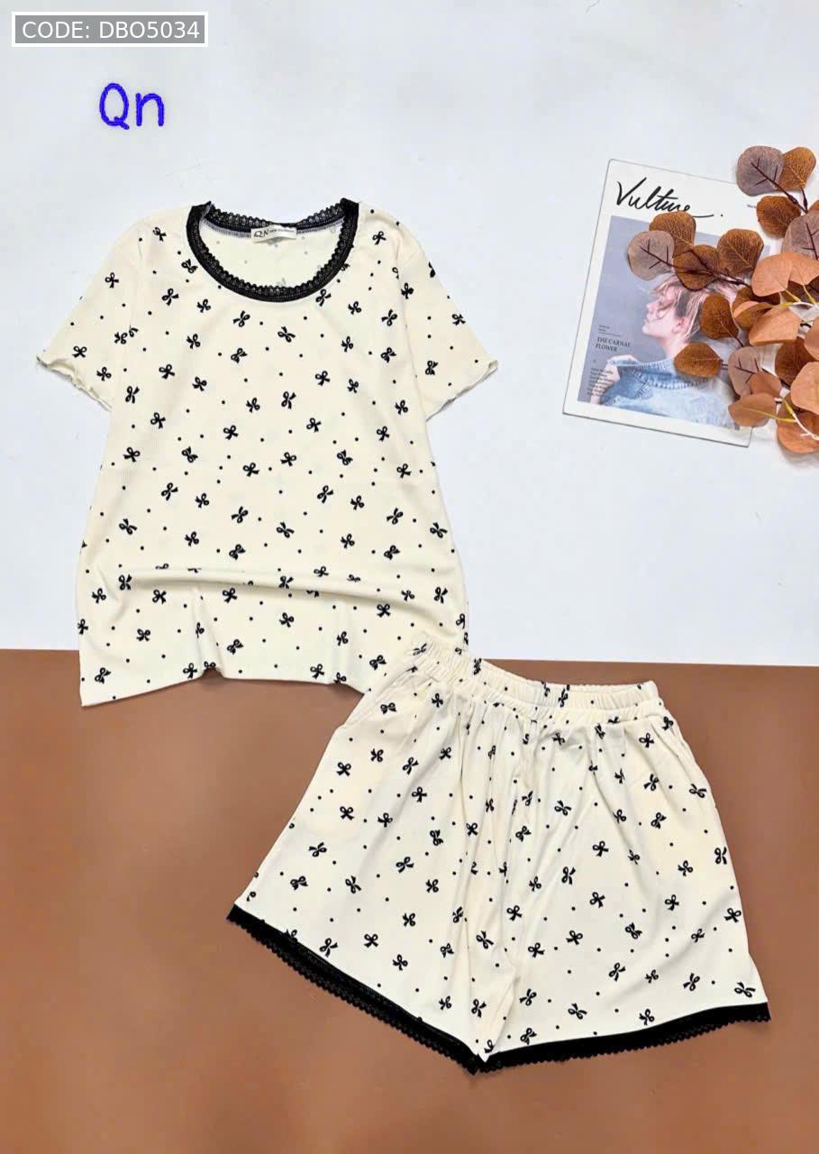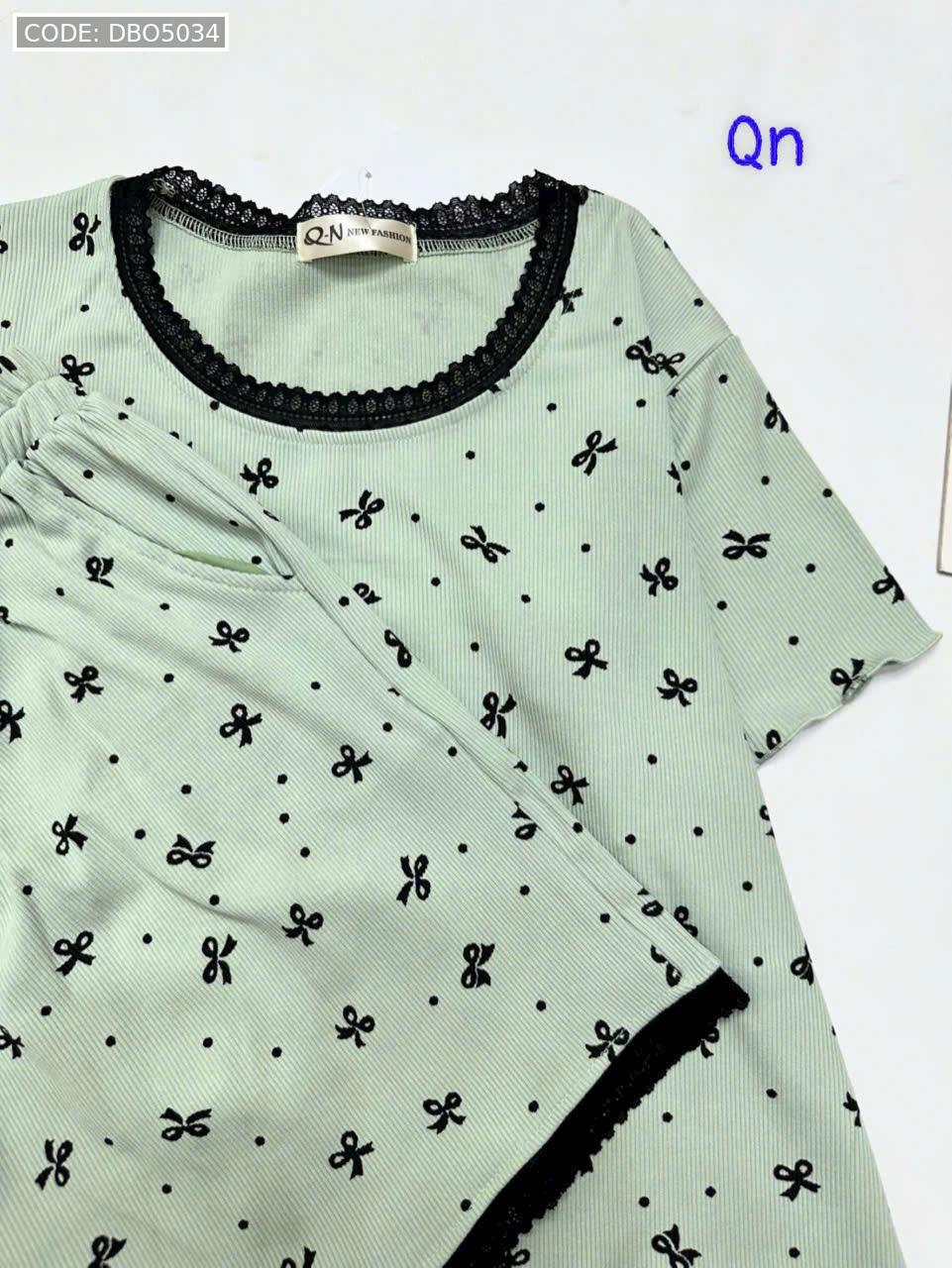 Đồ bộ quần đùi áo tay ngắn gân xin in nhiều nơ nhỏ