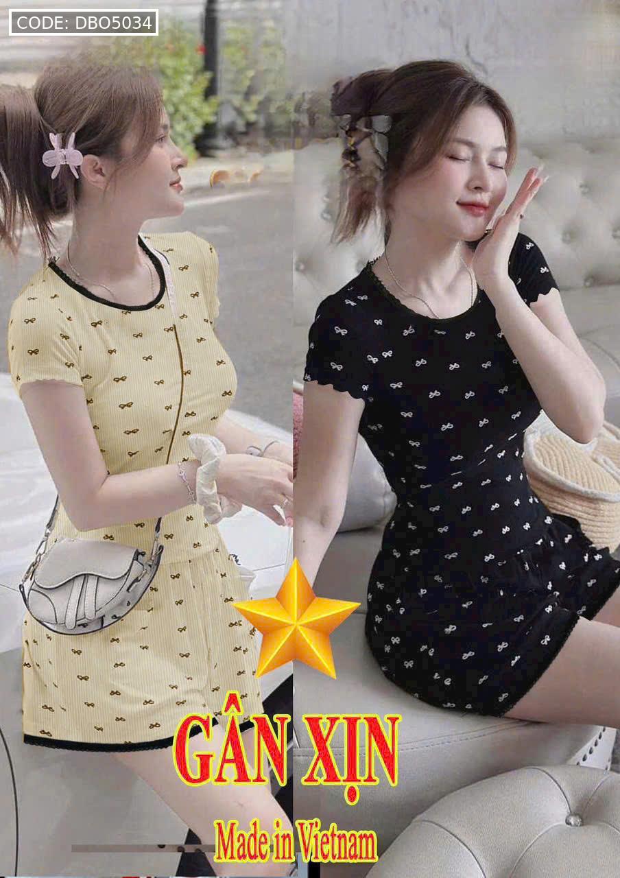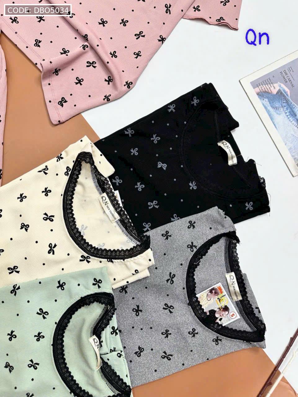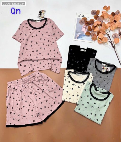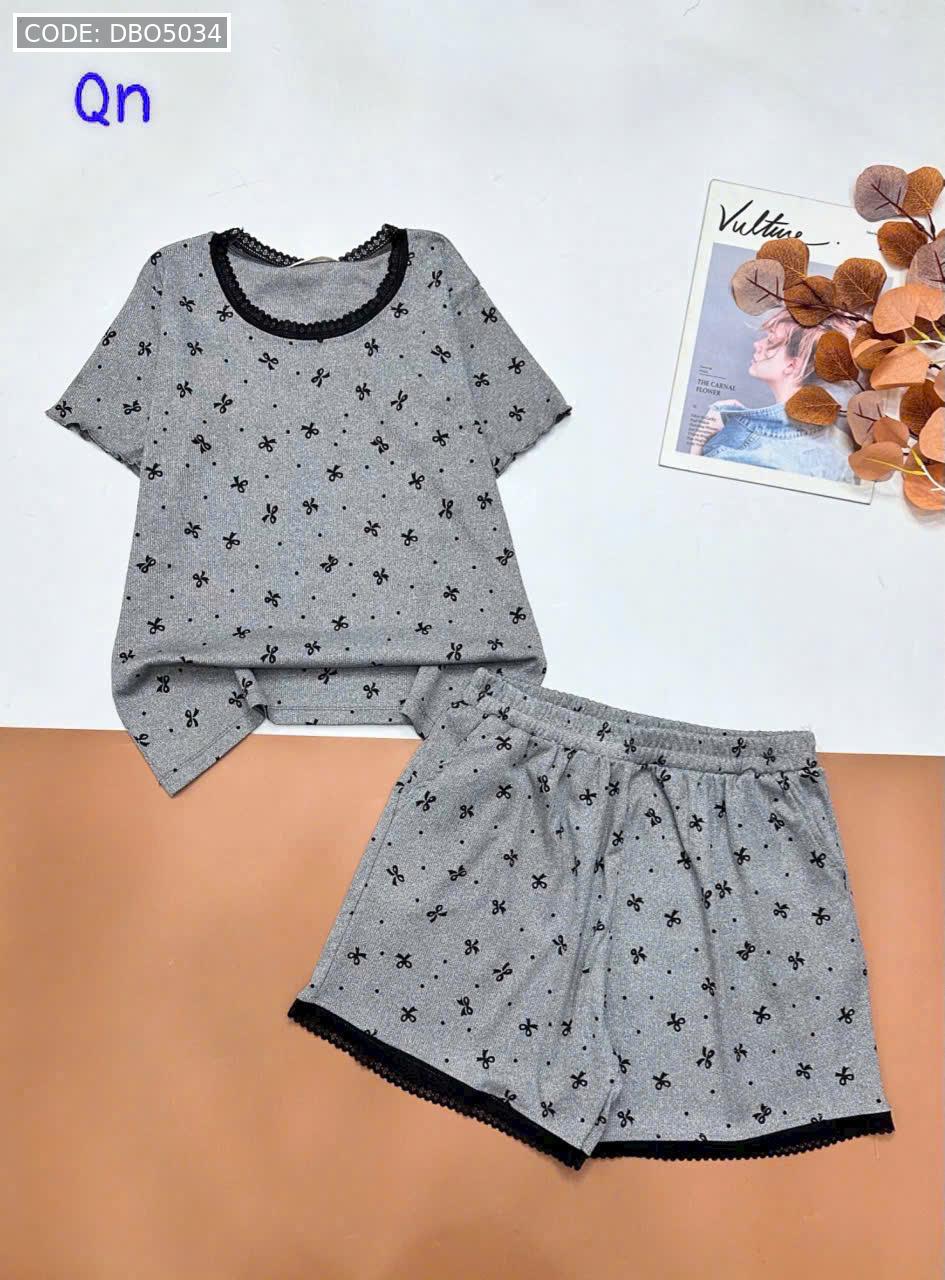 Đồ bộ quần đùi áo tay ngắn gân xin in nhiều nơ nhỏ