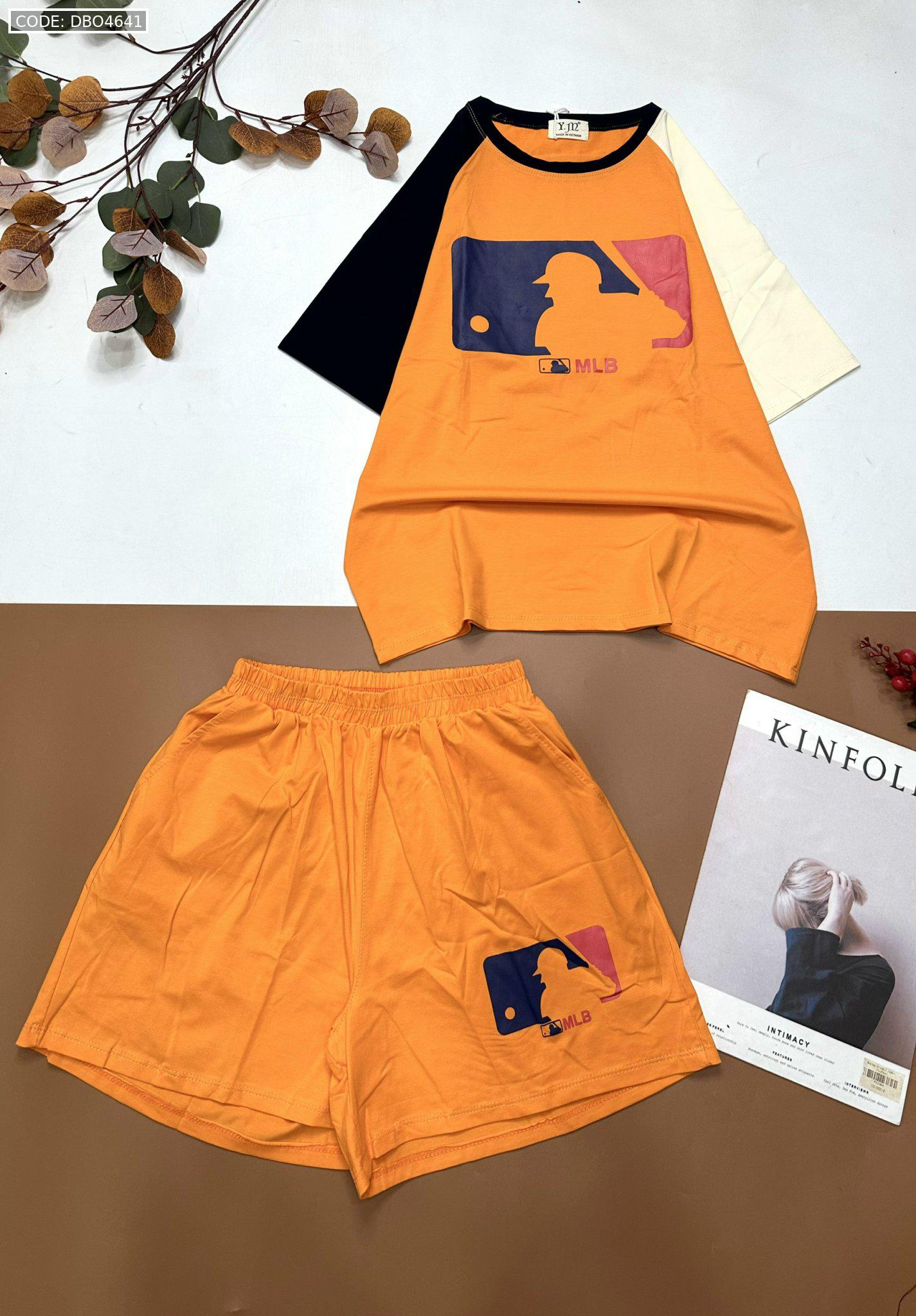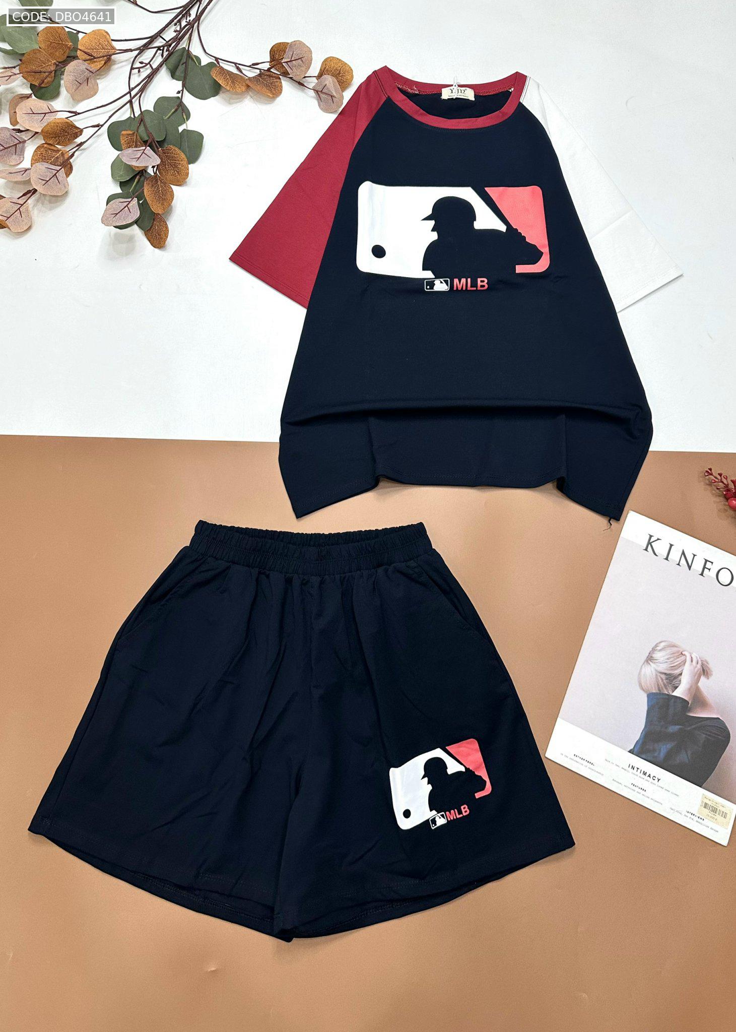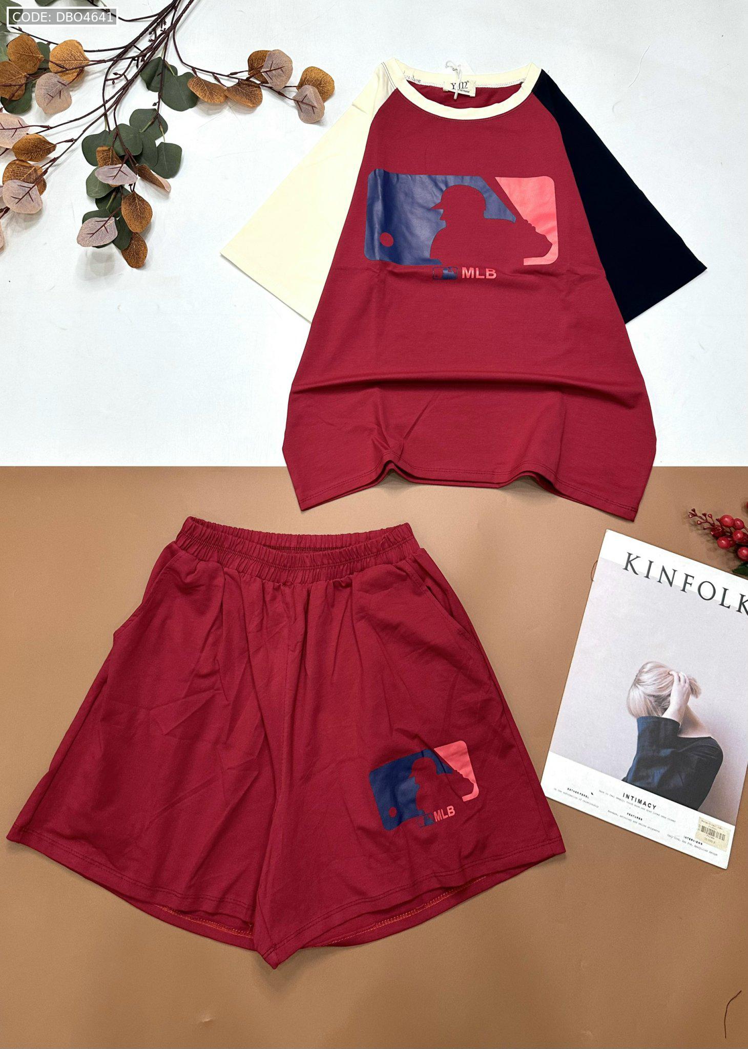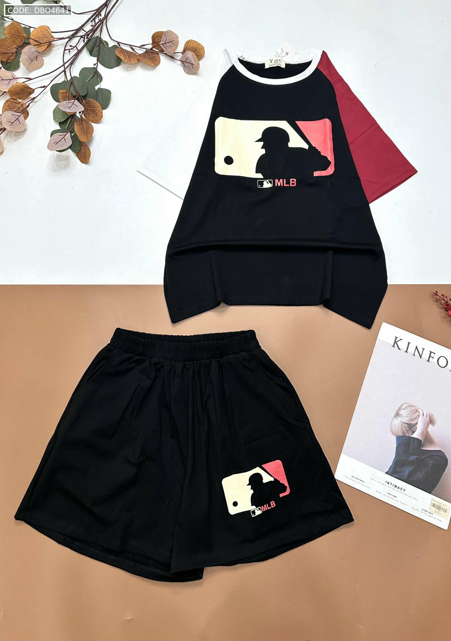 Đồ bộ quần đùi áo tay ngắn hai màu in chữ MLD
