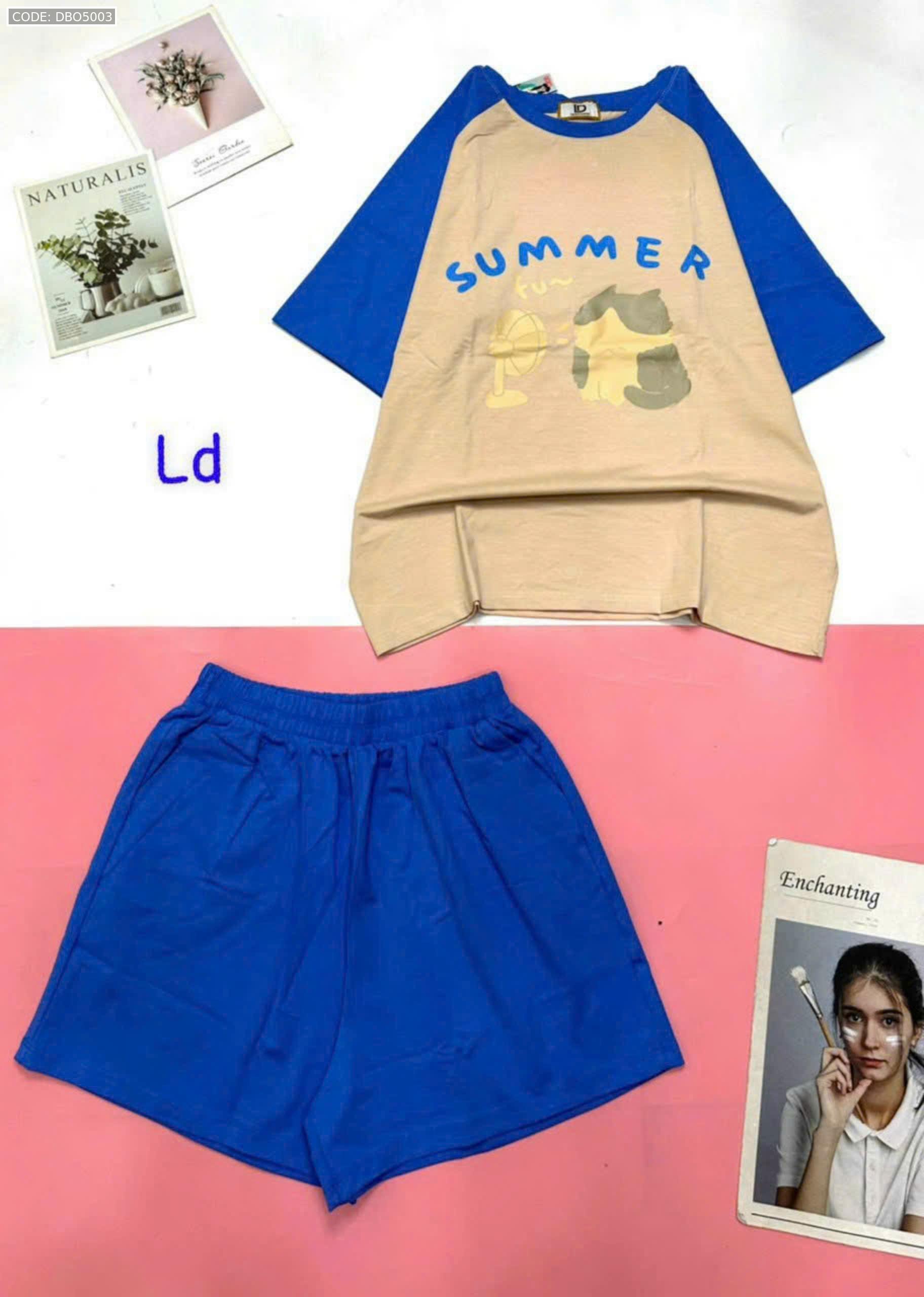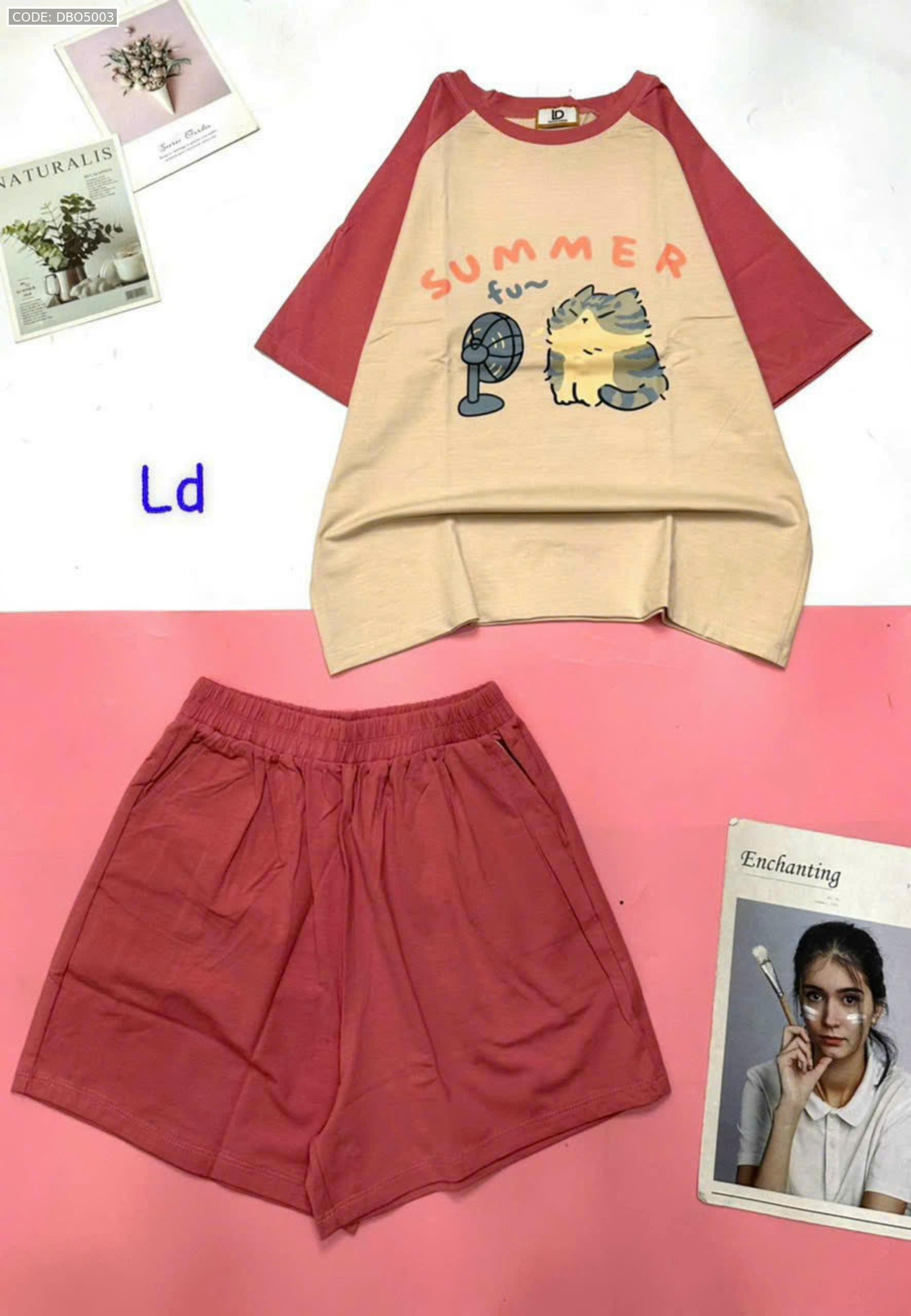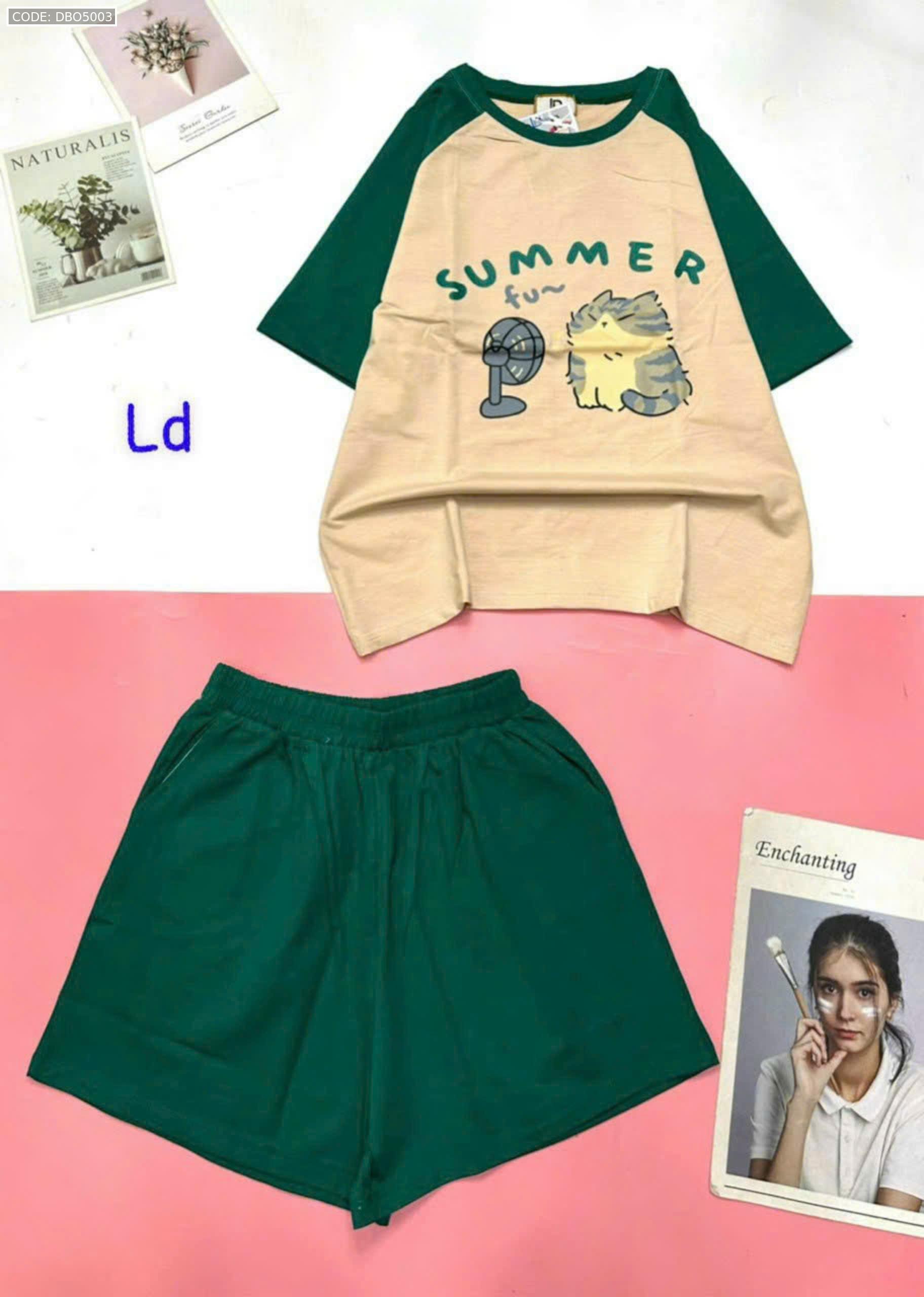 Đồ bộ quần đùi áo tay ngắn hình thỏ quạt