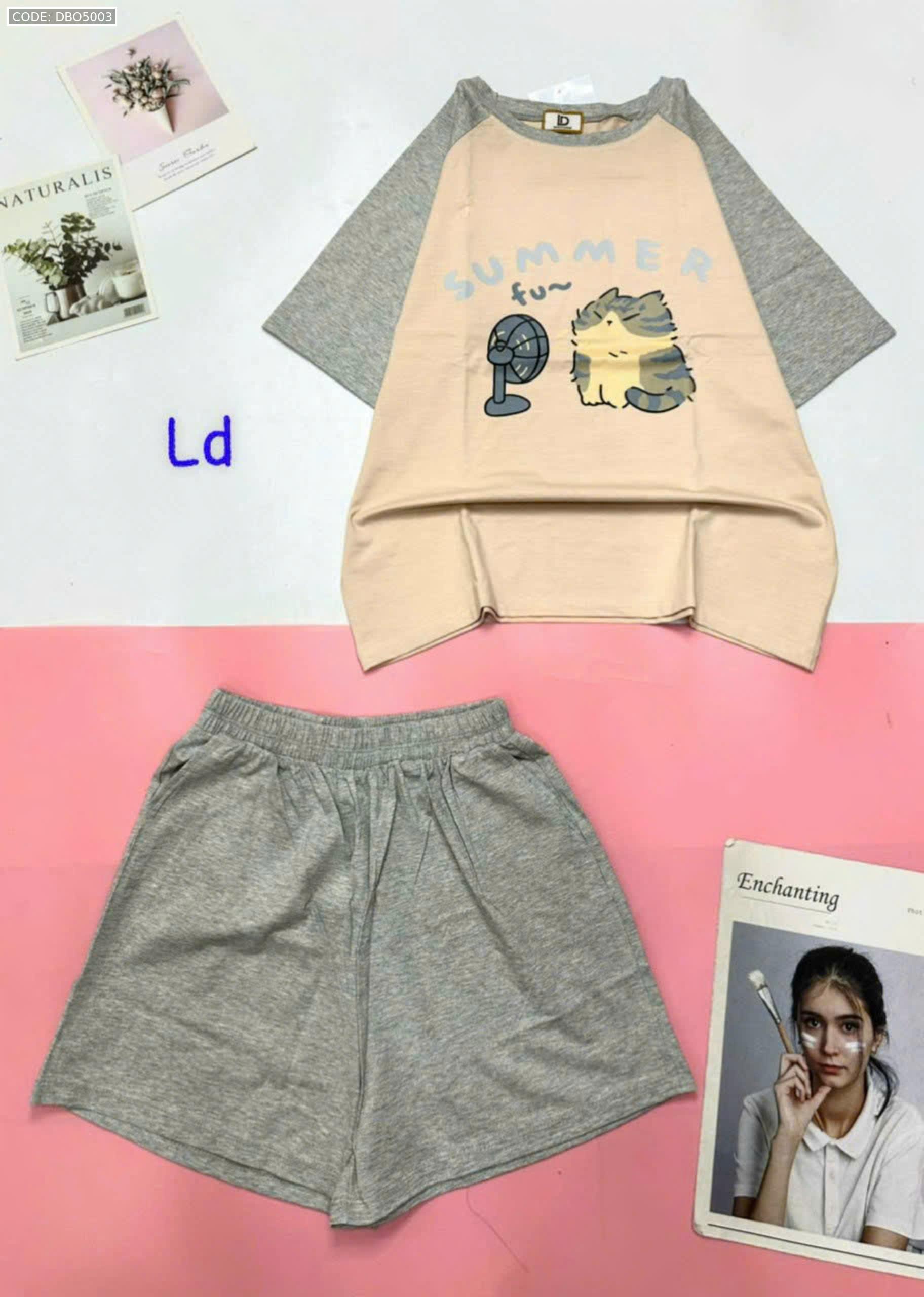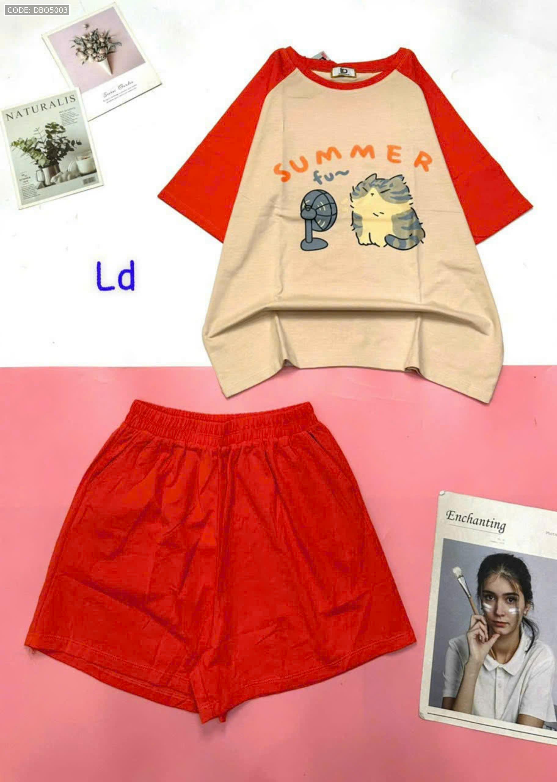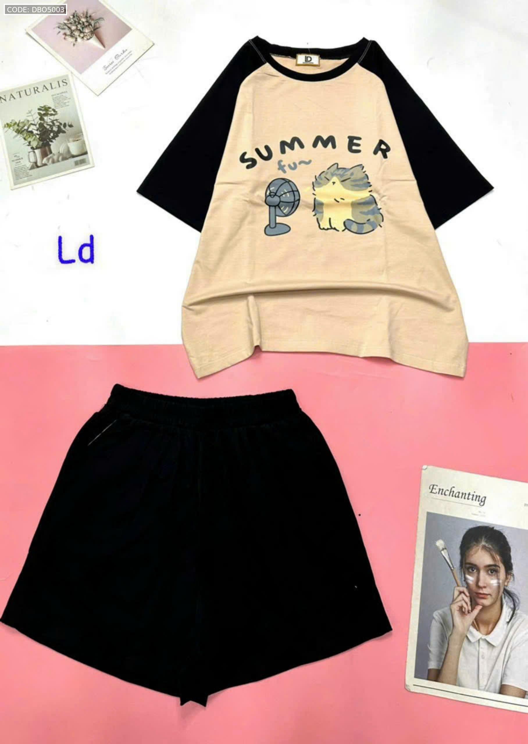 Đồ bộ quần đùi áo tay ngắn hình thỏ quạt