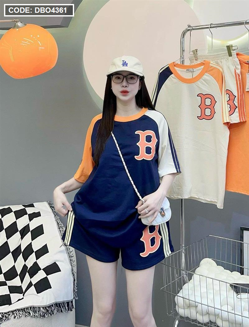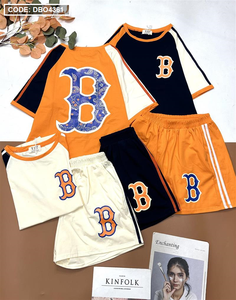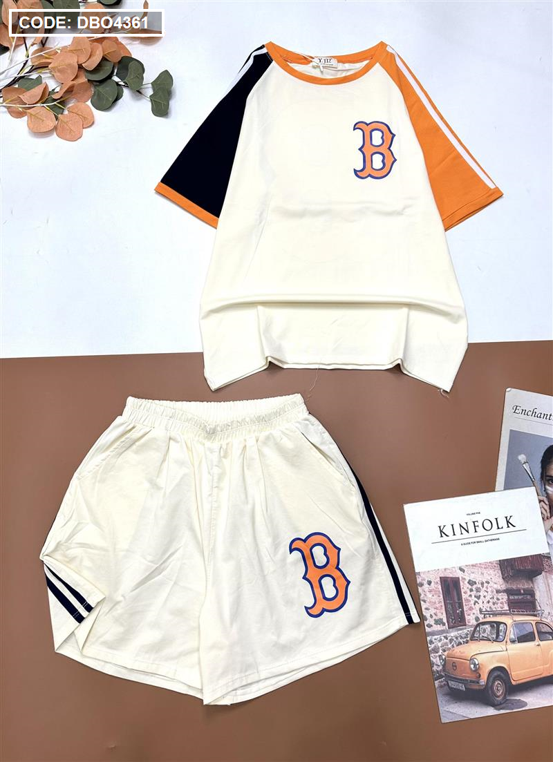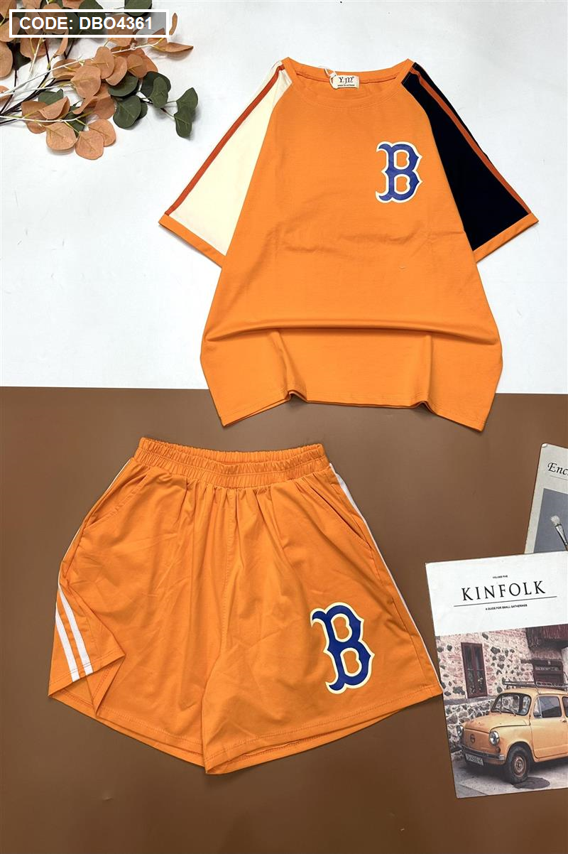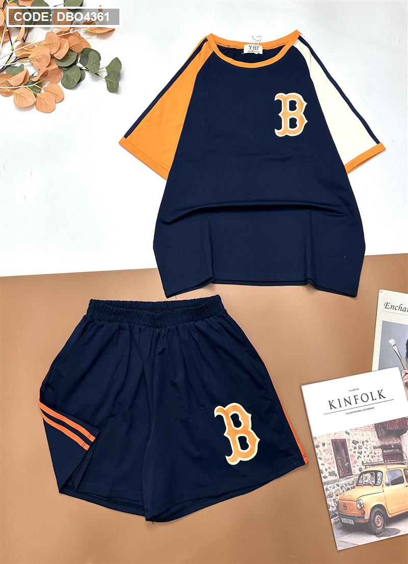 Đồ bộ quần đùi áo tay ngắn in chữ B trước và sau áo