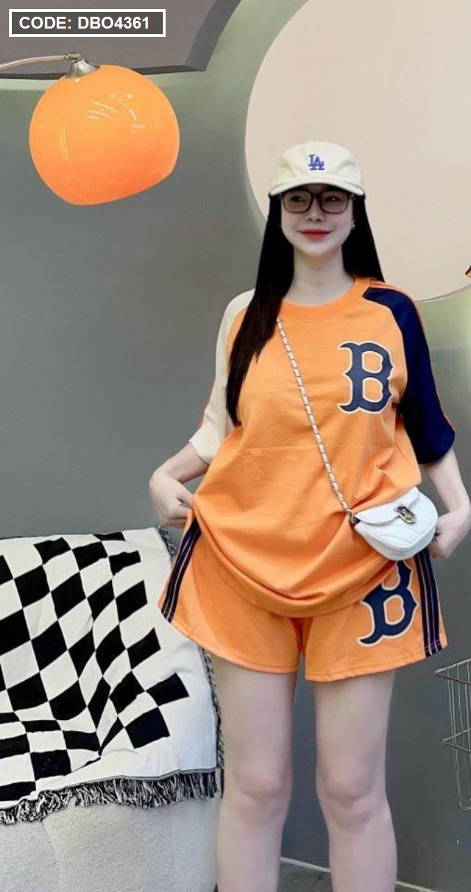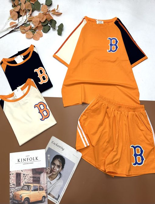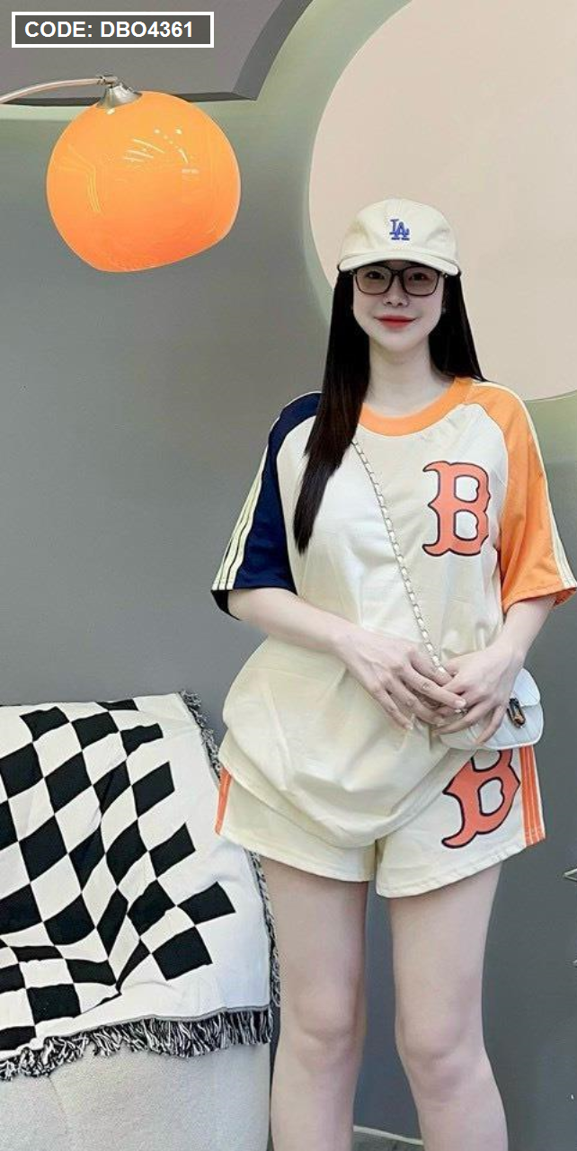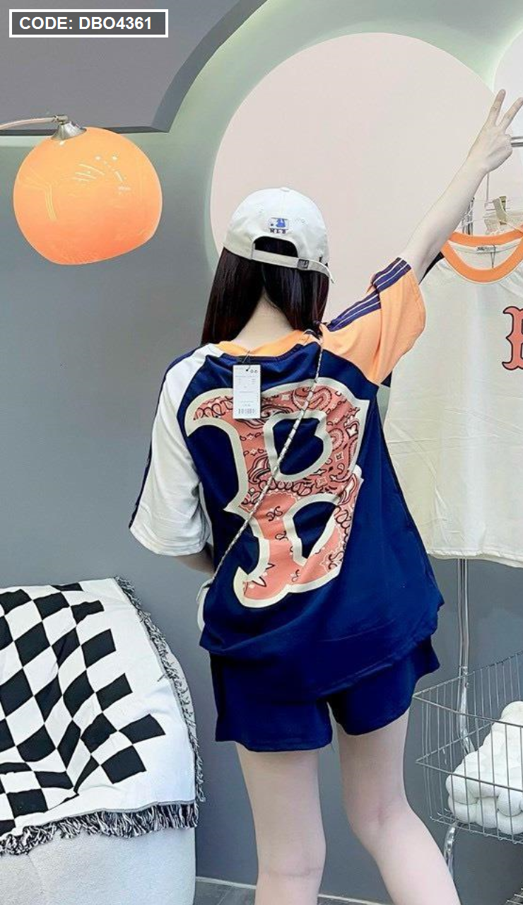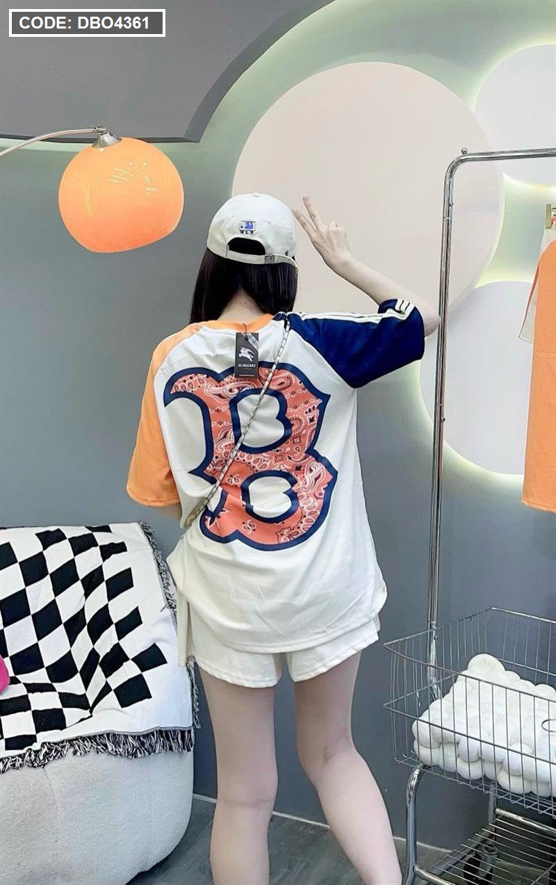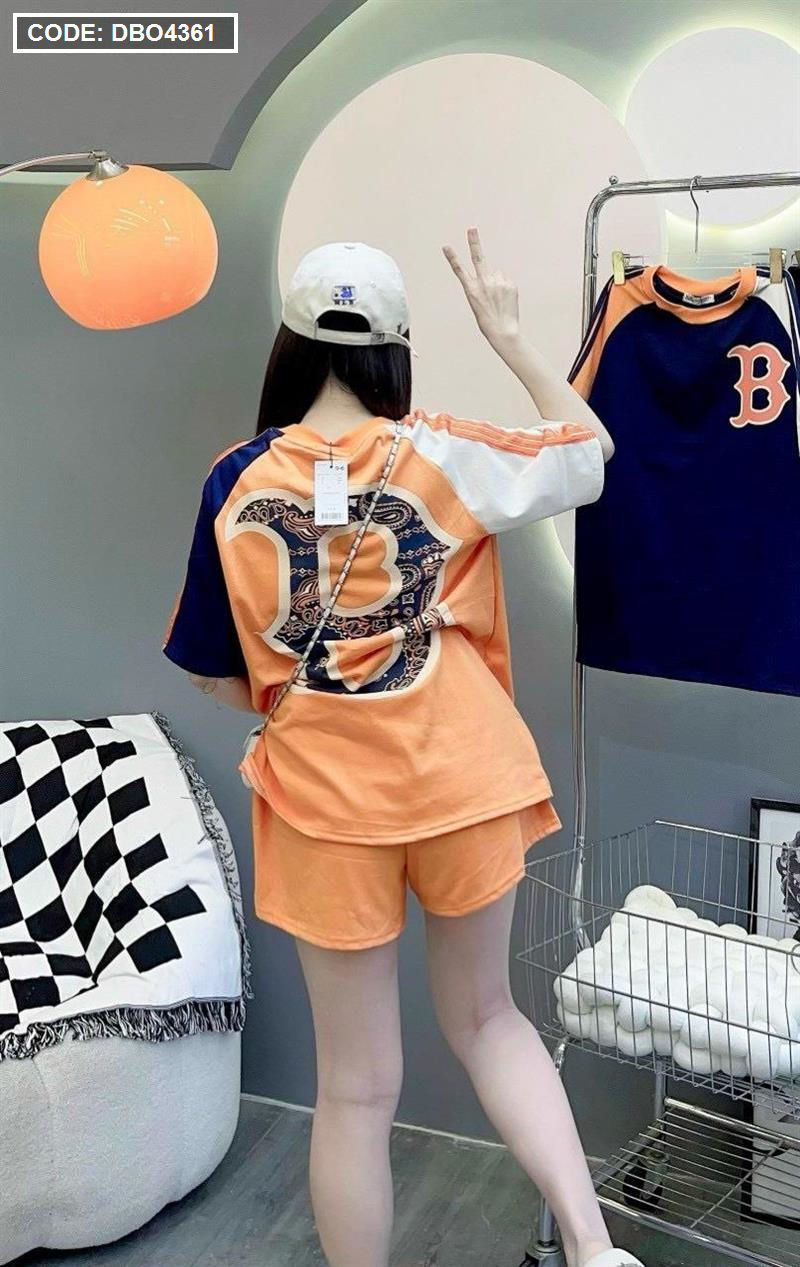 Đồ bộ quần đùi áo tay ngắn in chữ B trước và sau áo