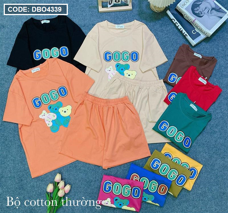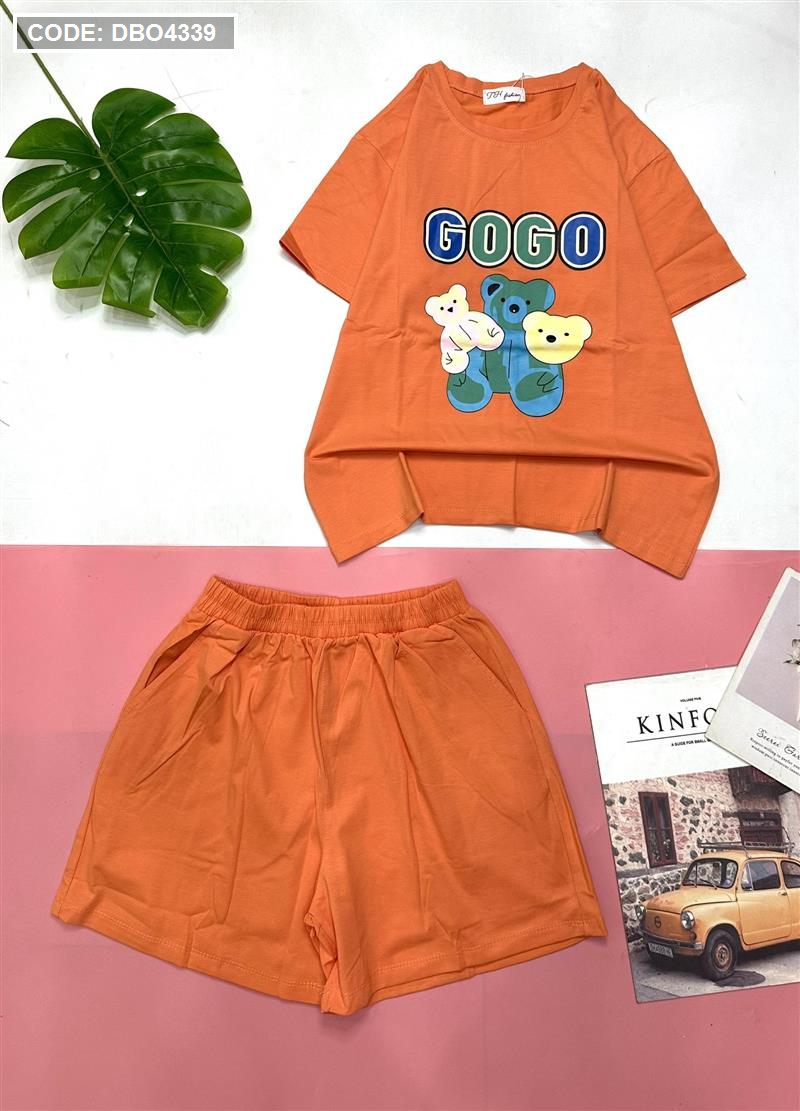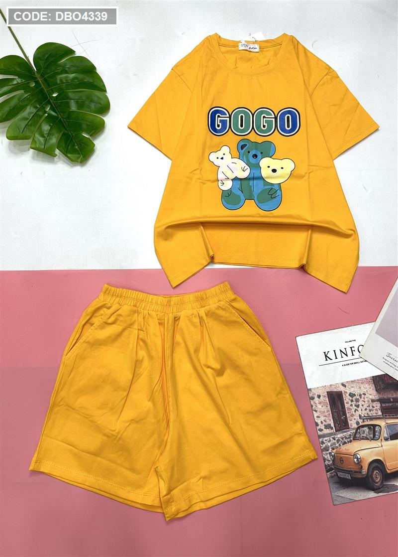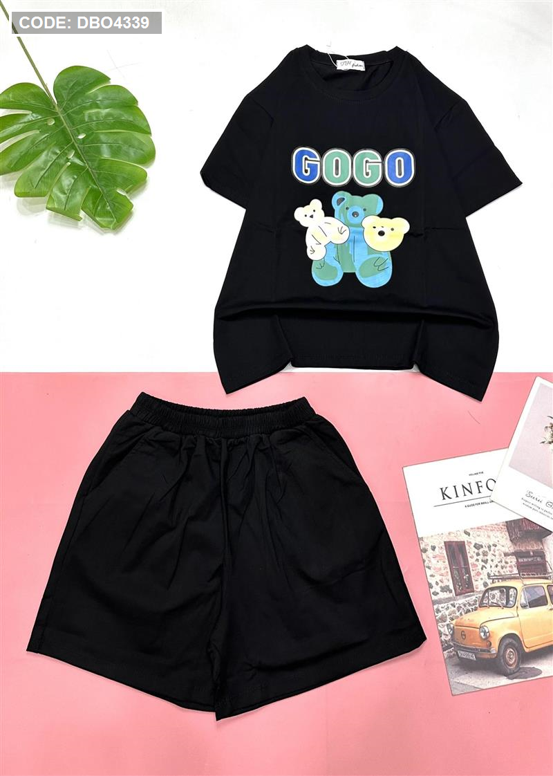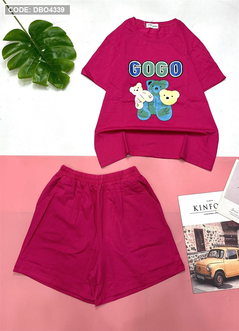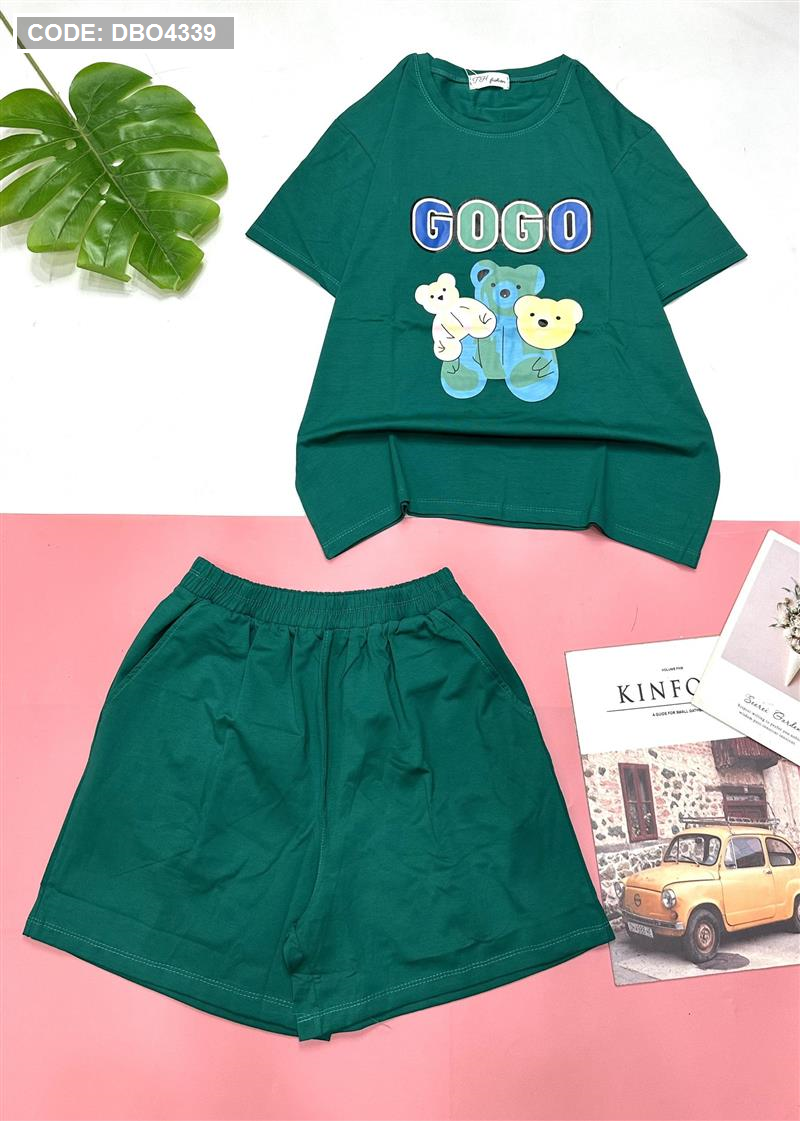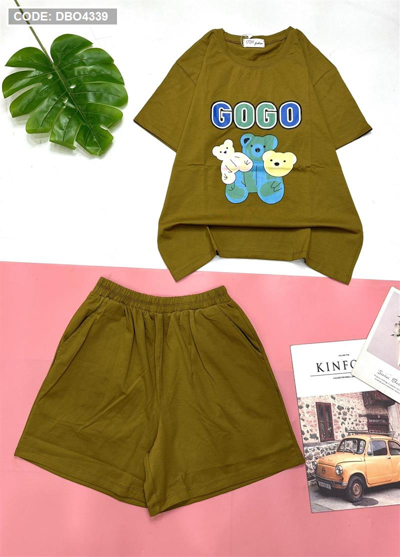 Đồ bộ quần đùi áo tay ngắn in chữ gogo và hình gấu