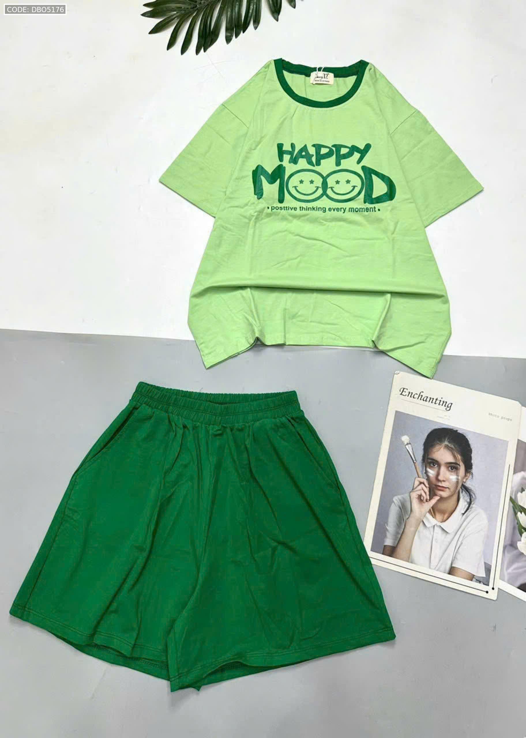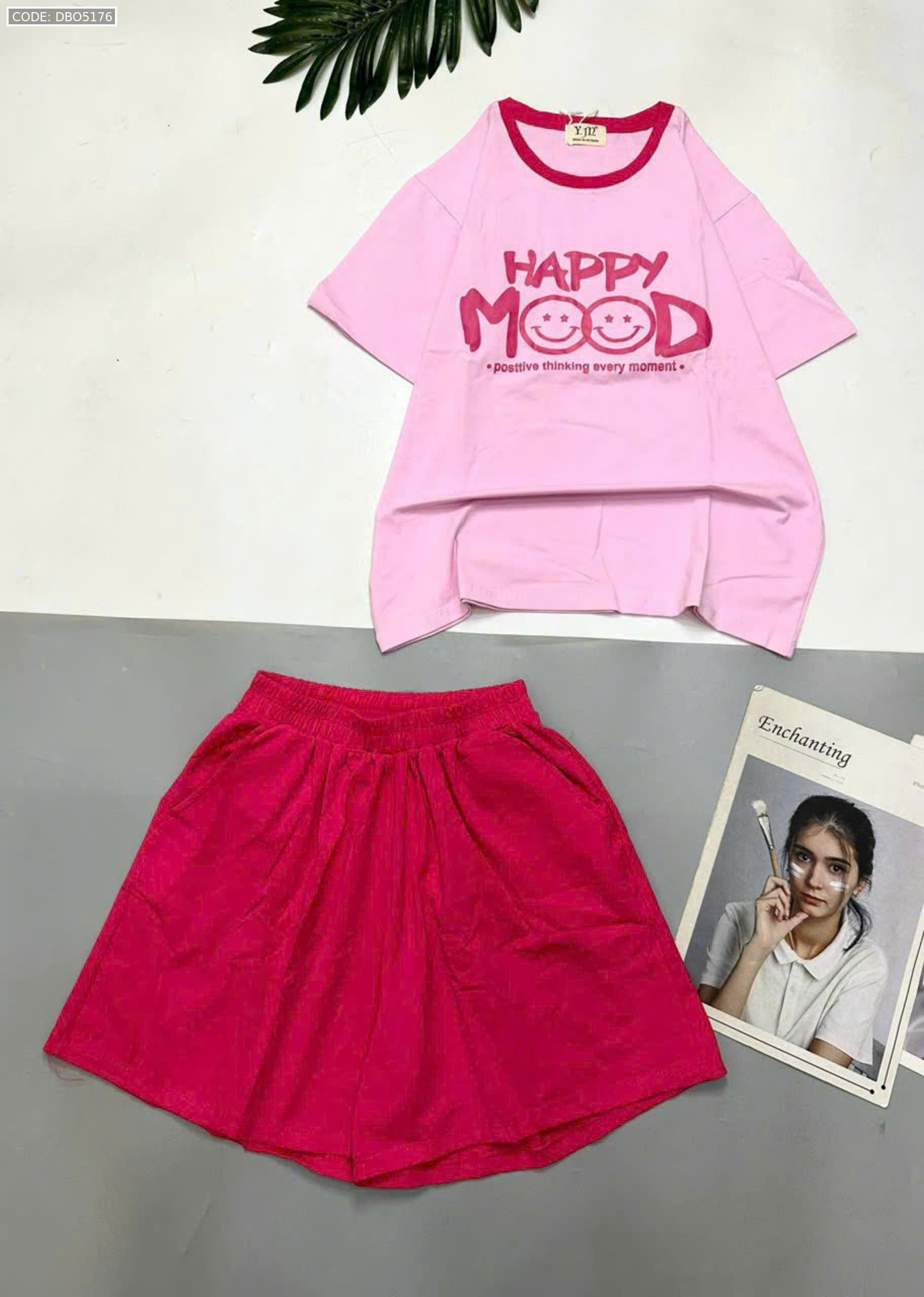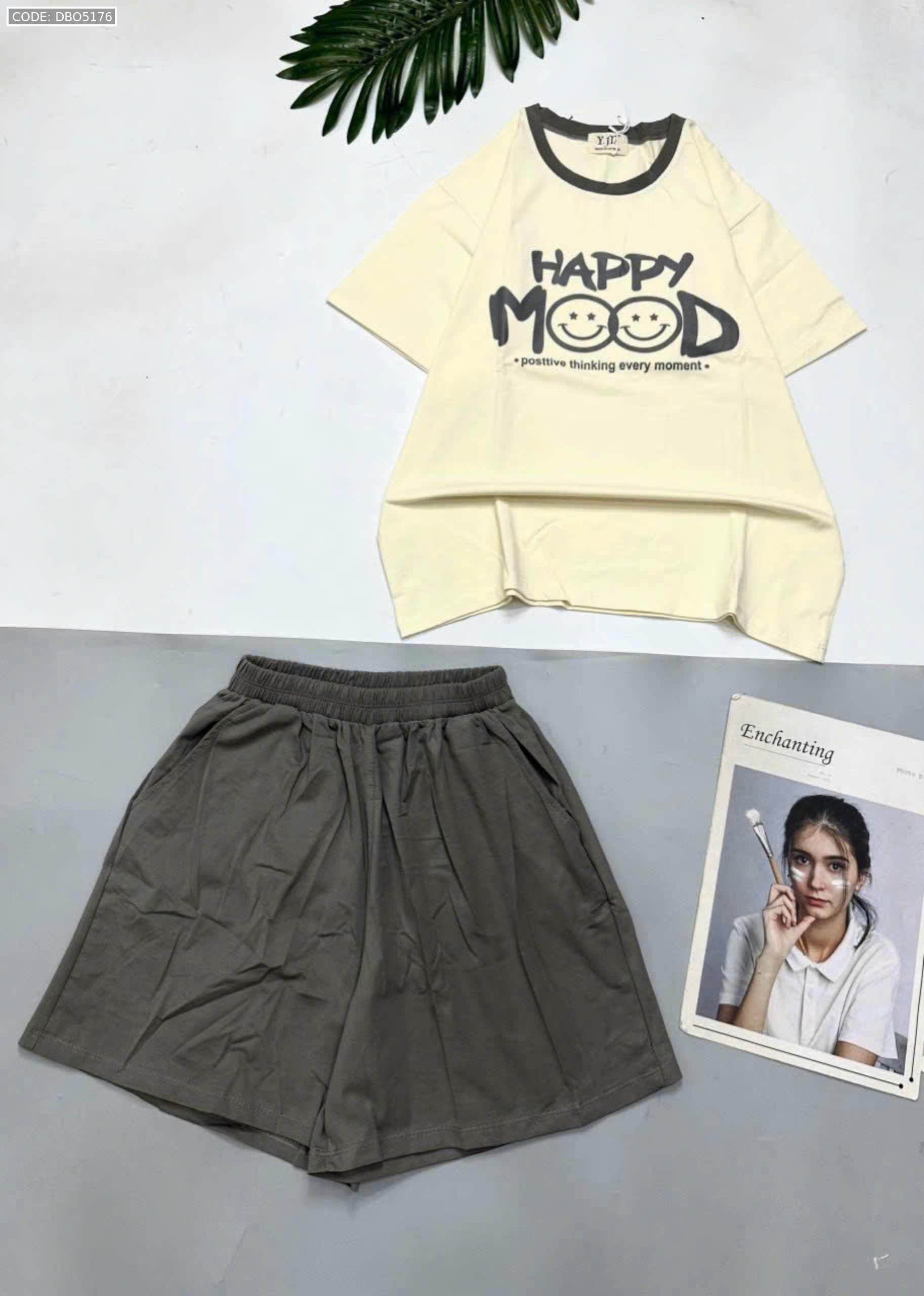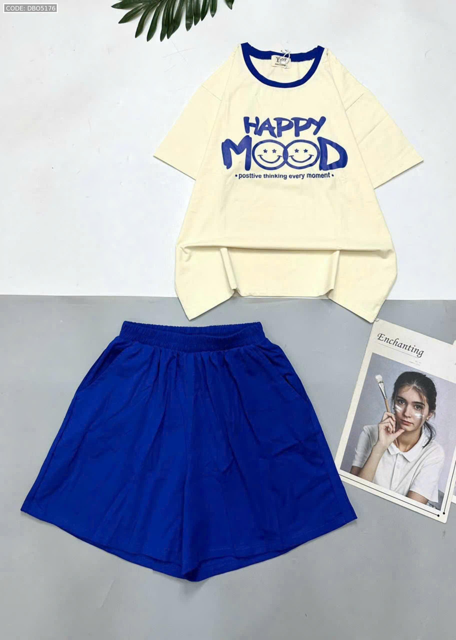 Đồ bộ quần đùi áo tay ngắn in chữ Happy