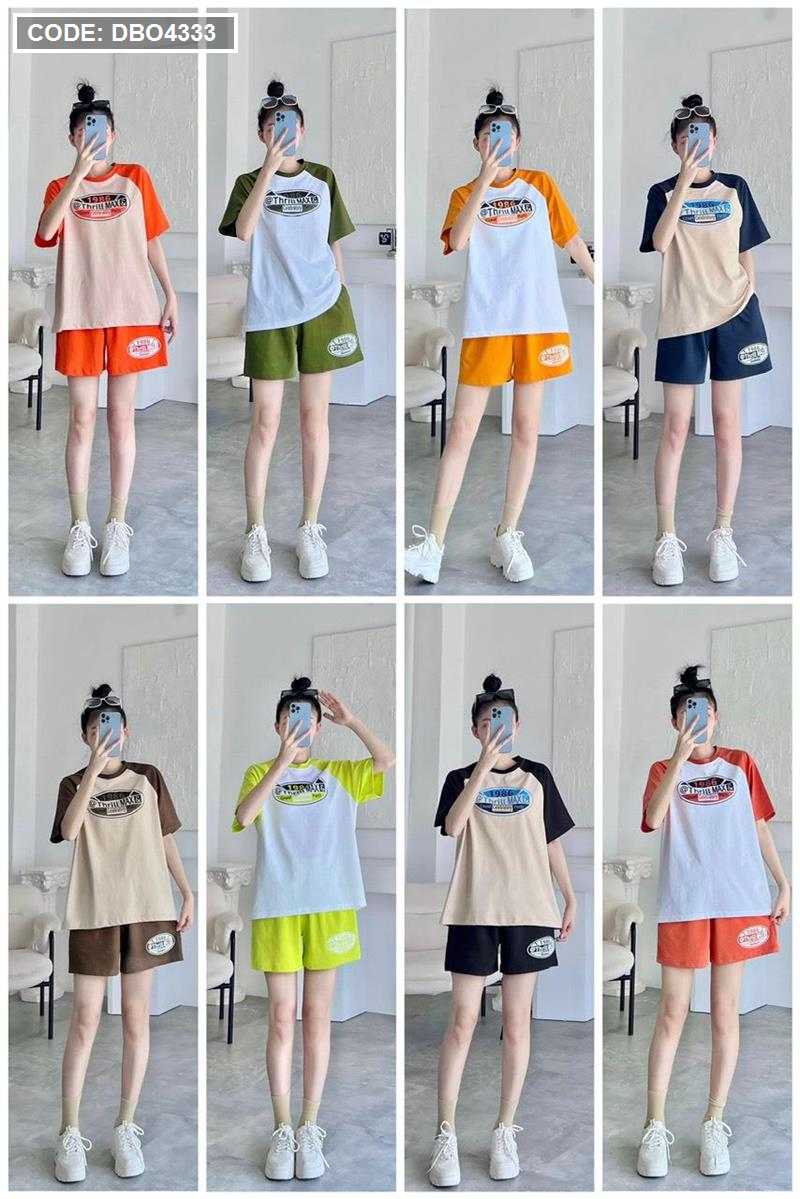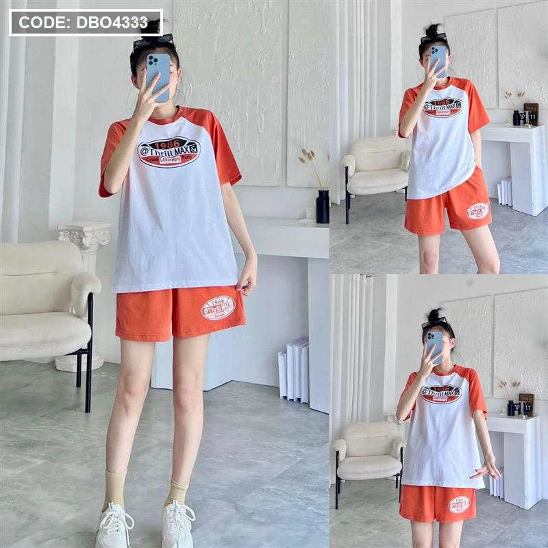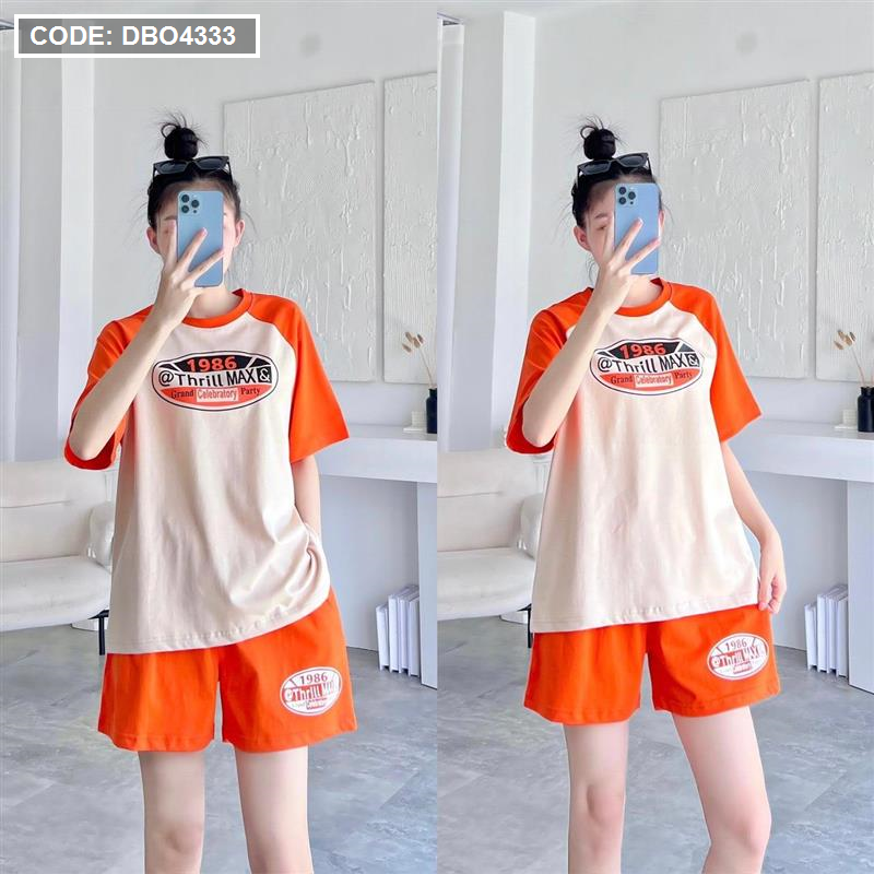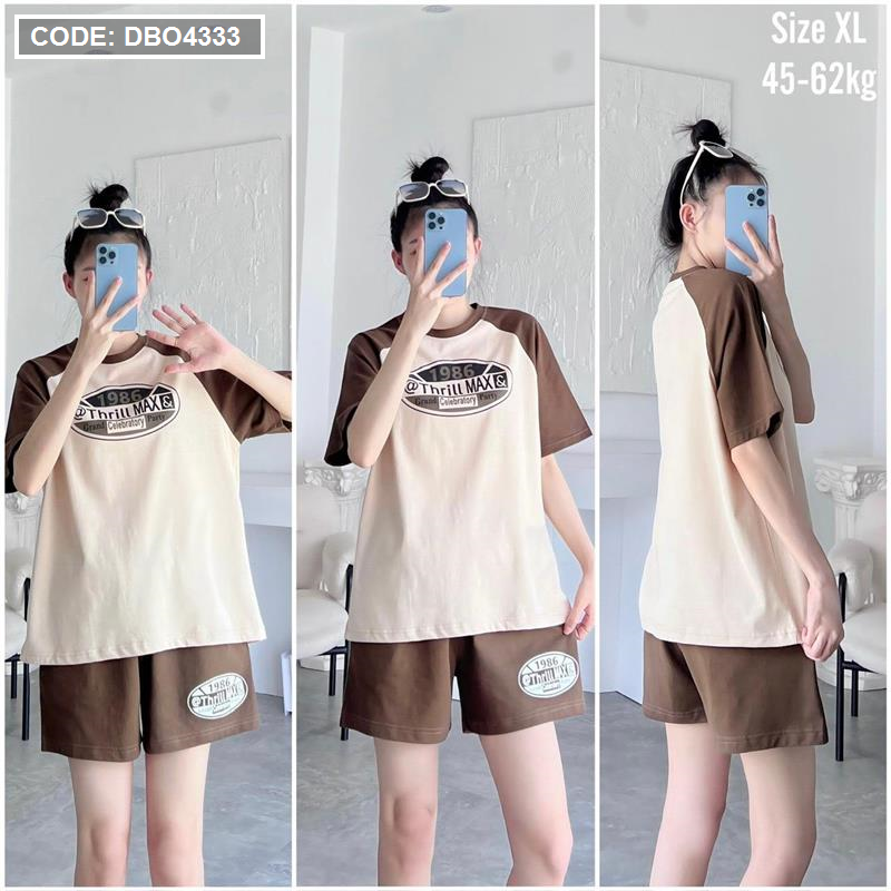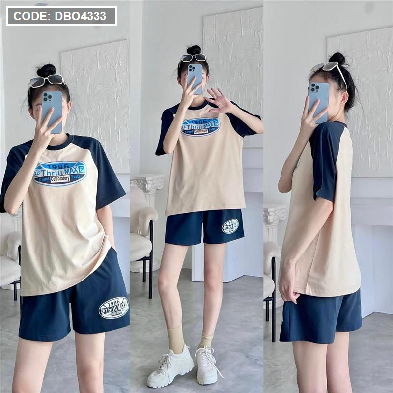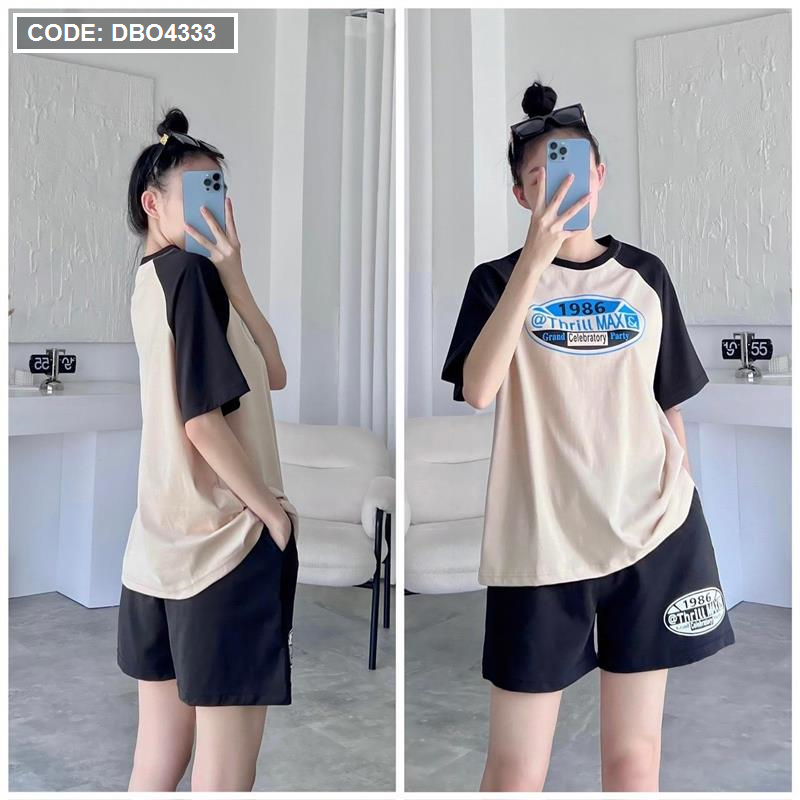 Đồ bộ quần đùi áo tay ngắn in chữ và in số 1986