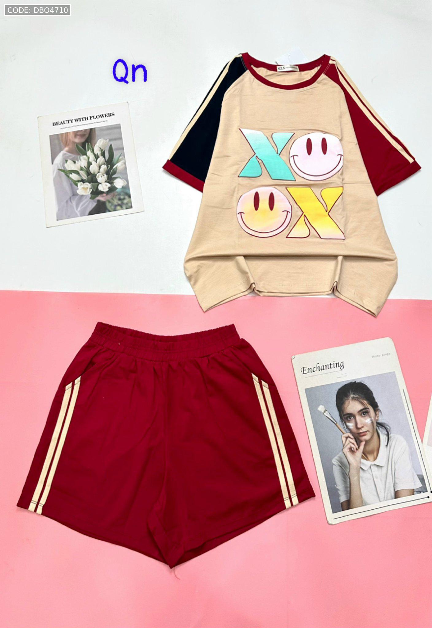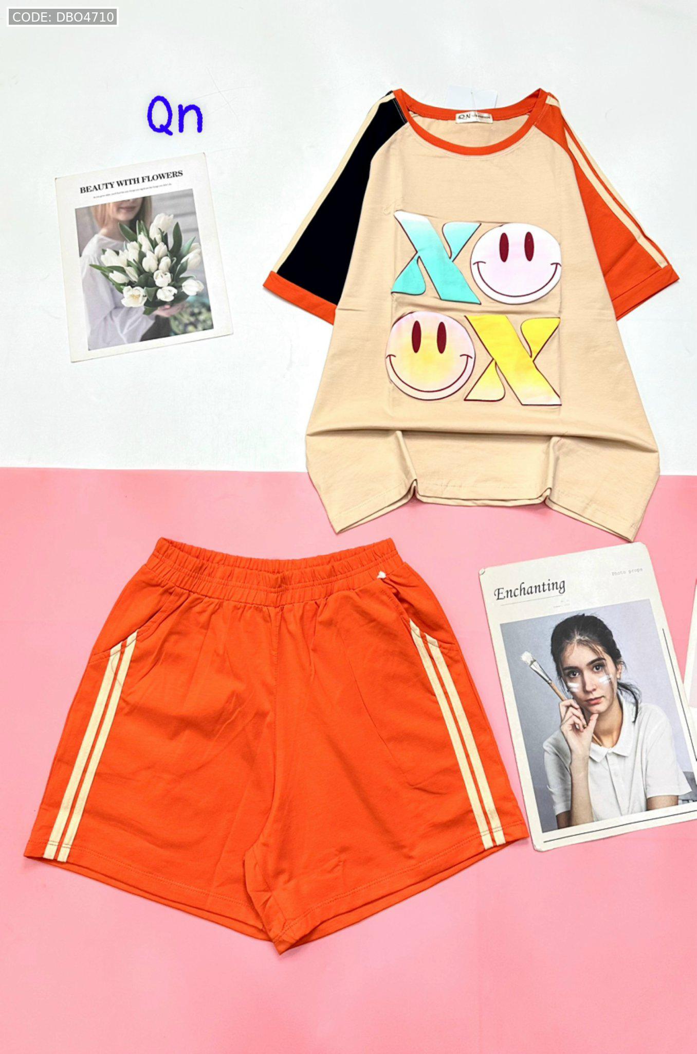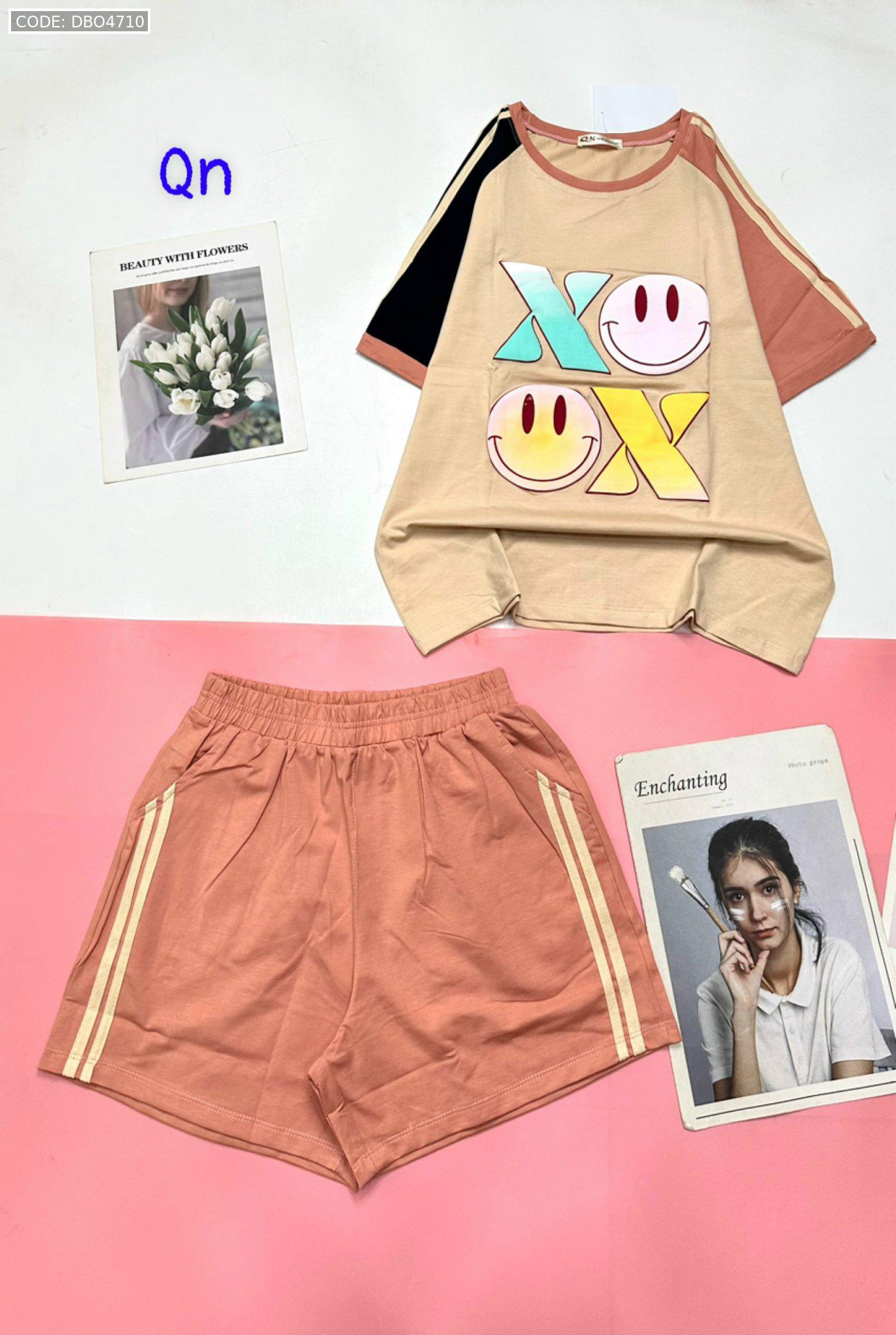 Đồ bộ quần đùi áo tay ngắn in chữ X mặt cười