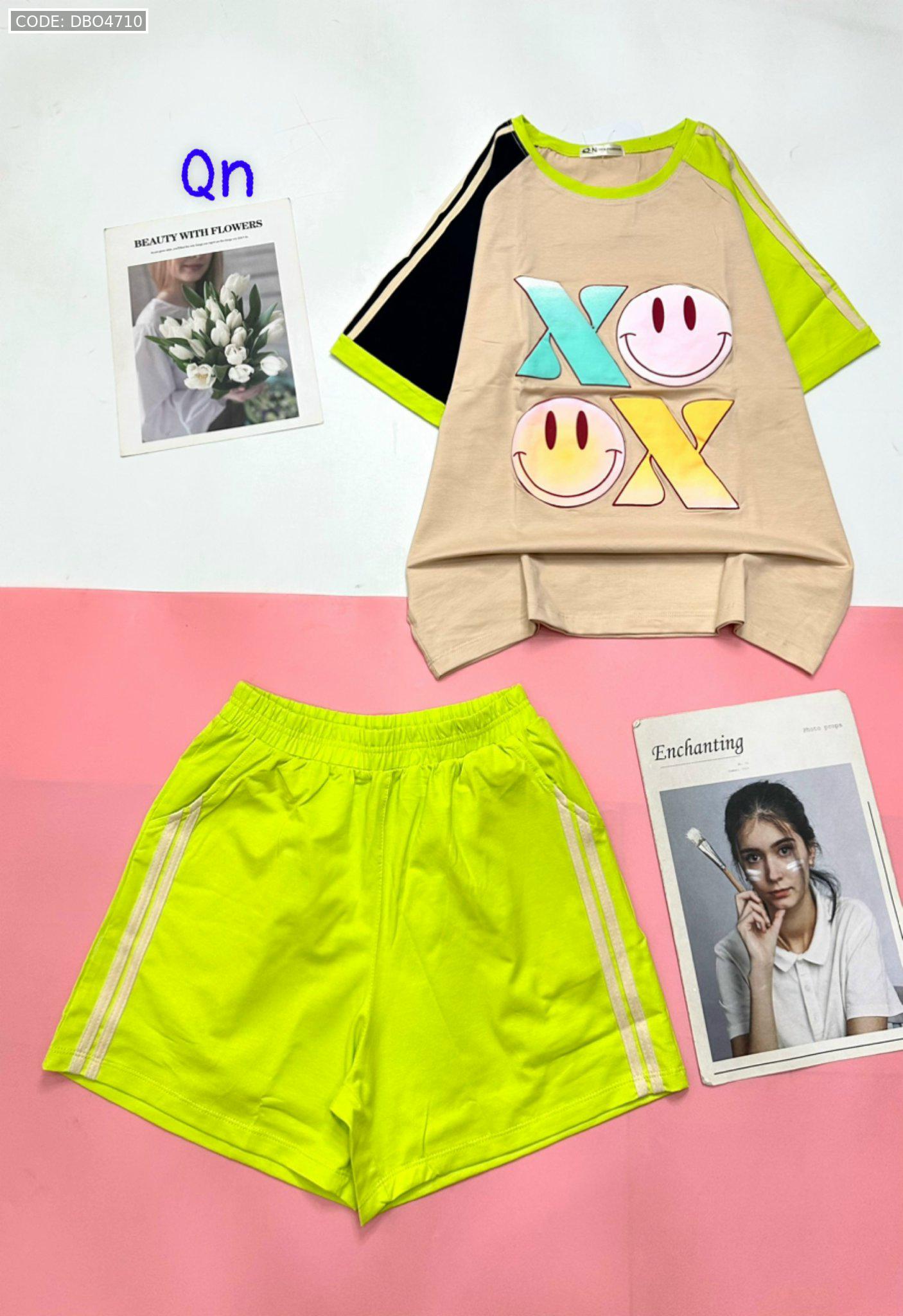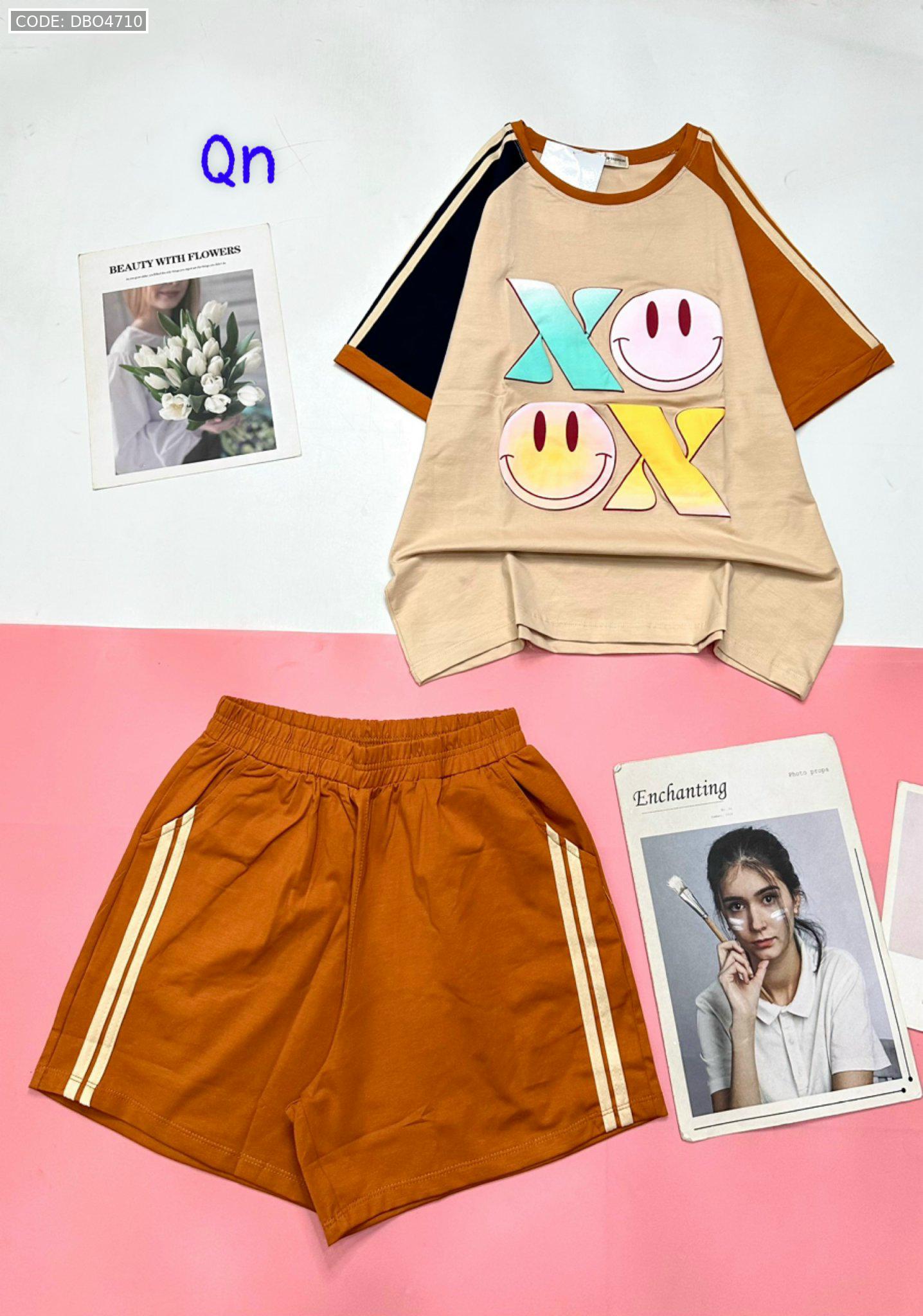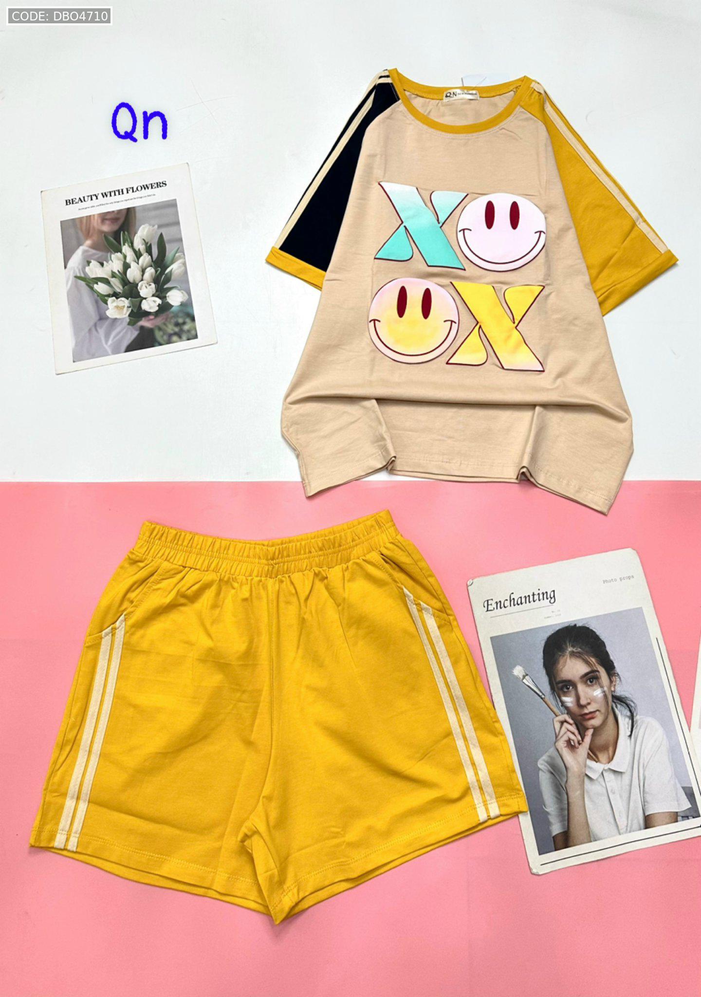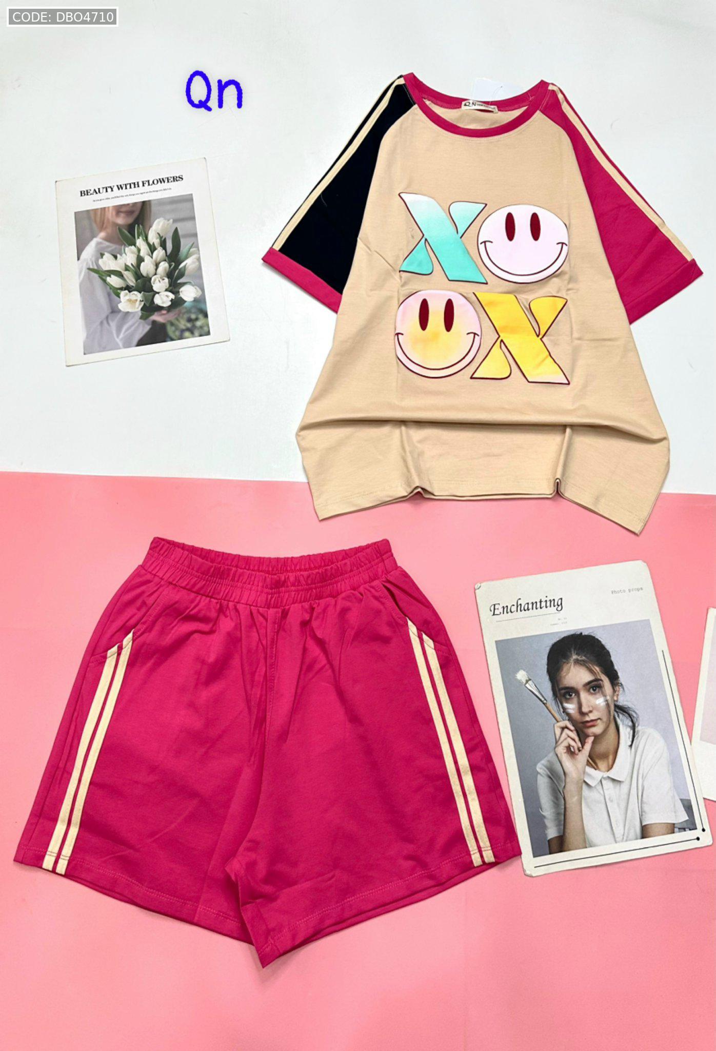Đồ bộ quần đùi áo tay ngắn in chữ X mặt cười