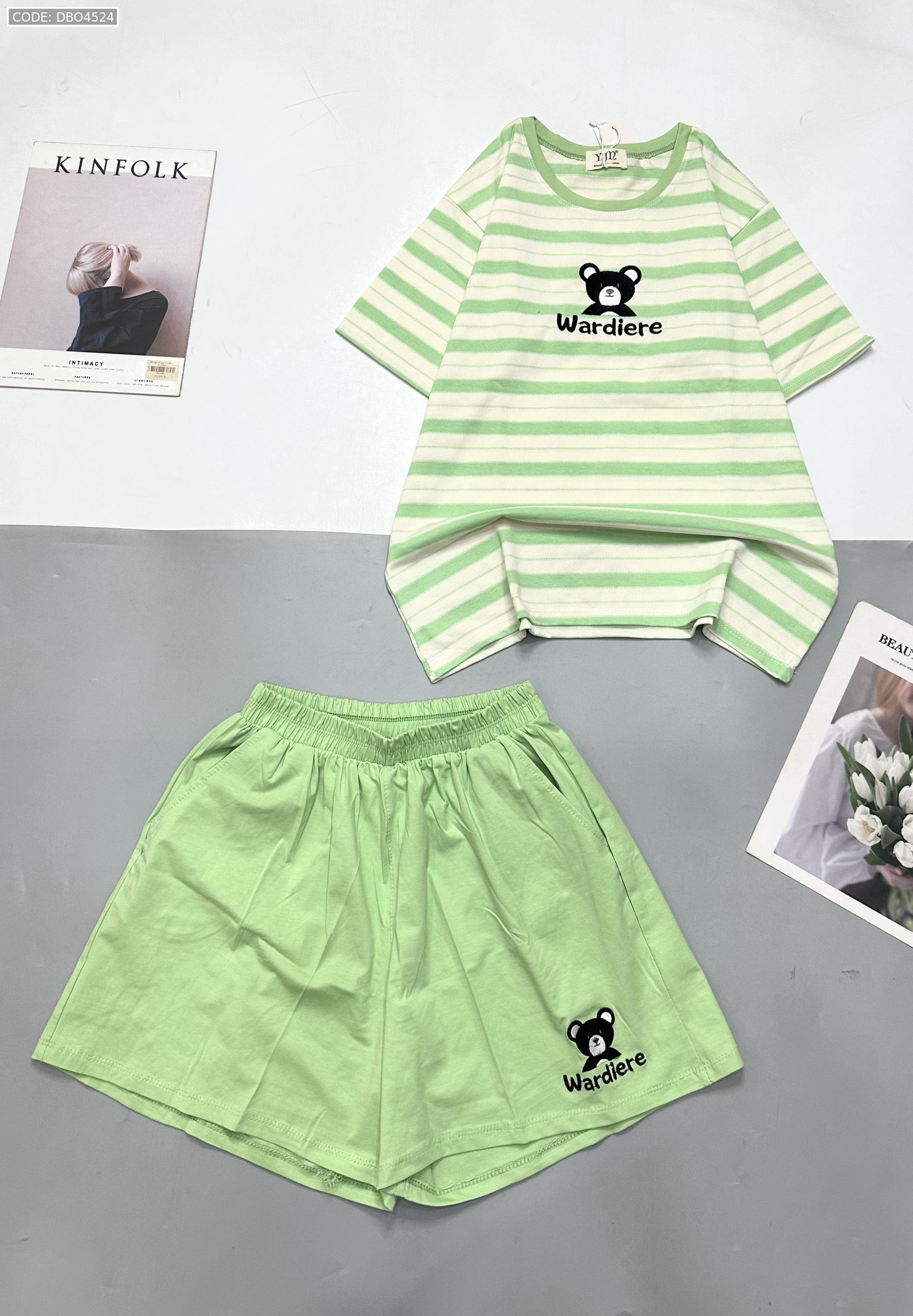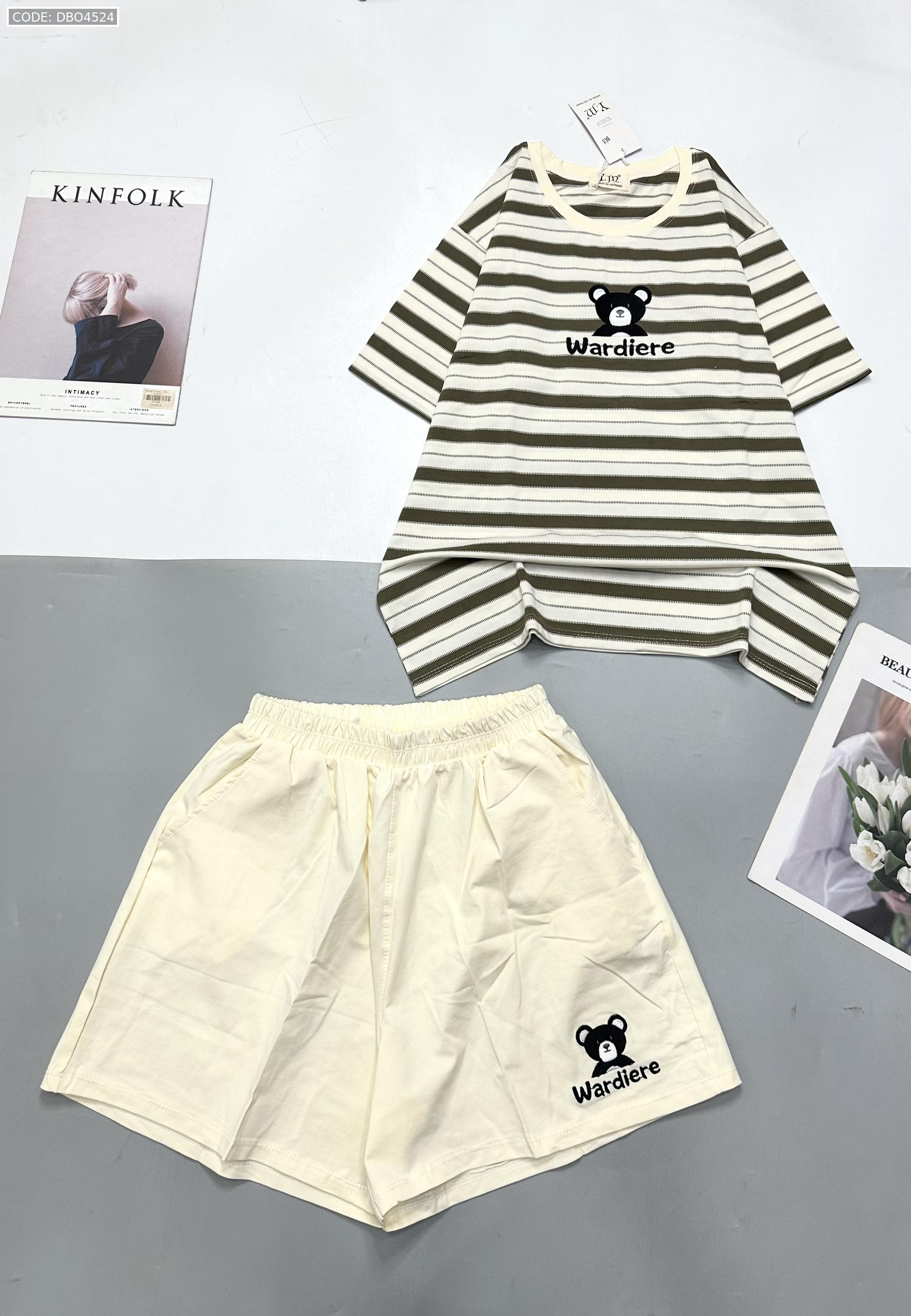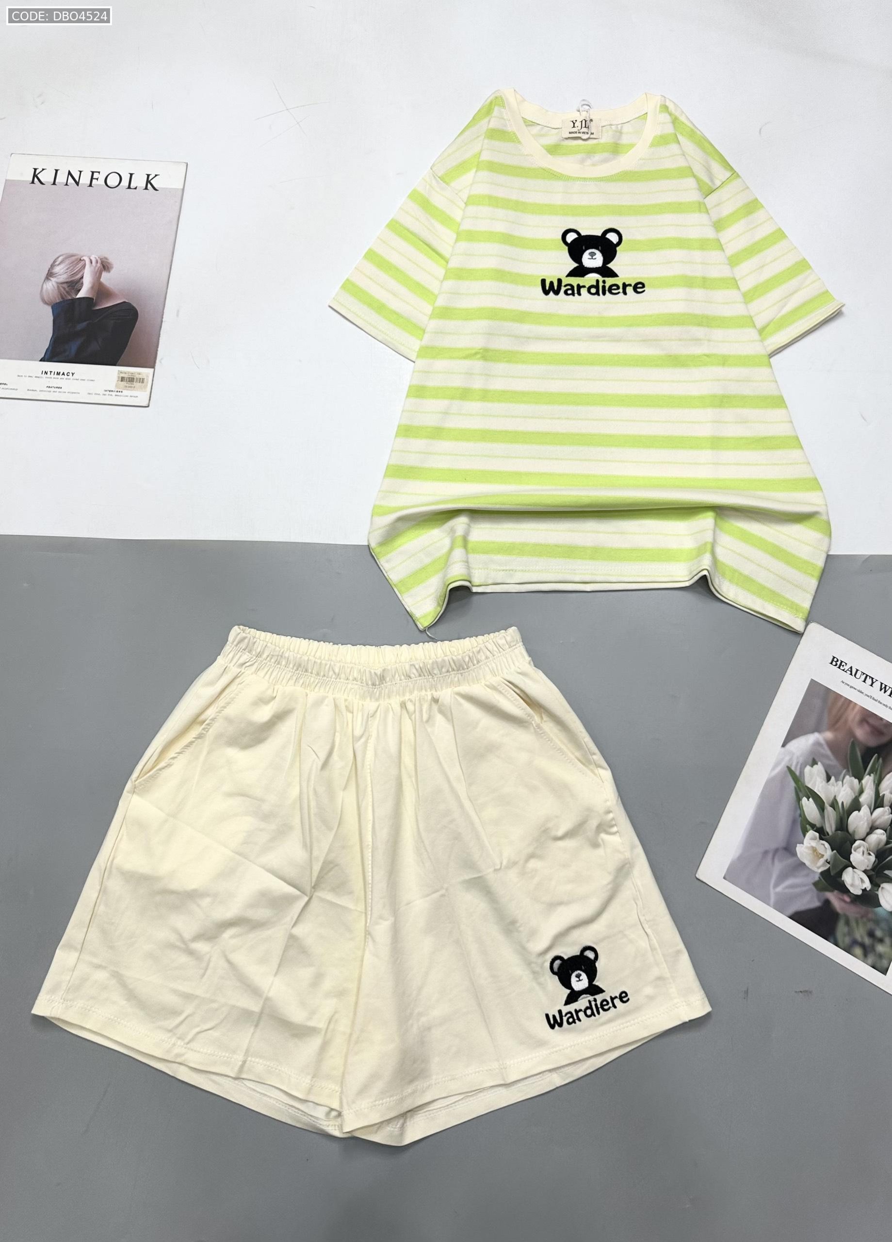 Đồ bộ quần đùi áo tay ngắn in hình gấu áo sọc ngang