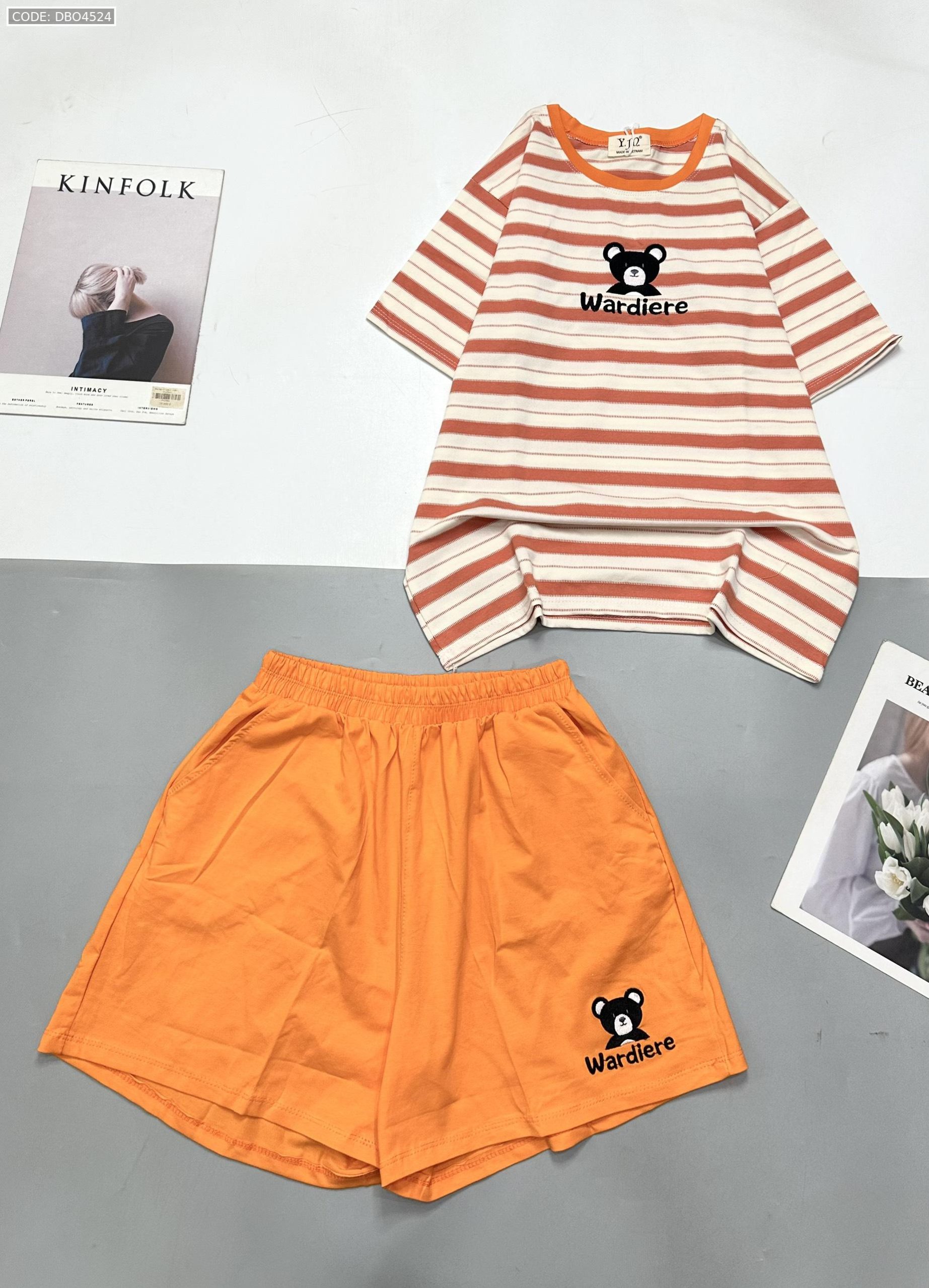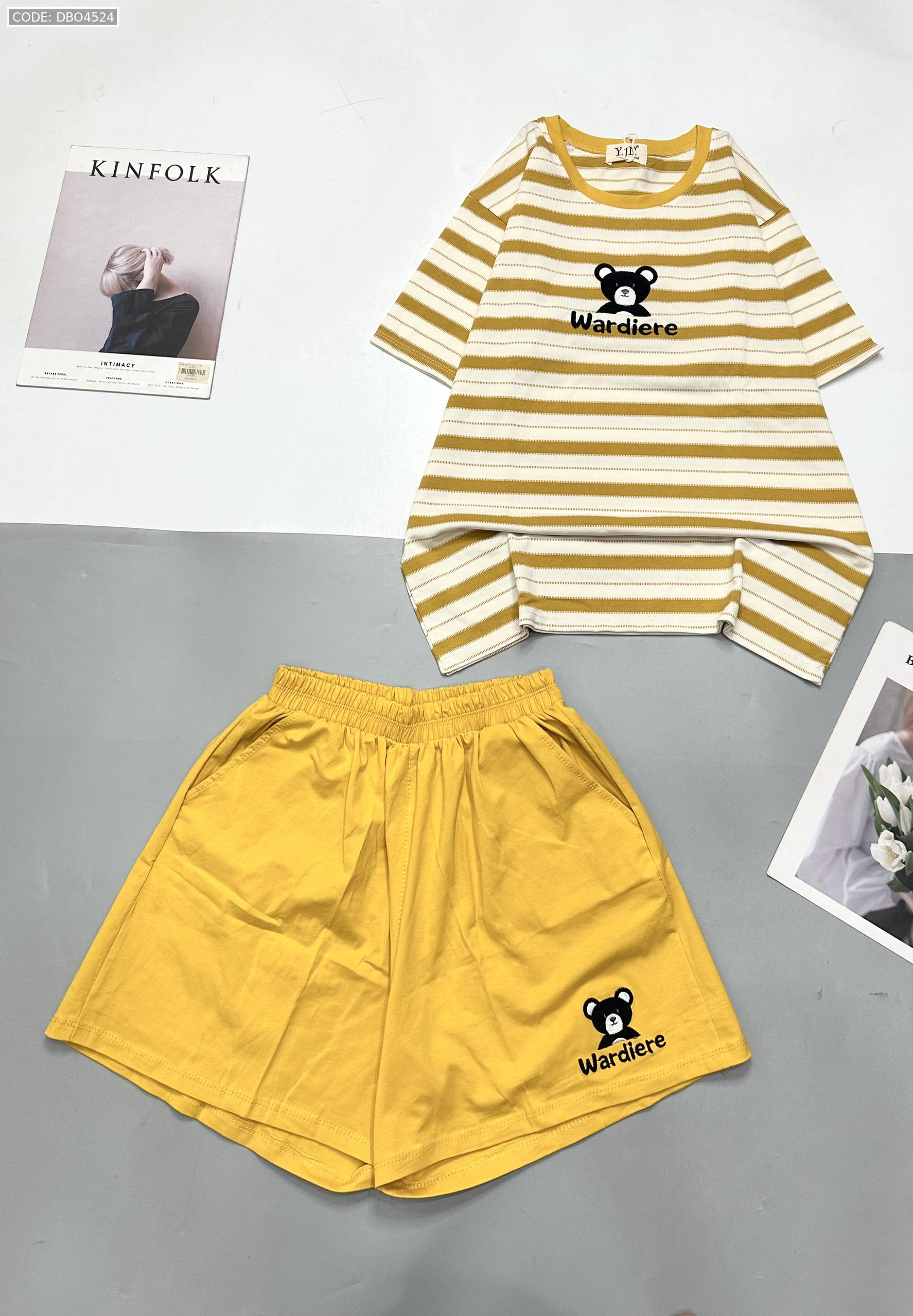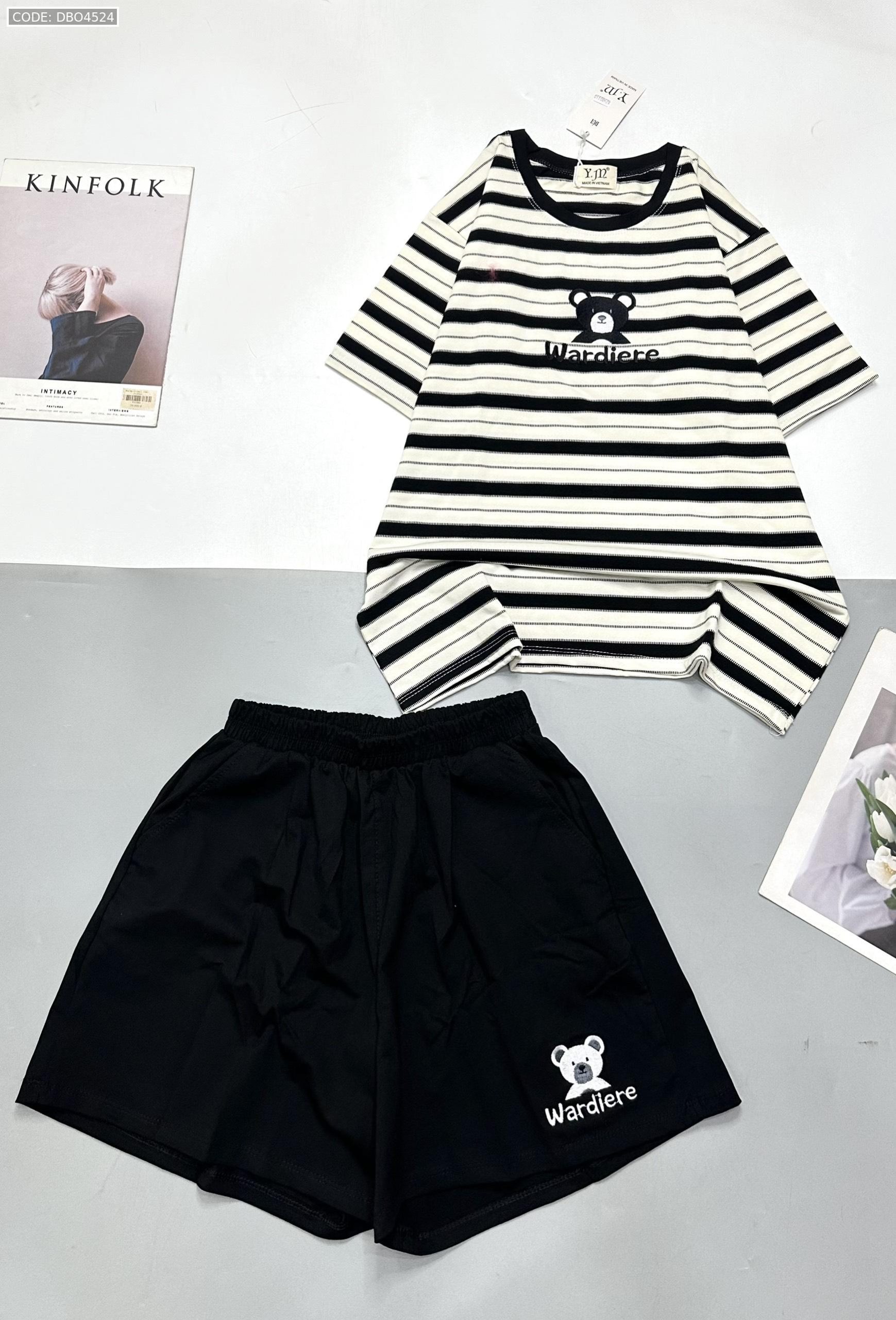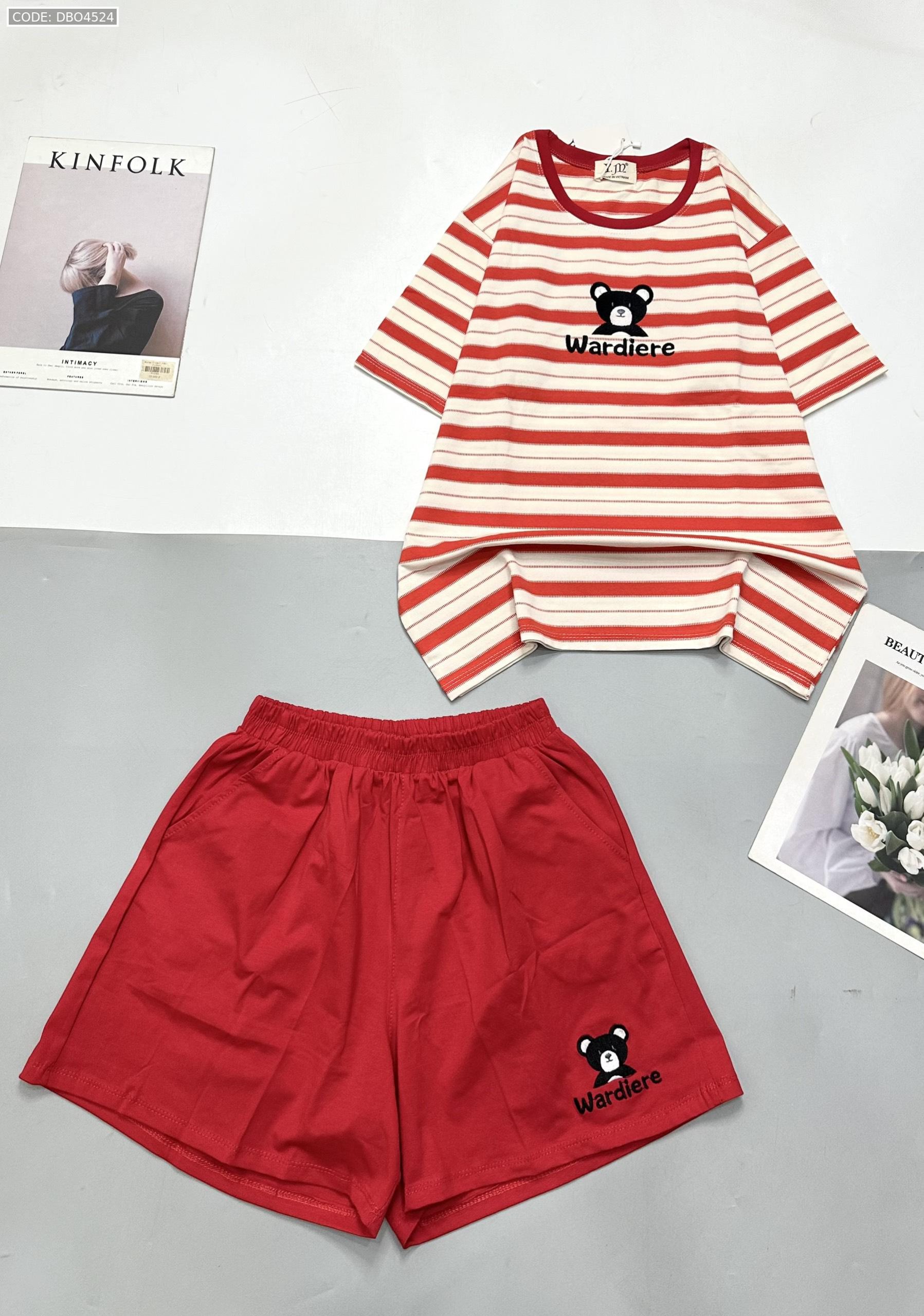 Đồ bộ quần đùi áo tay ngắn in hình gấu áo sọc ngang