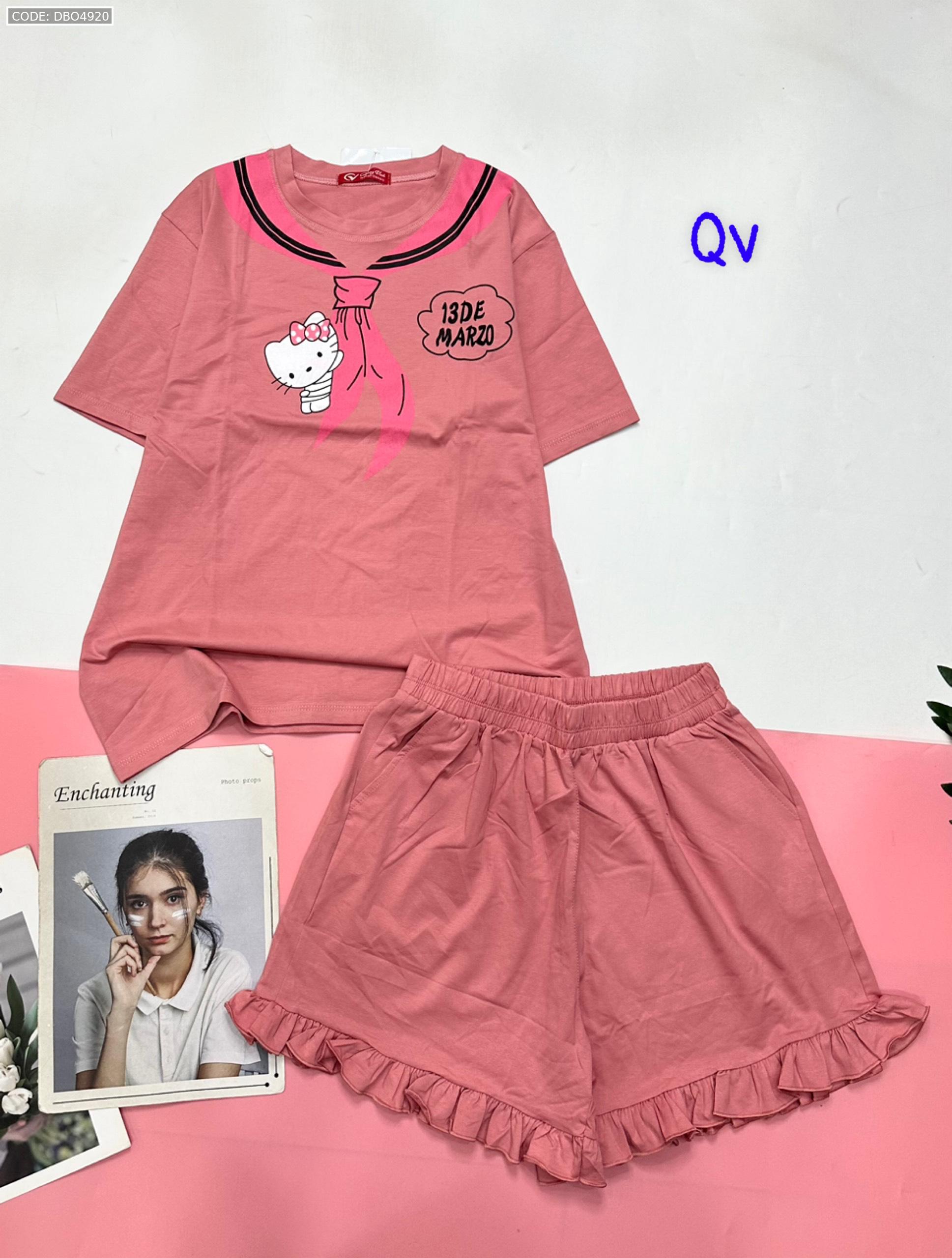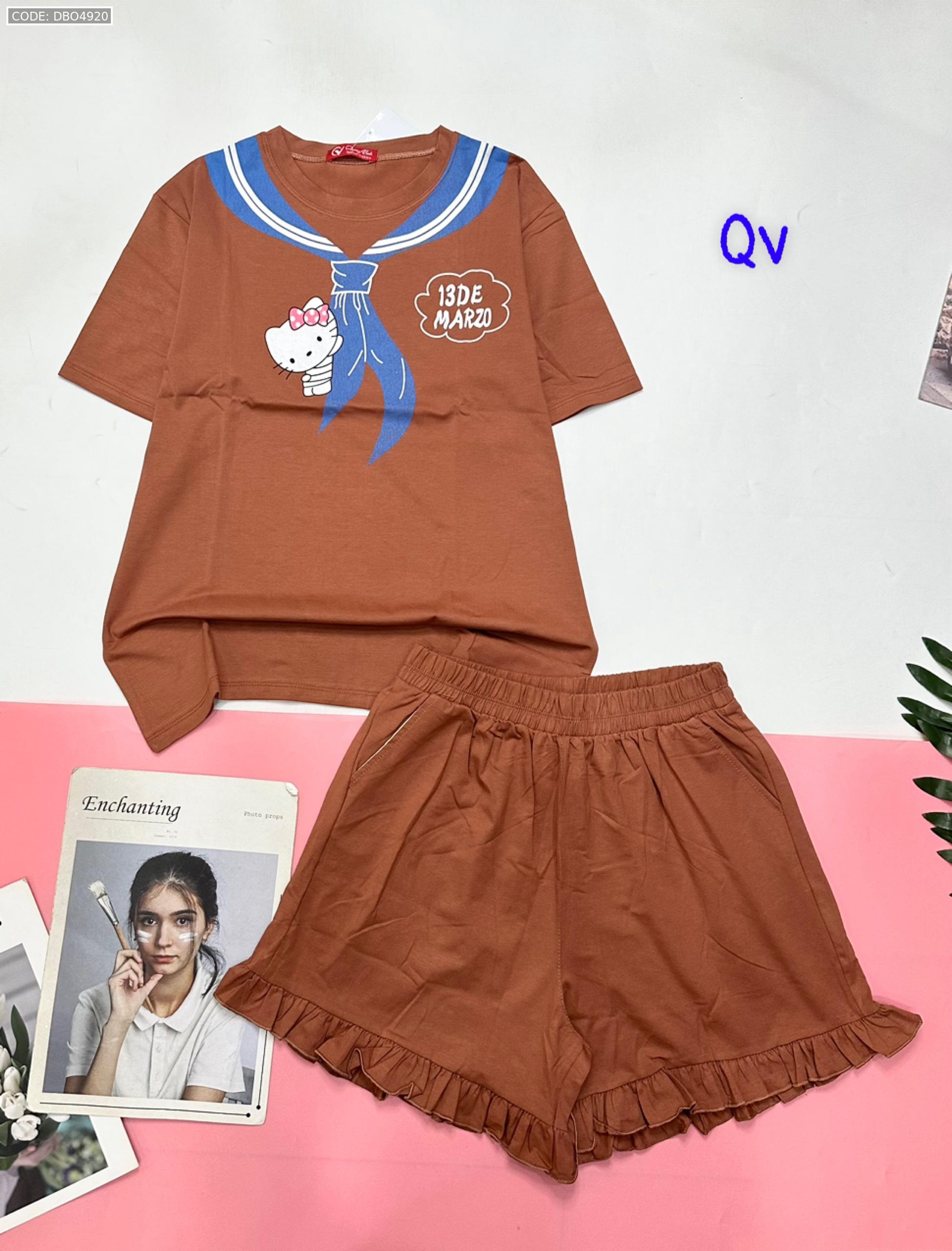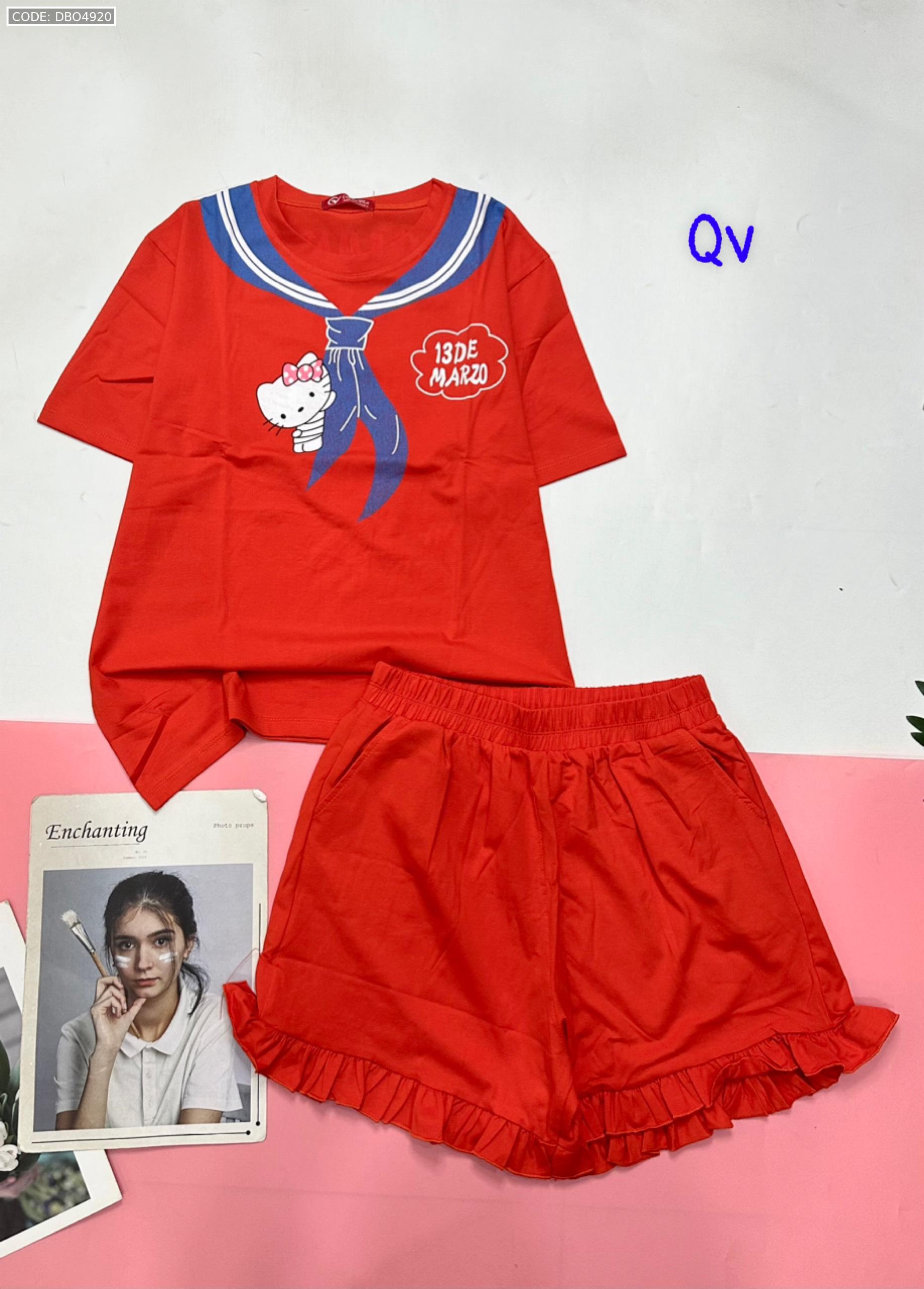 đồ bộ quần đùi áo tay ngắn in hình khăn quàng