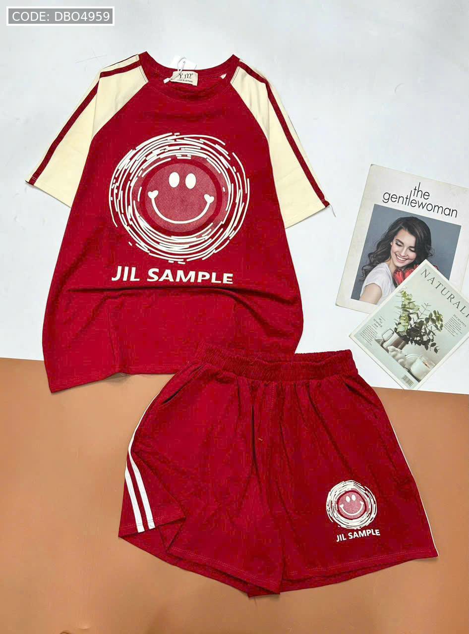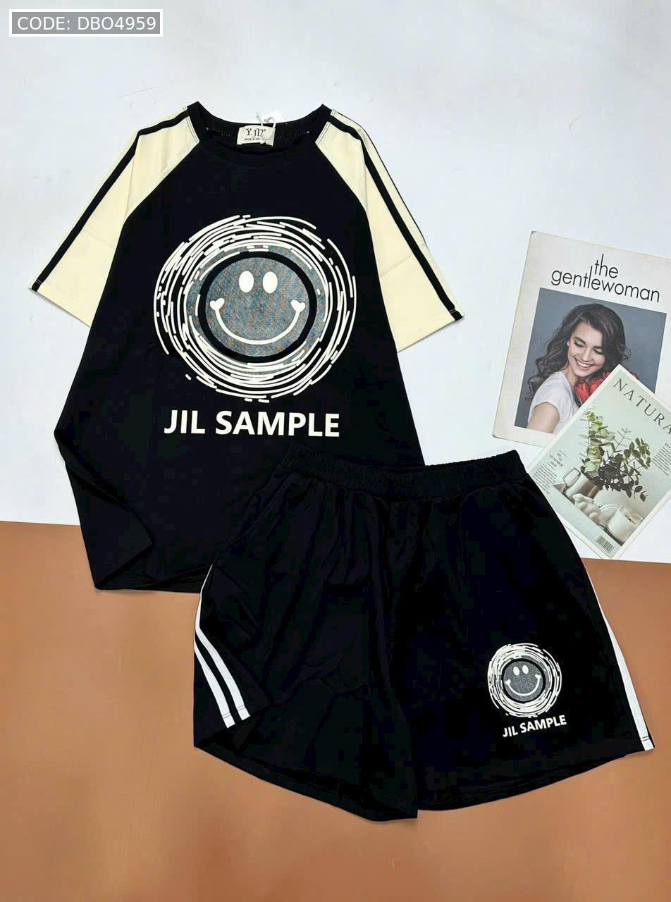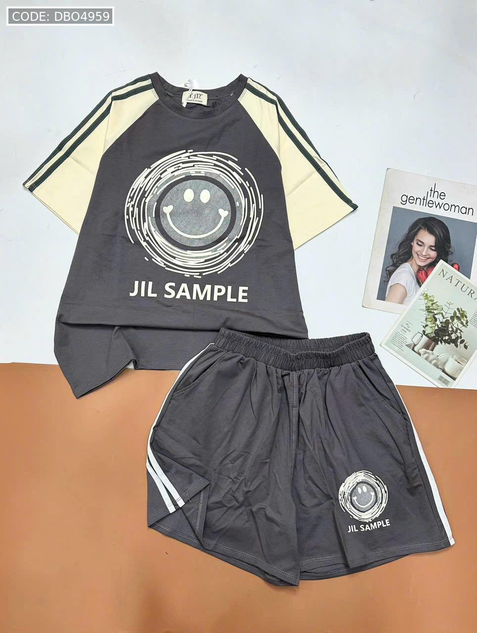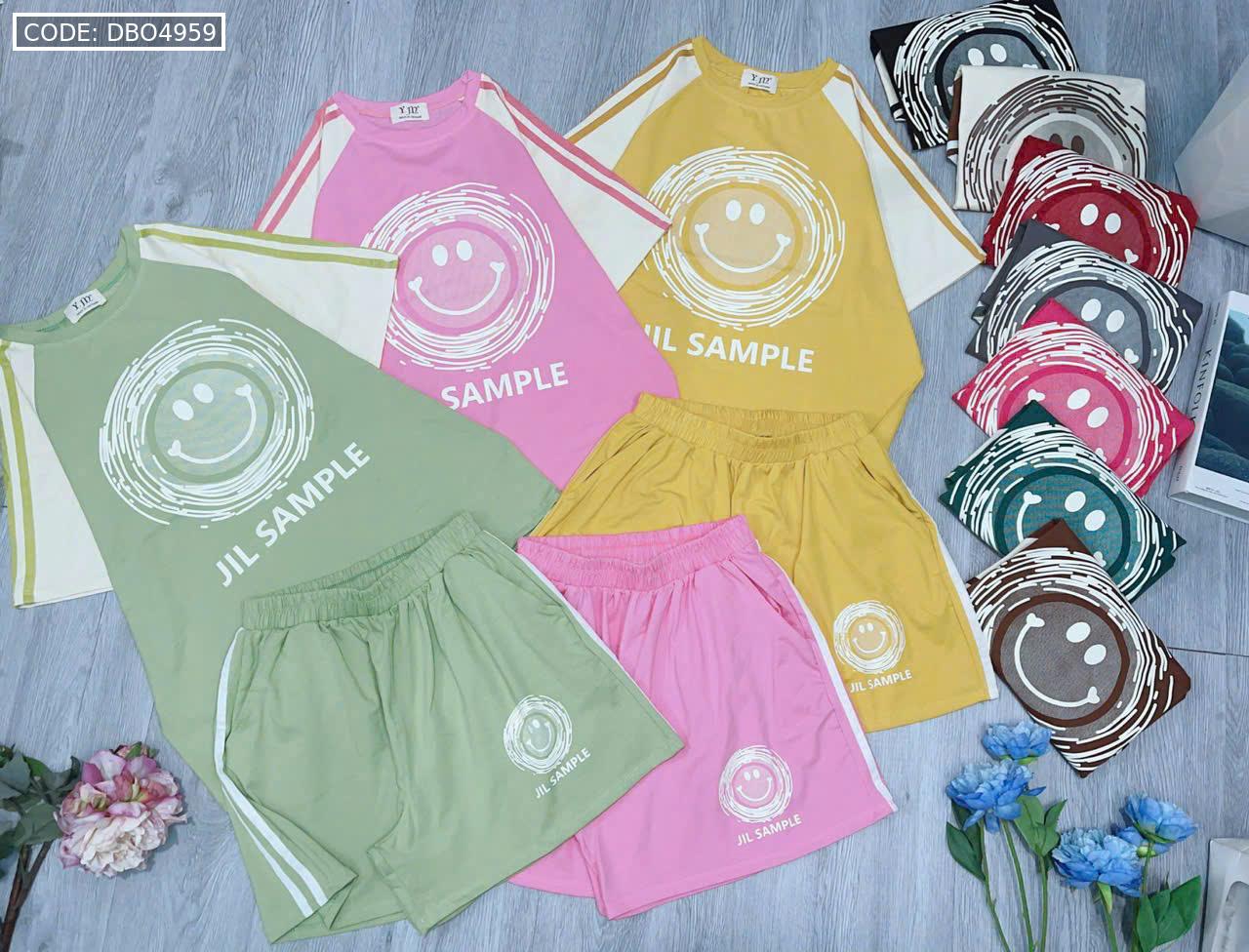 Đồ bộ quần đùi áo tay ngắn in hình mặt cười và chữ