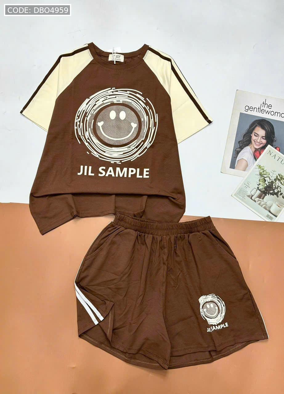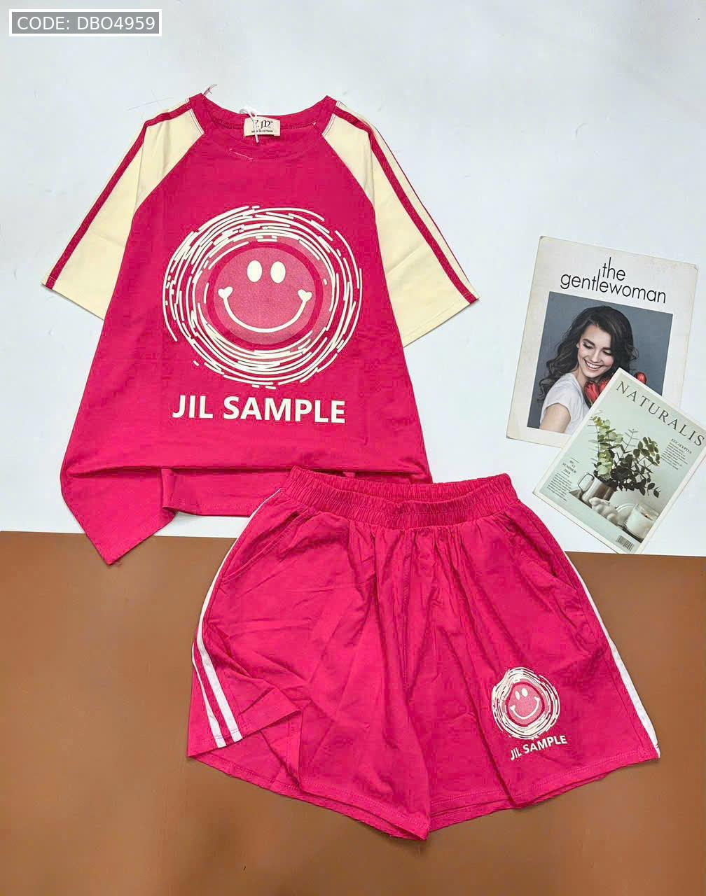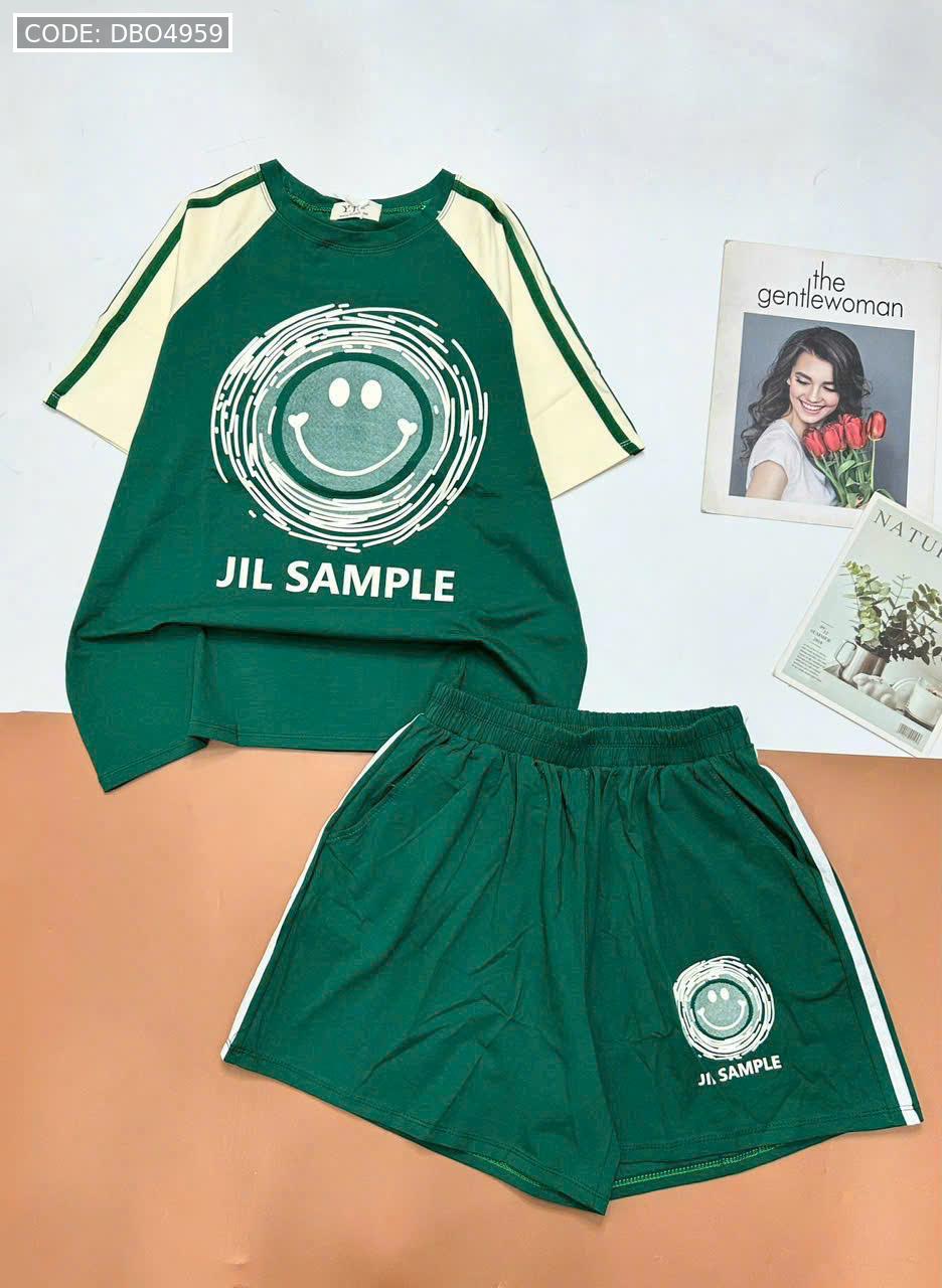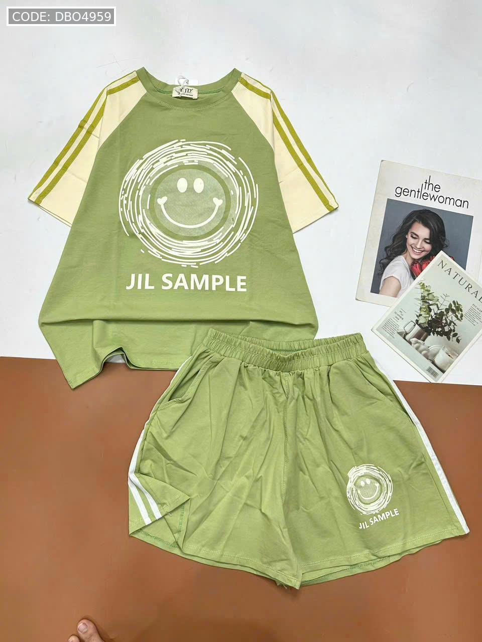 Đồ bộ quần đùi áo tay ngắn in hình mặt cười và chữ