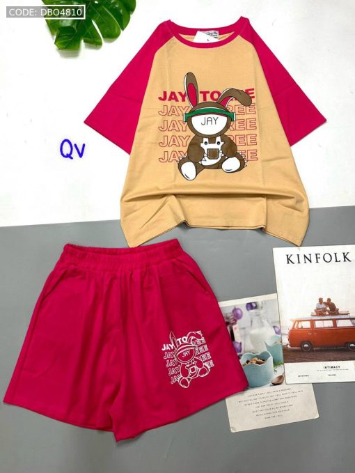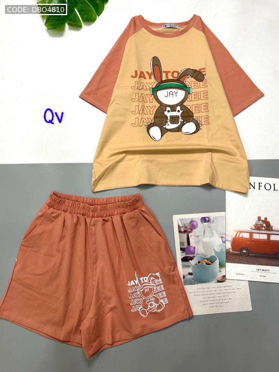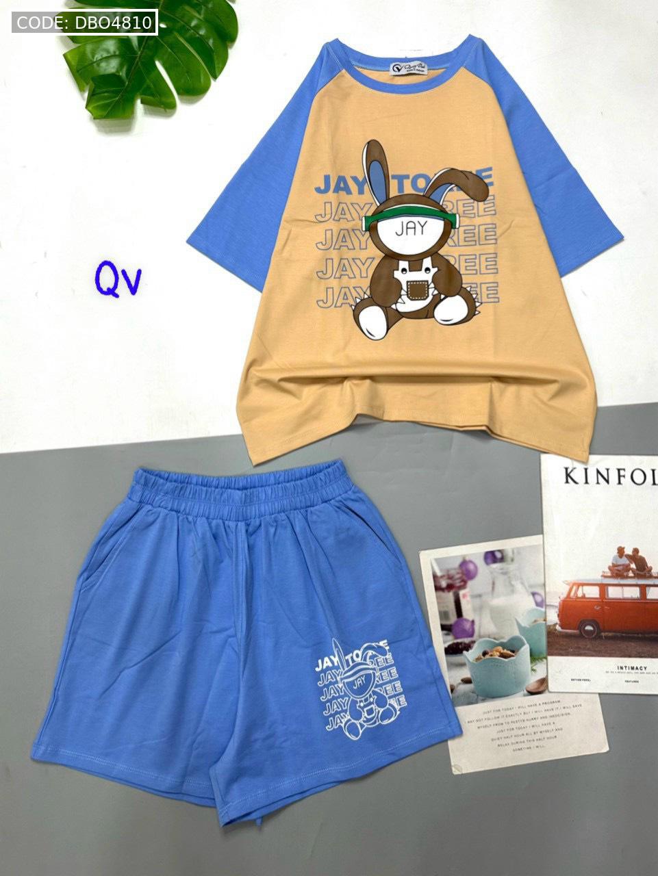 đồ bộ quần đùi áo tay ngắn in hình thỏ tai dài