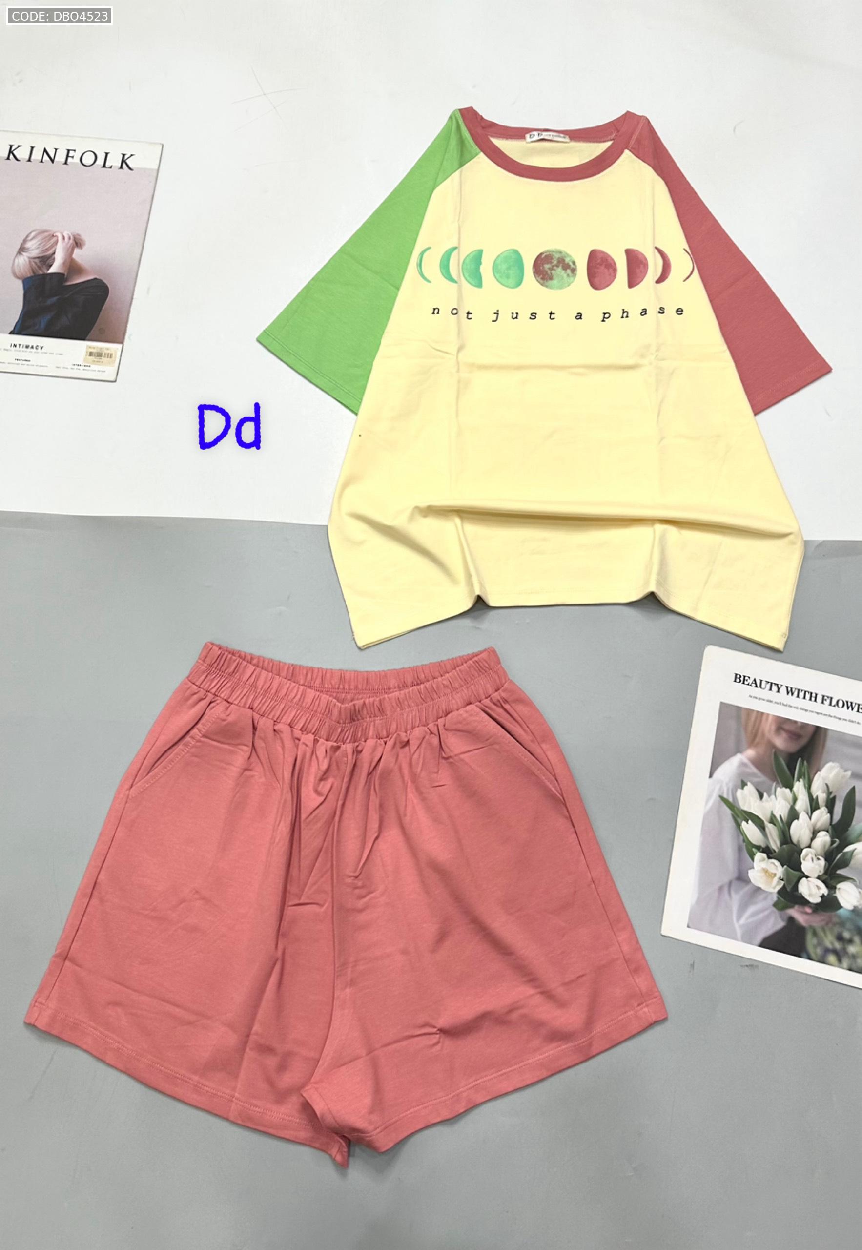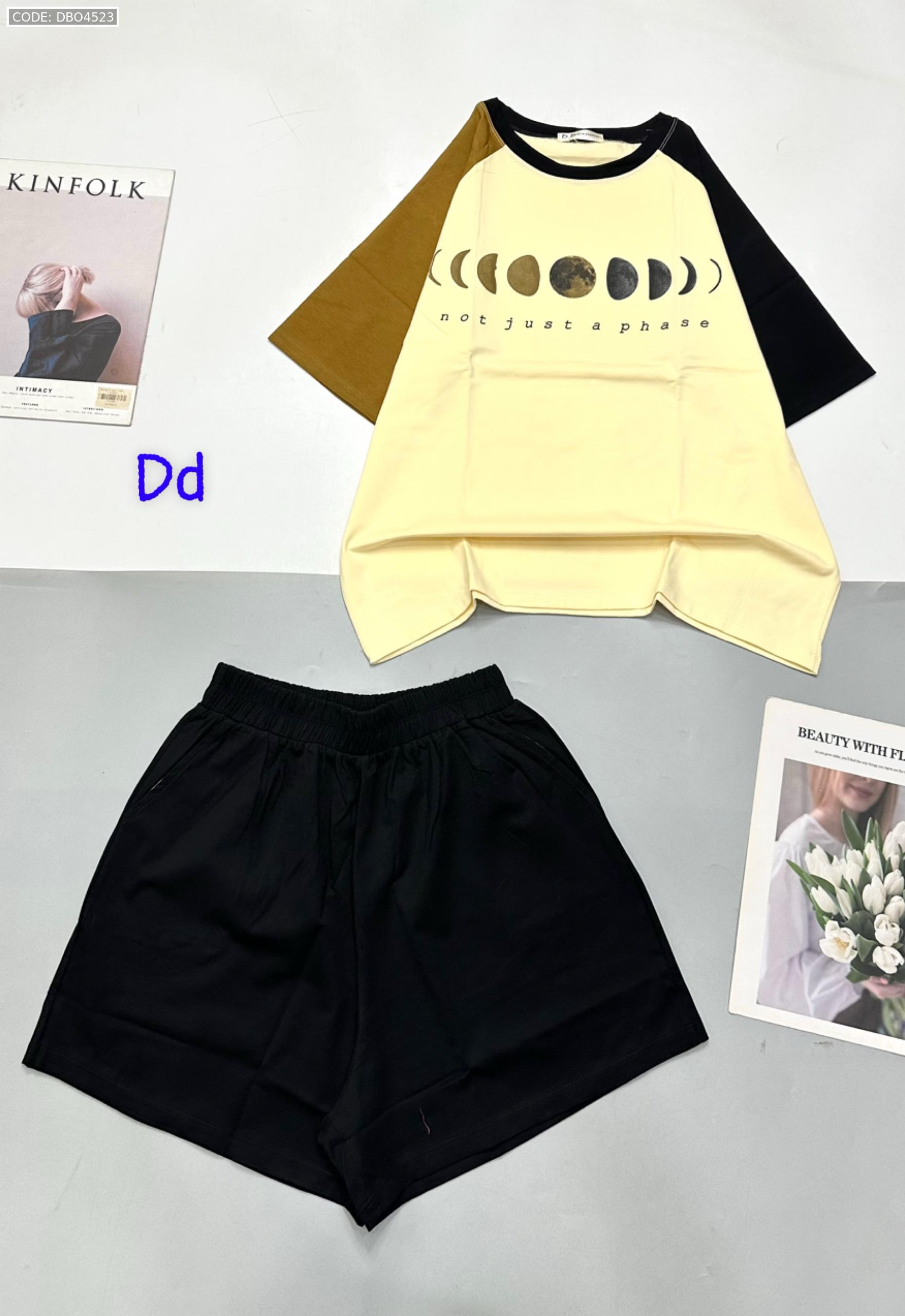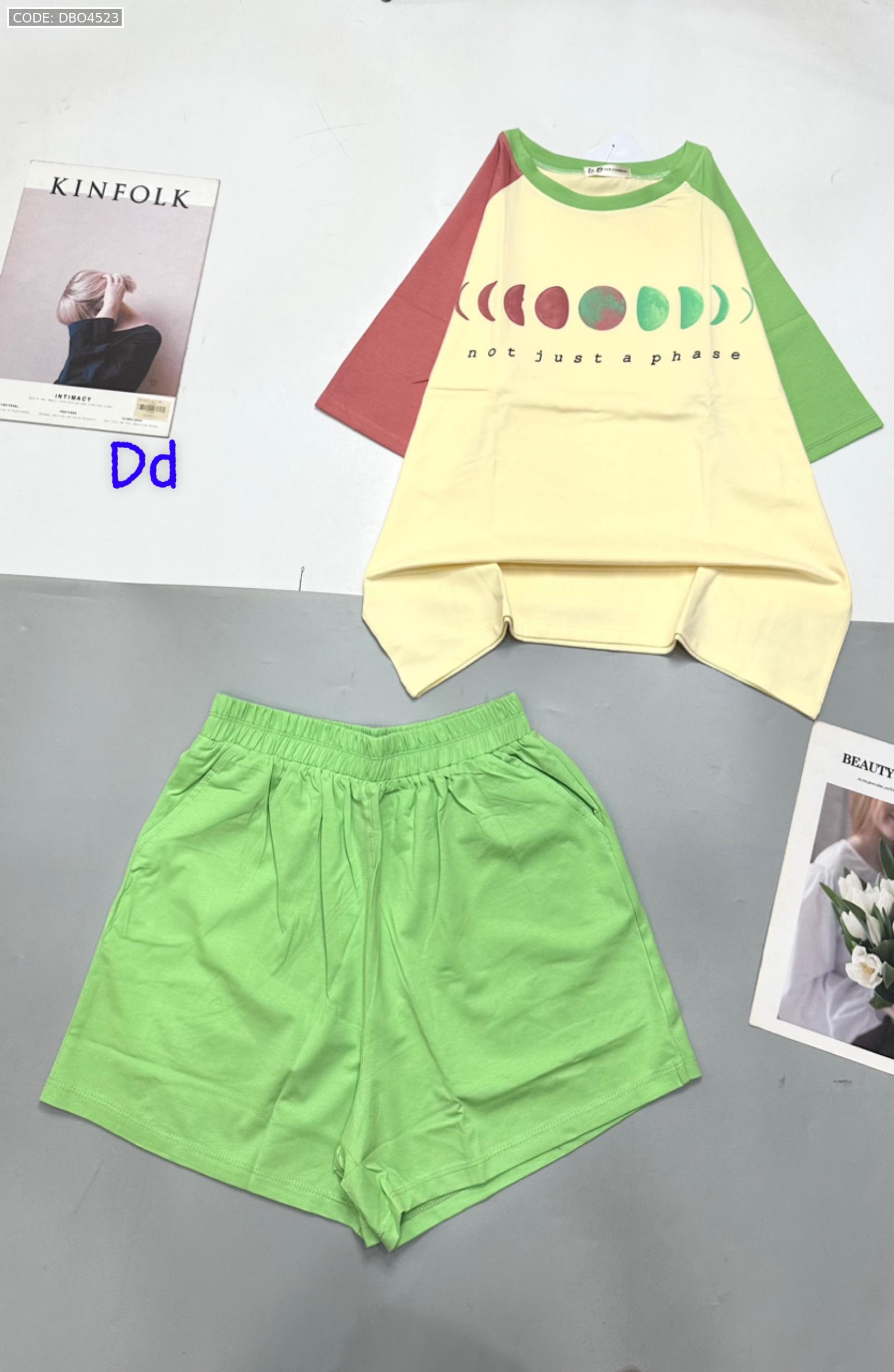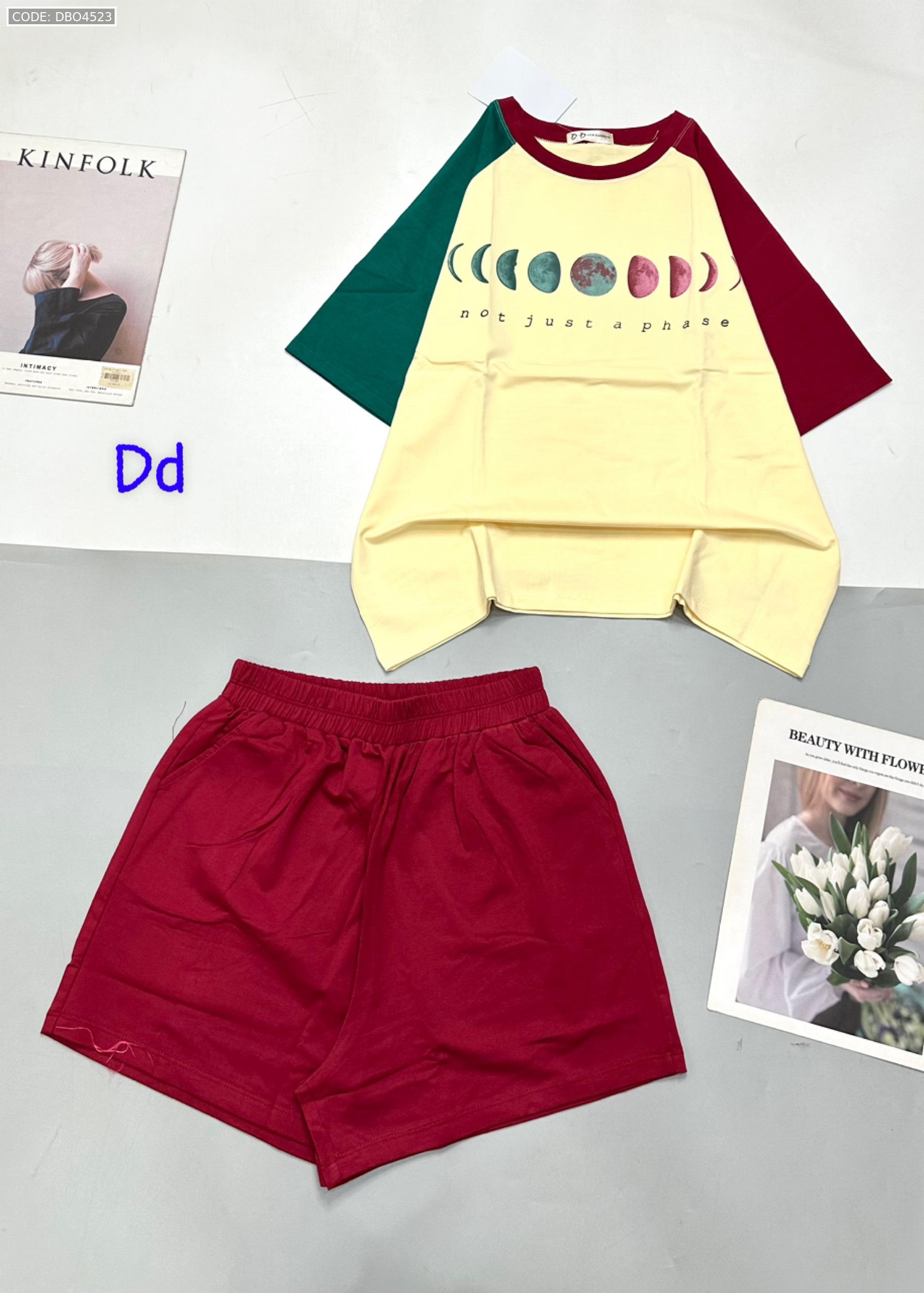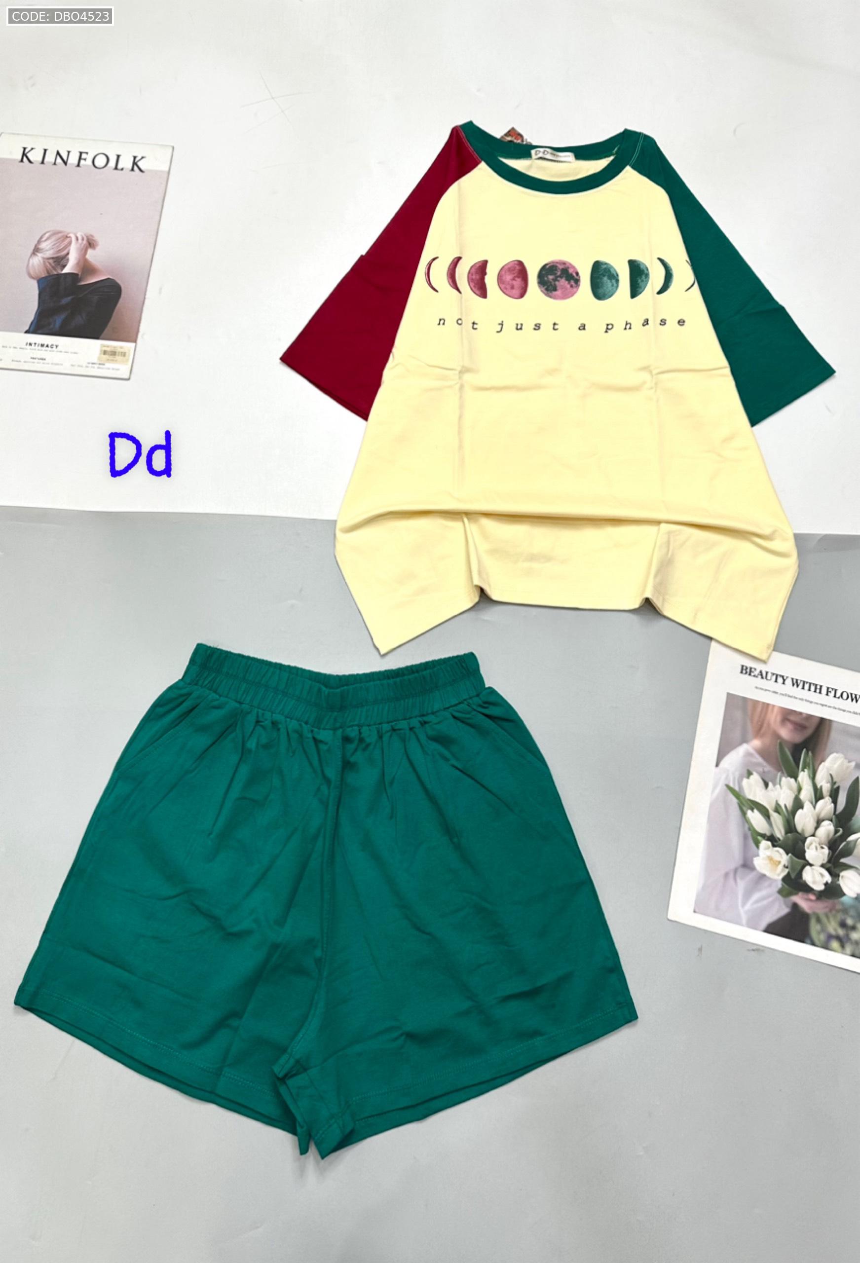Đồ bộ quần đùi áo tay ngắn in hình trái đất tay hai màu